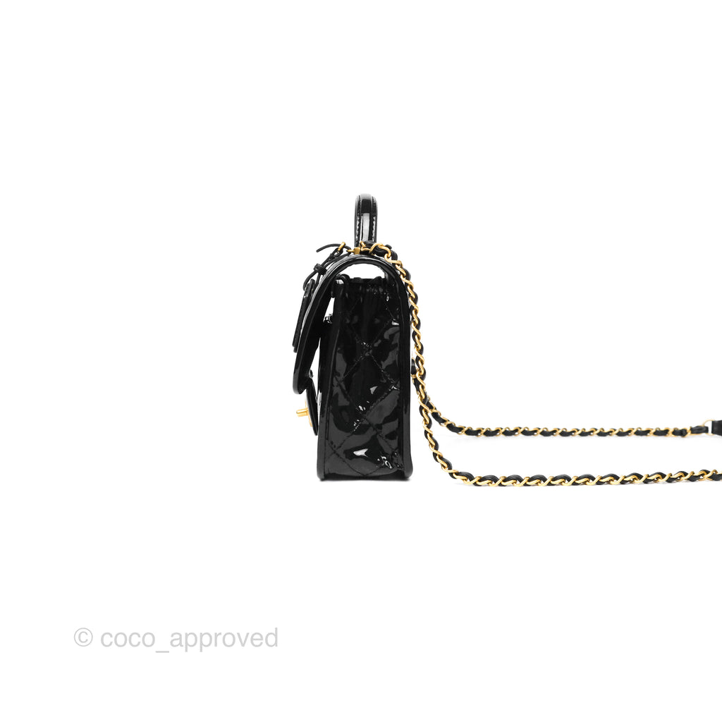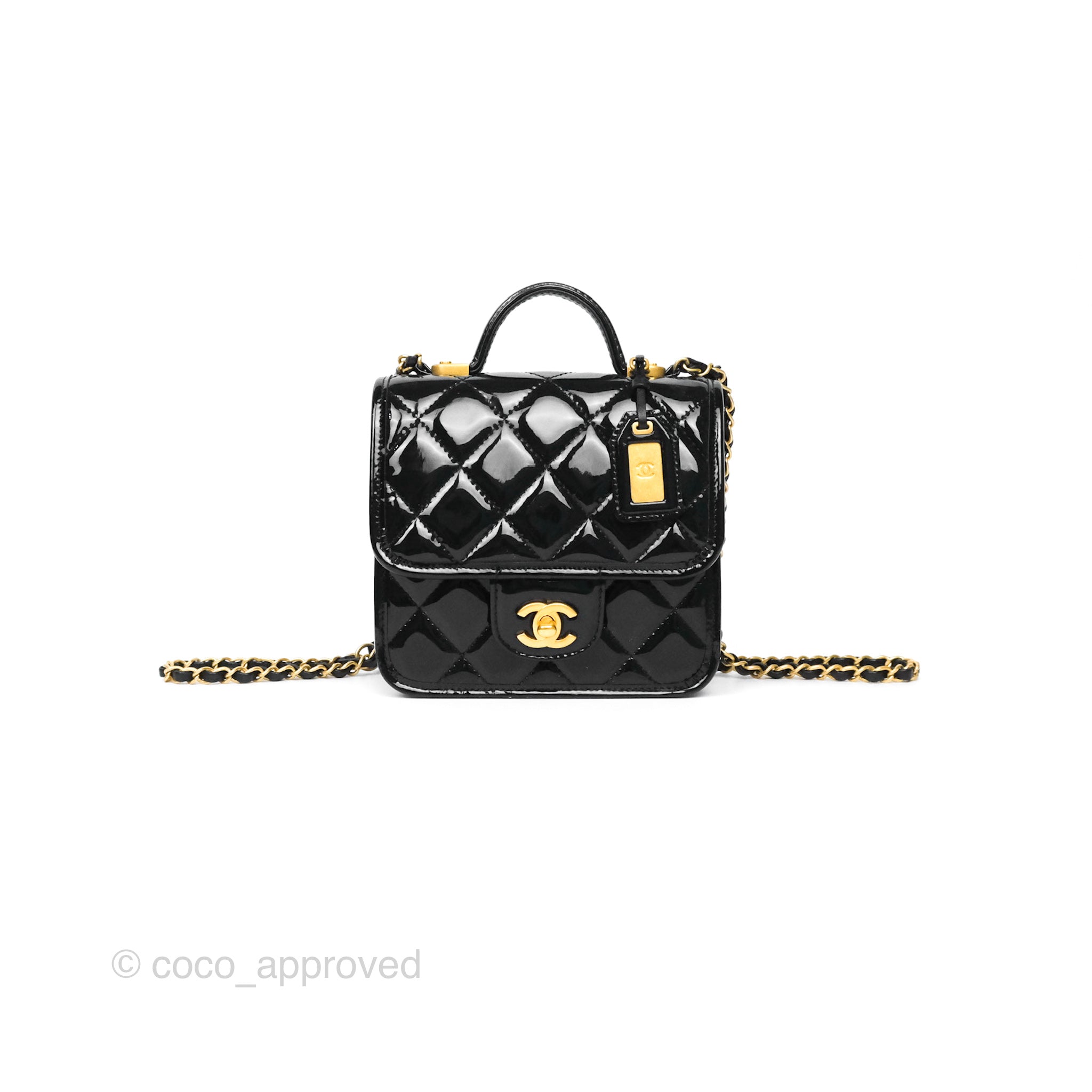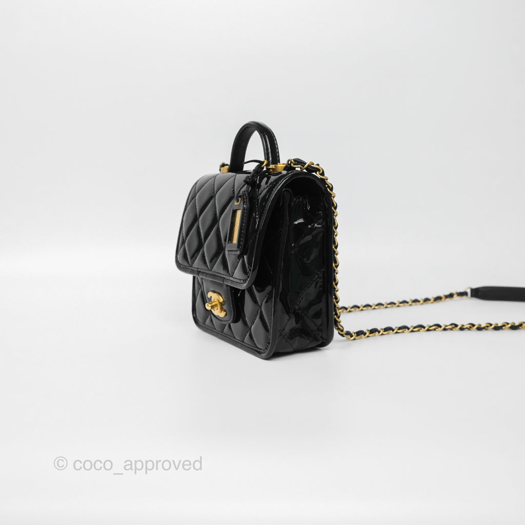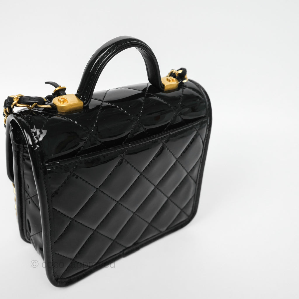 Chanel Mini School Memory Top Handle Flap Black Patent 22K