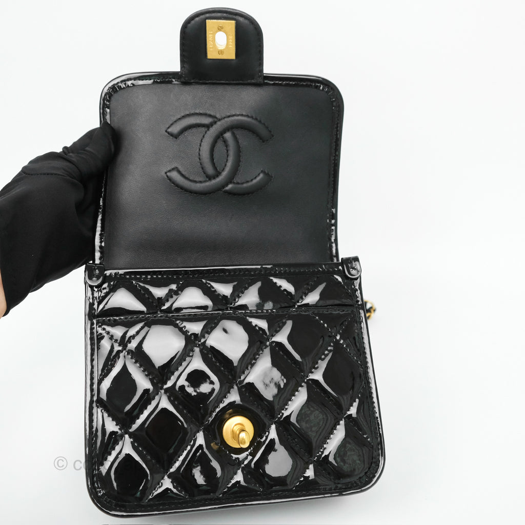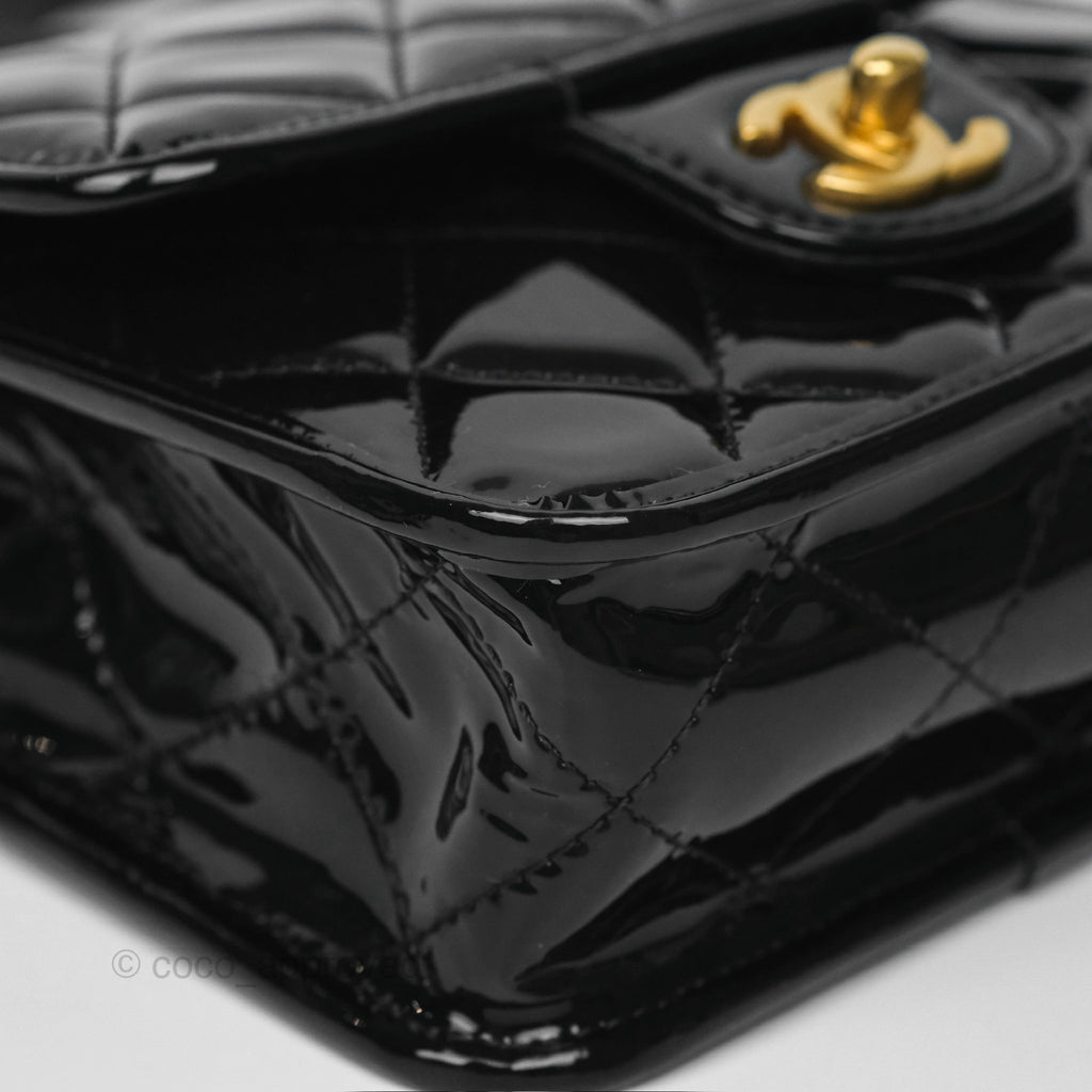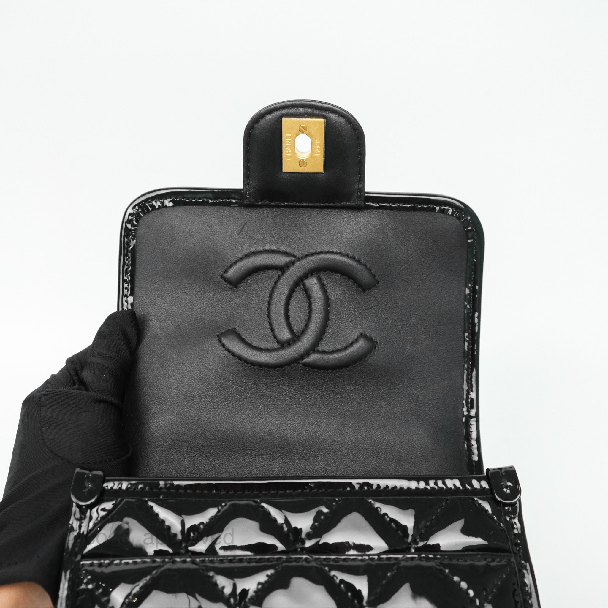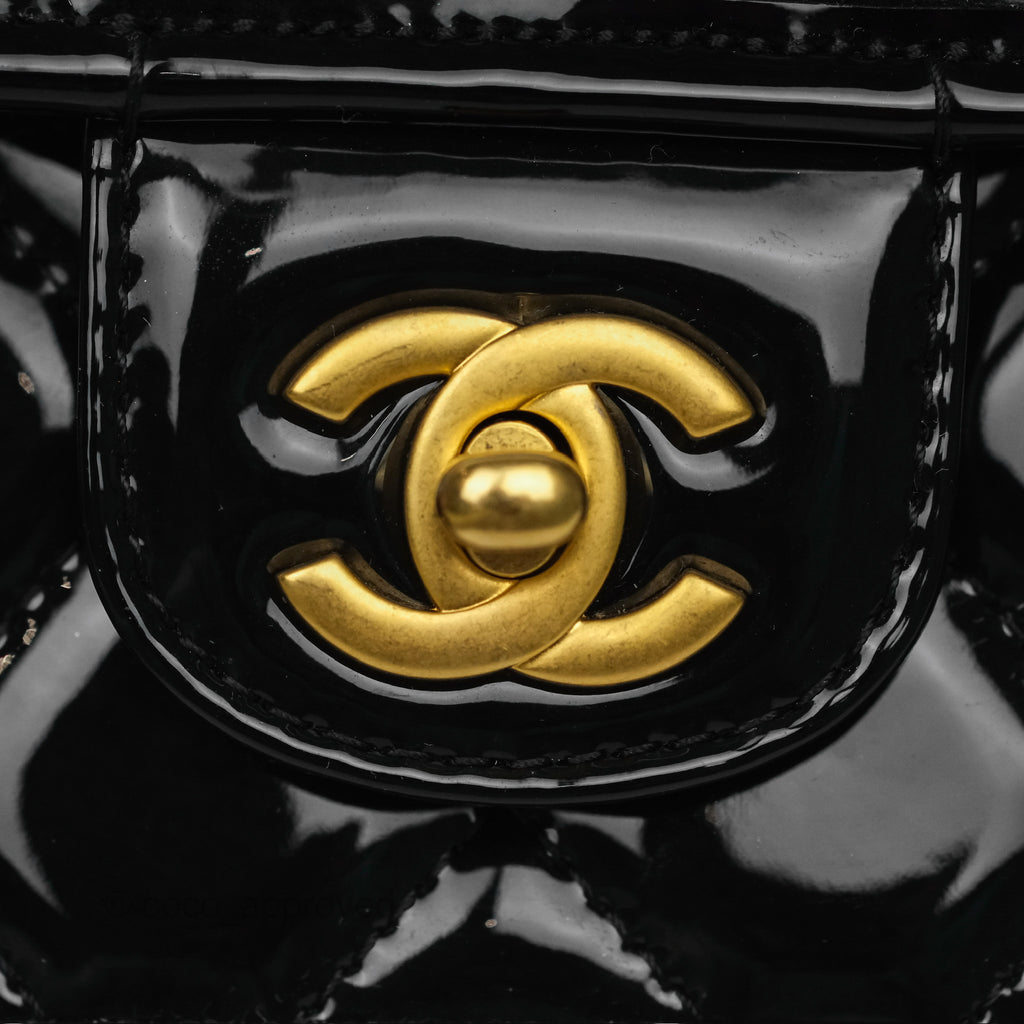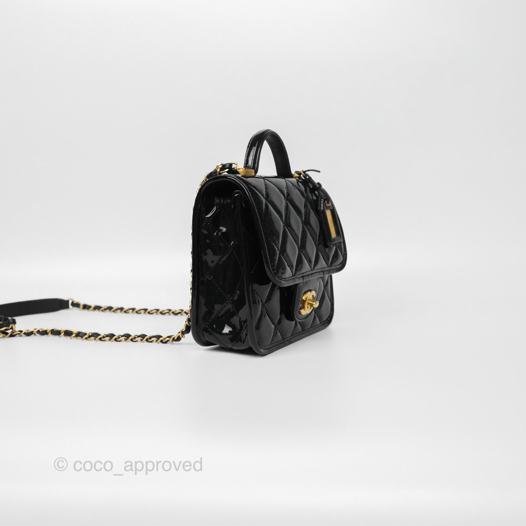 Chanel Mini School Memory Top Handle Flap Black Patent 22K