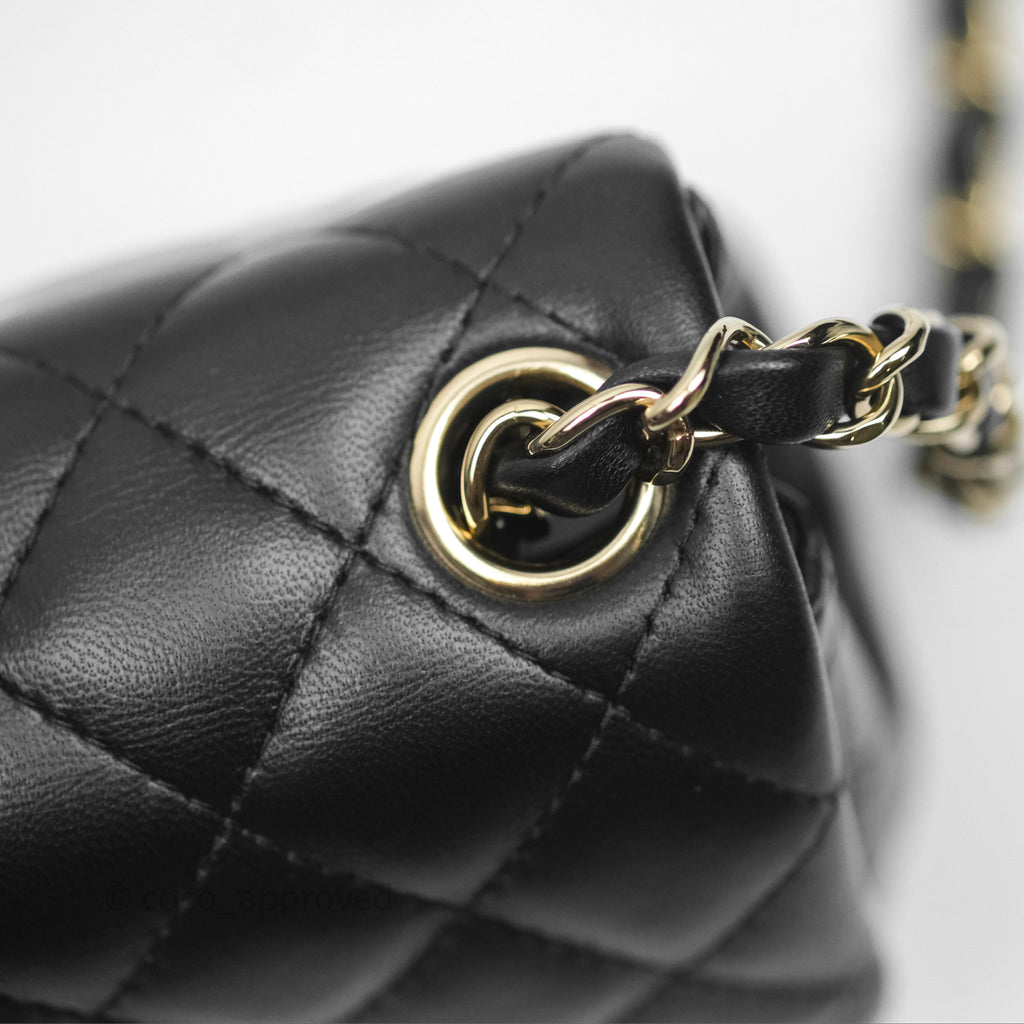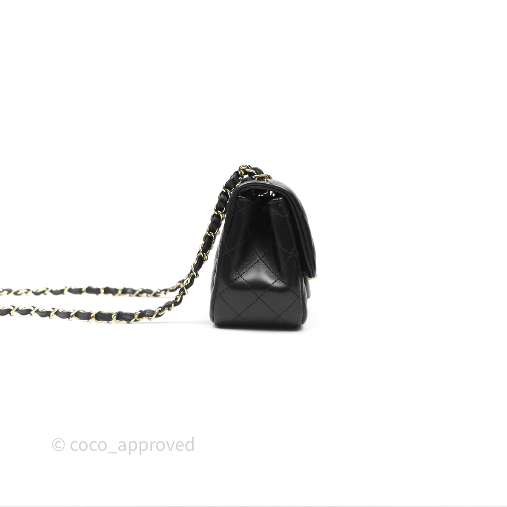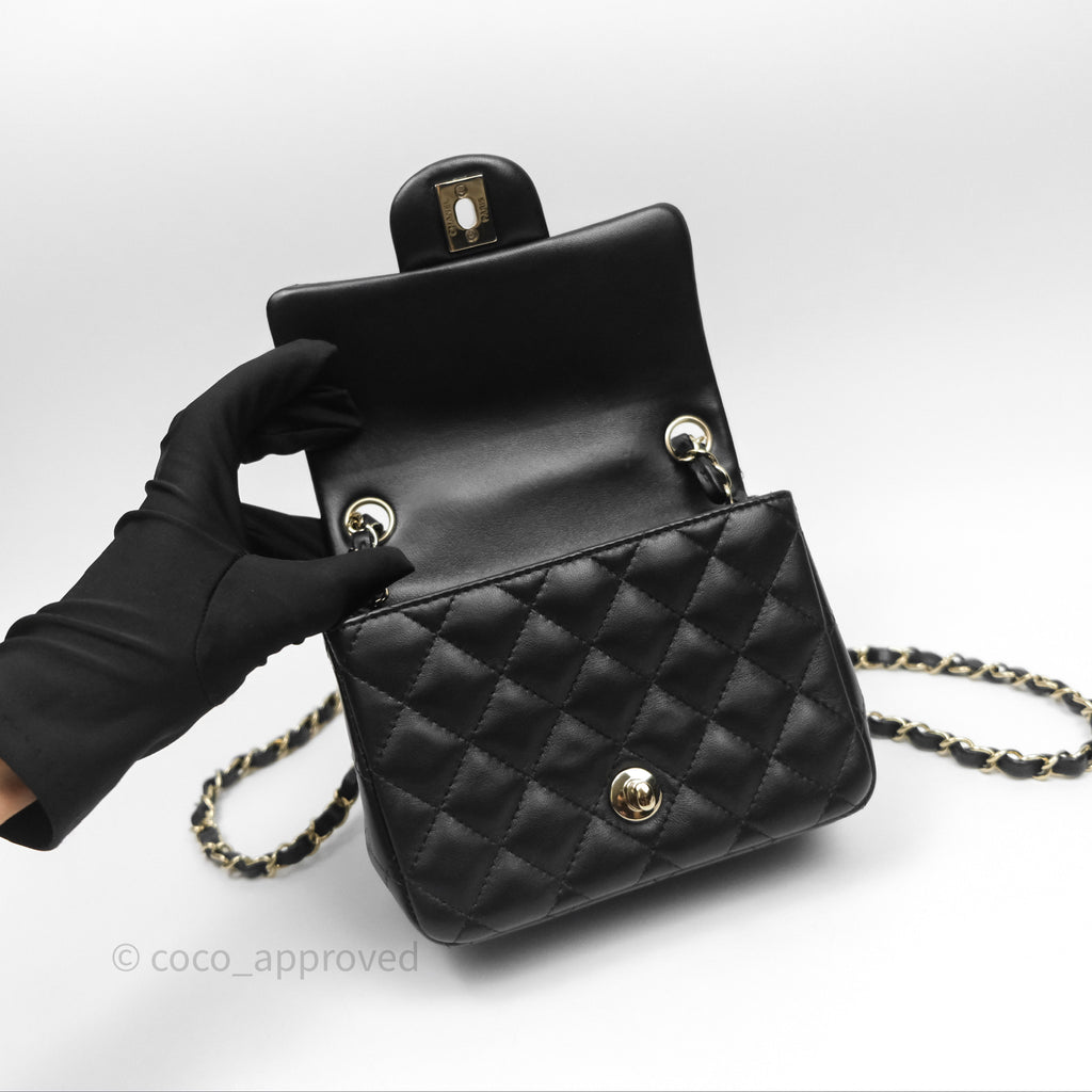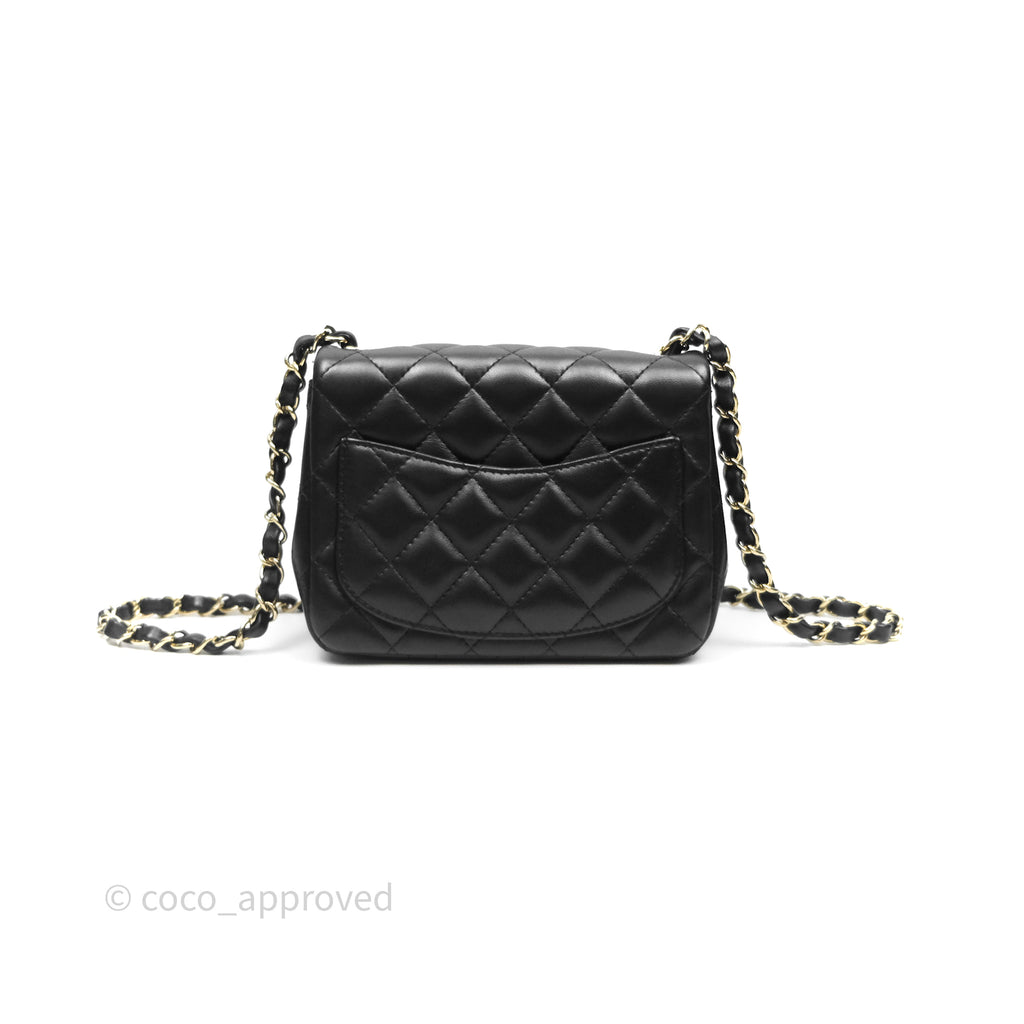 Chanel Mini Square Flap Quilted Black Lambskin Gold Hardware