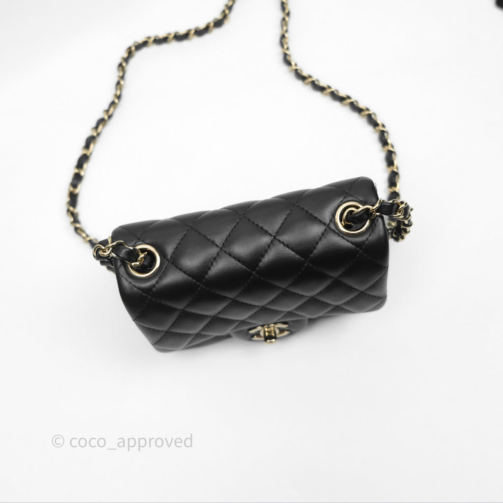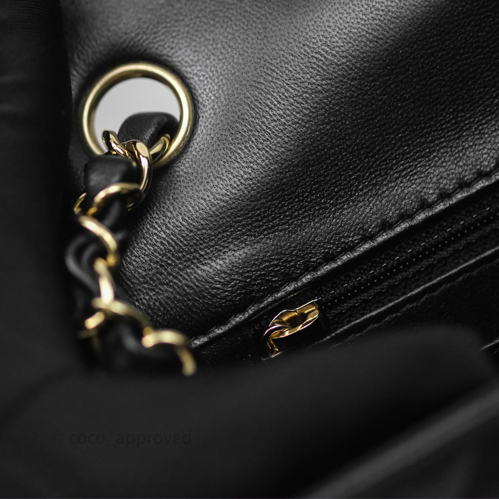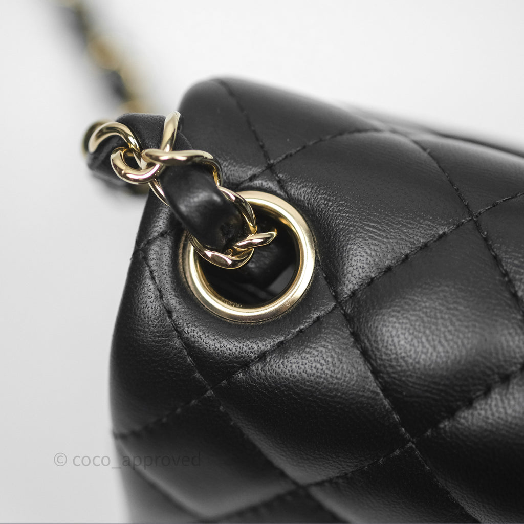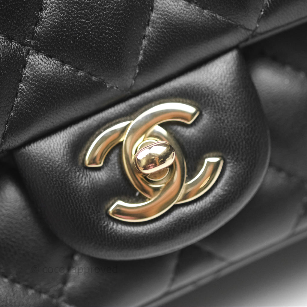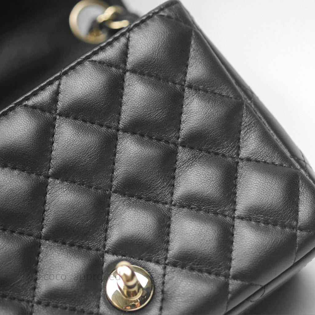 Chanel Mini Square Flap Quilted Black Lambskin Gold Hardware