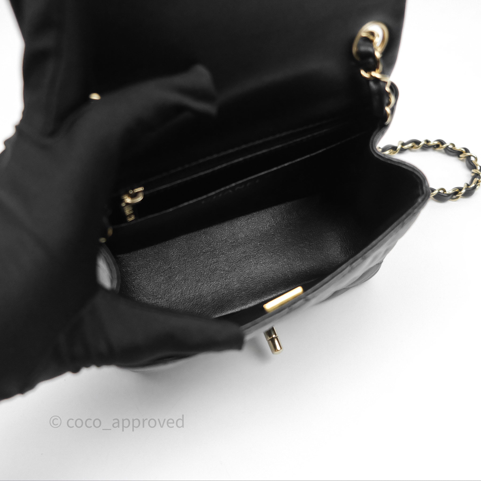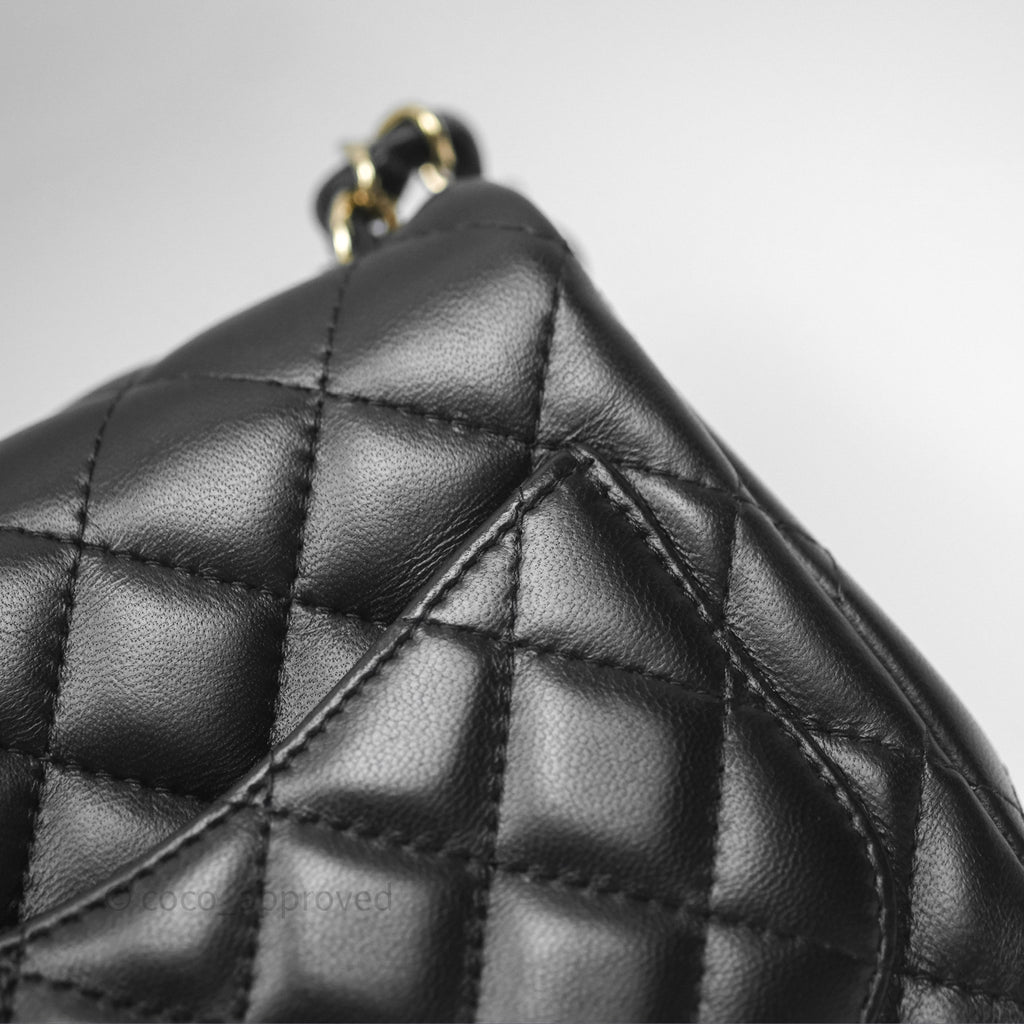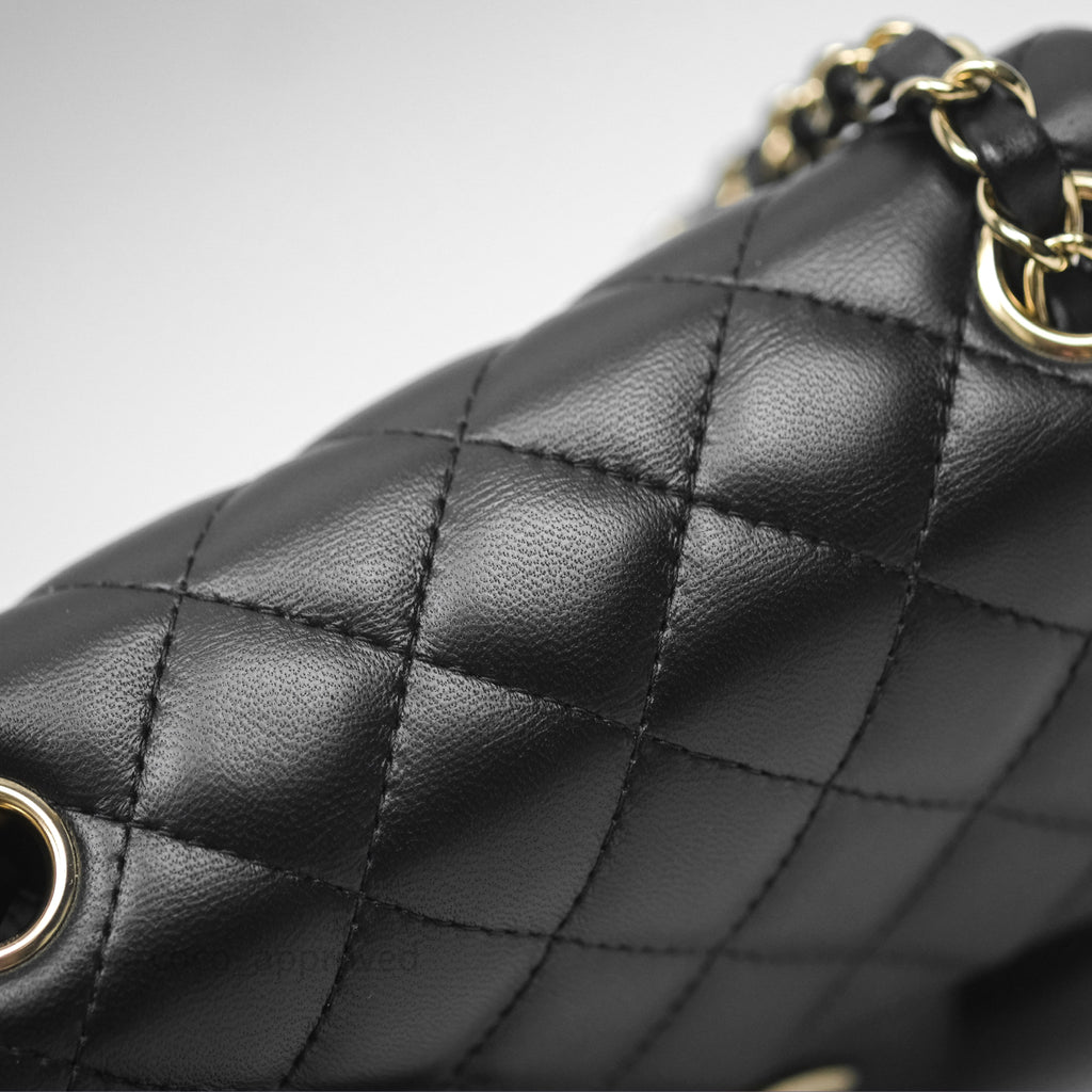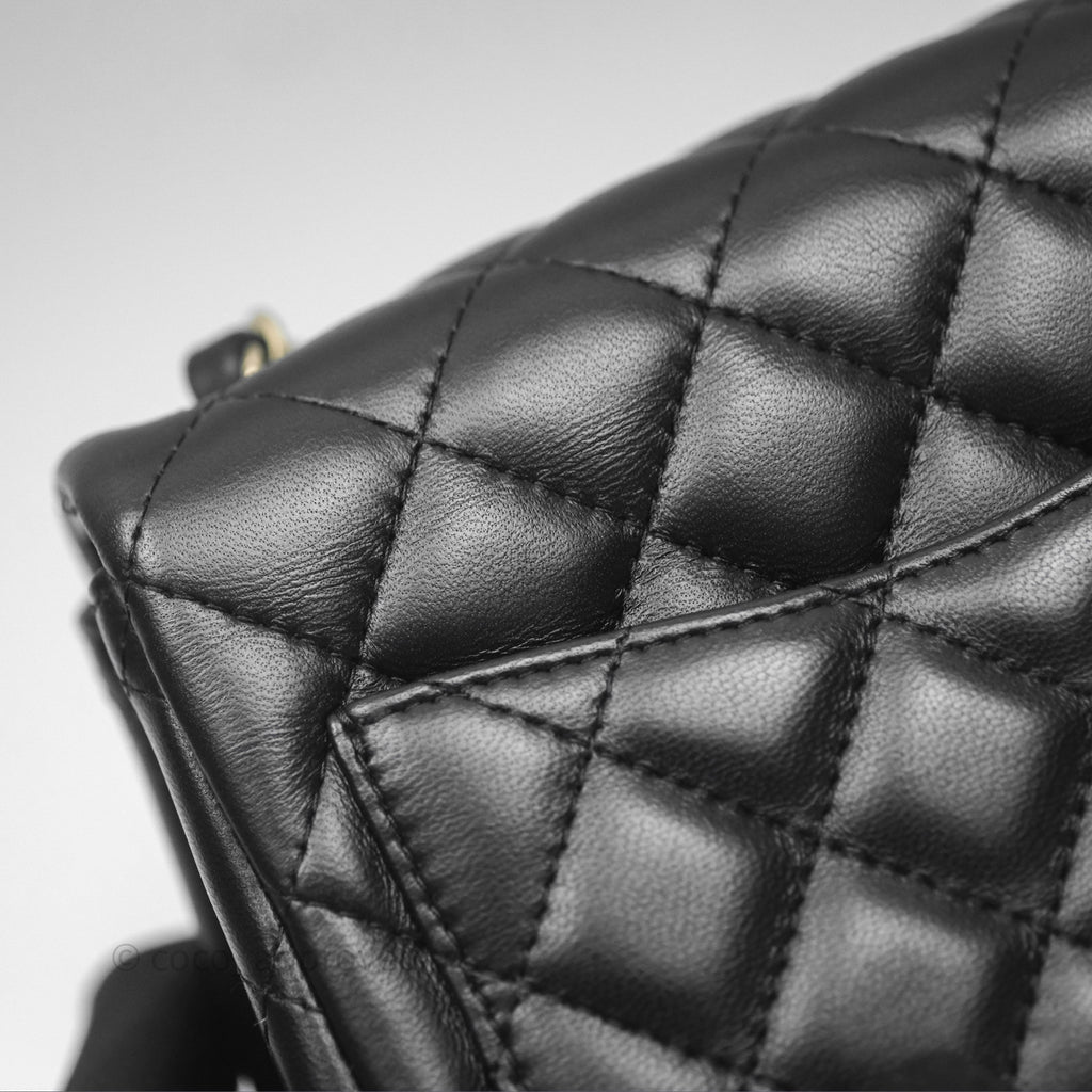 Chanel Mini Square Flap Quilted Black Lambskin Gold Hardware
