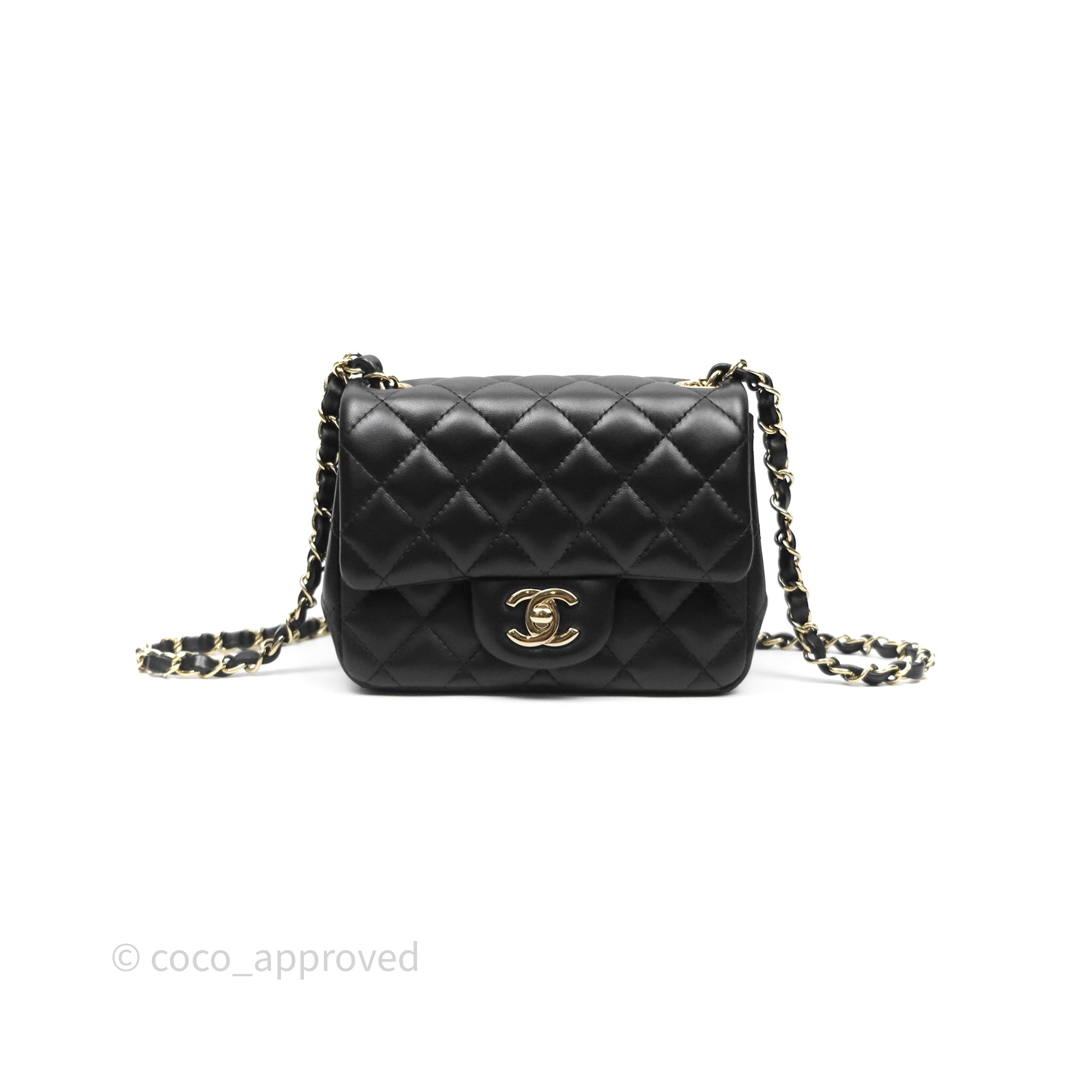 Chanel Mini Square Flap Quilted Black Lambskin Gold Hardware is now sold. Please subscribe for any updates if similar item becomes available.
