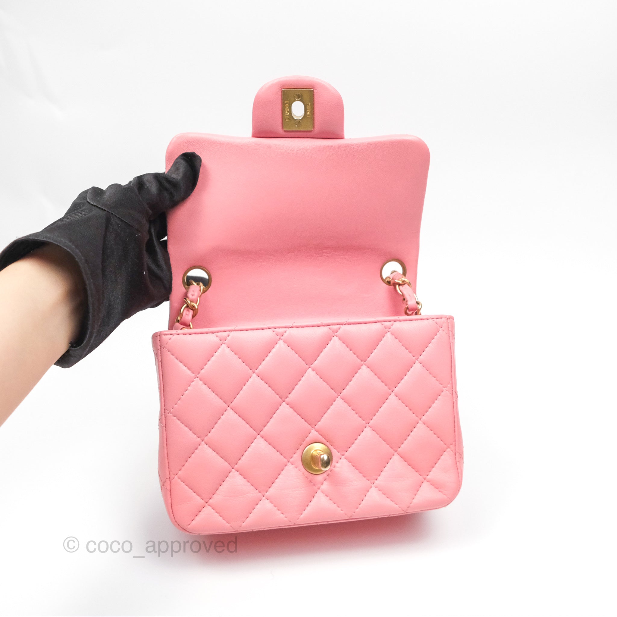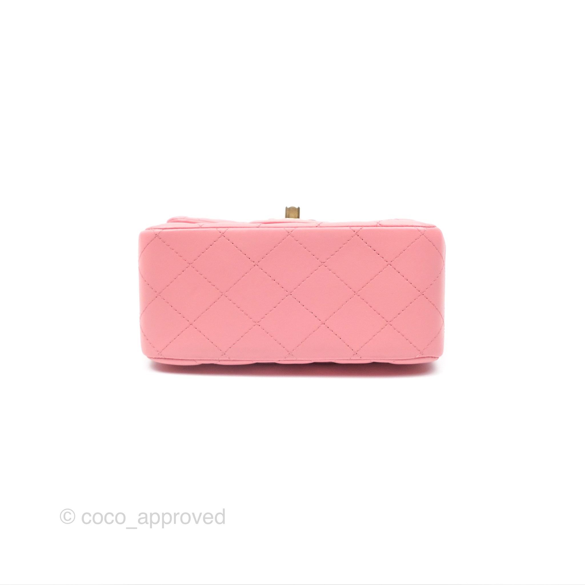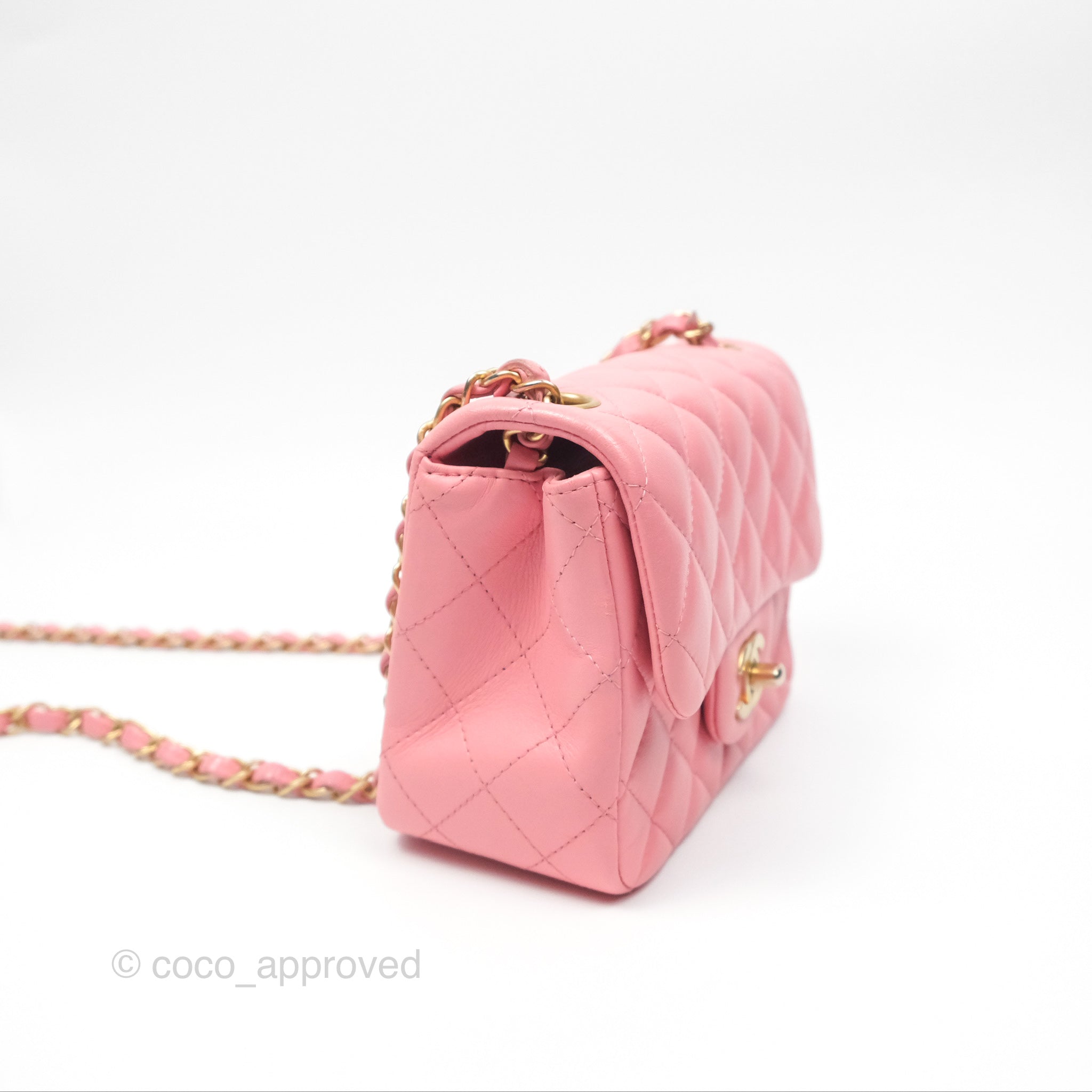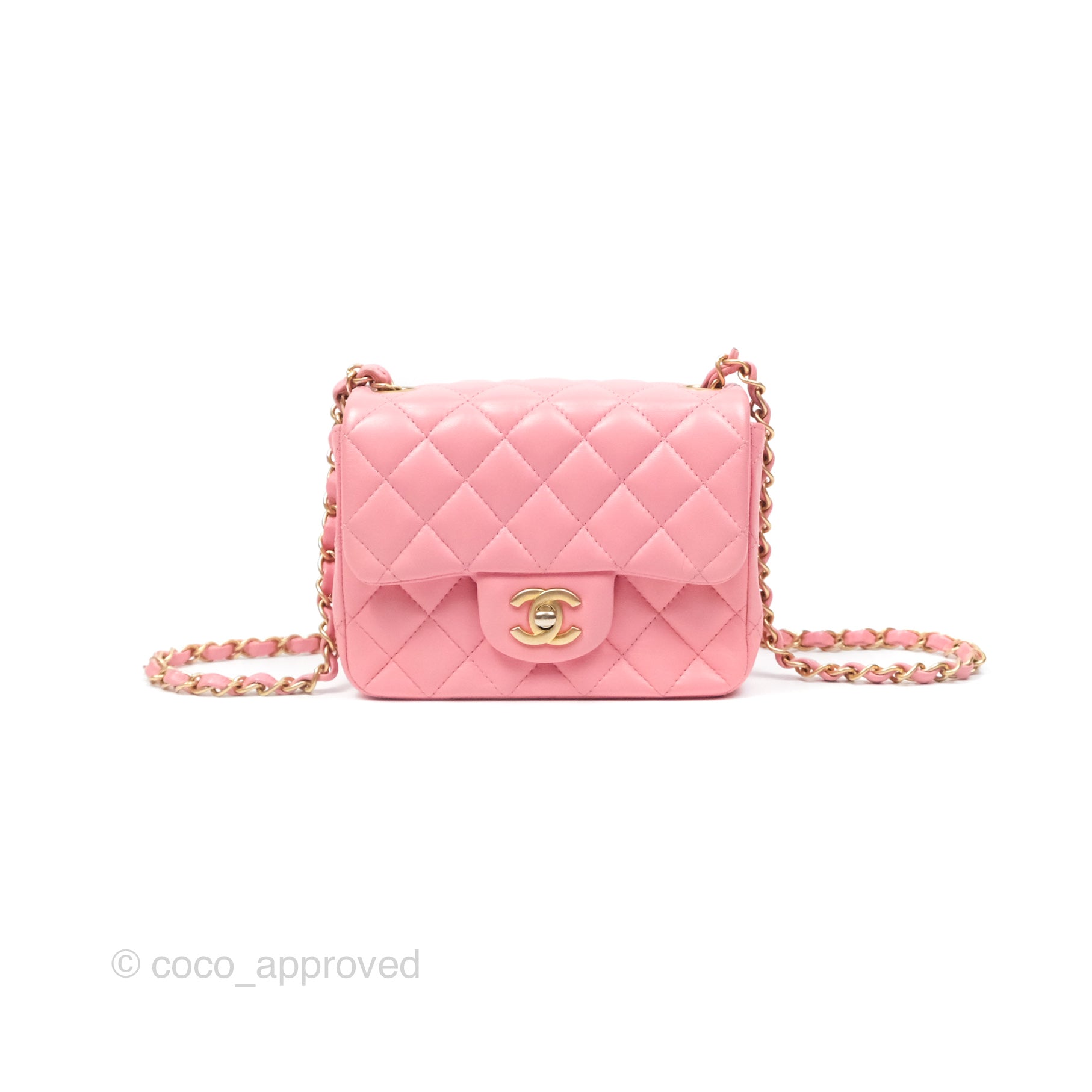 Chanel Mini Square Pink Lambskin Aged Gold Hardware