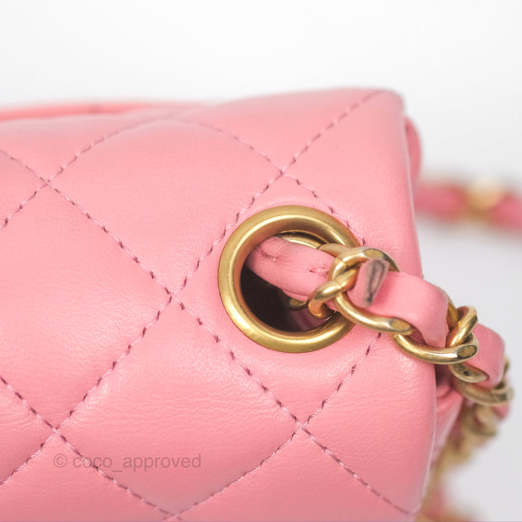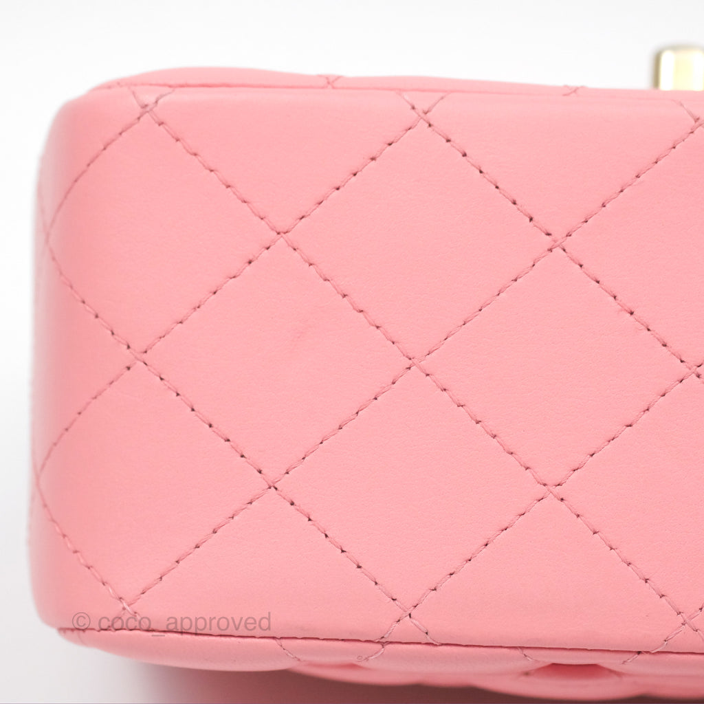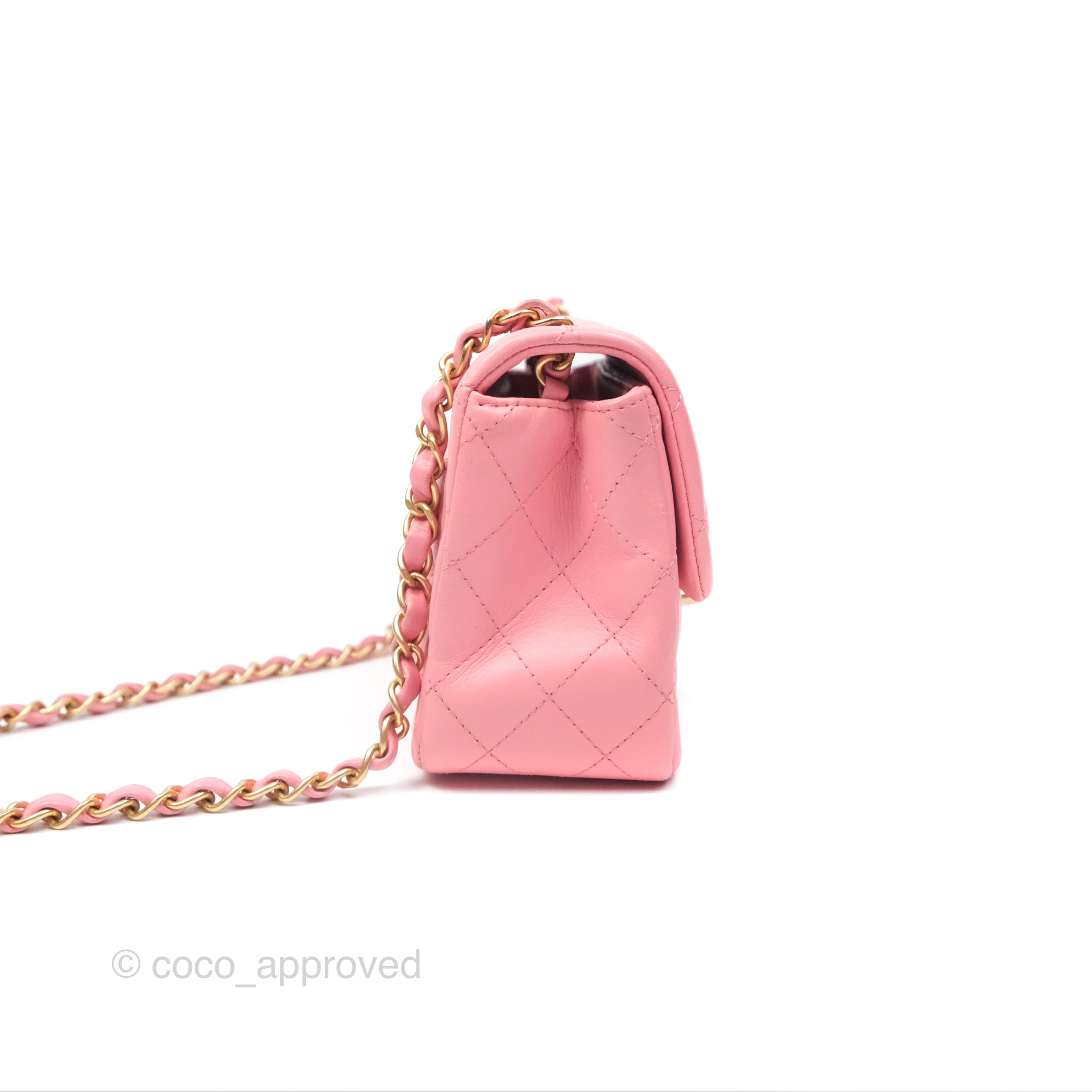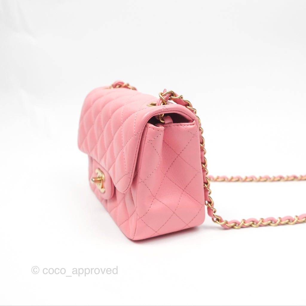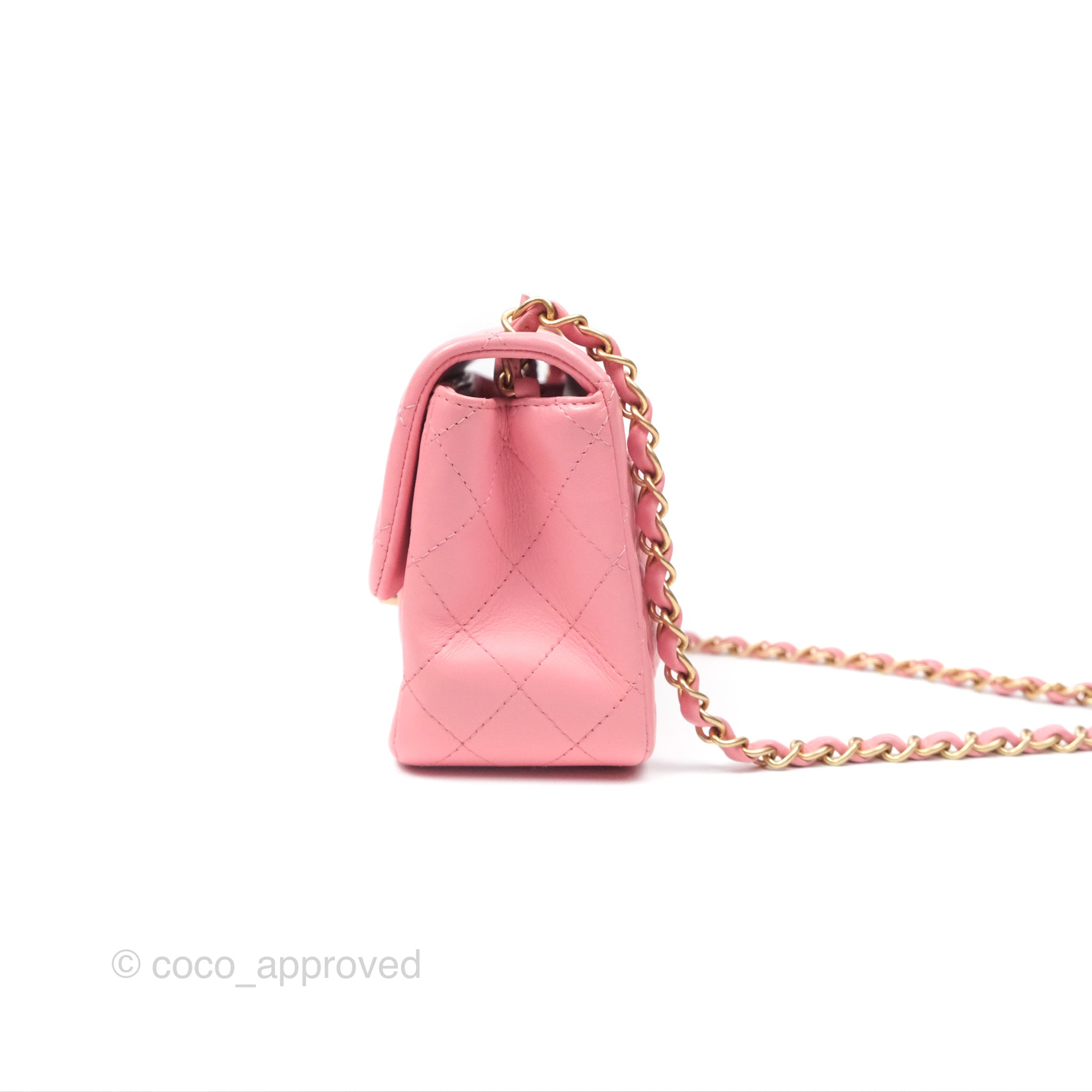 Chanel Mini Square Pink Lambskin Aged Gold Hardware