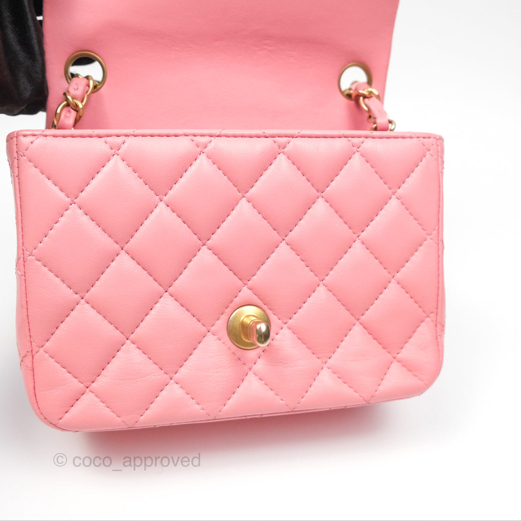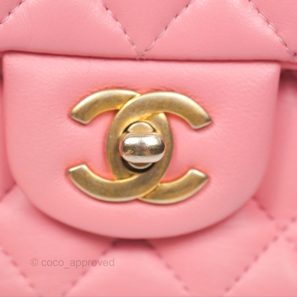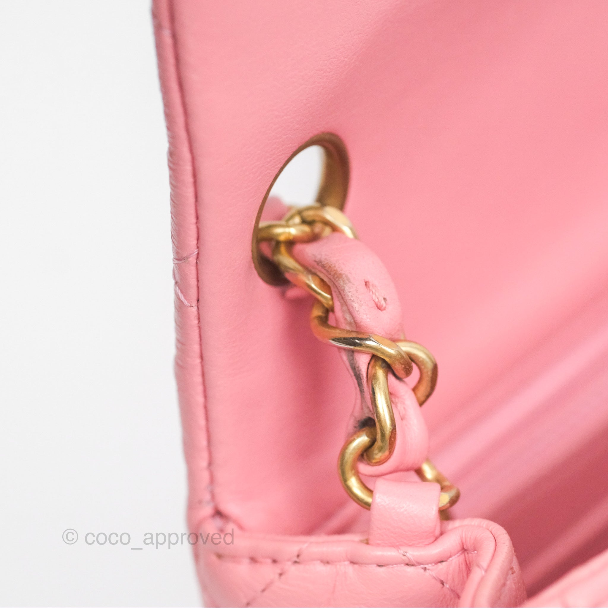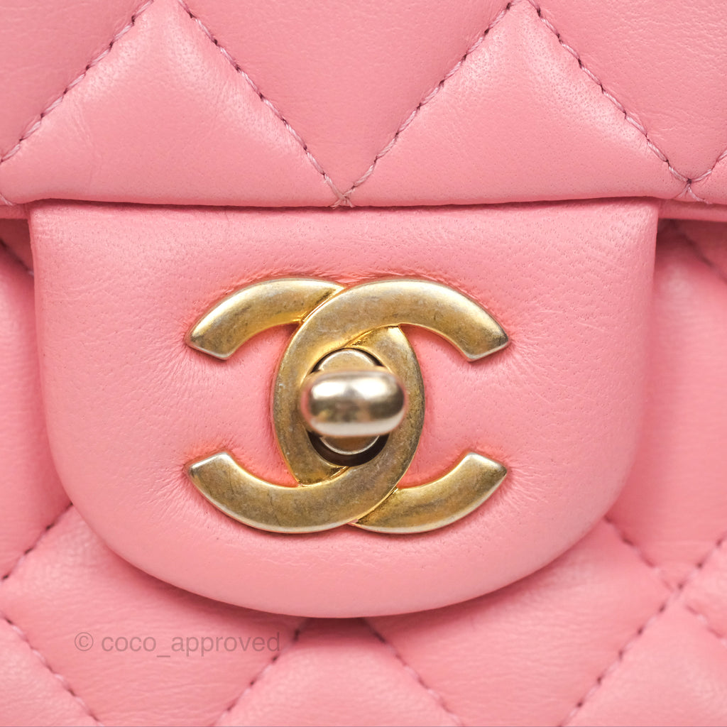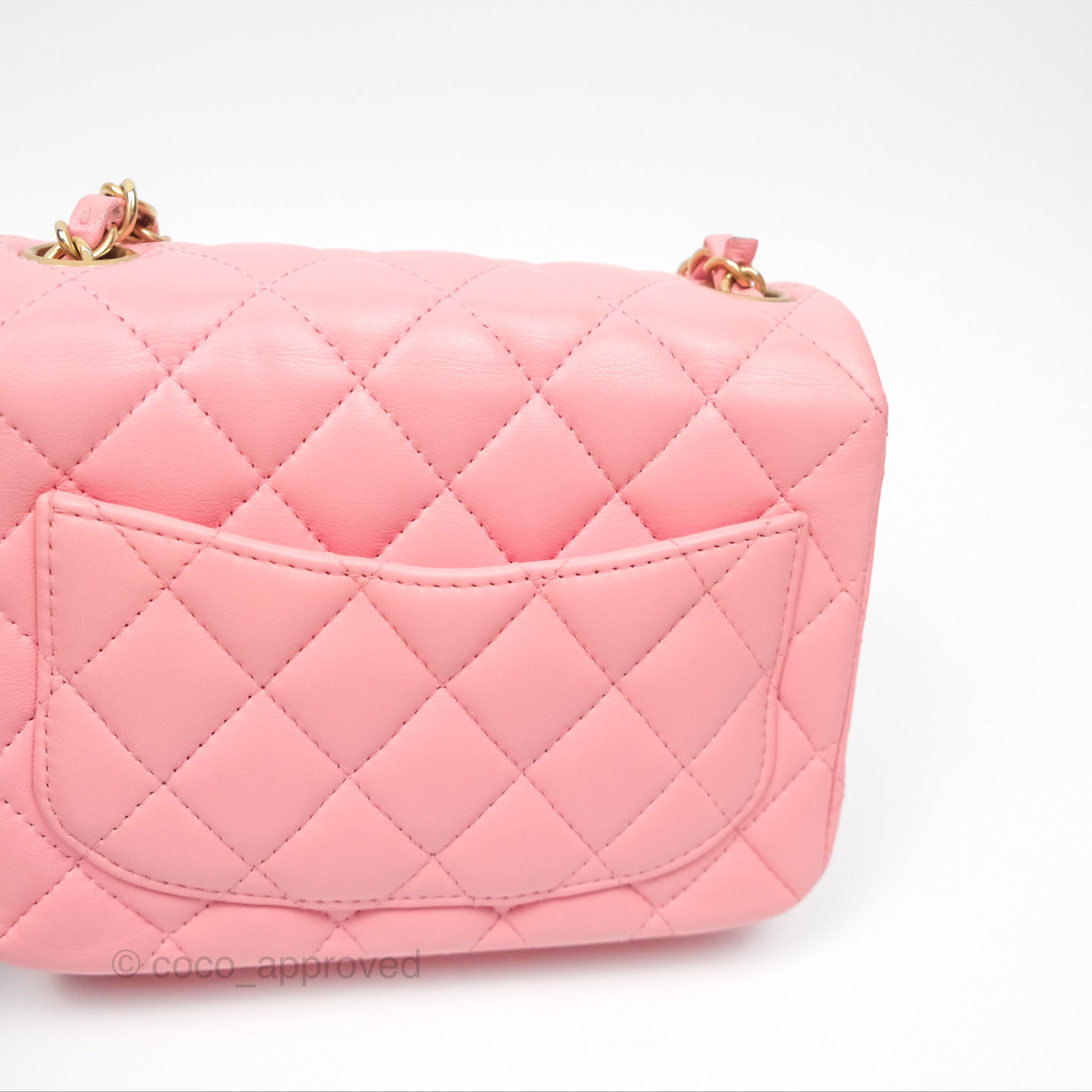 Chanel Mini Square Pink Lambskin Aged Gold Hardware