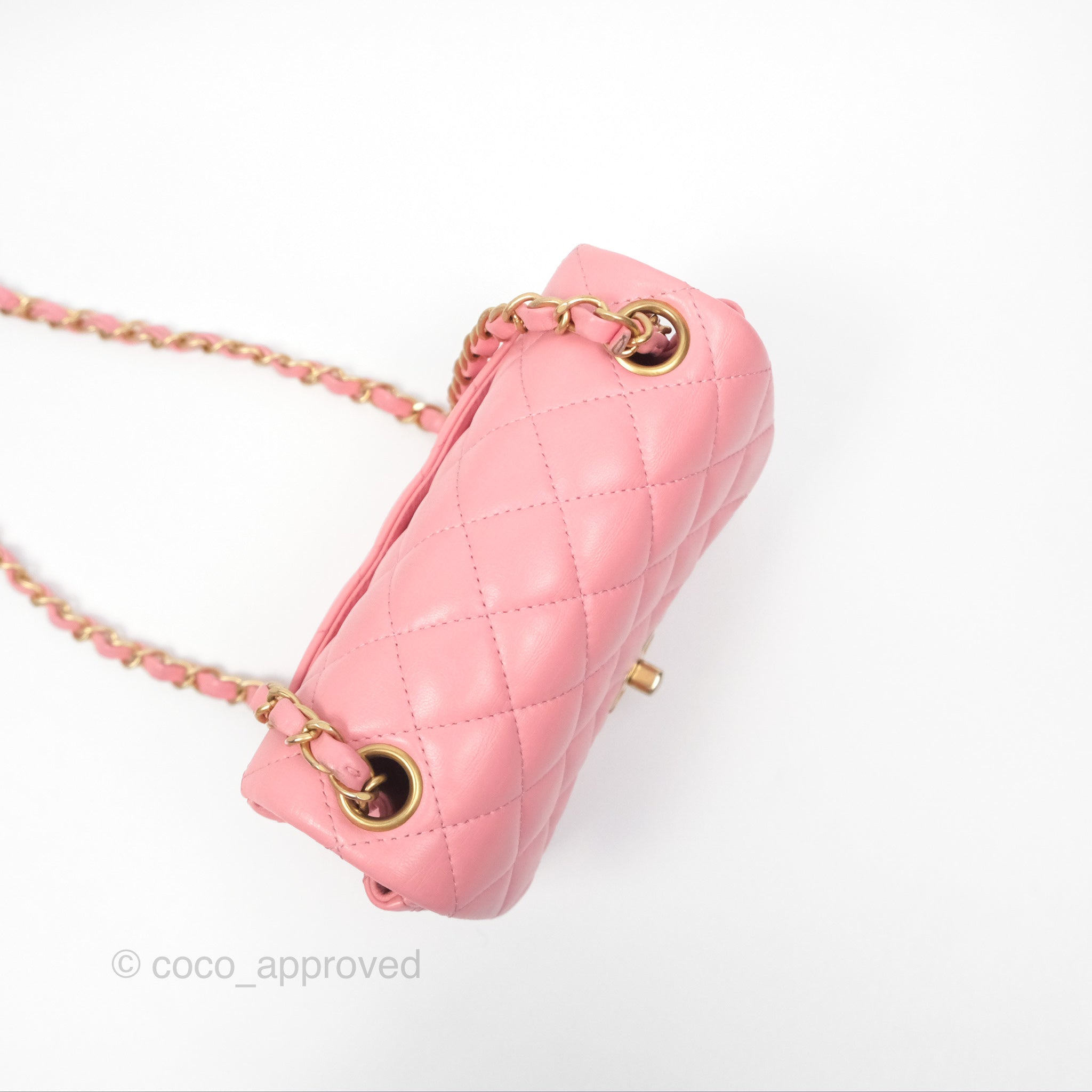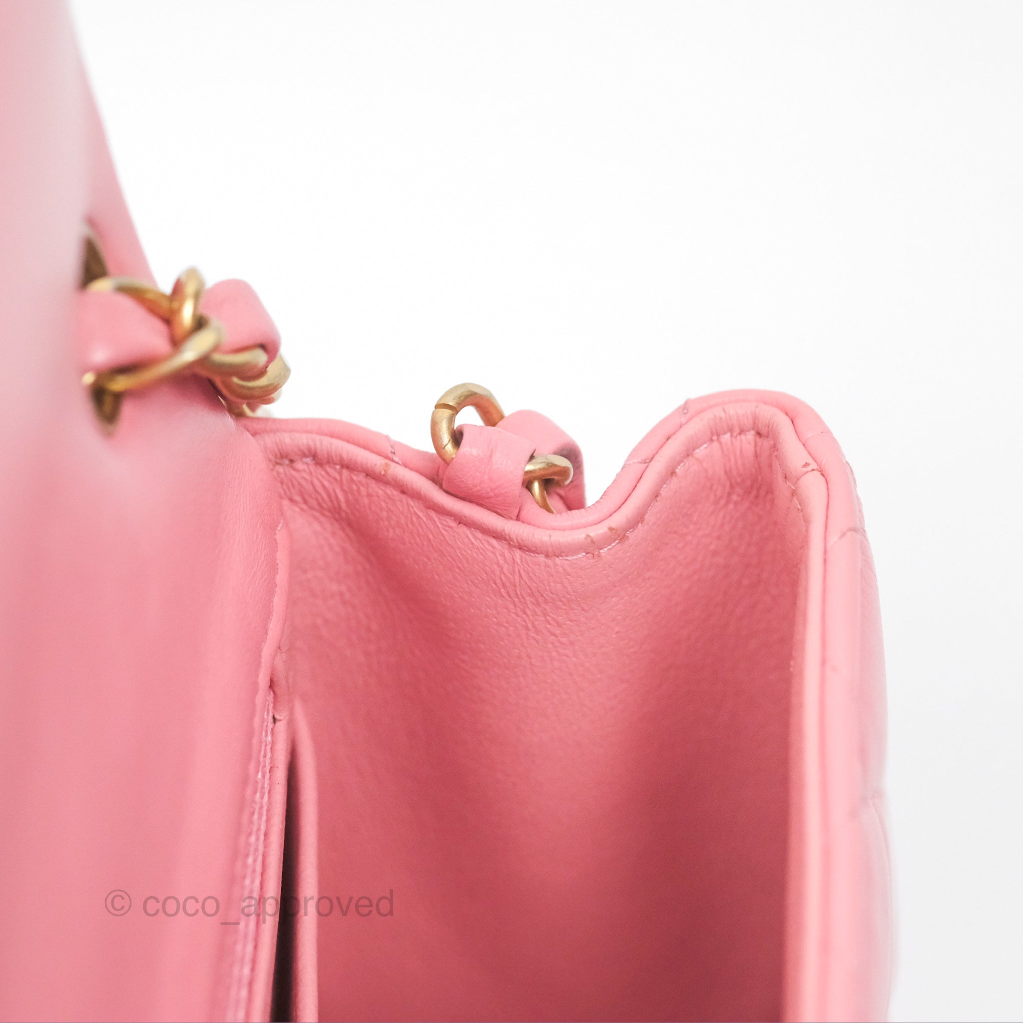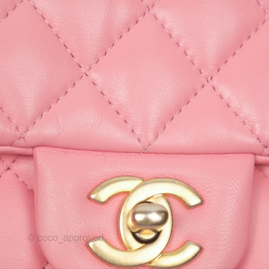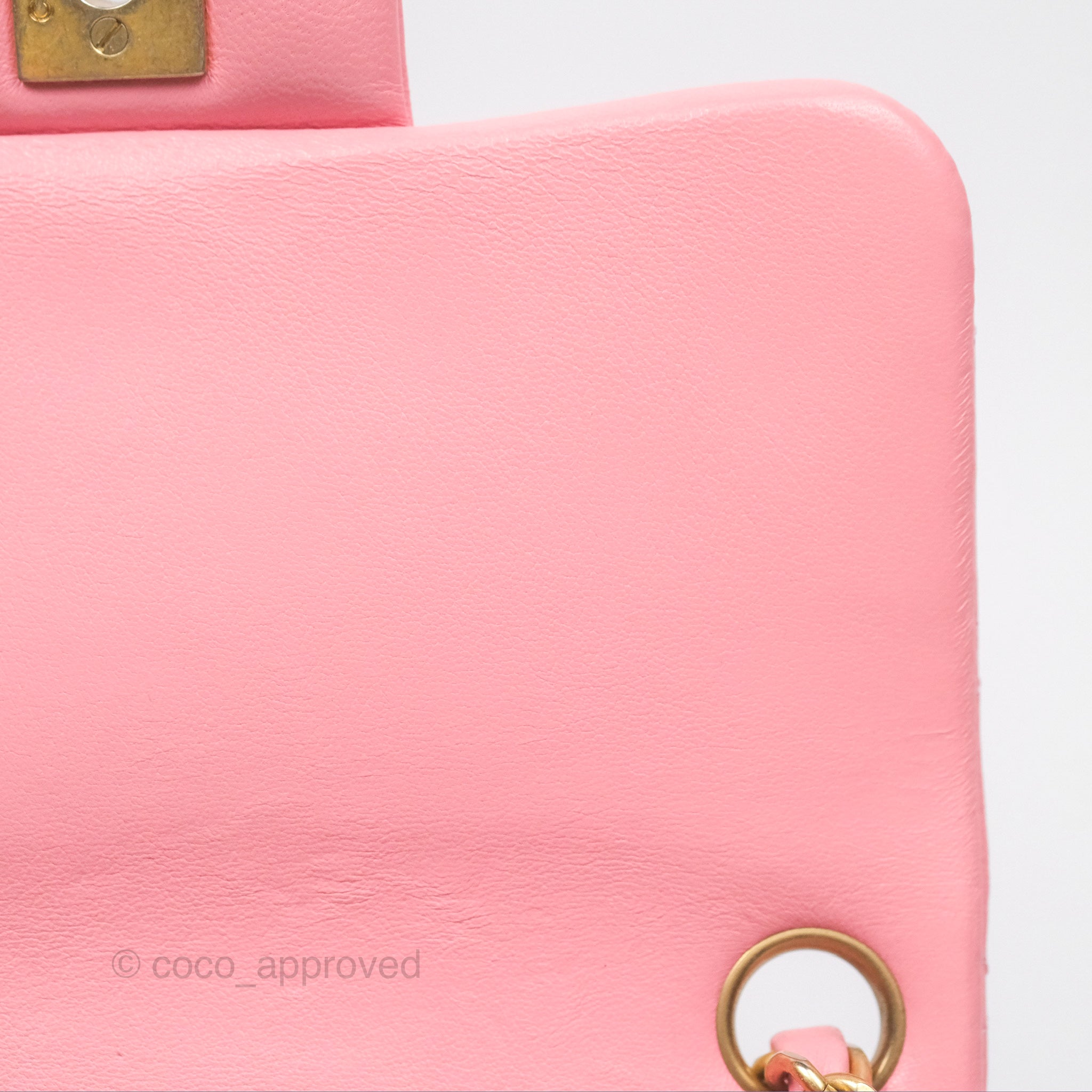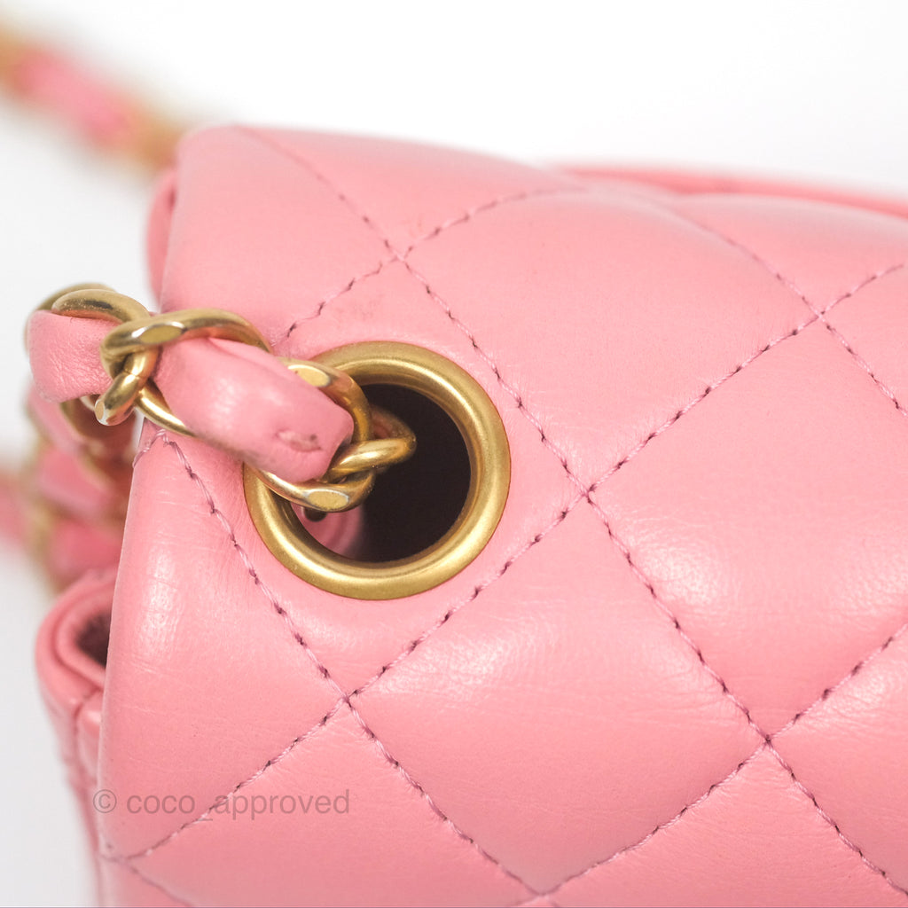 Chanel Mini Square Pink Lambskin Aged Gold Hardware