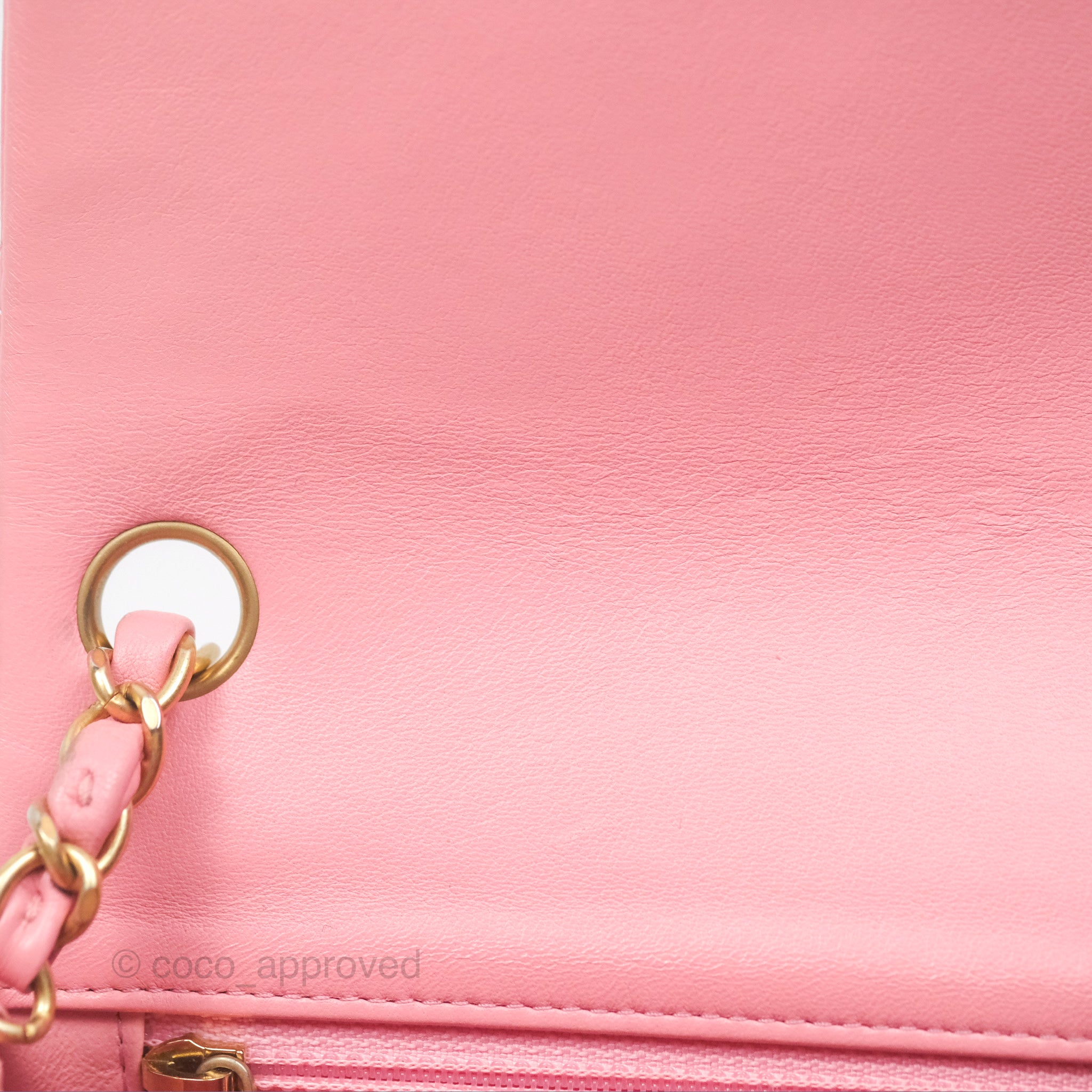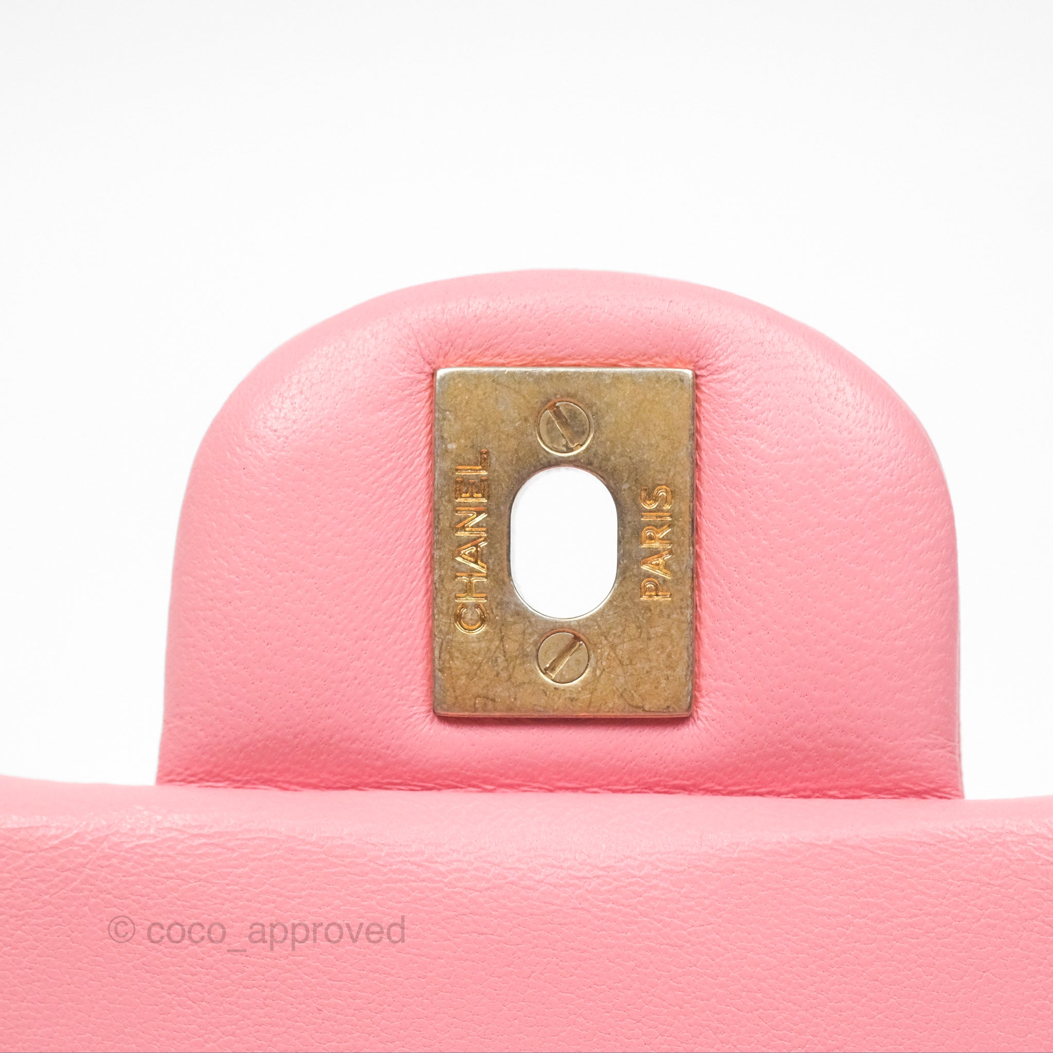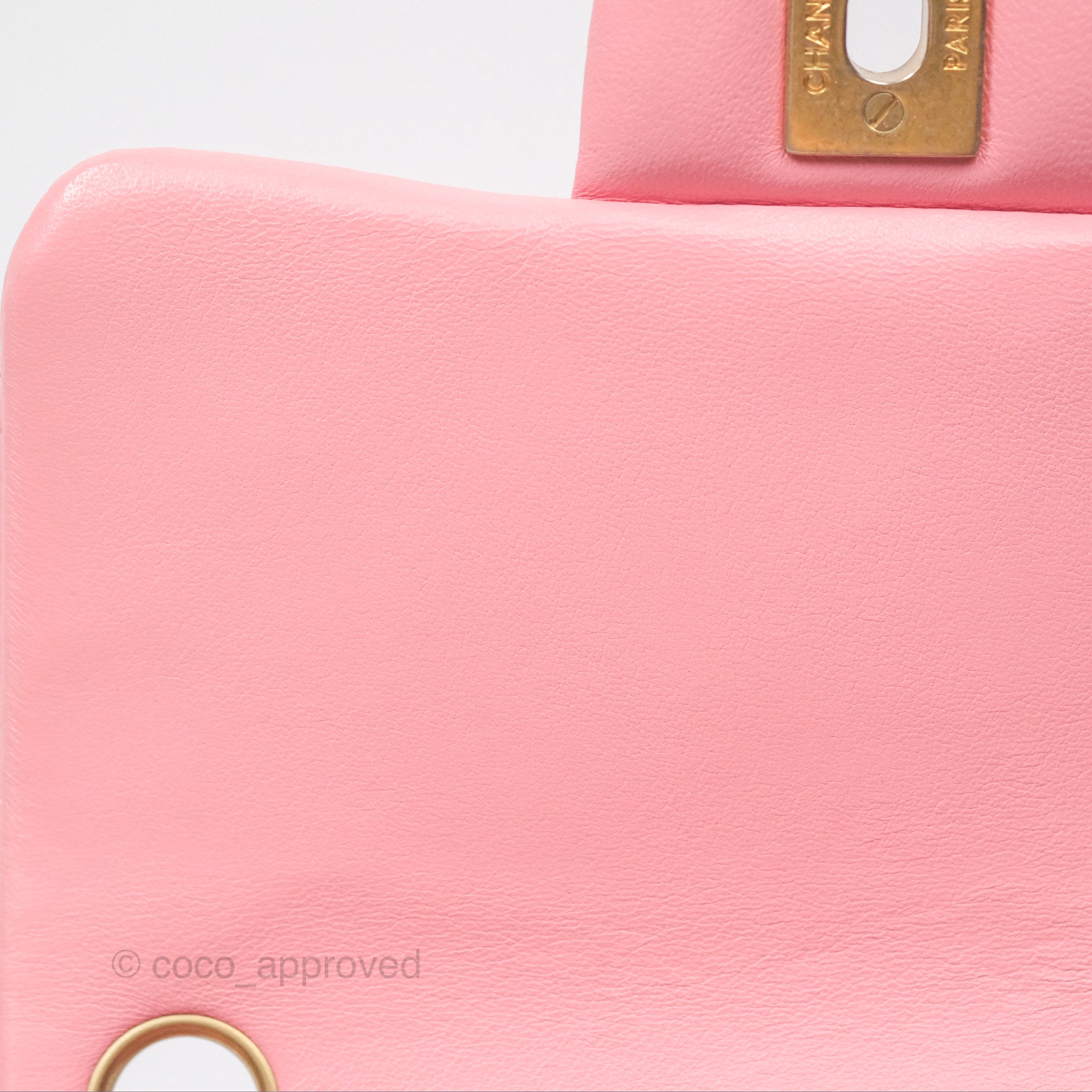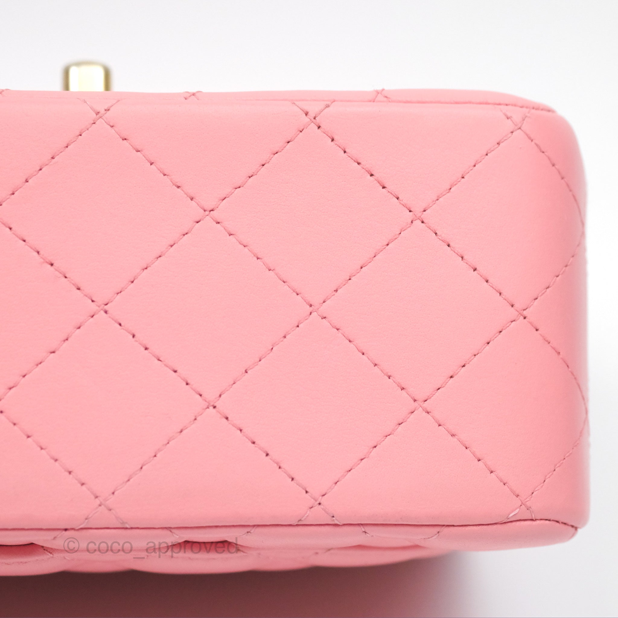 Chanel Mini Square Pink Lambskin Aged Gold Hardware