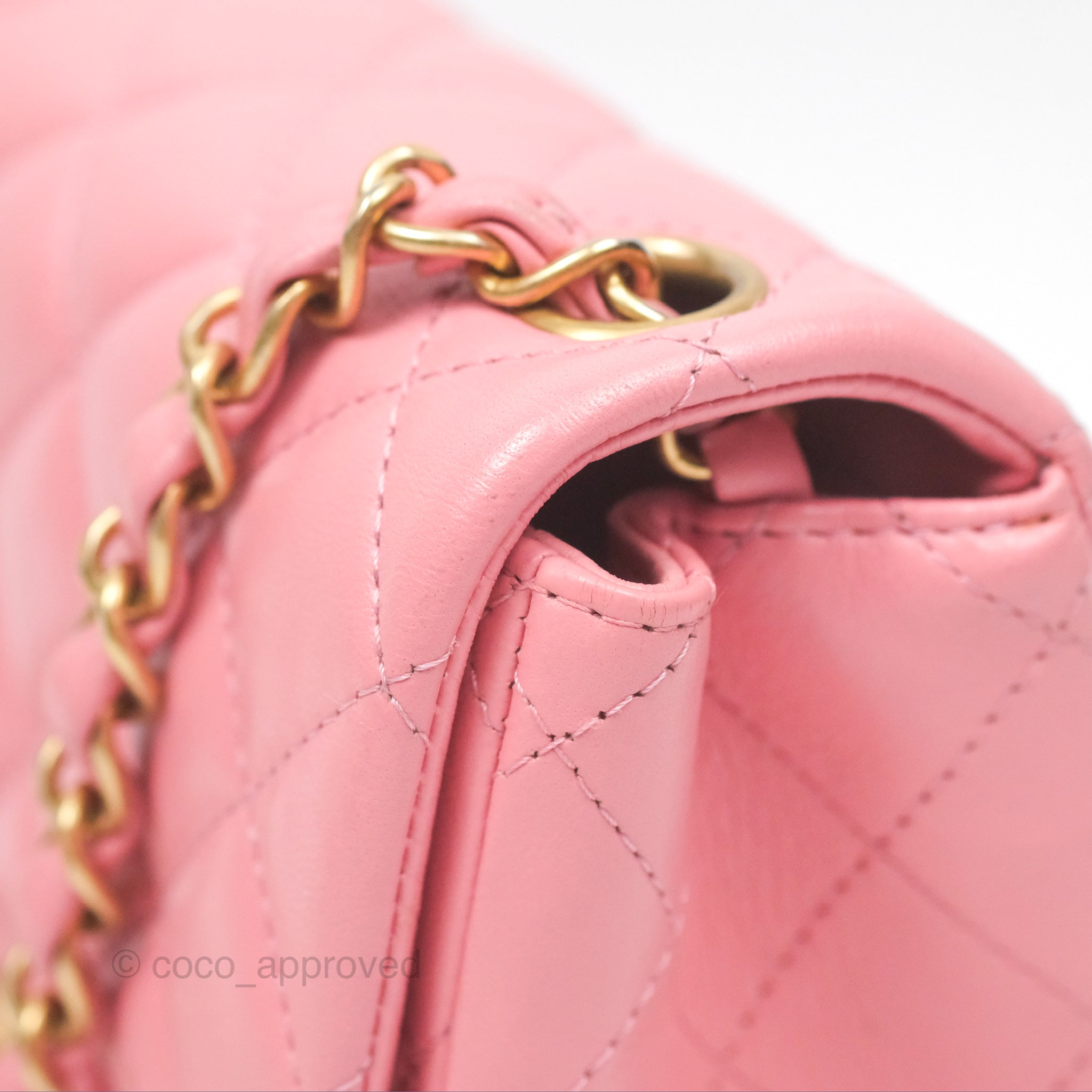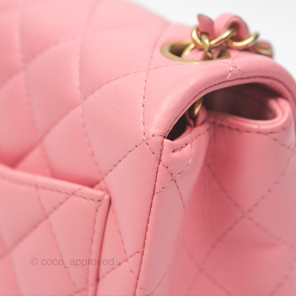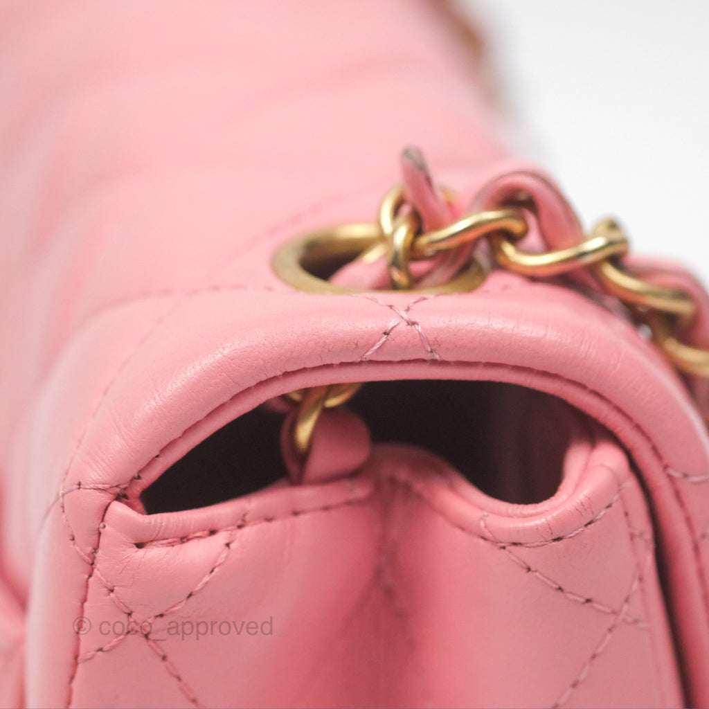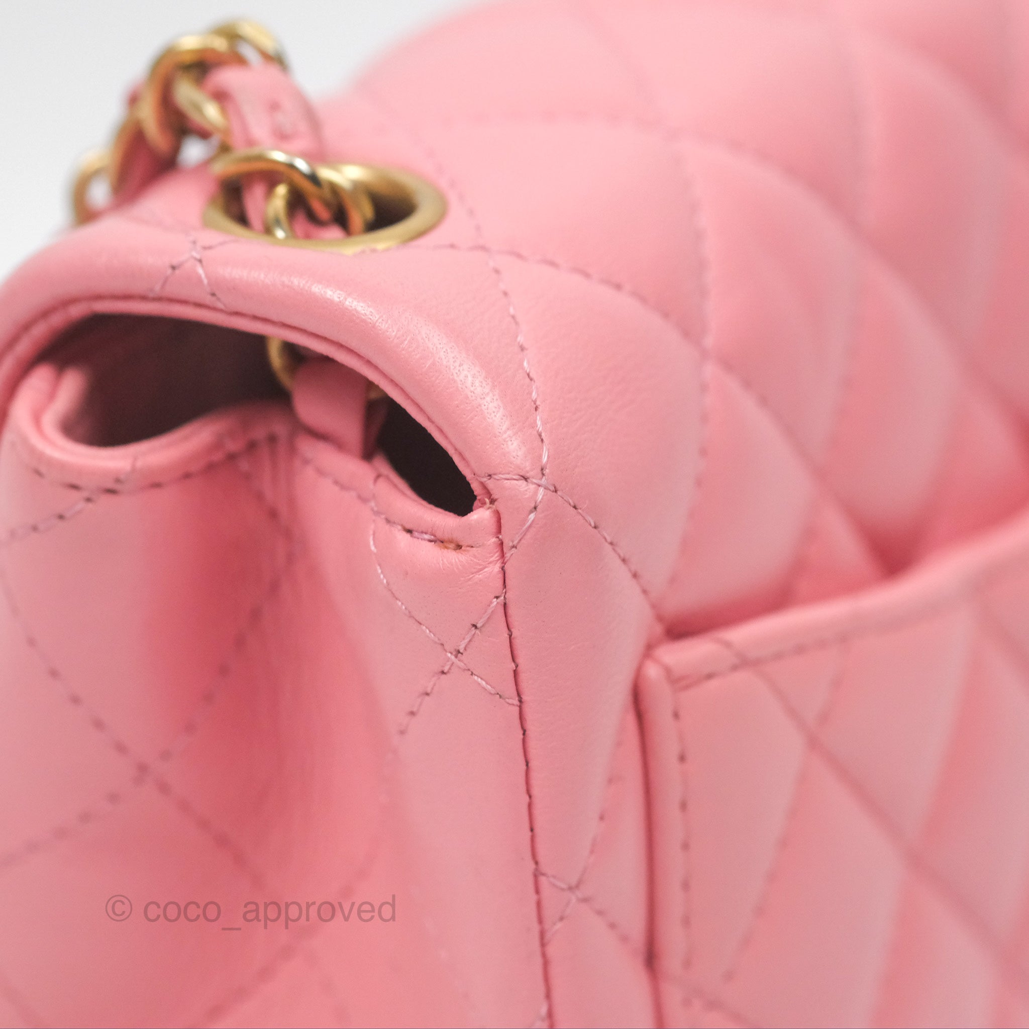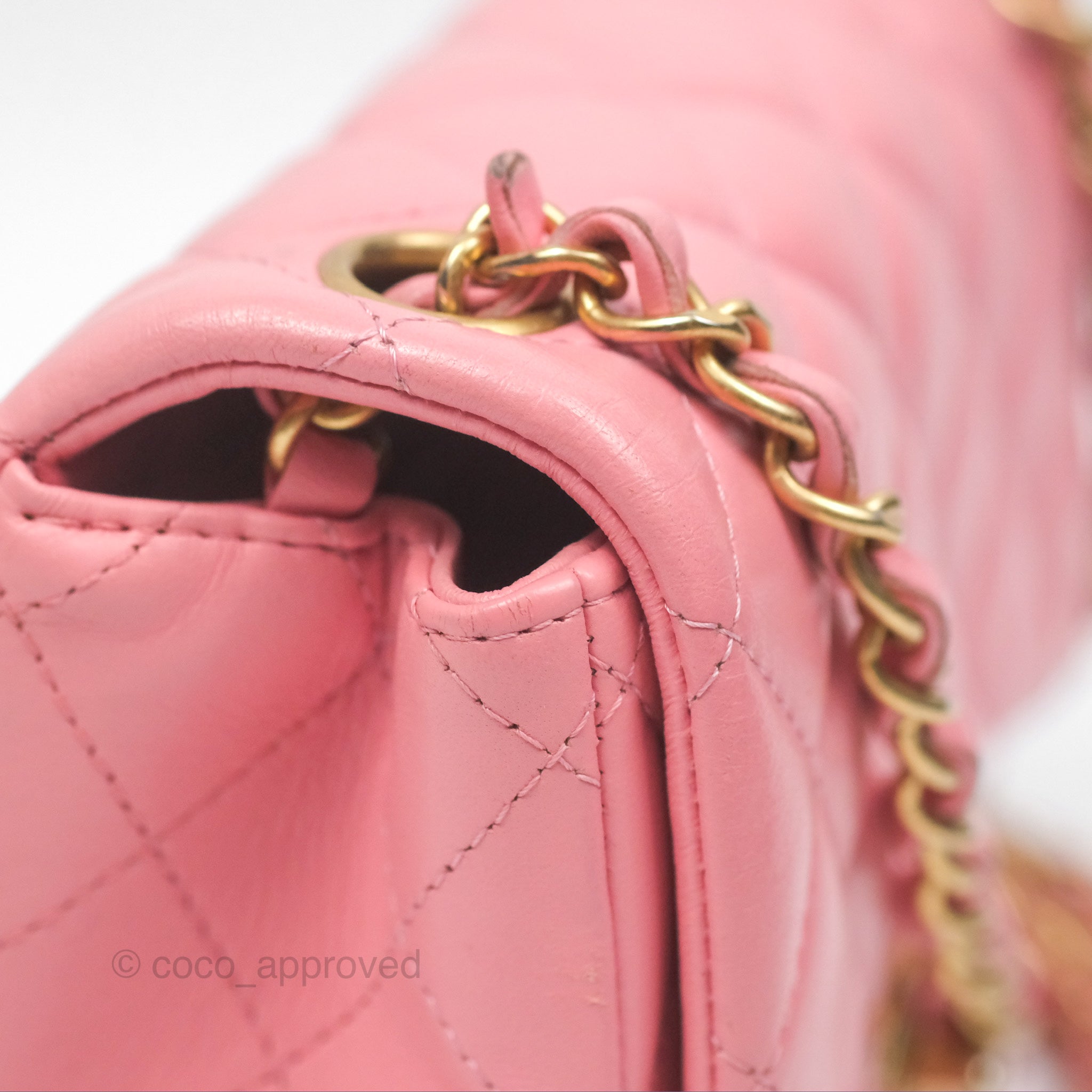 Chanel Mini Square Pink Lambskin Aged Gold Hardware