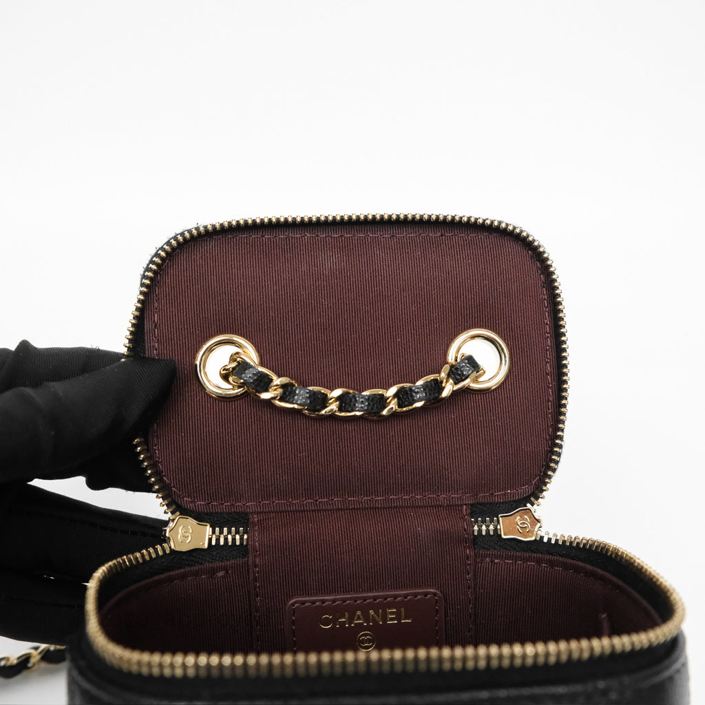 Chanel Mini Vanity With Chain Black Caviar Gold Hardware