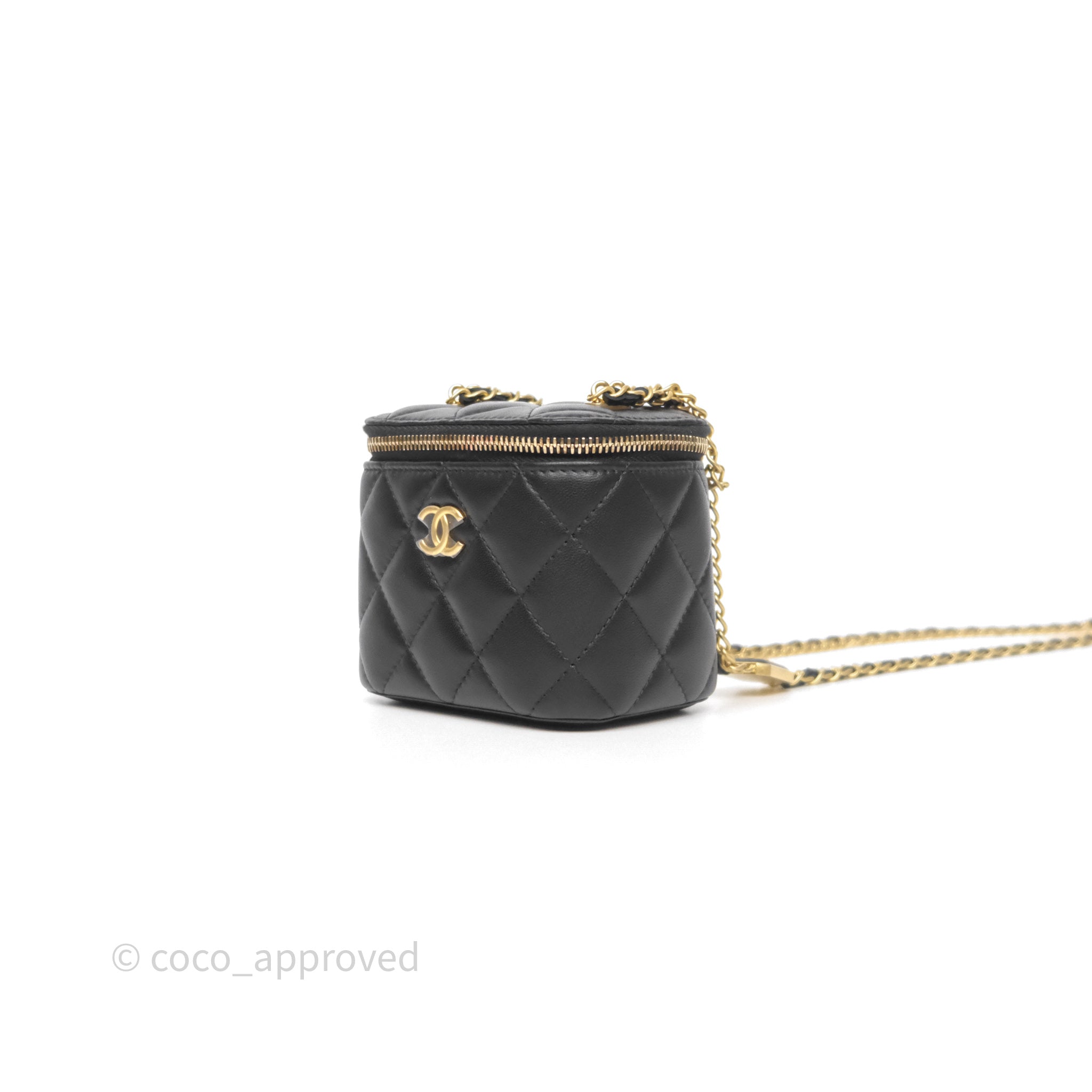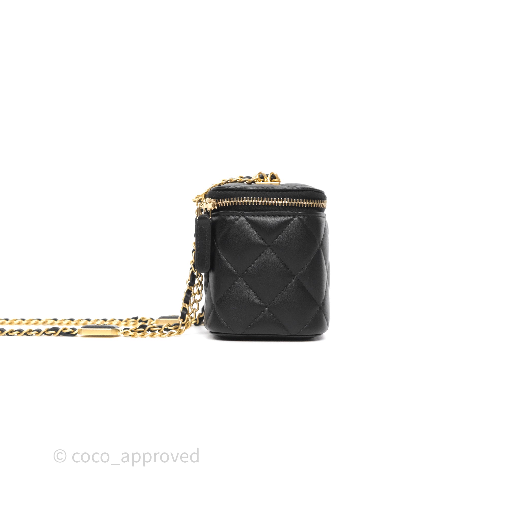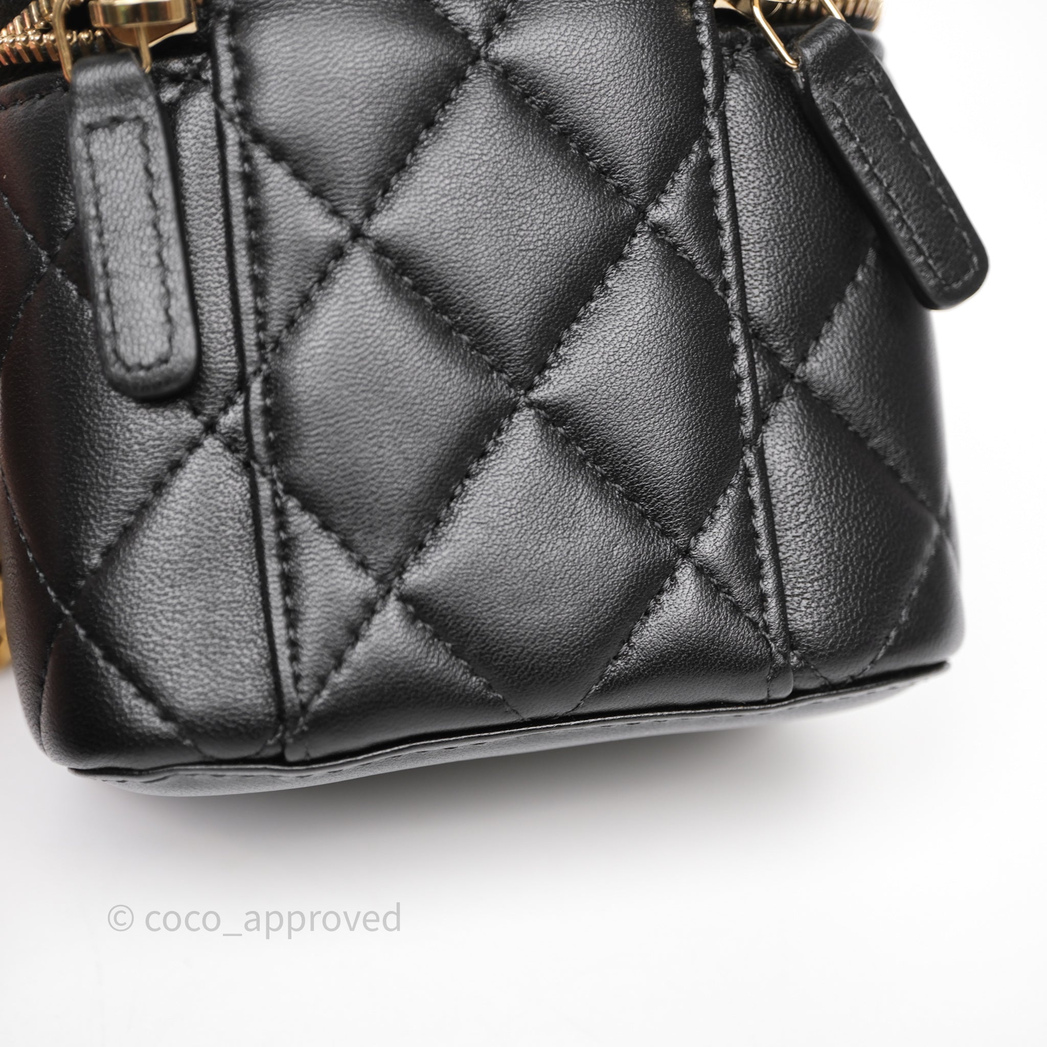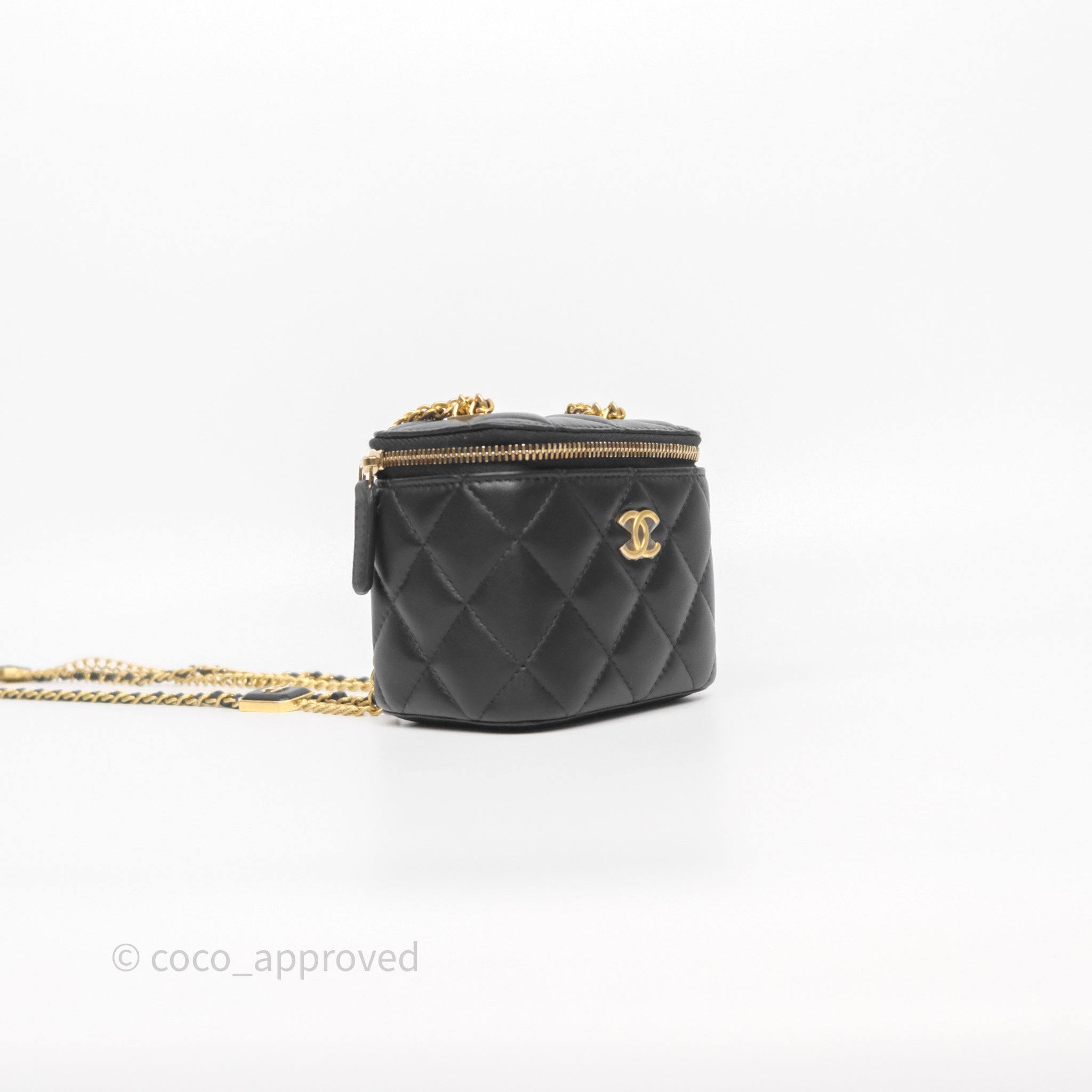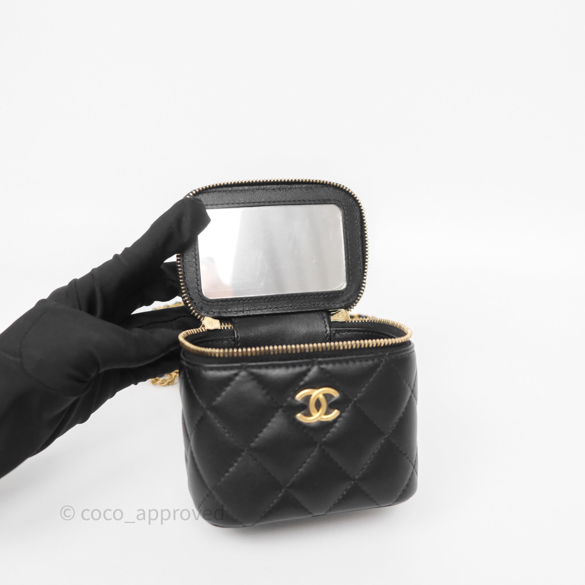 Chanel Mini Vanity With Double Chain Black Lambskin Aged Gold Hardware