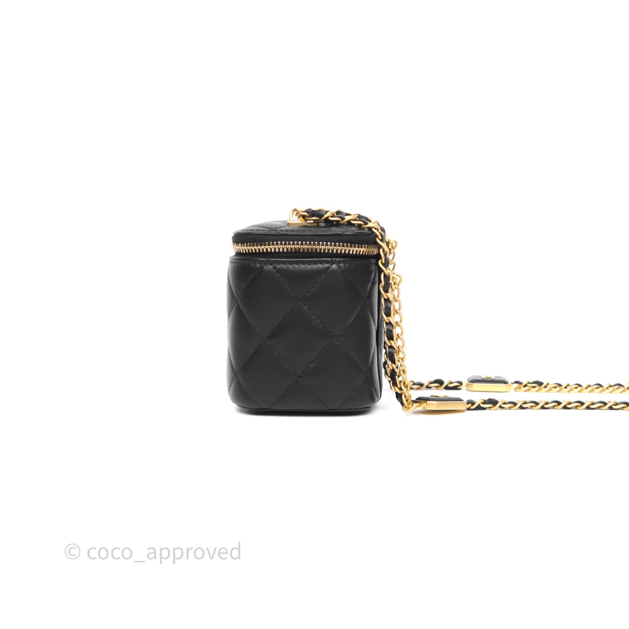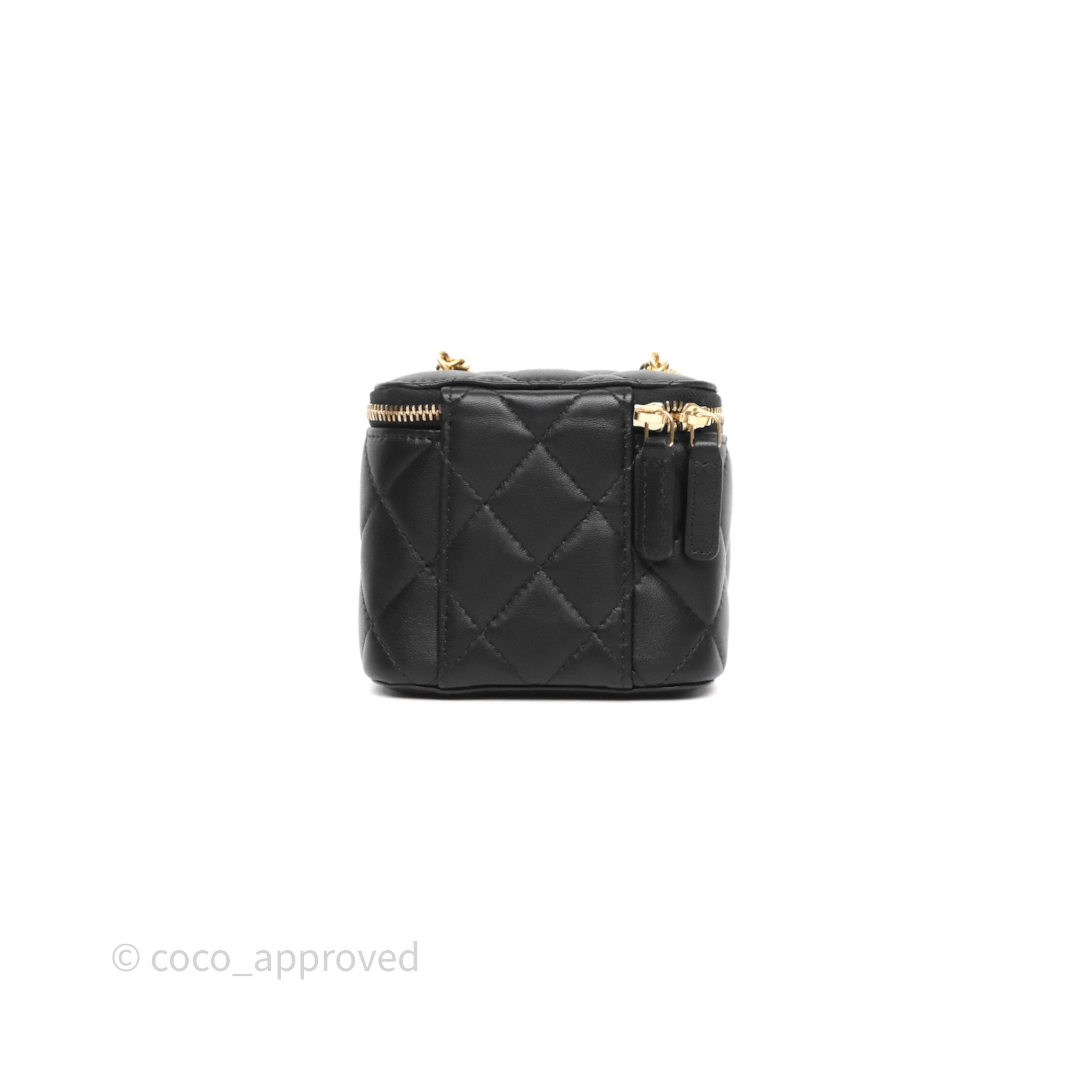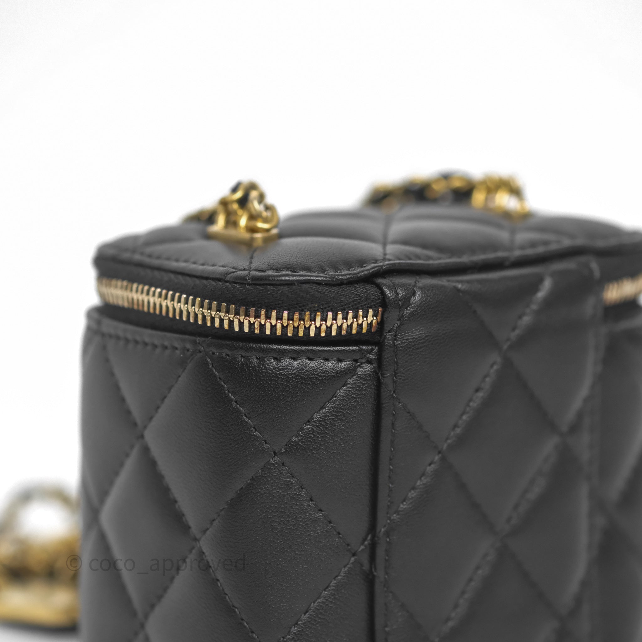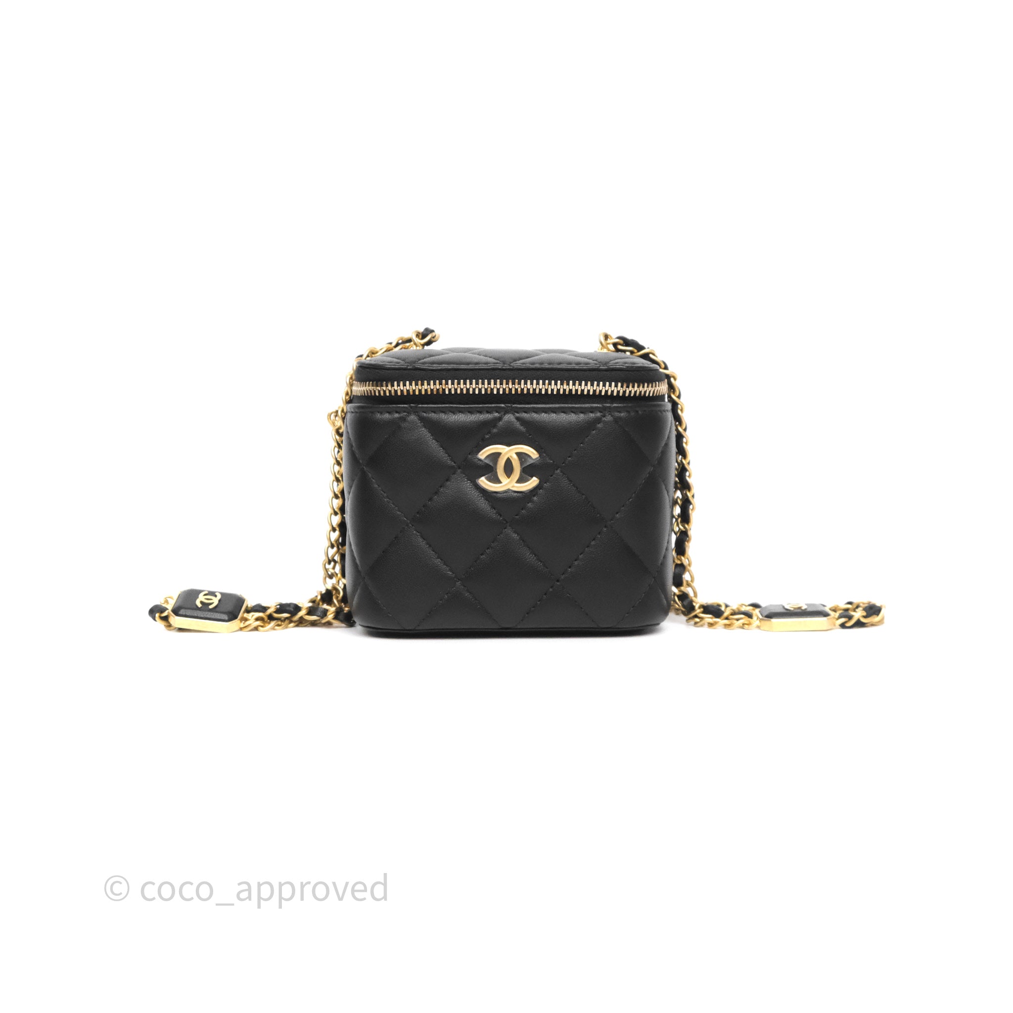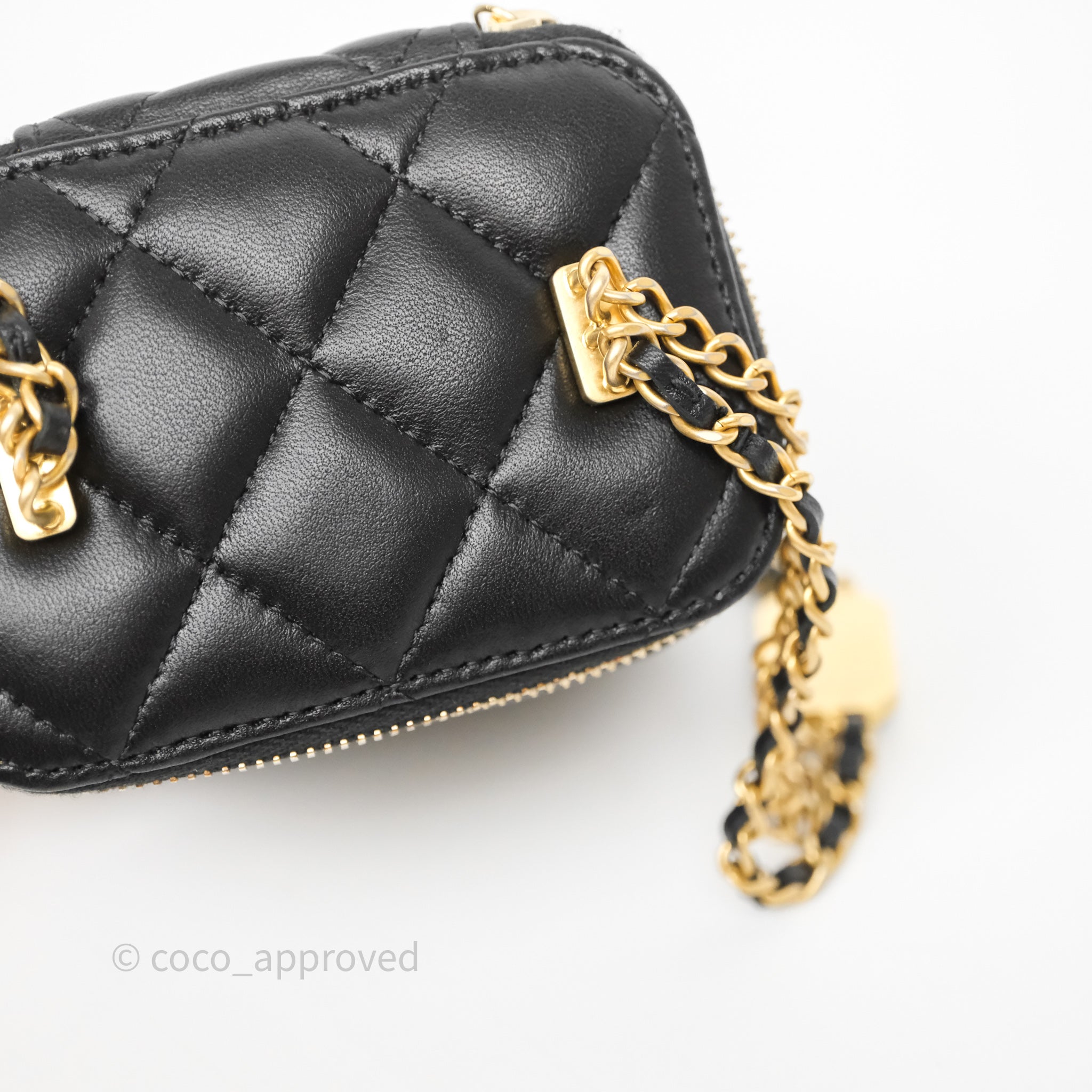 Chanel Mini Vanity With Double Chain Black Lambskin Aged Gold Hardware