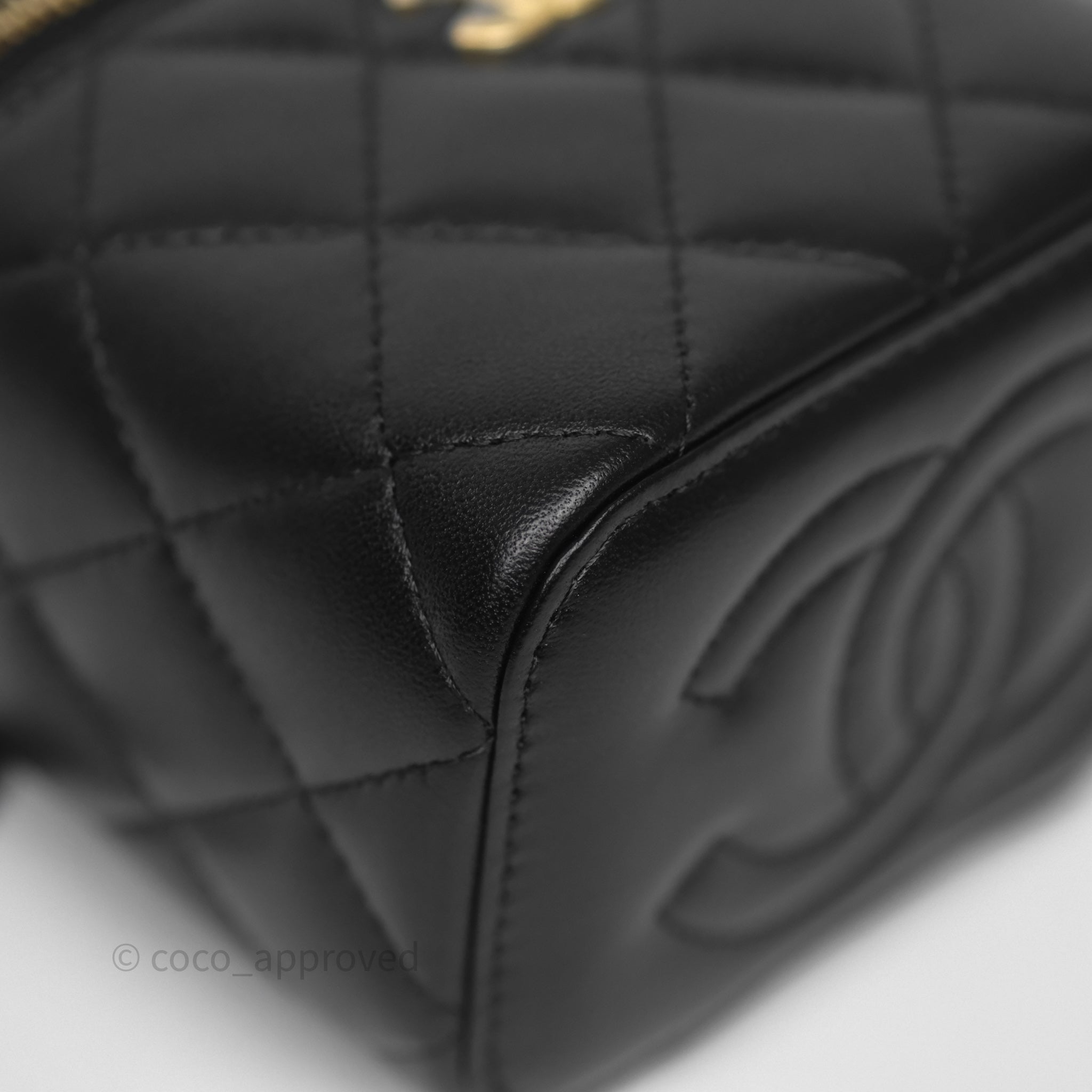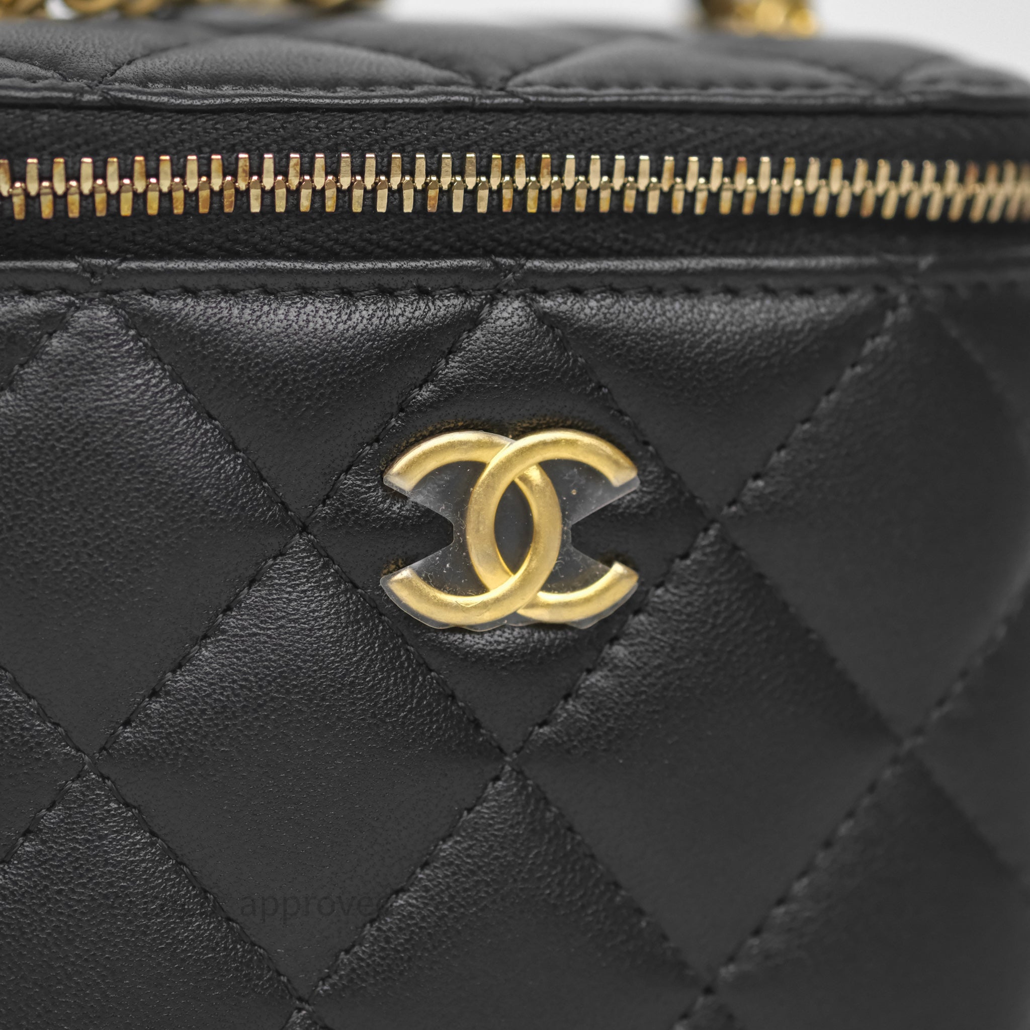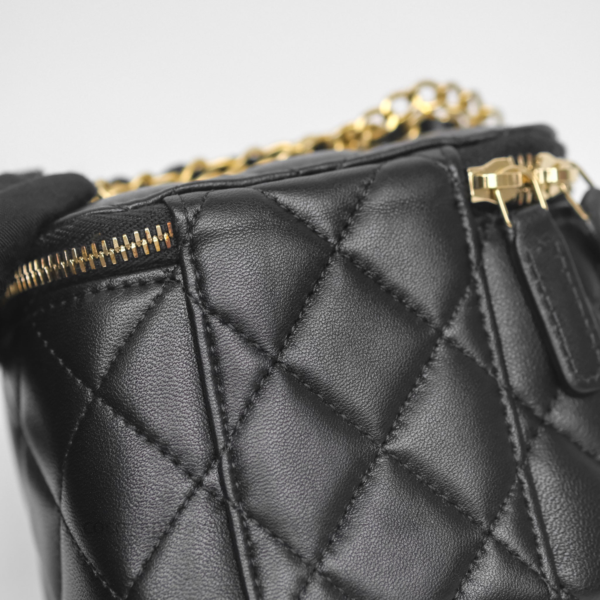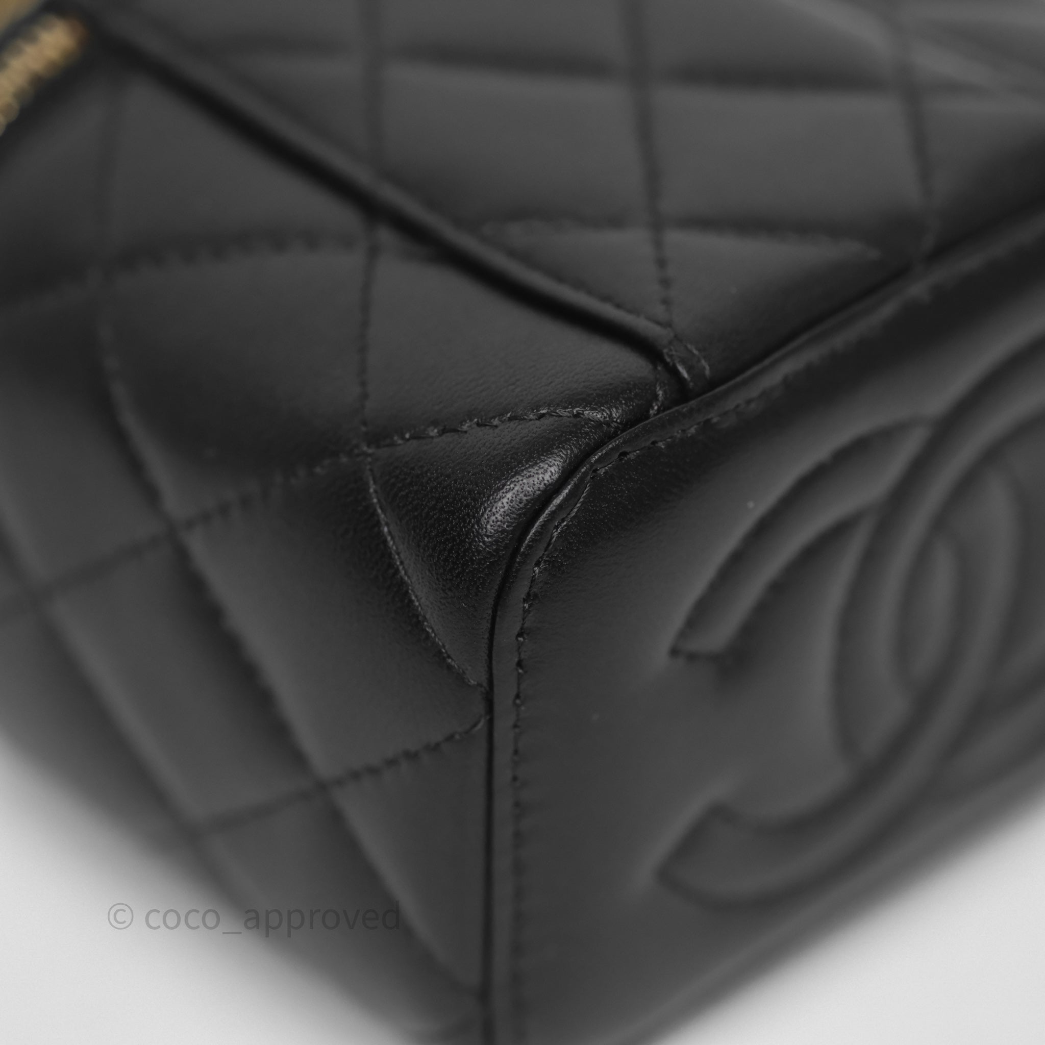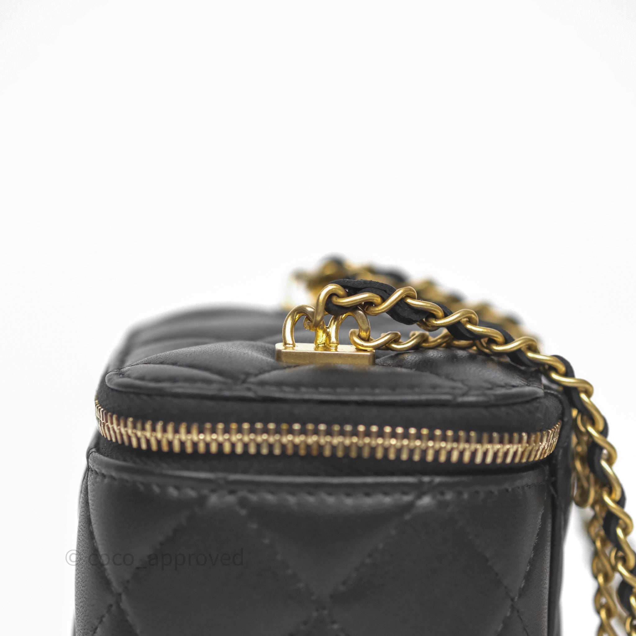 Chanel Mini Vanity With Double Chain Black Lambskin Aged Gold Hardware