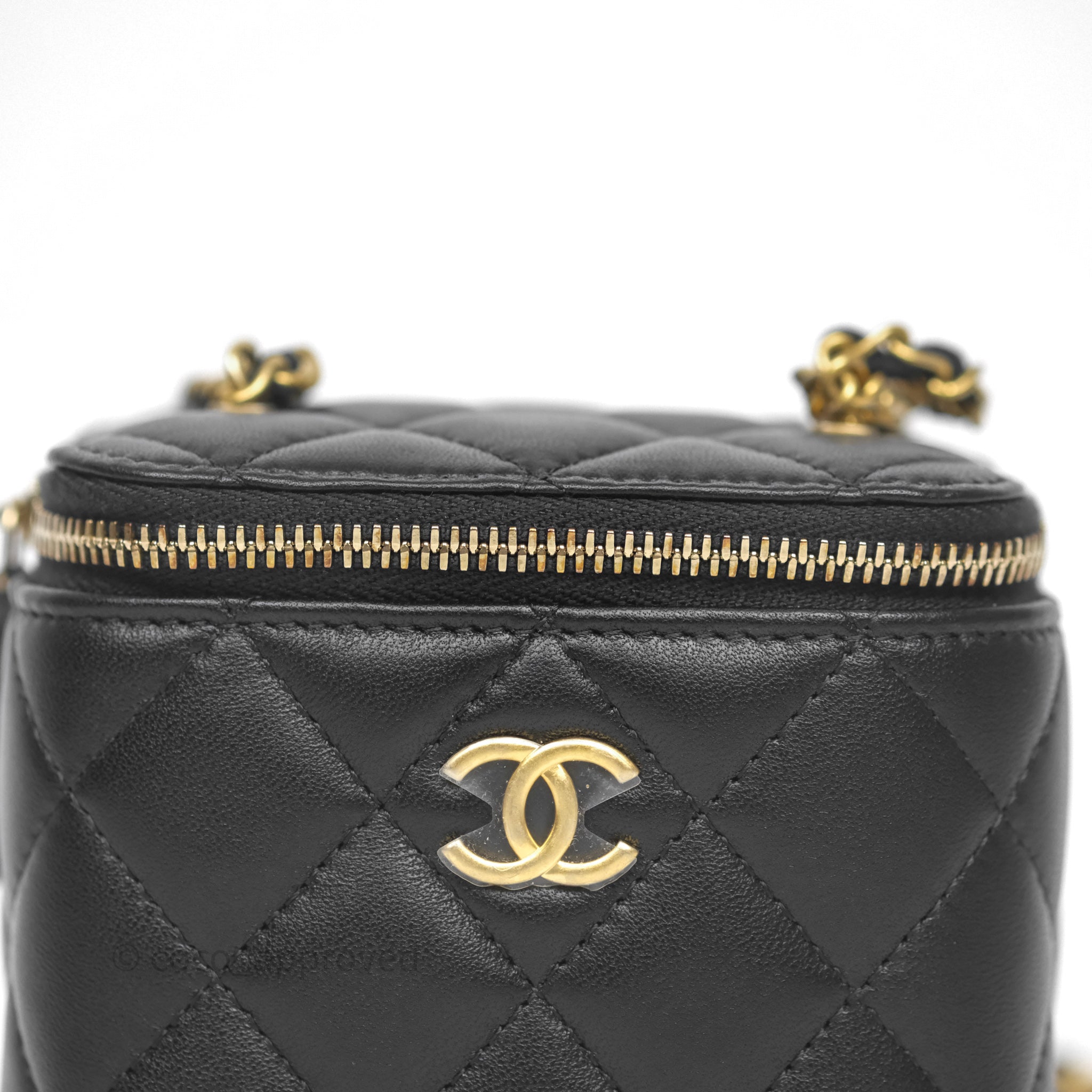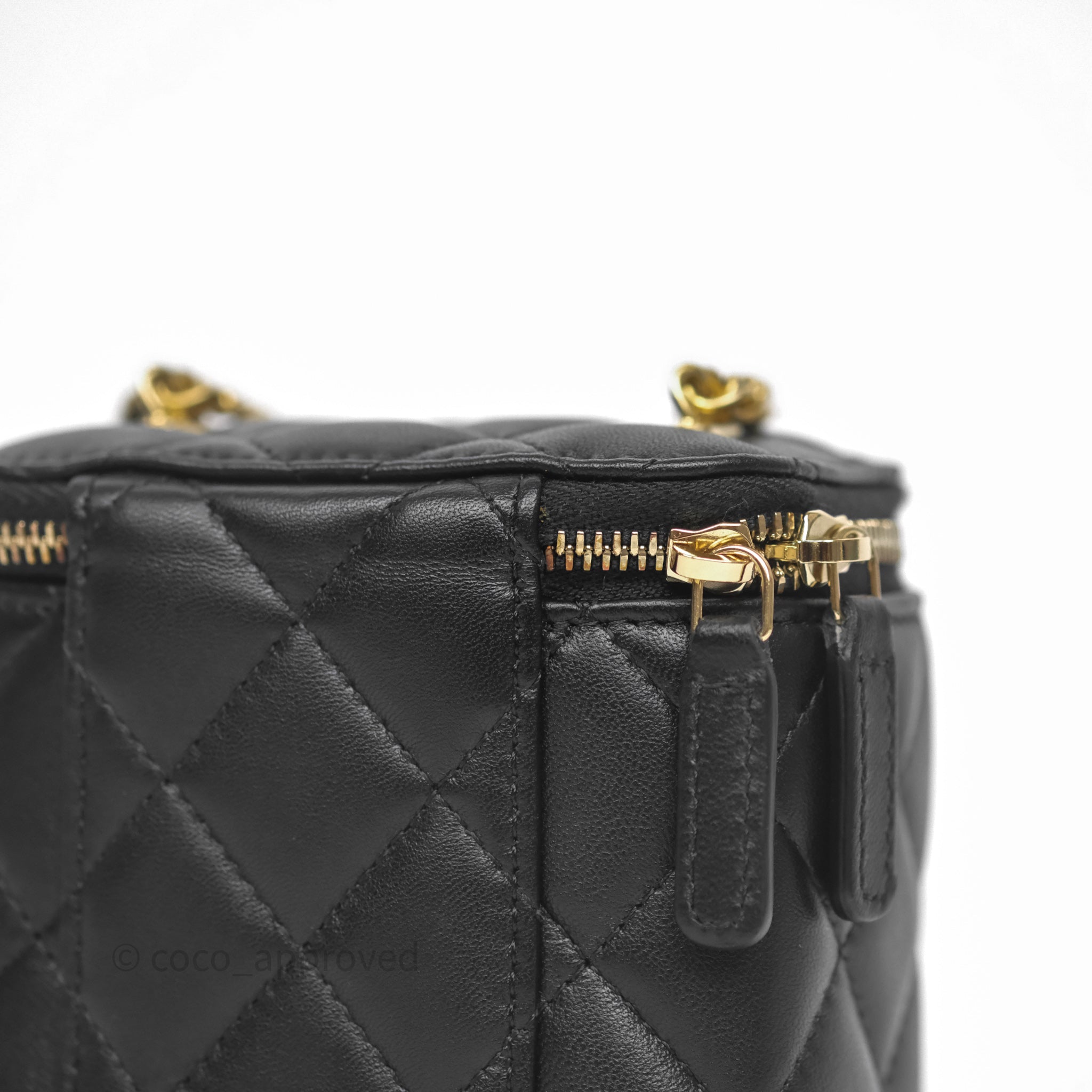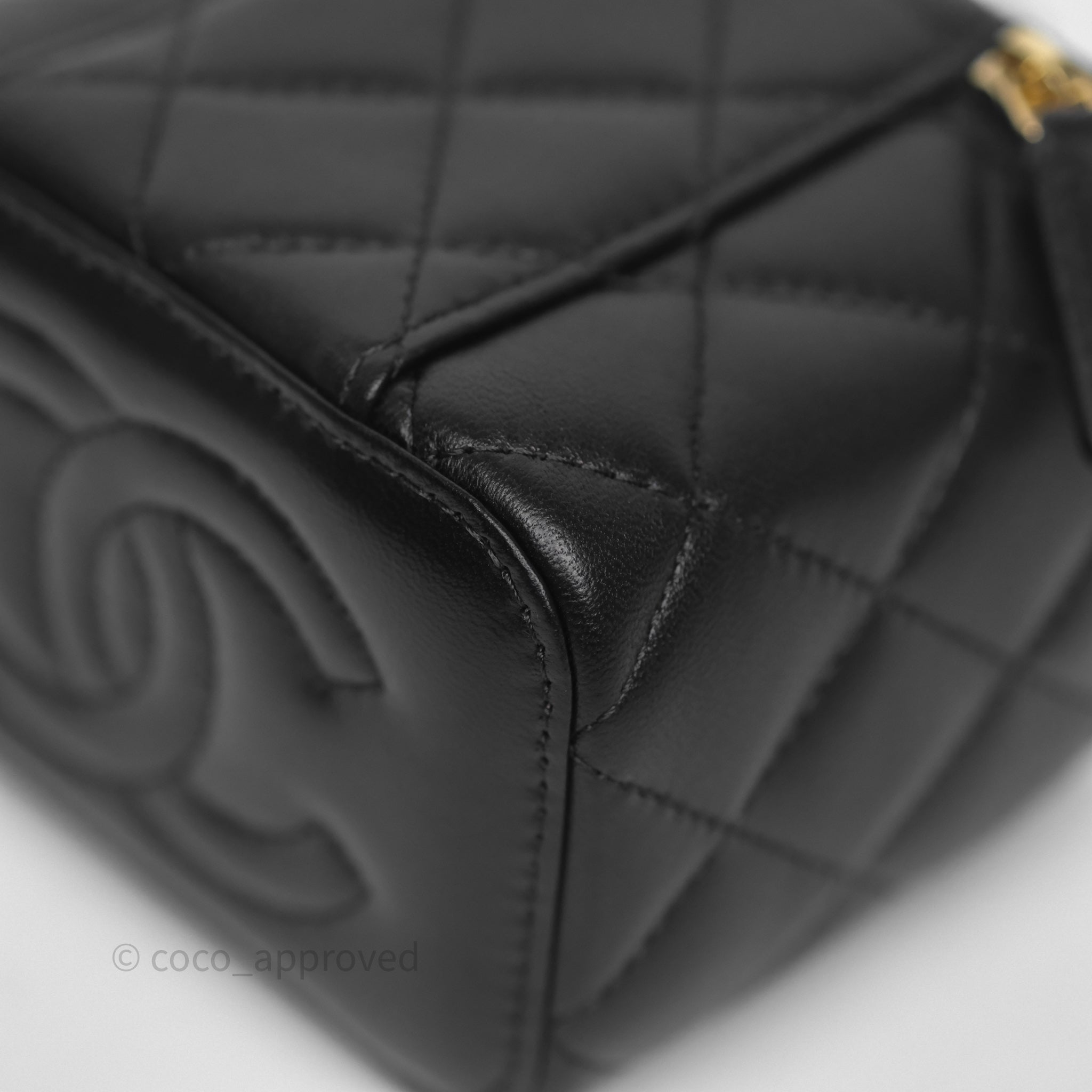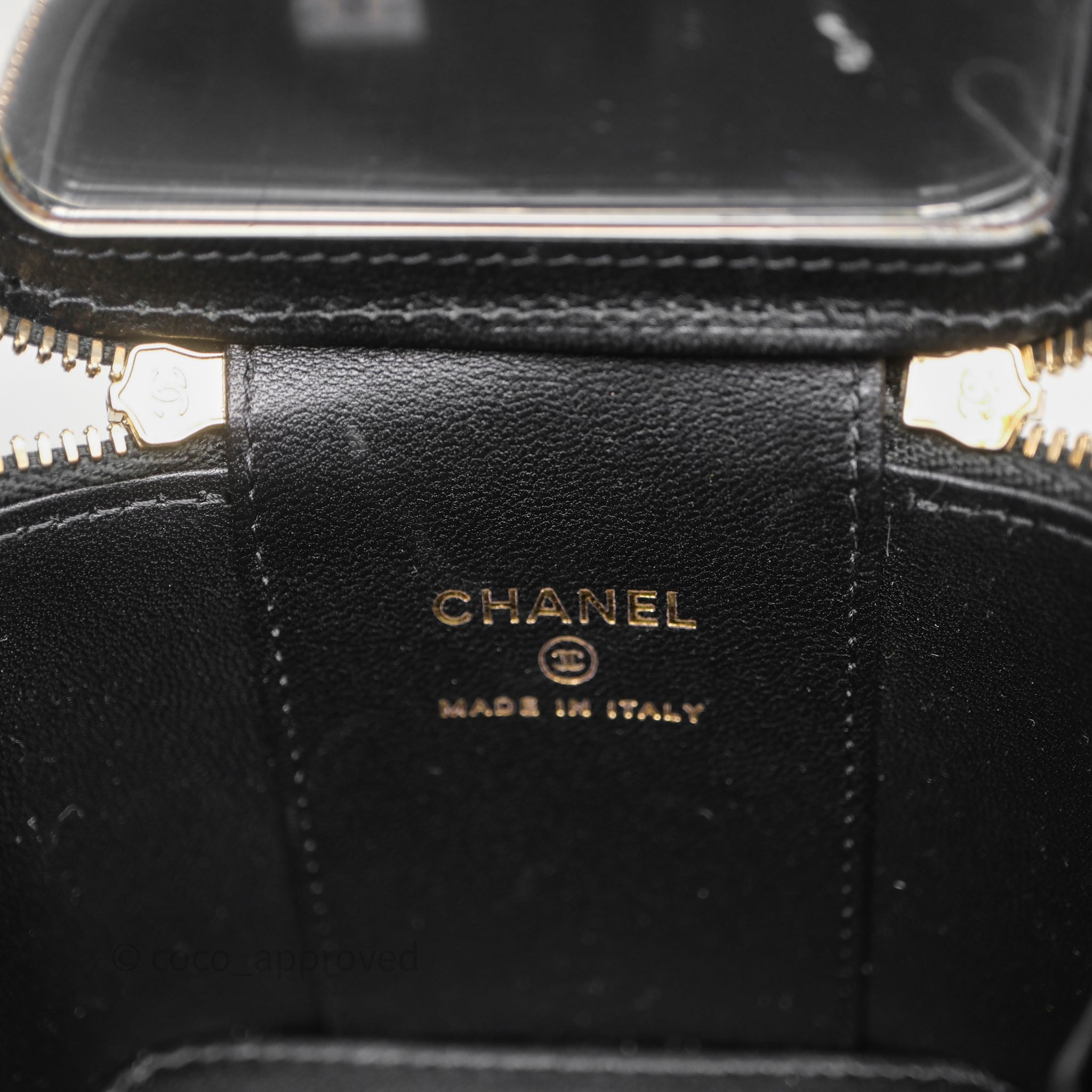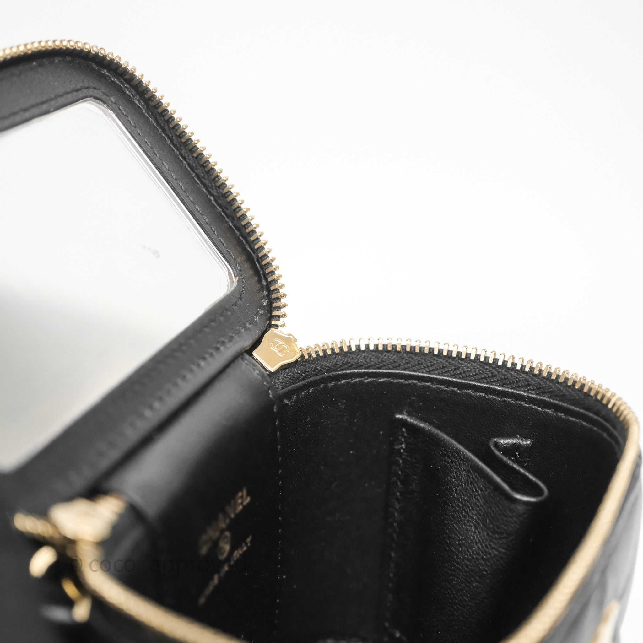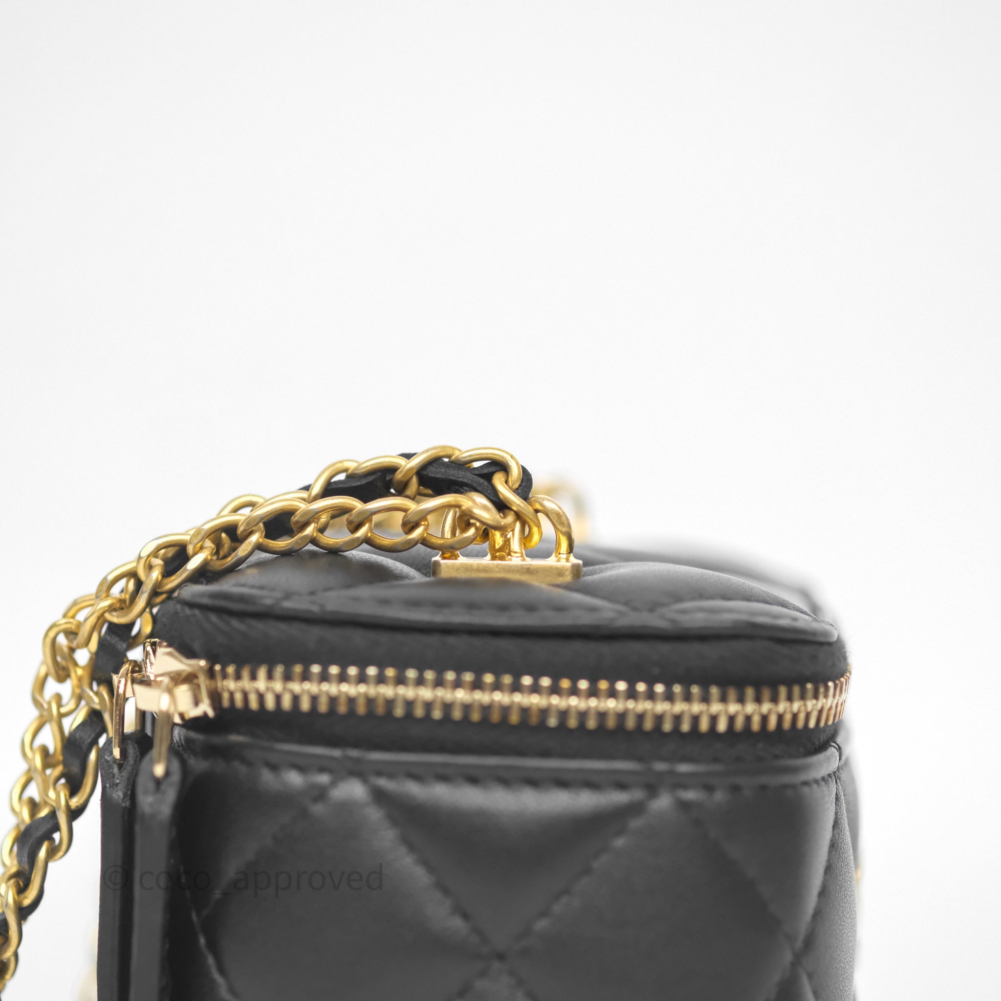 Chanel Mini Vanity With Double Chain Black Lambskin Aged Gold Hardware