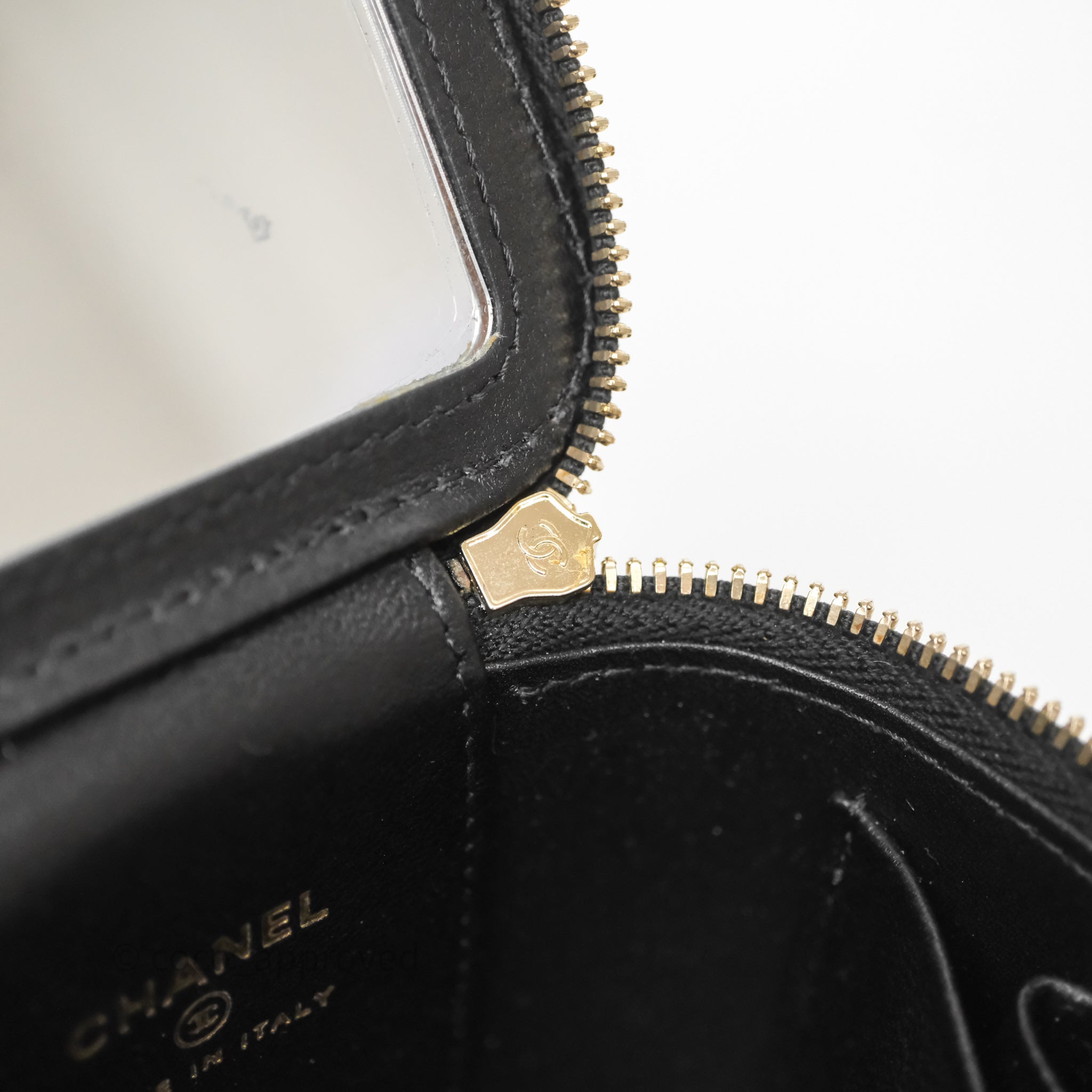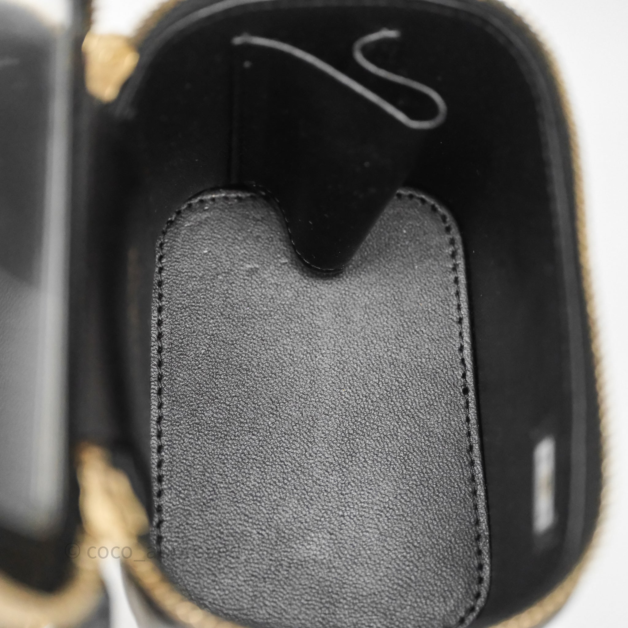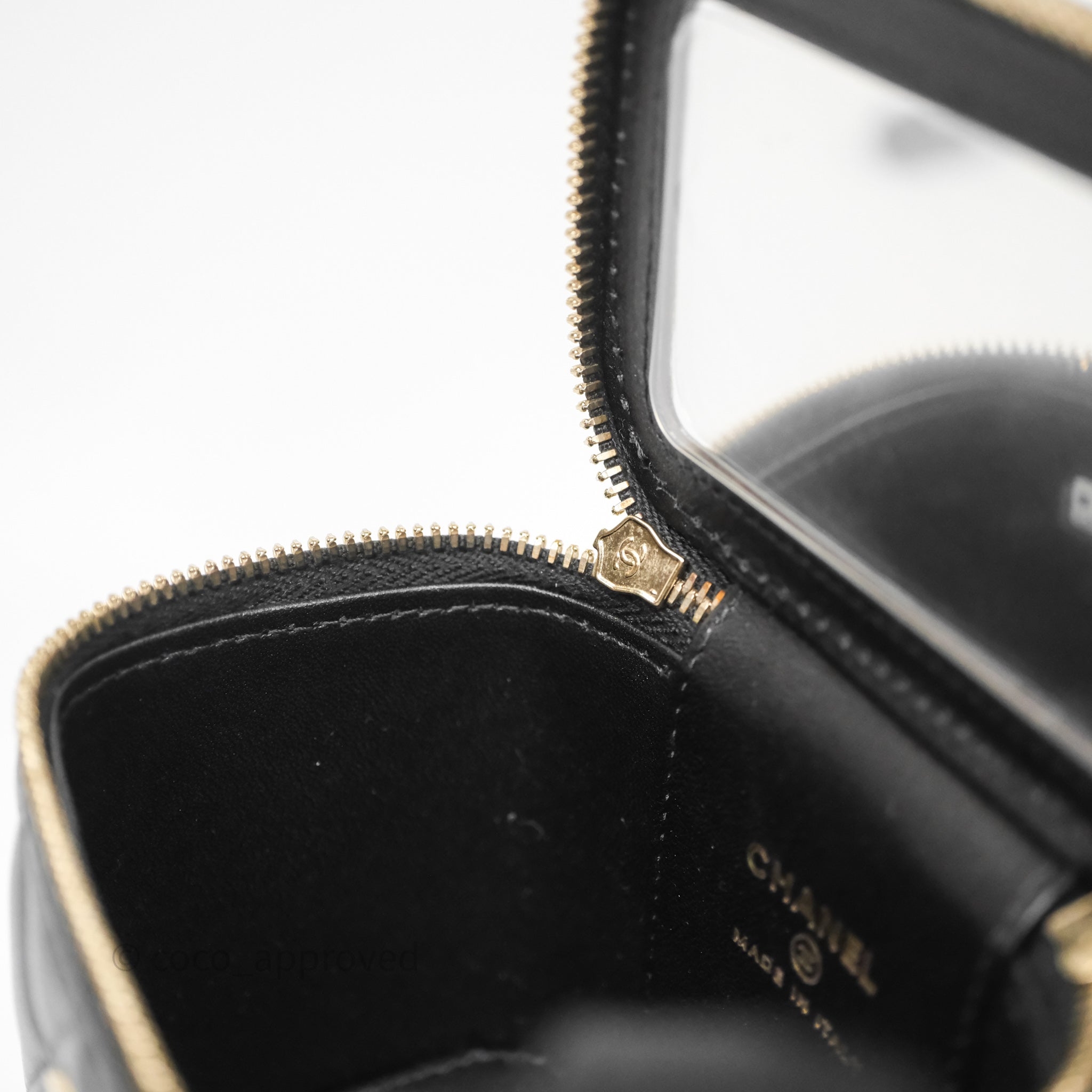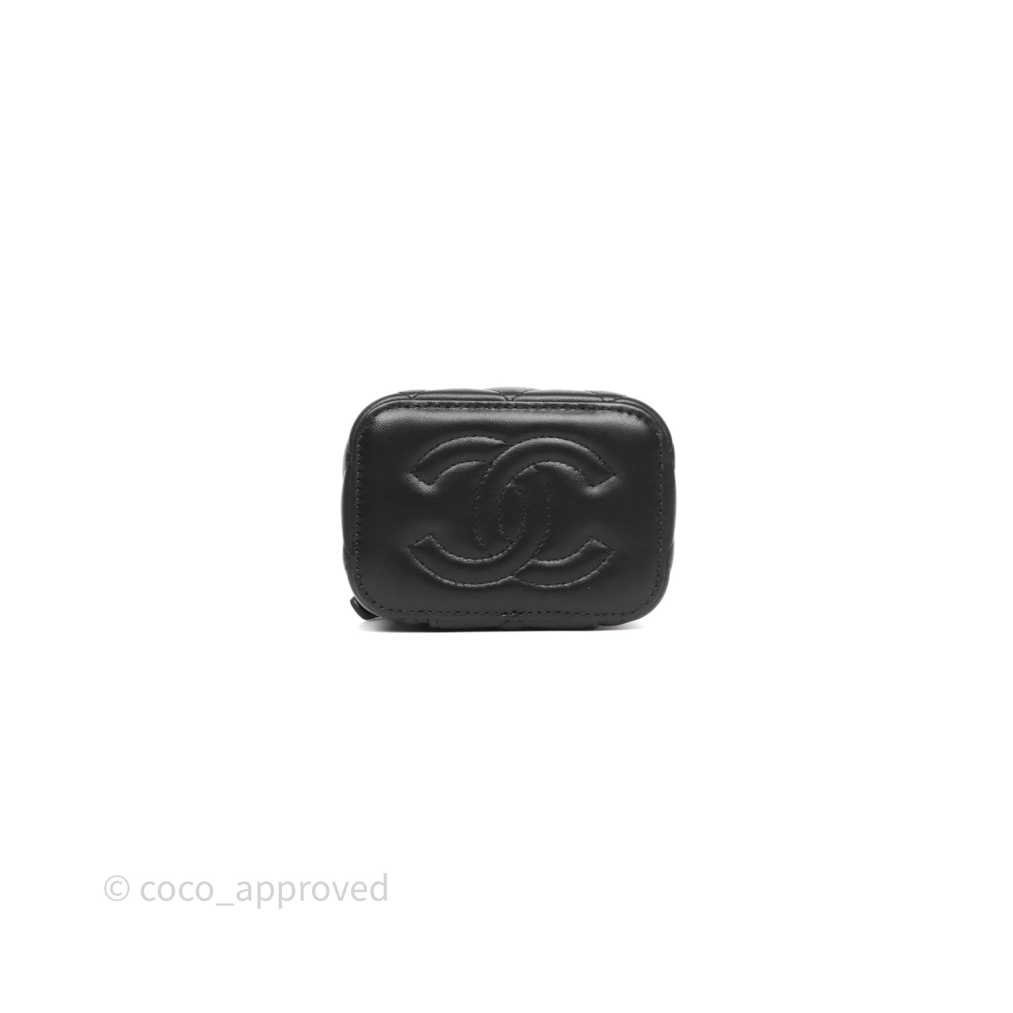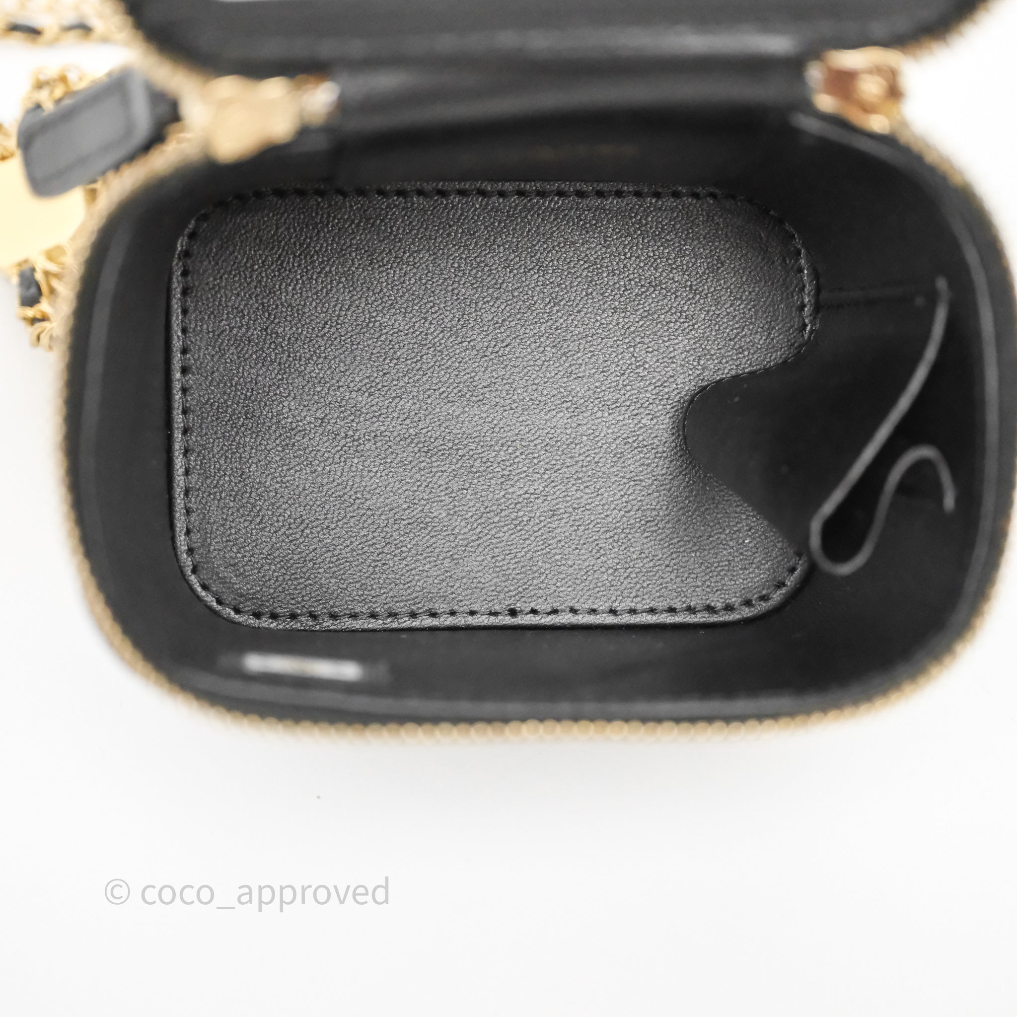 Chanel Mini Vanity With Double Chain Black Lambskin Aged Gold Hardware