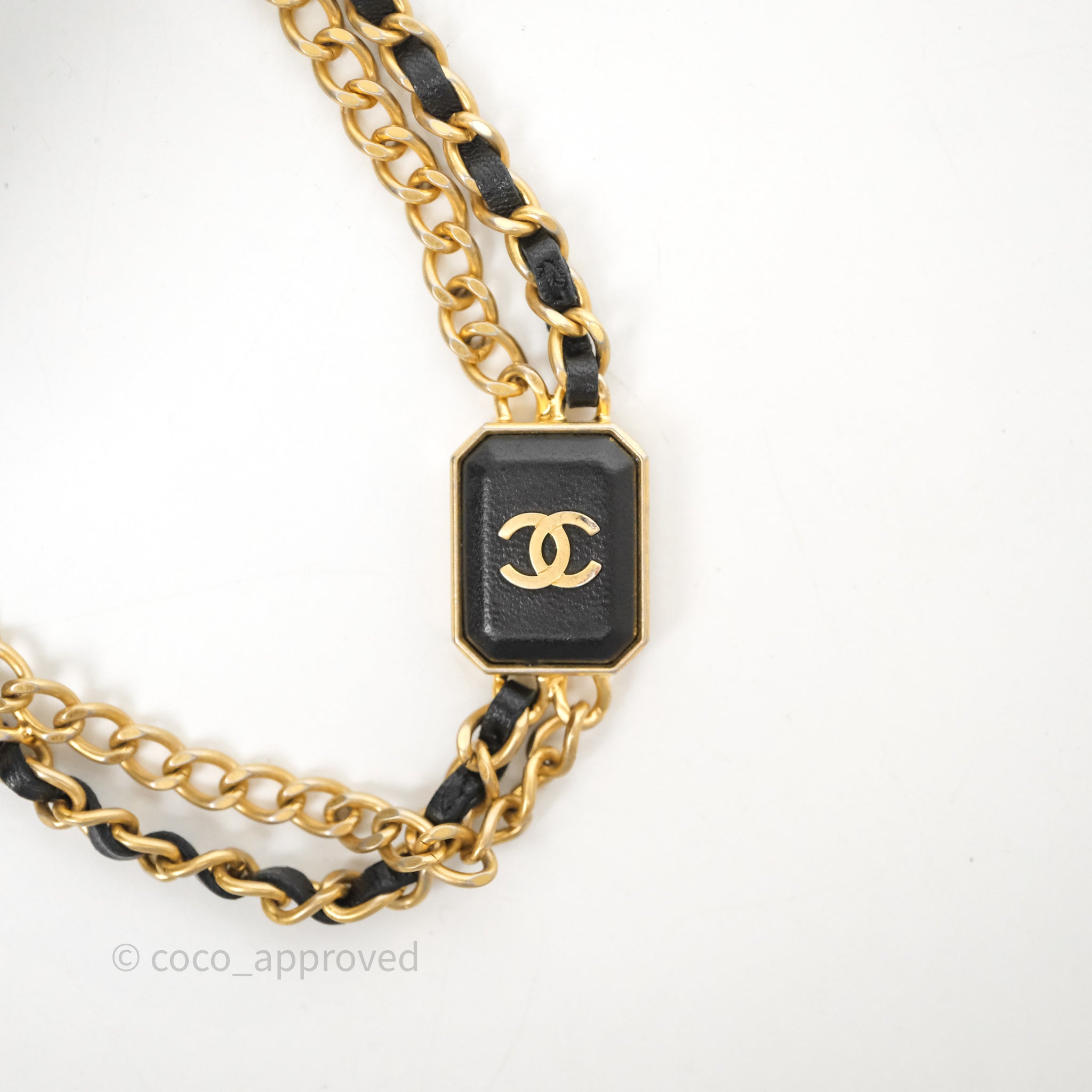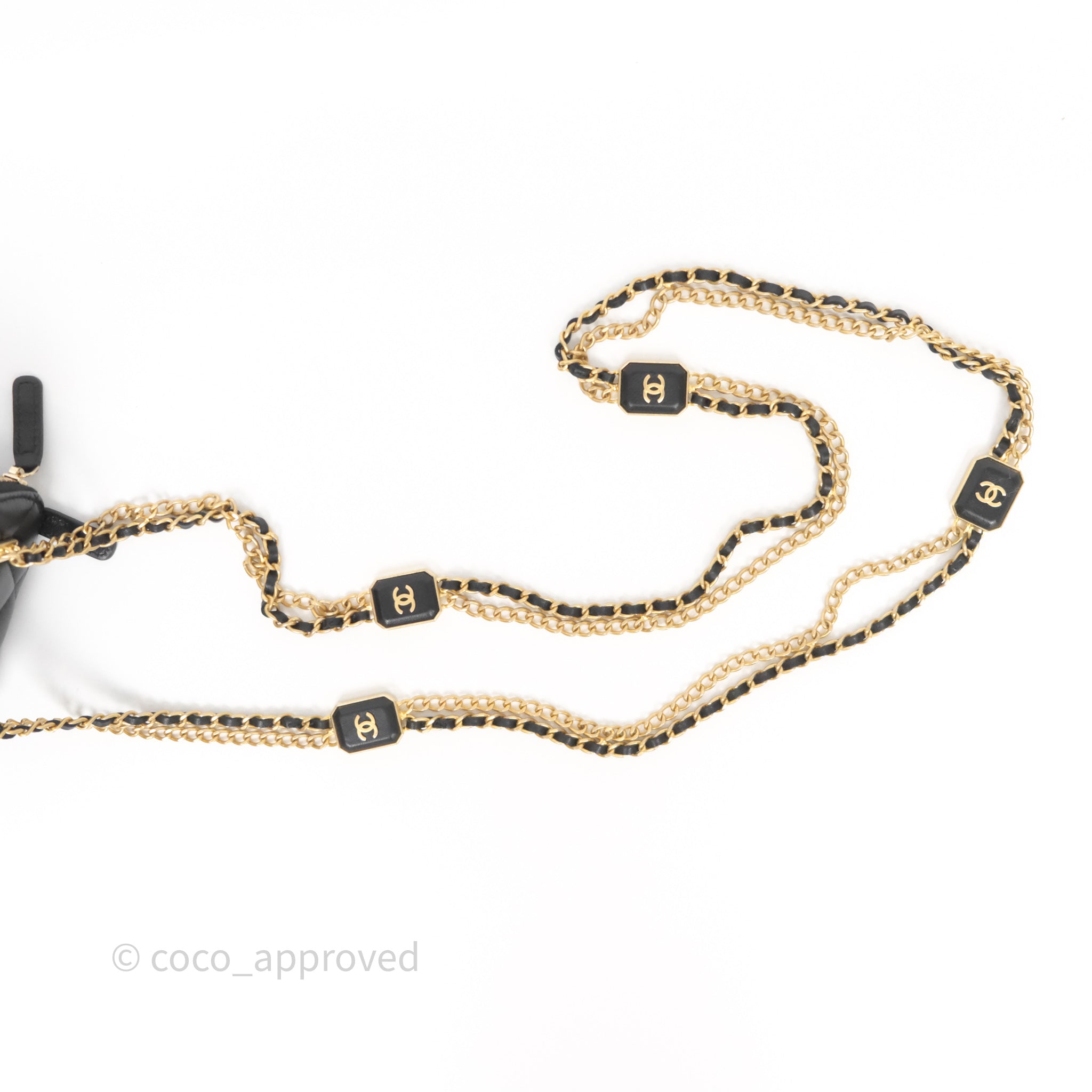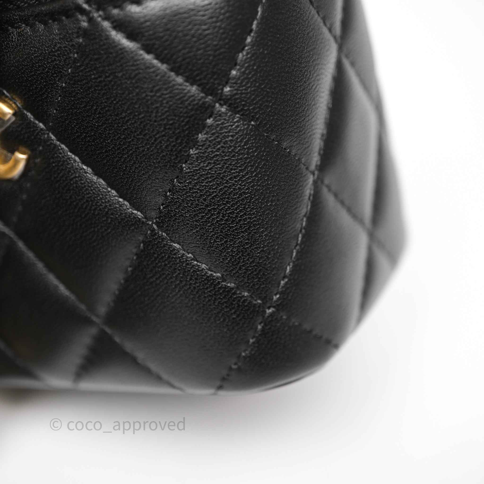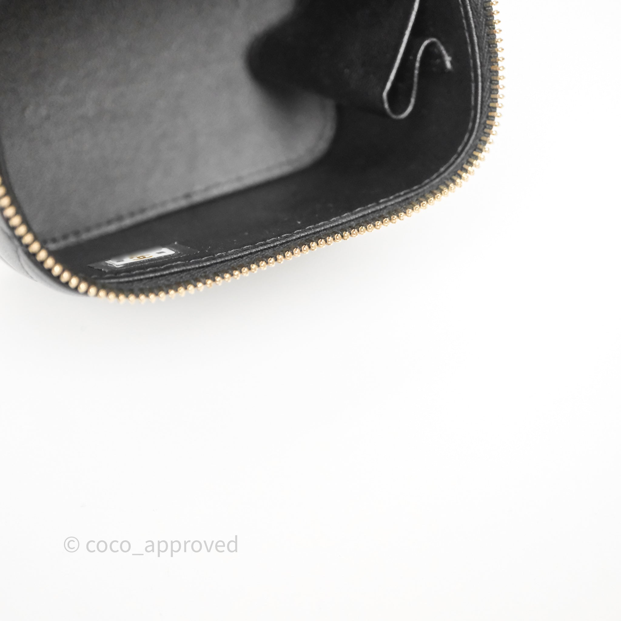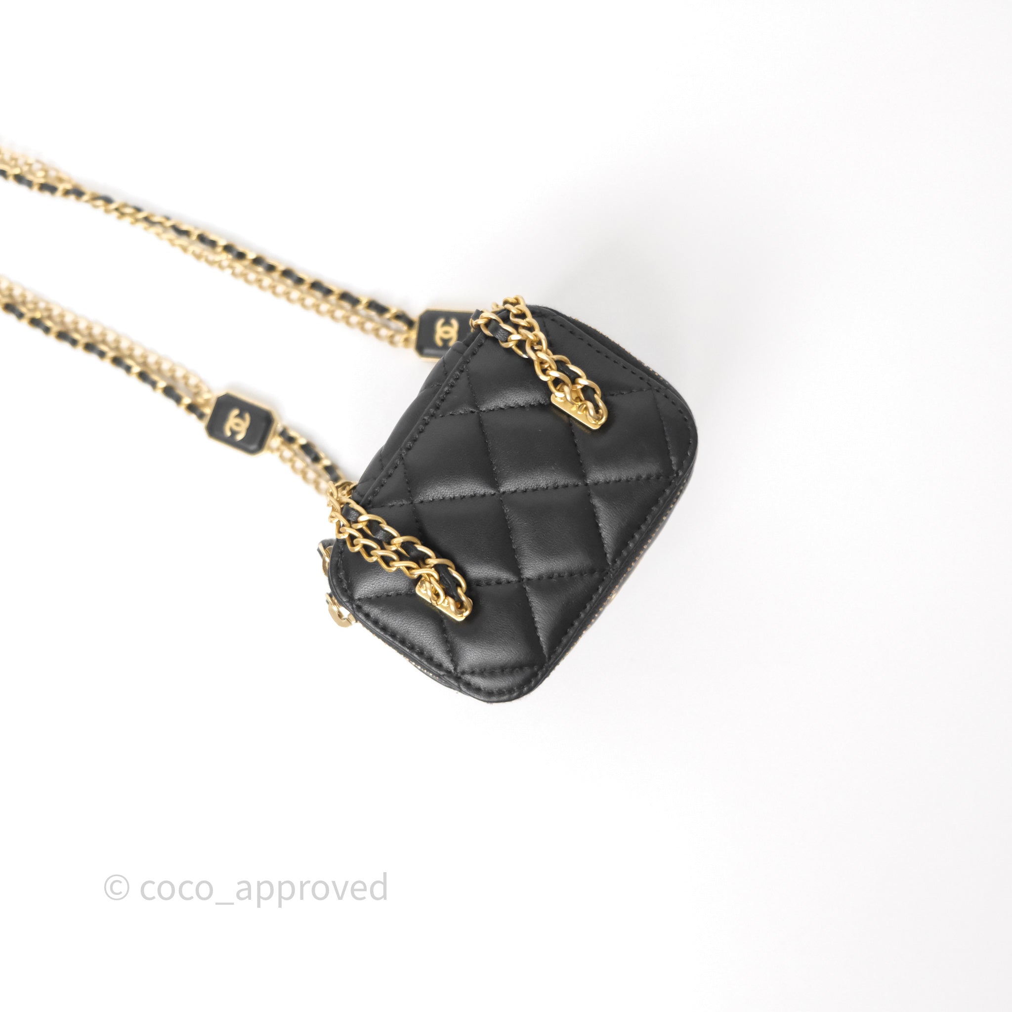 Chanel Mini Vanity With Double Chain Black Lambskin Aged Gold Hardware