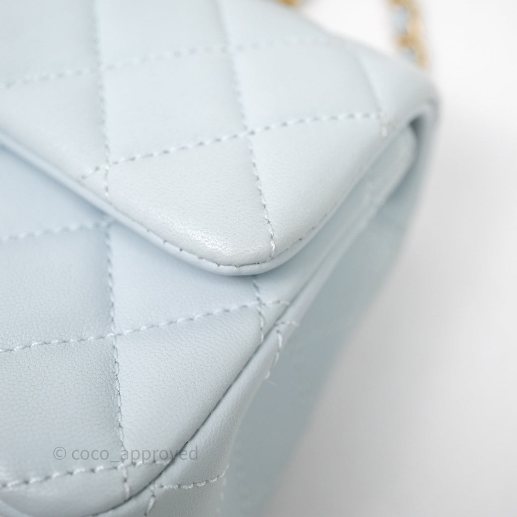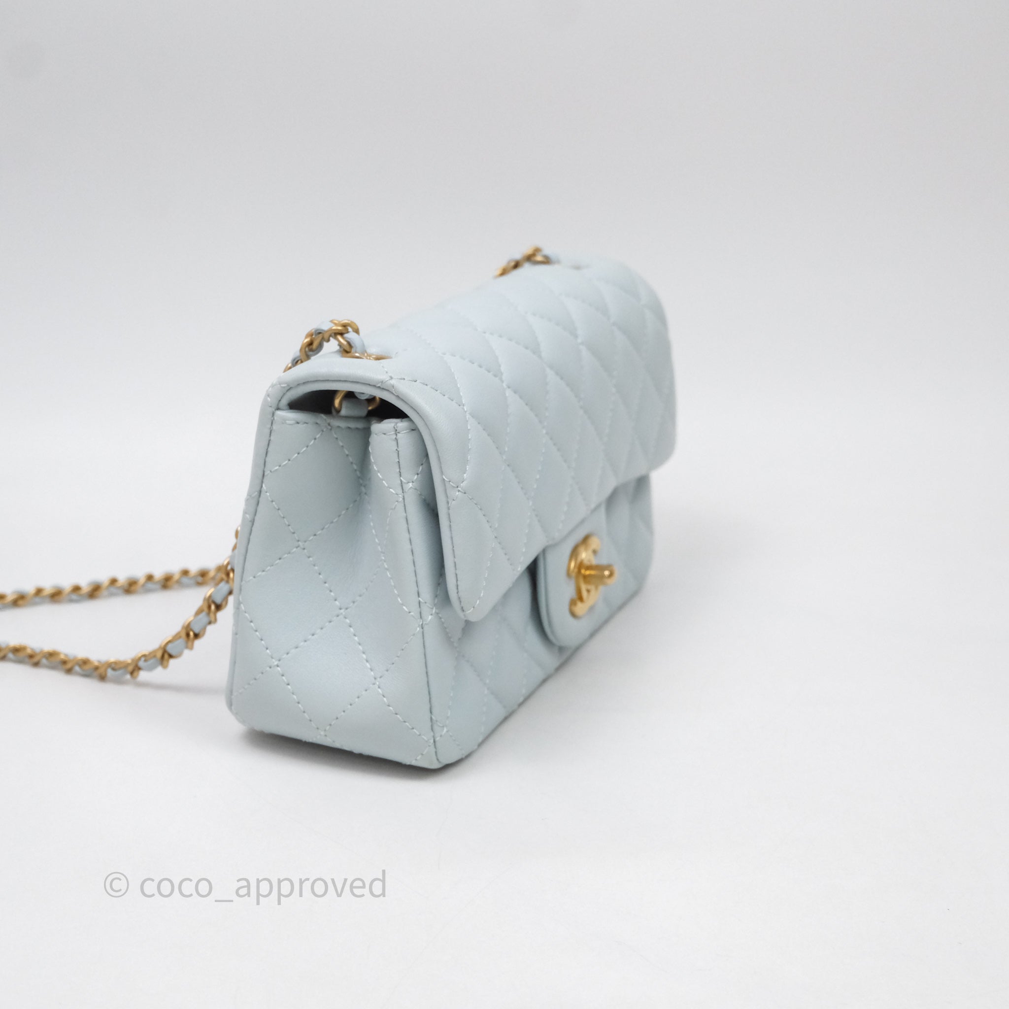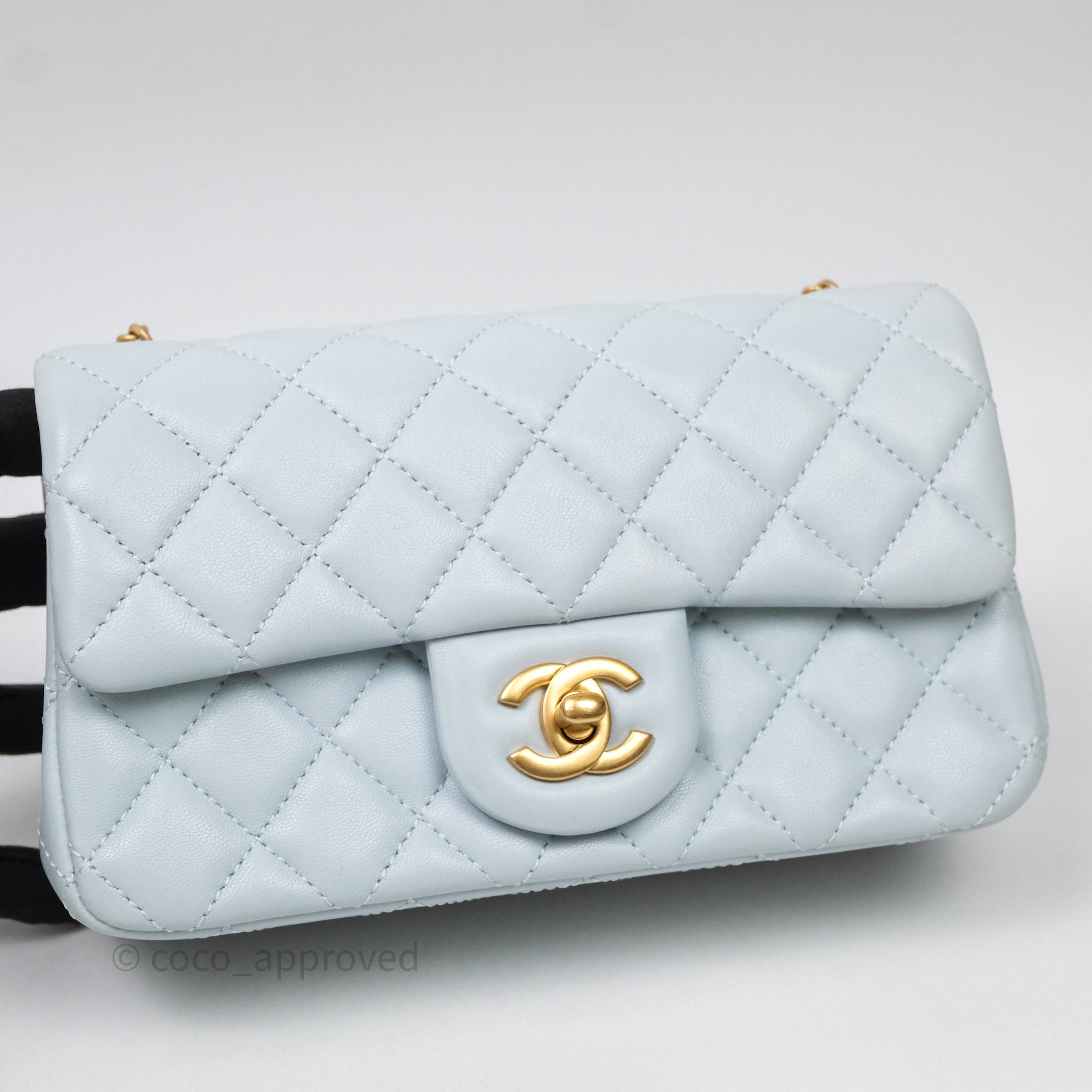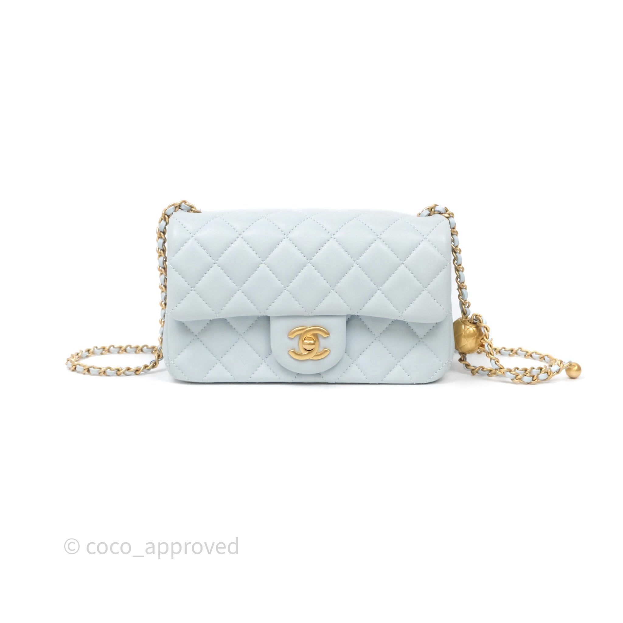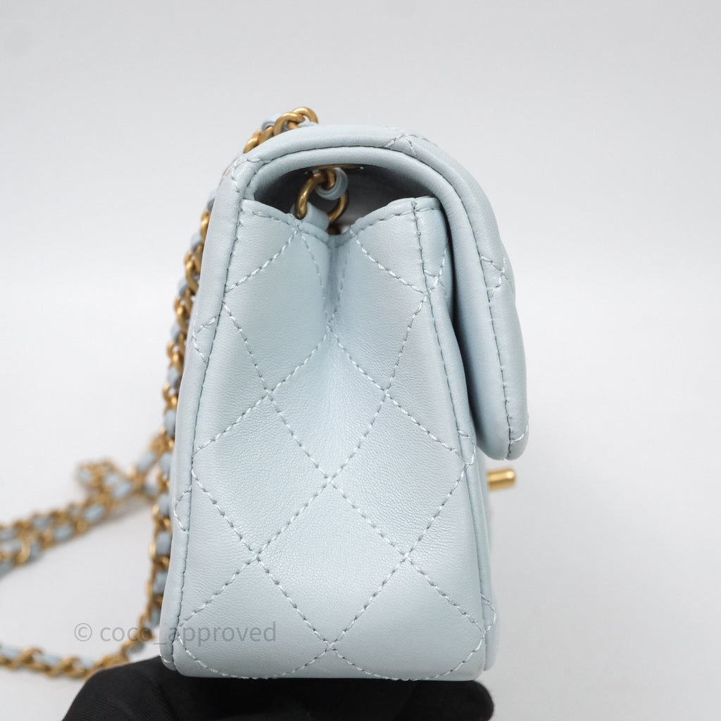 Chanel Pearl Crush Mini Rectangular Light Blue Lambskin Aged Gold Hardware