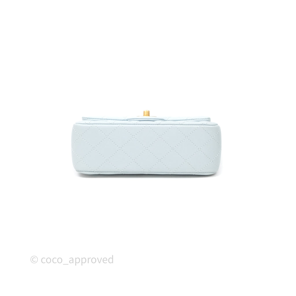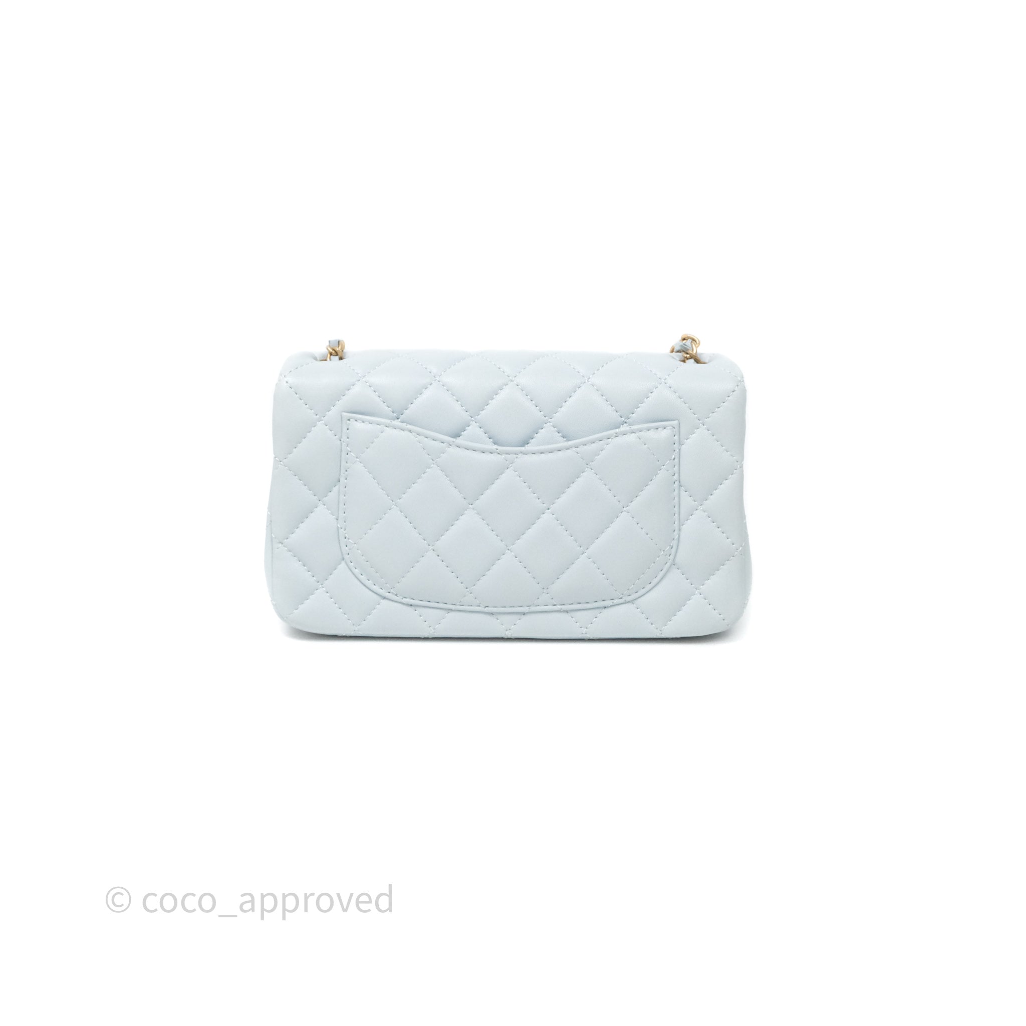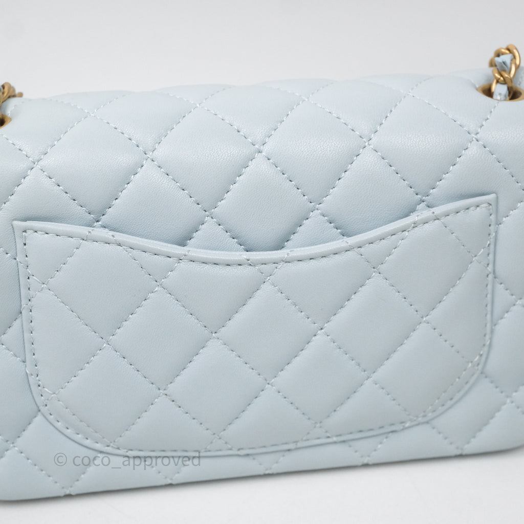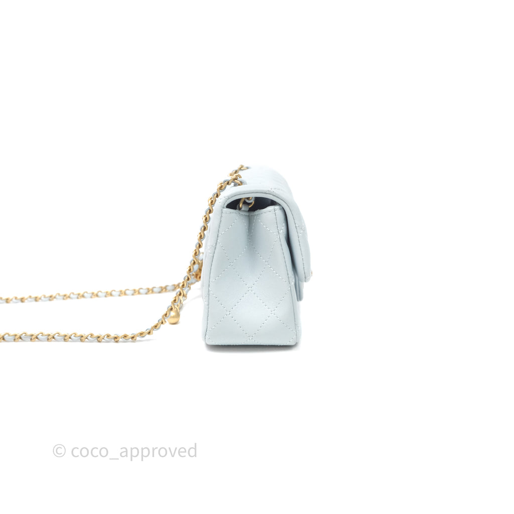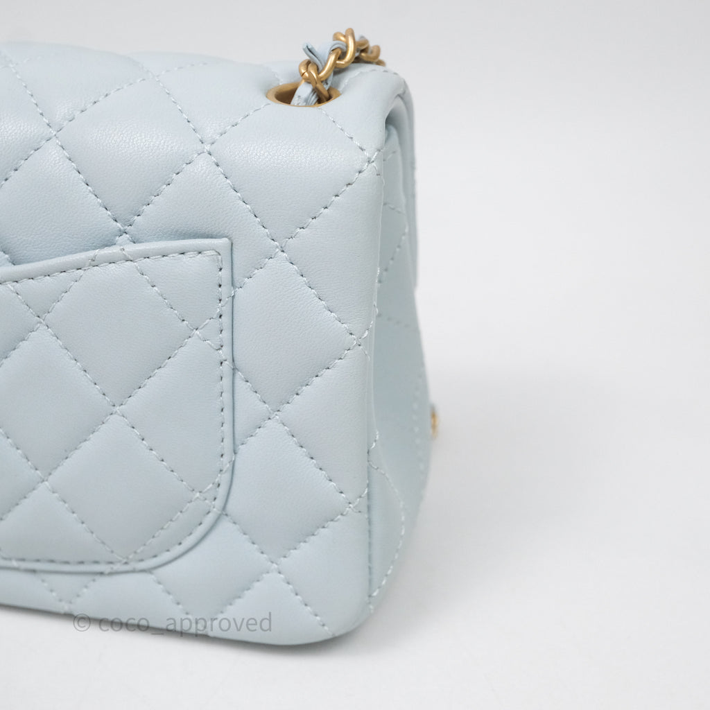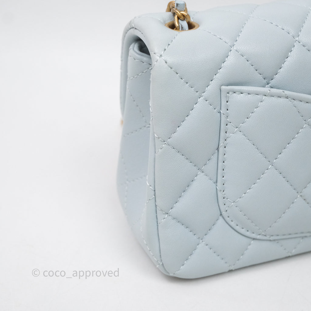 Chanel Pearl Crush Mini Rectangular Light Blue Lambskin Aged Gold Hardware