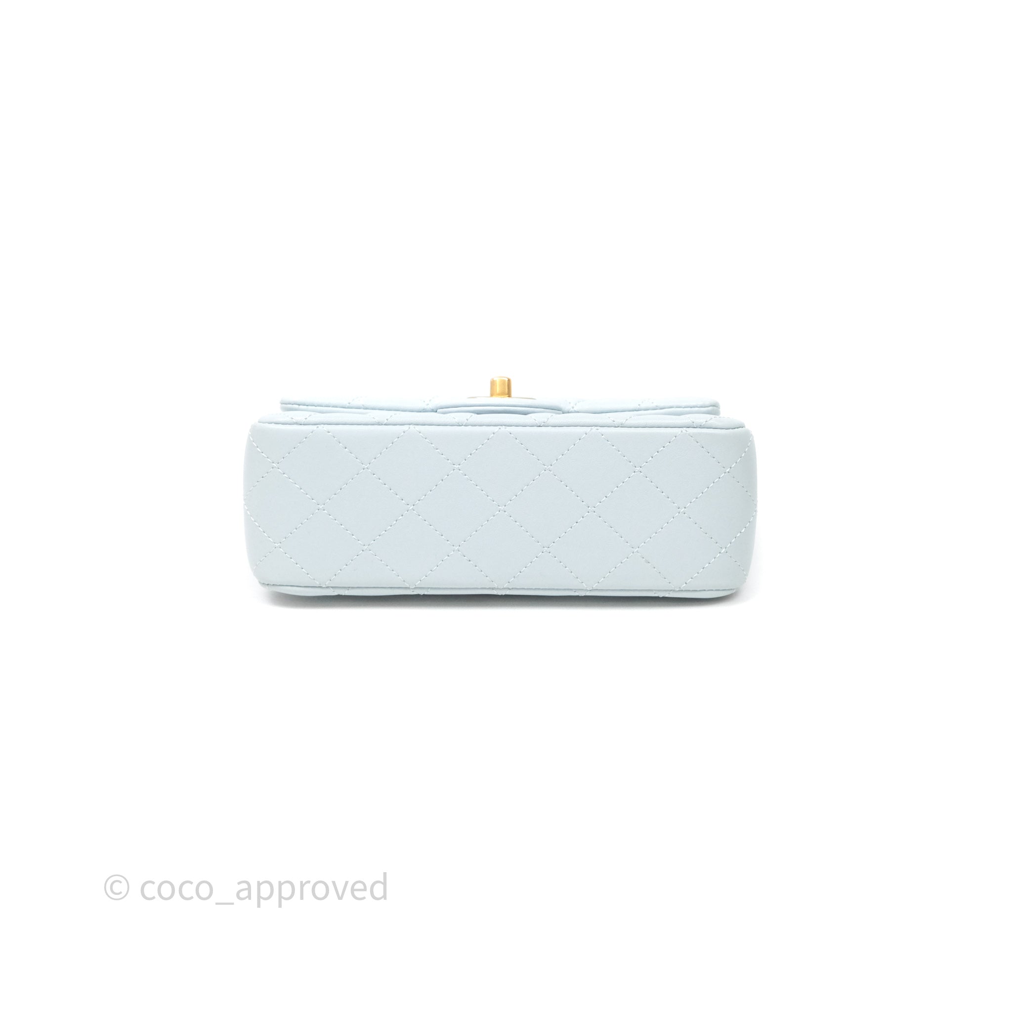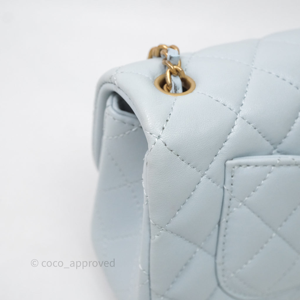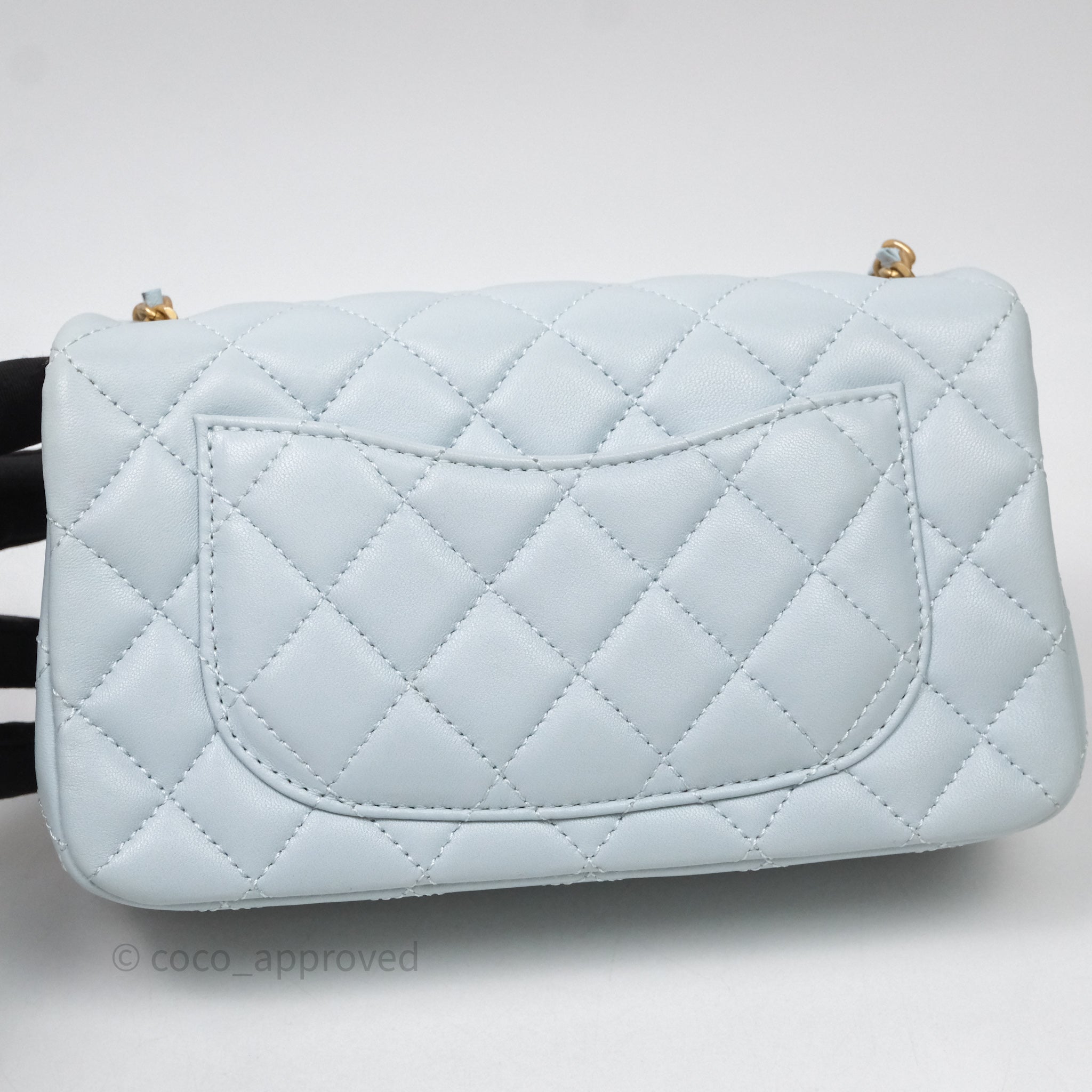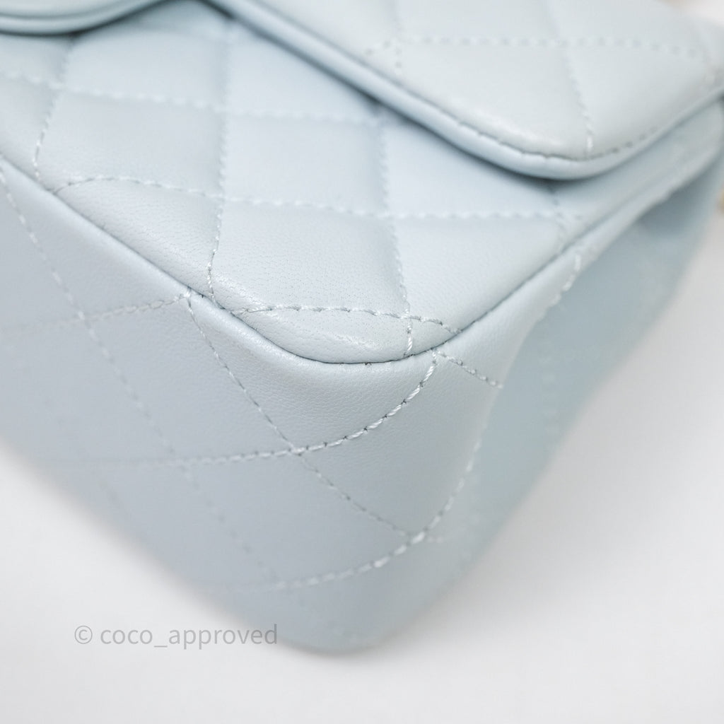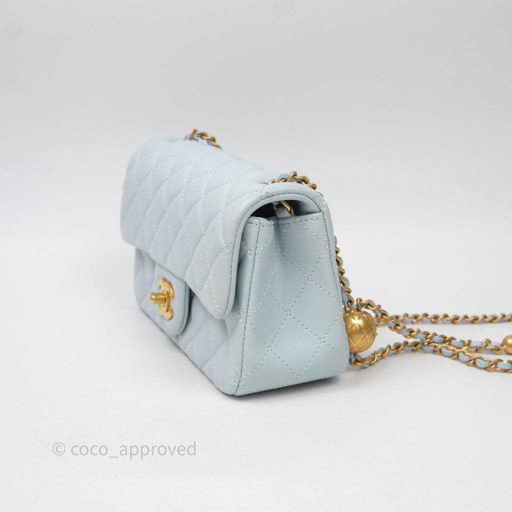 Chanel Pearl Crush Mini Rectangular Light Blue Lambskin Aged Gold Hardware