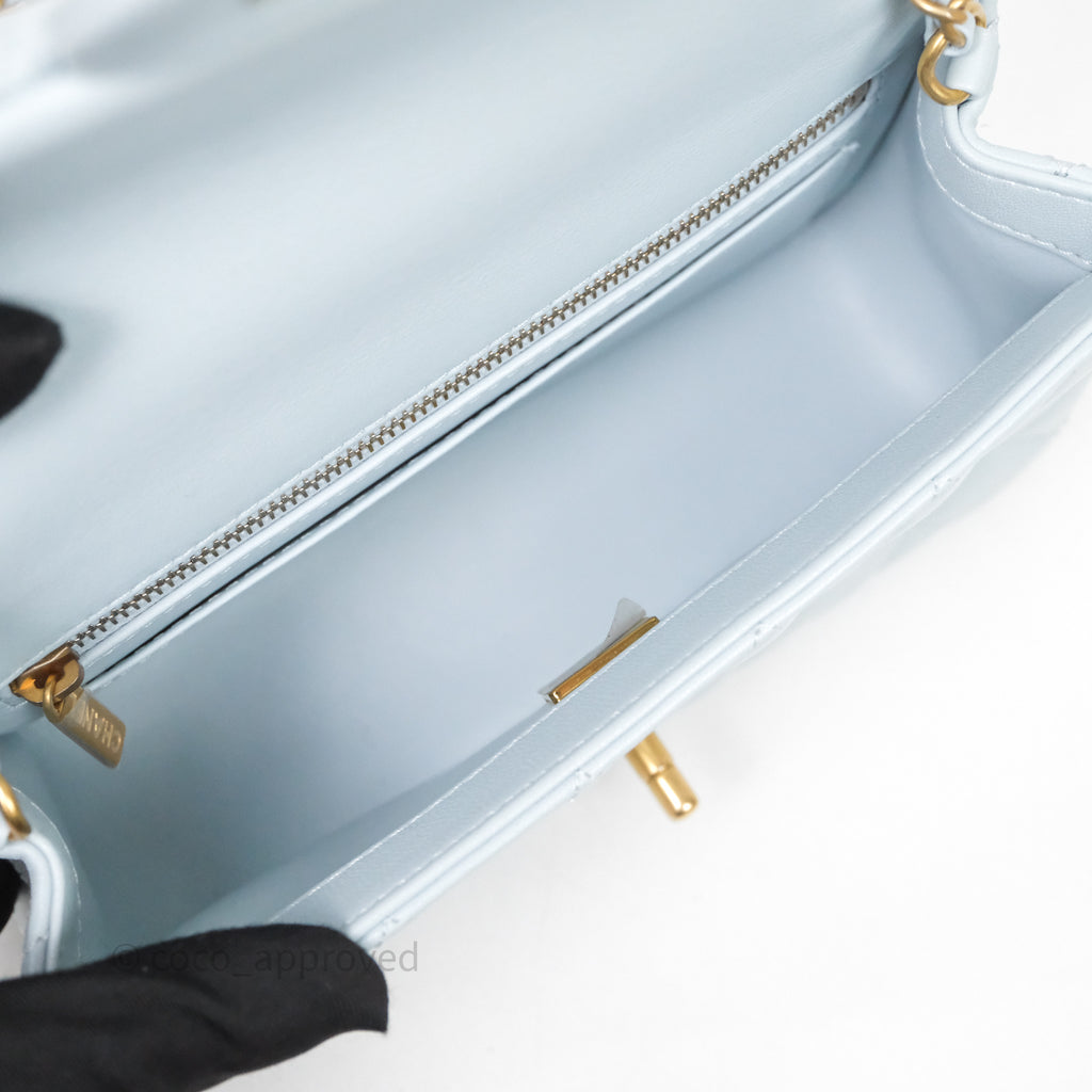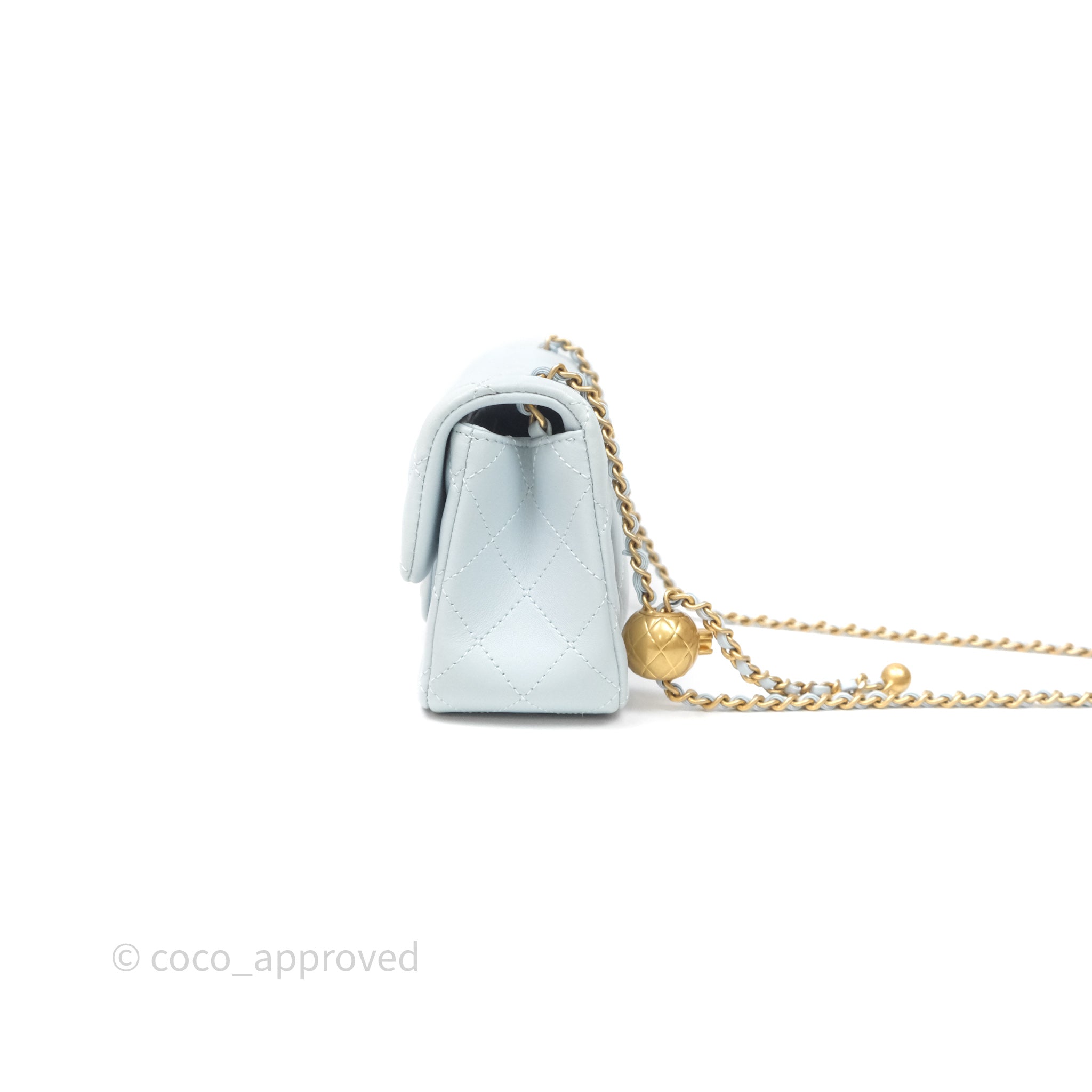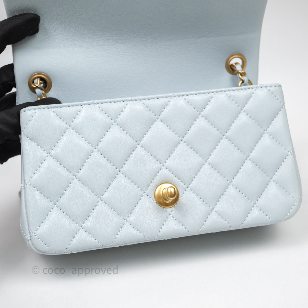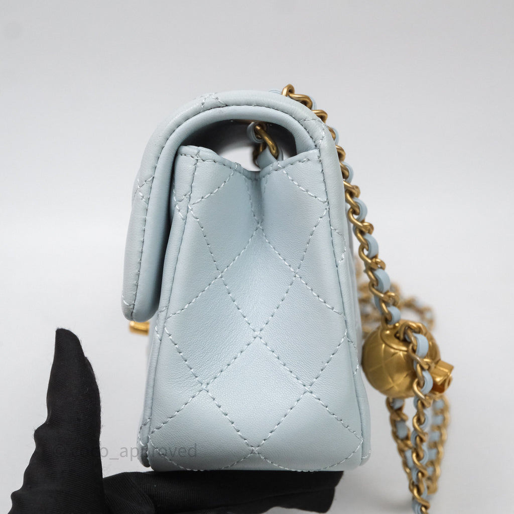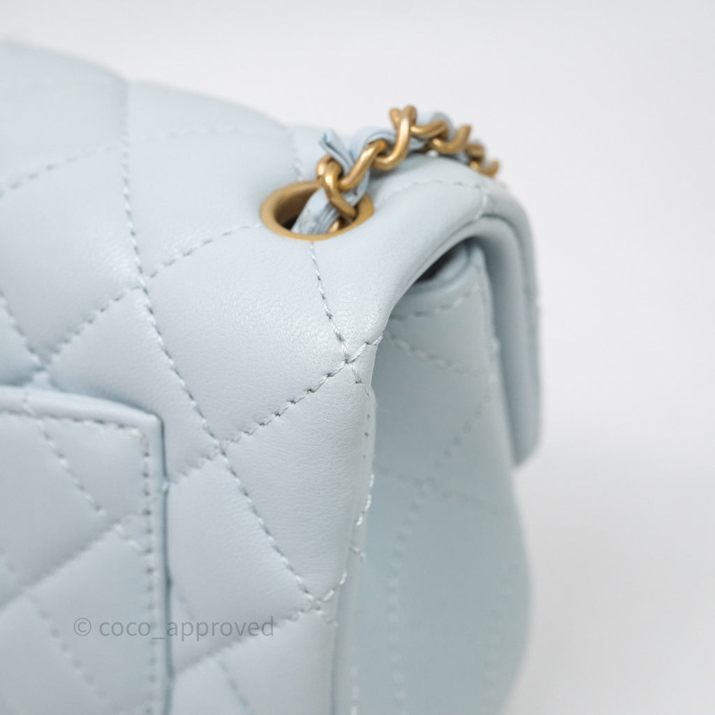 Chanel Pearl Crush Mini Rectangular Light Blue Lambskin Aged Gold Hardware