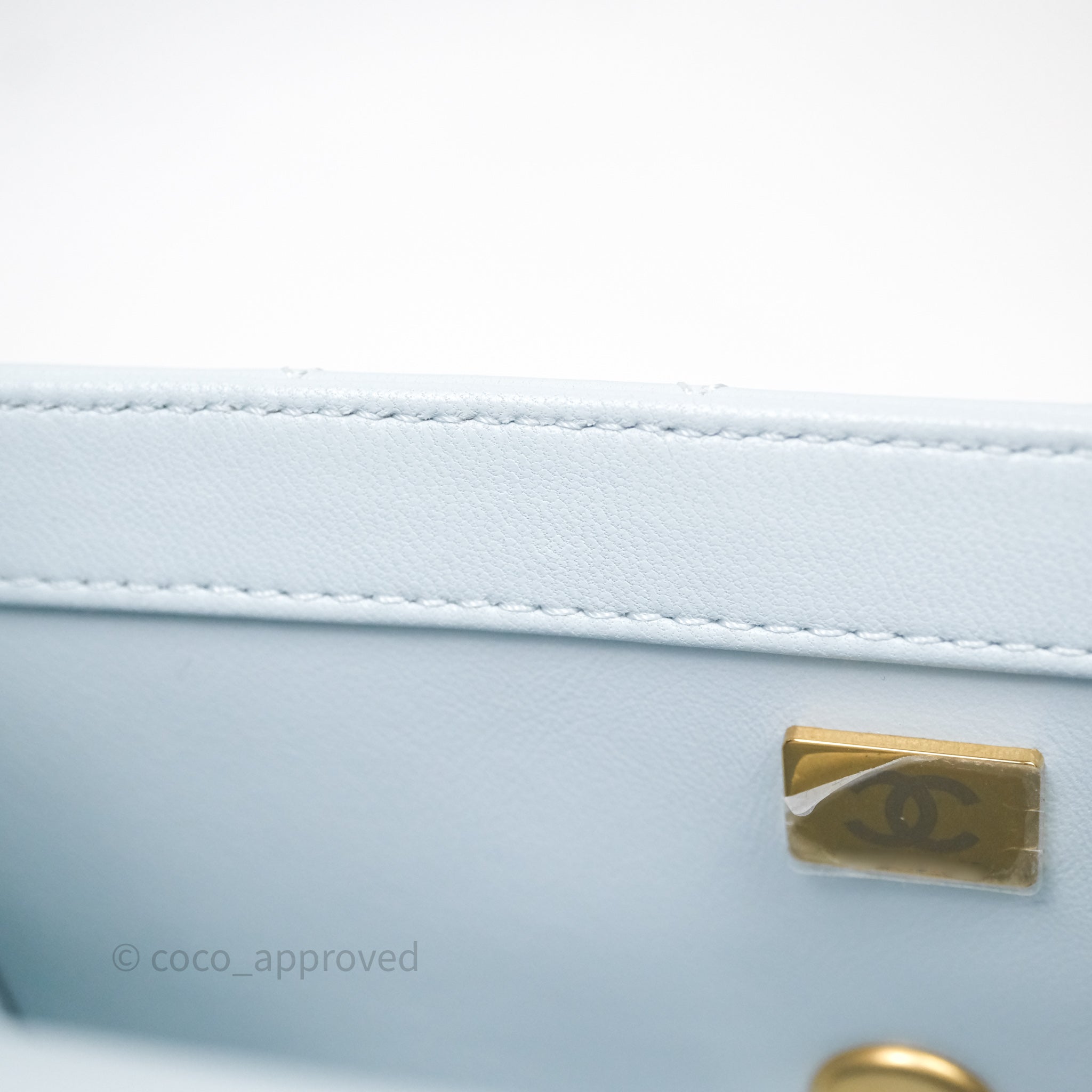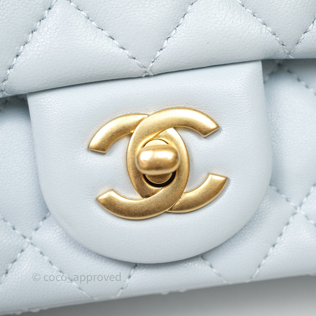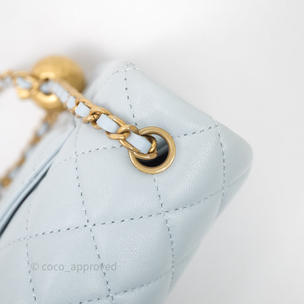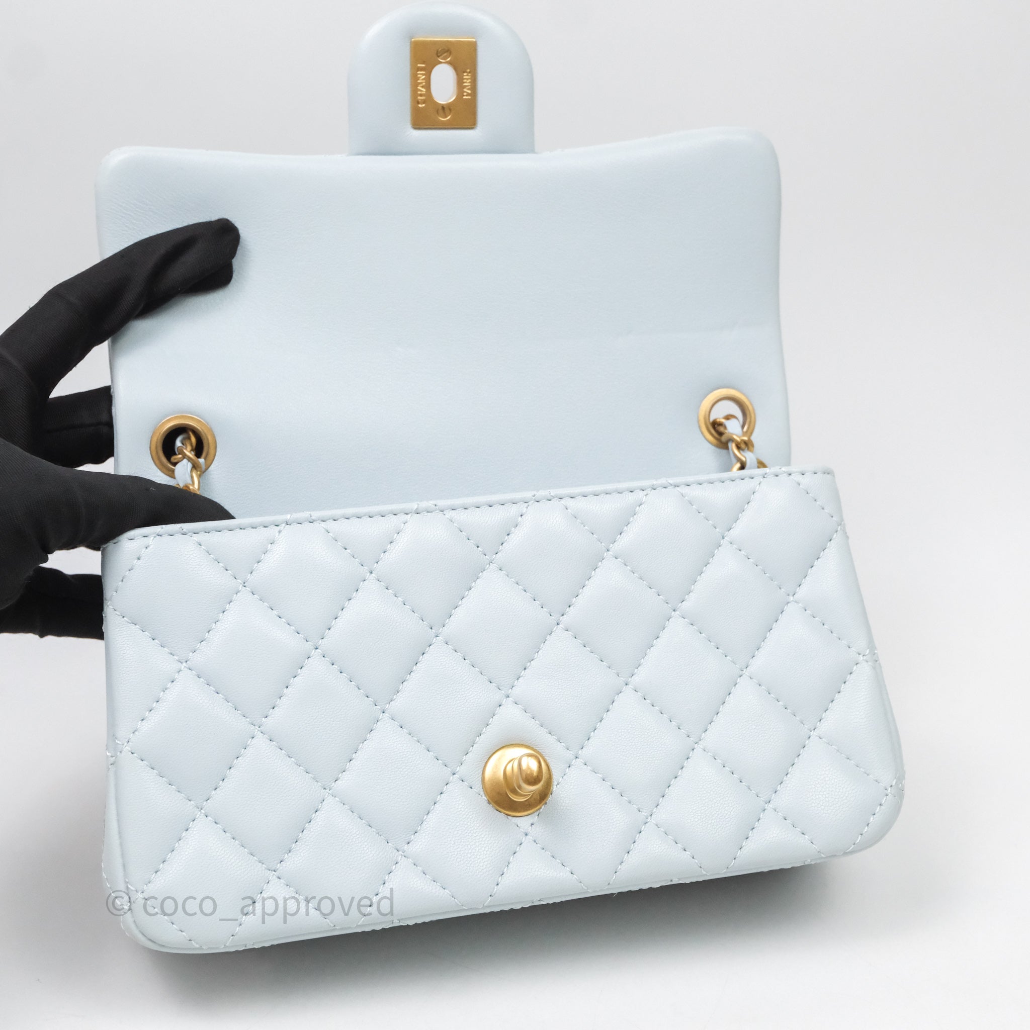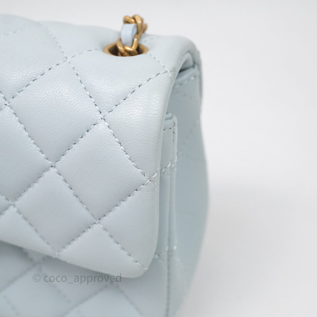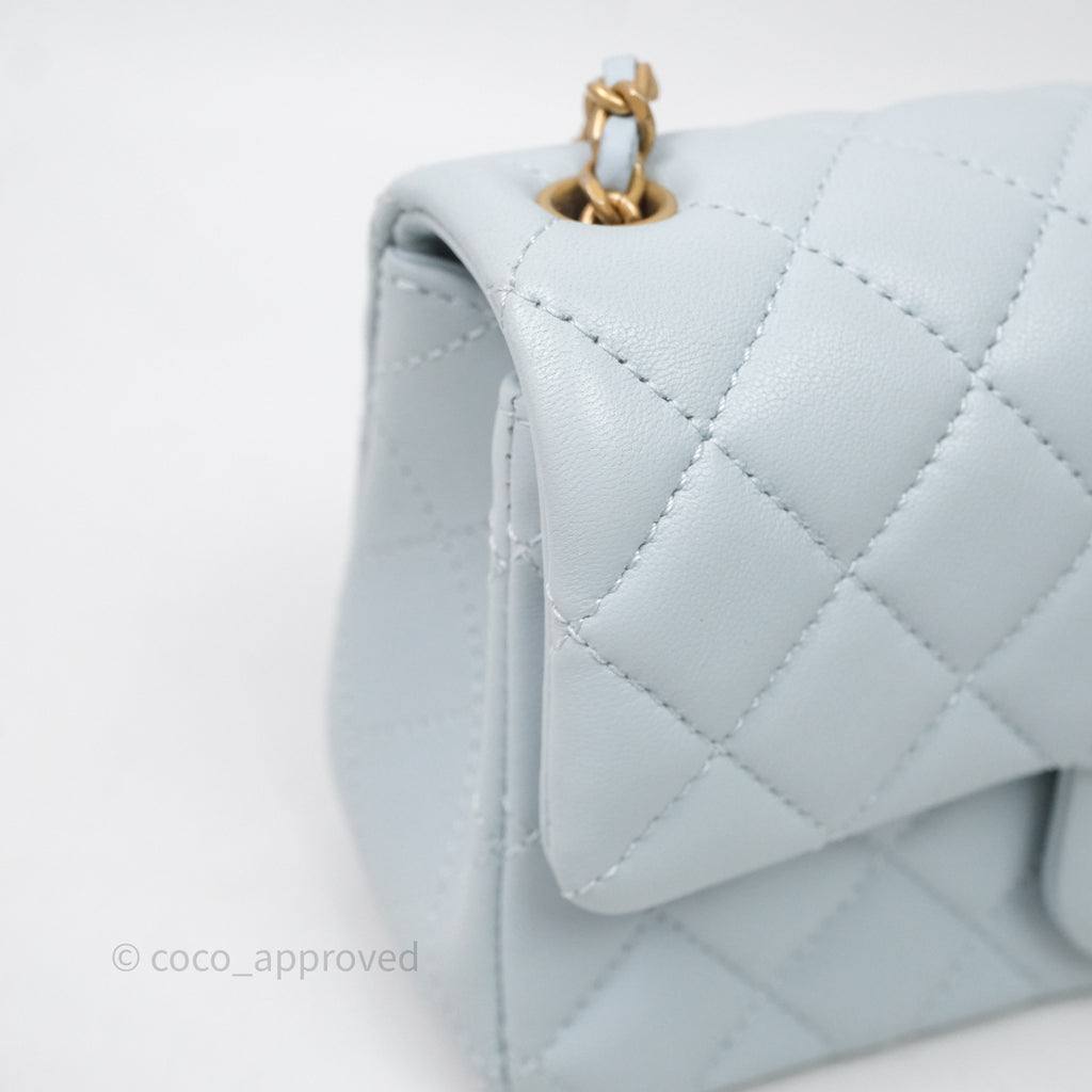 Chanel Pearl Crush Mini Rectangular Light Blue Lambskin Aged Gold Hardware