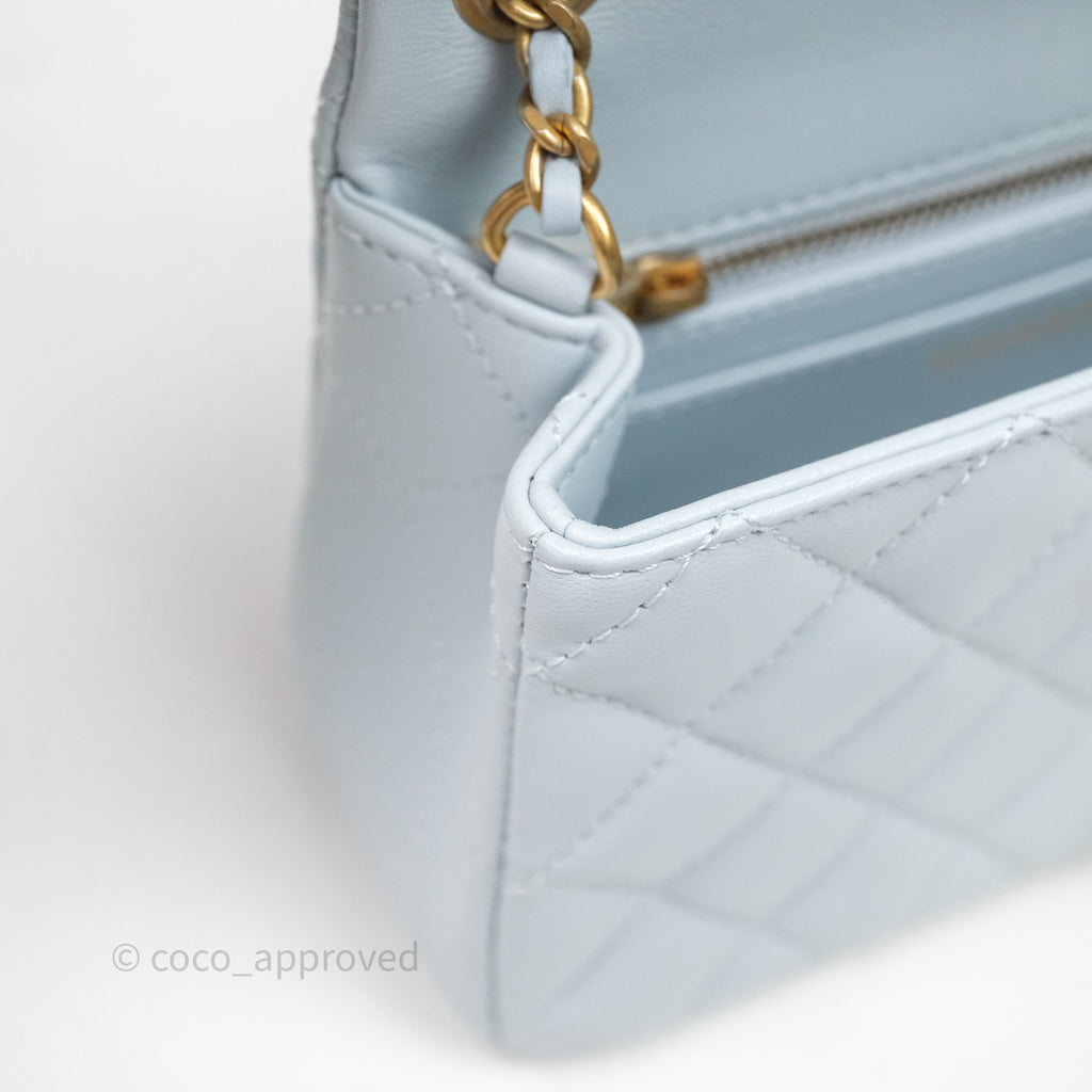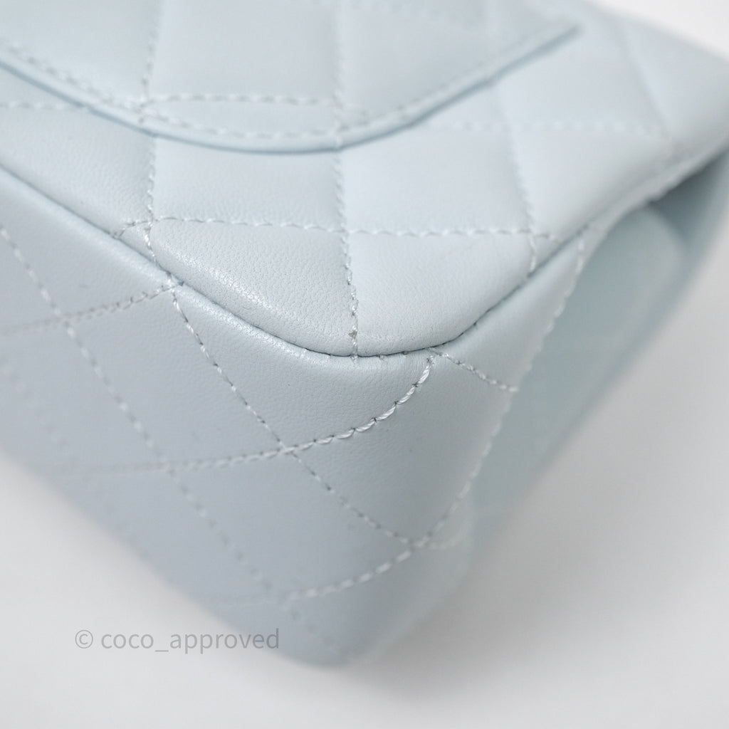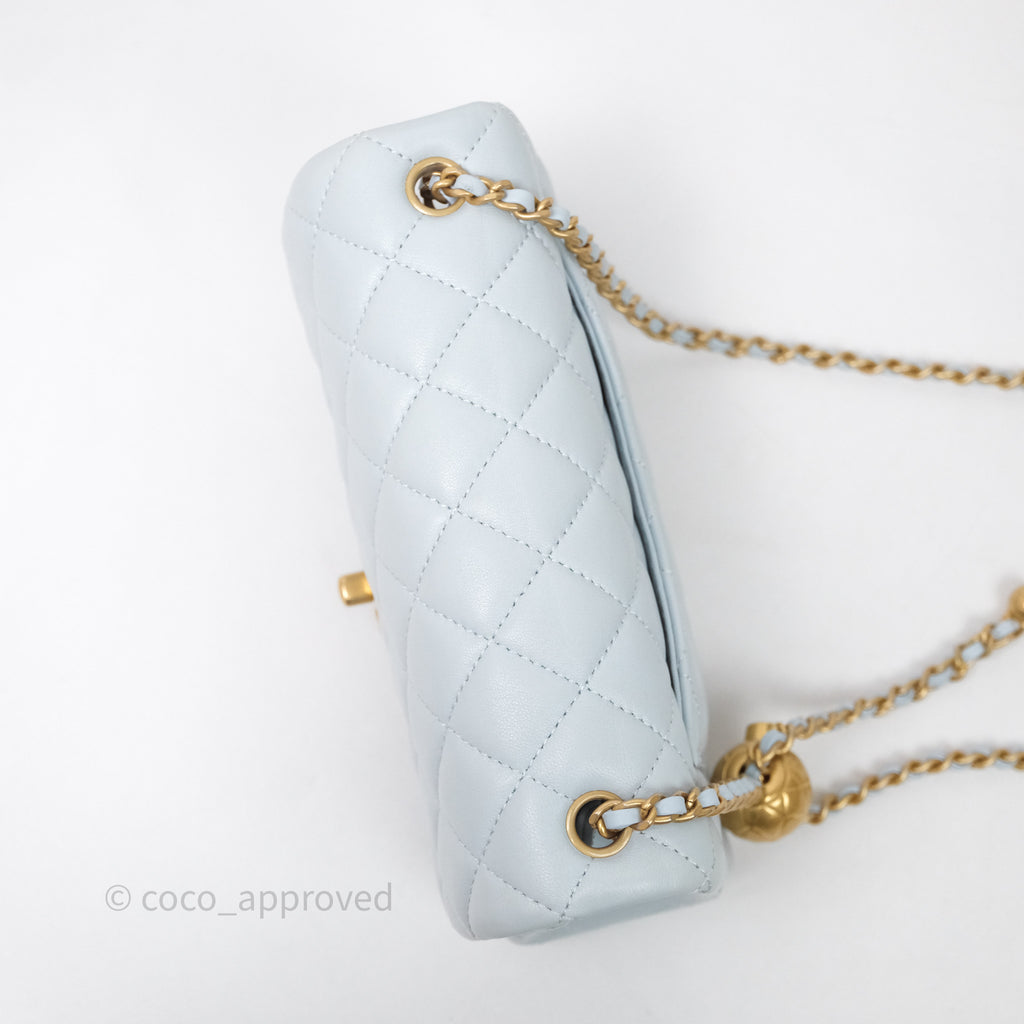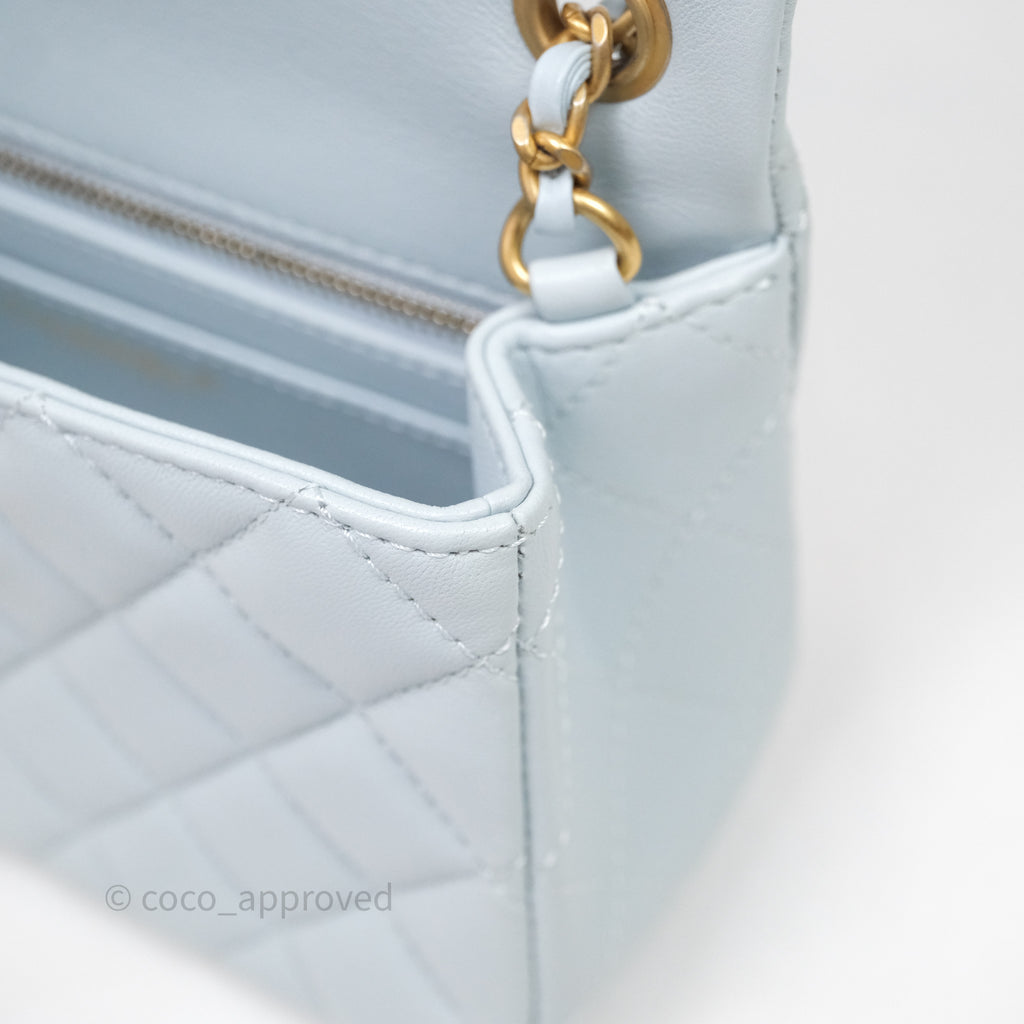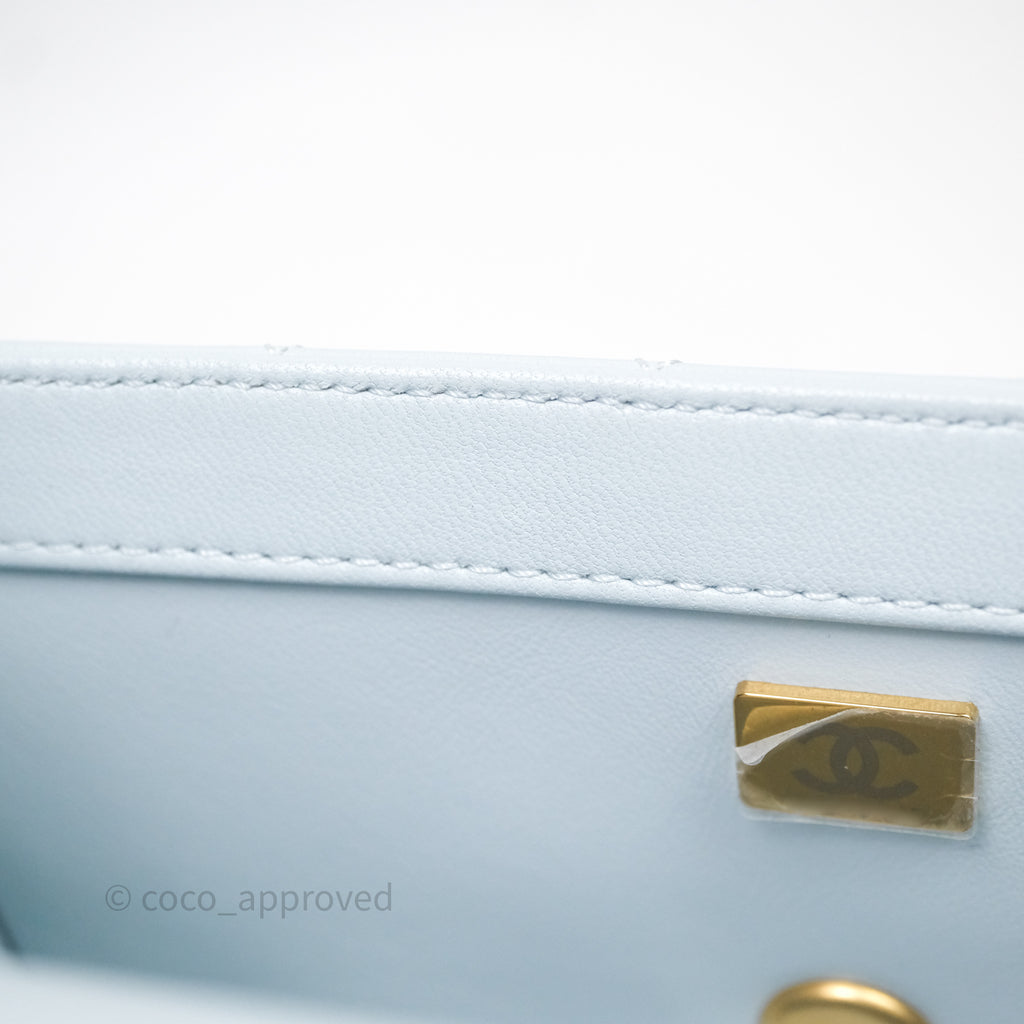 Chanel Pearl Crush Mini Rectangular Light Blue Lambskin Aged Gold Hardware