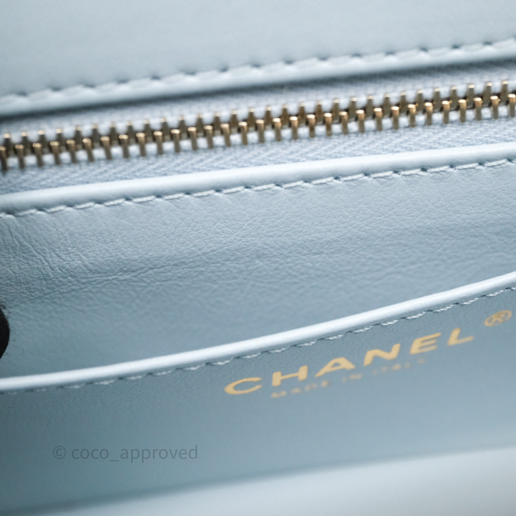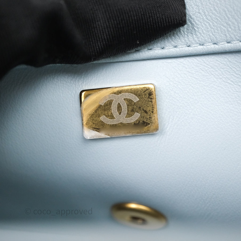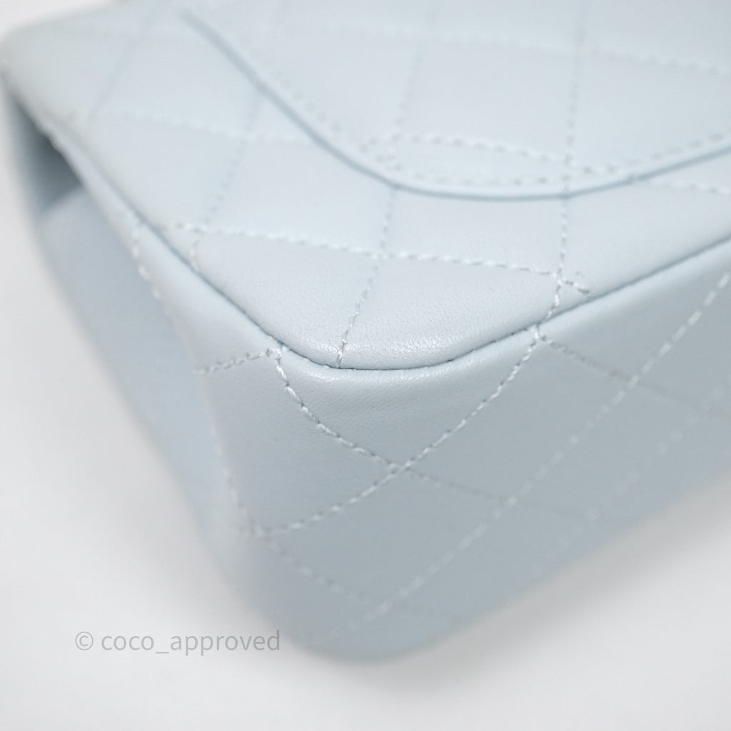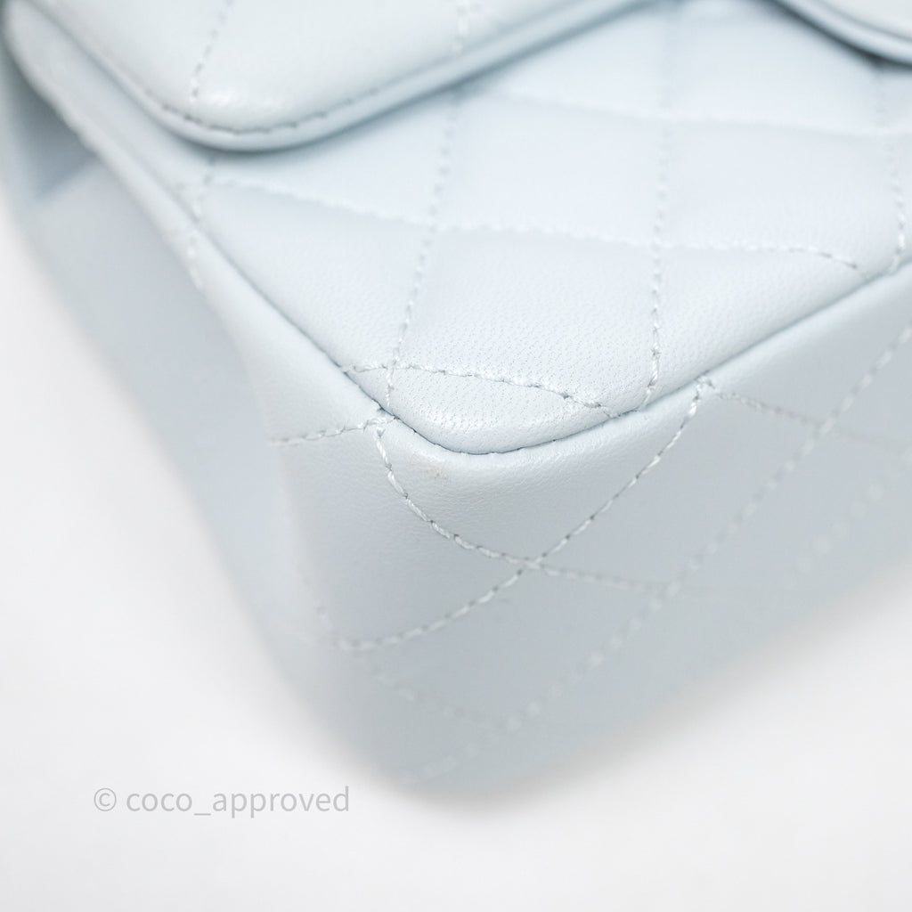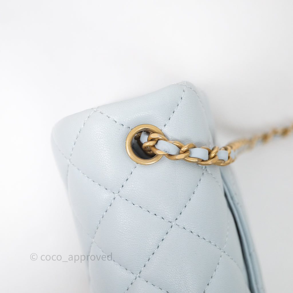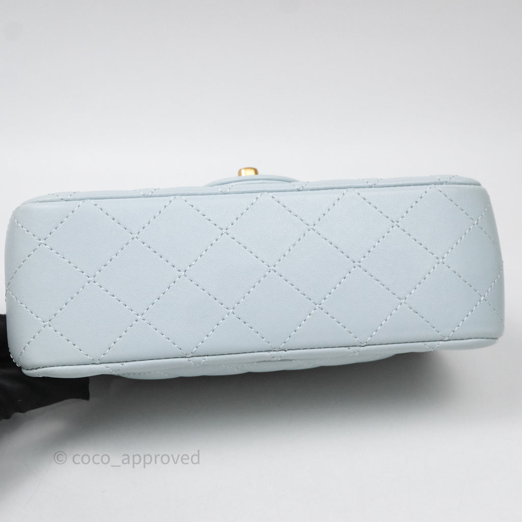 Chanel Pearl Crush Mini Rectangular Light Blue Lambskin Aged Gold Hardware