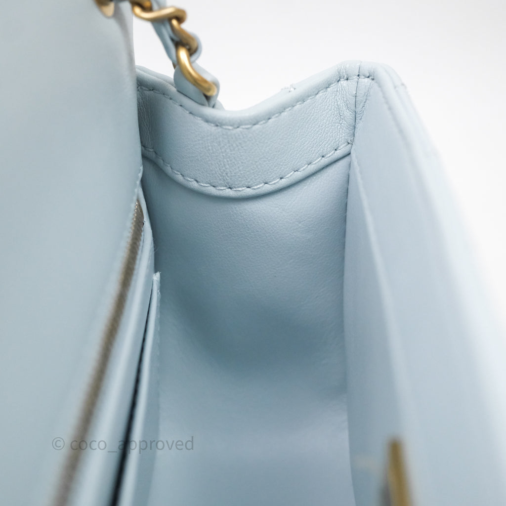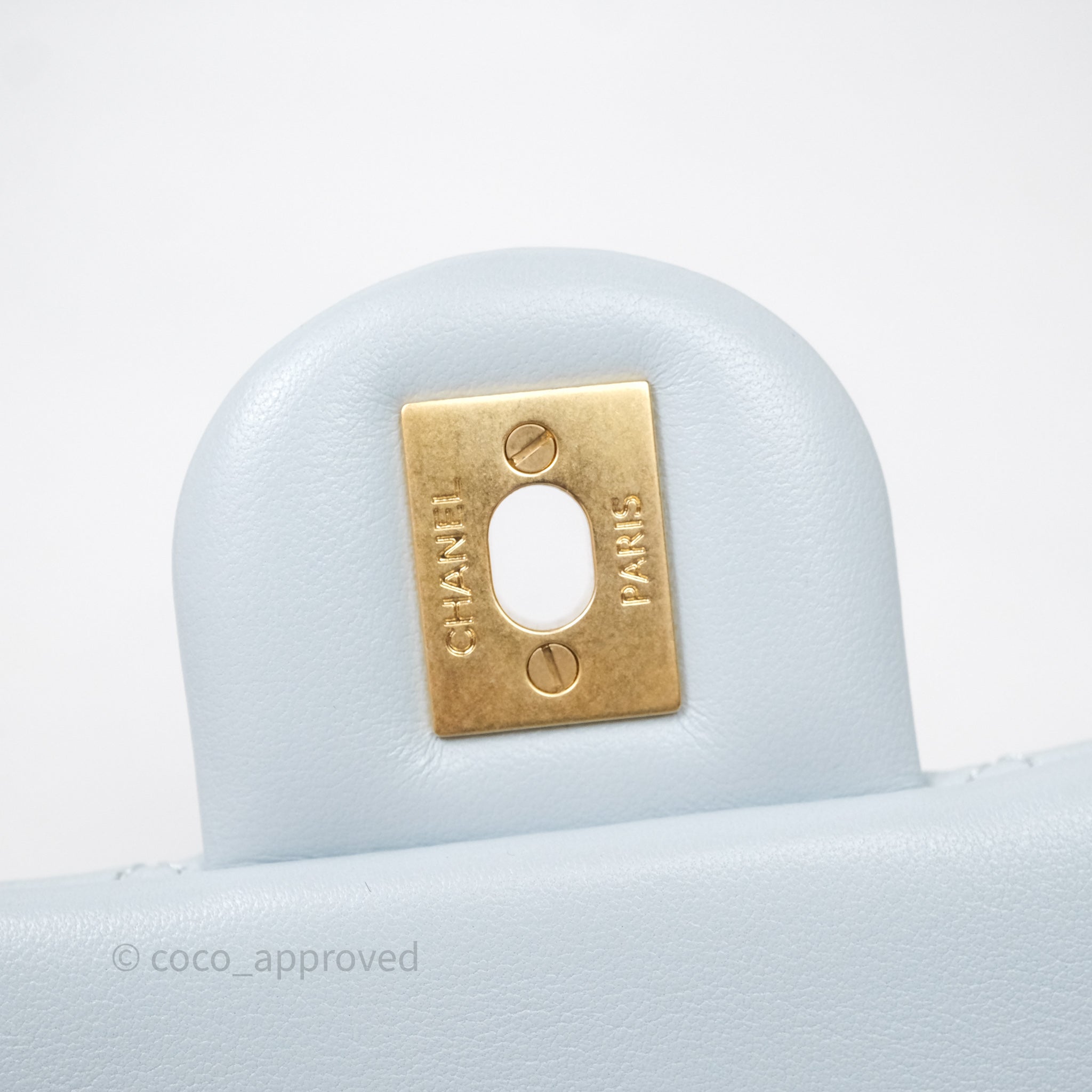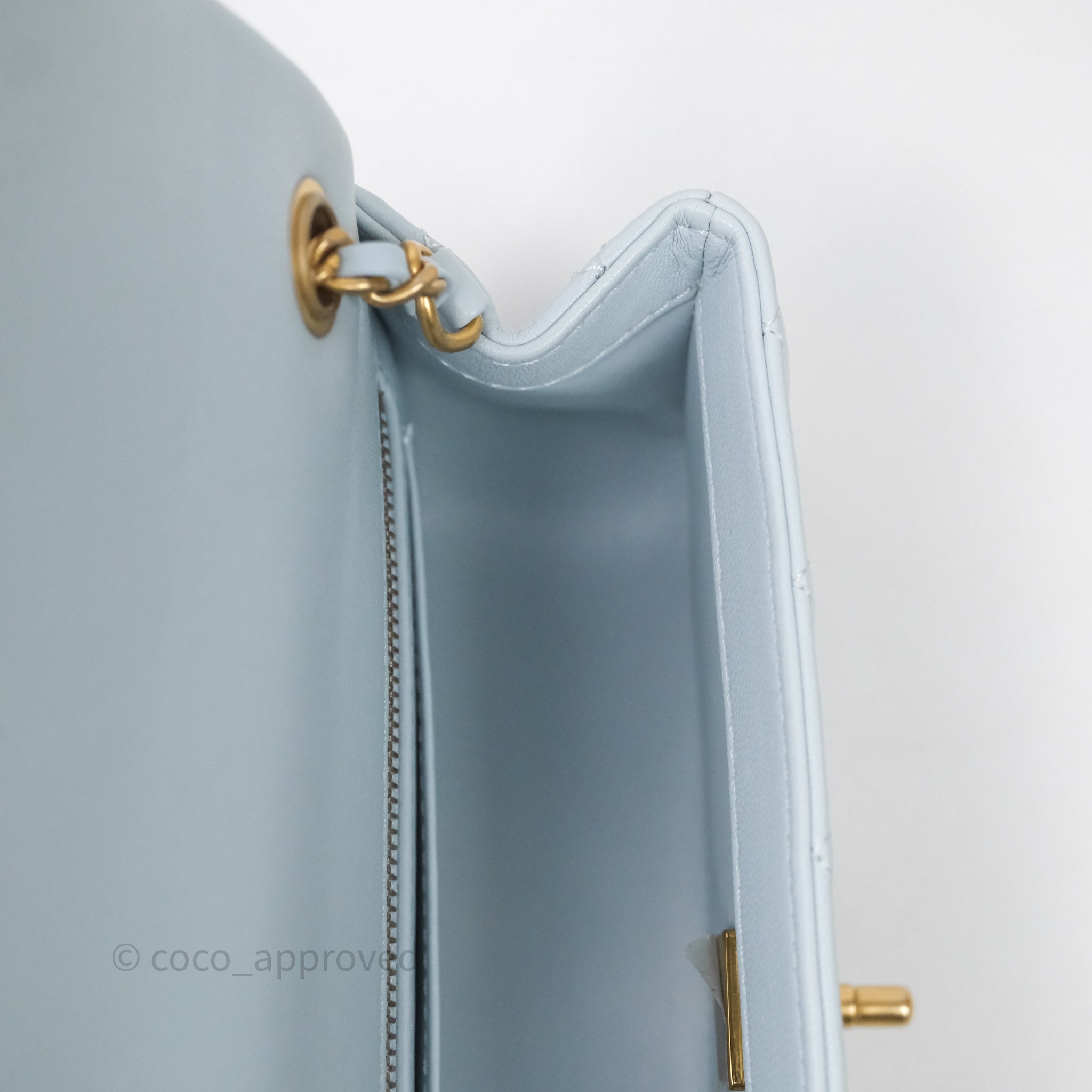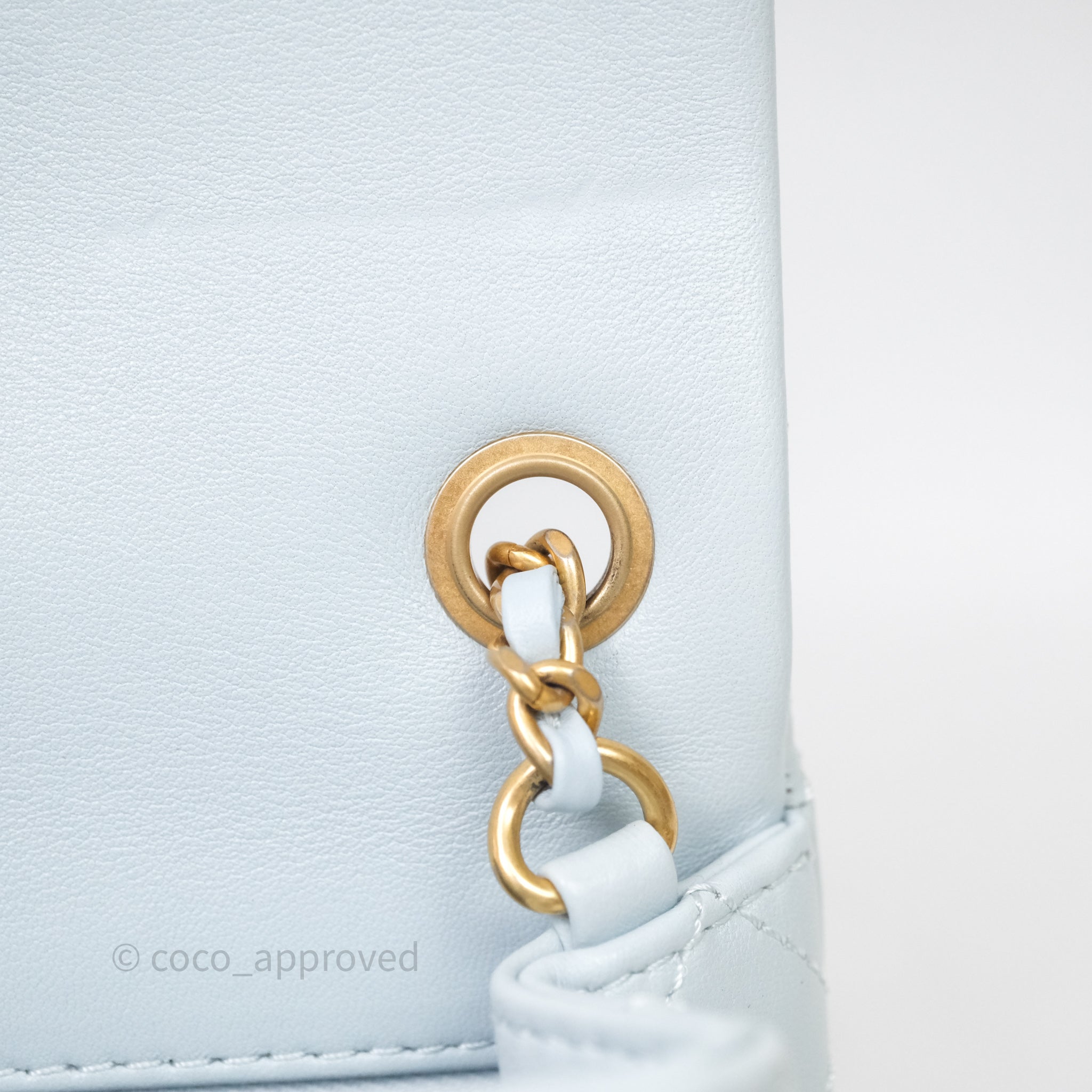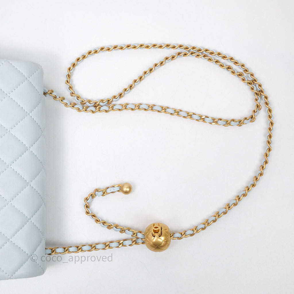Chanel Pearl Crush Mini Rectangular Light Blue Lambskin Aged Gold Hardware