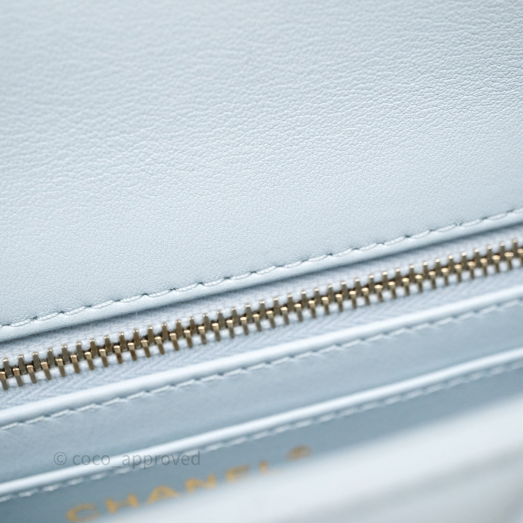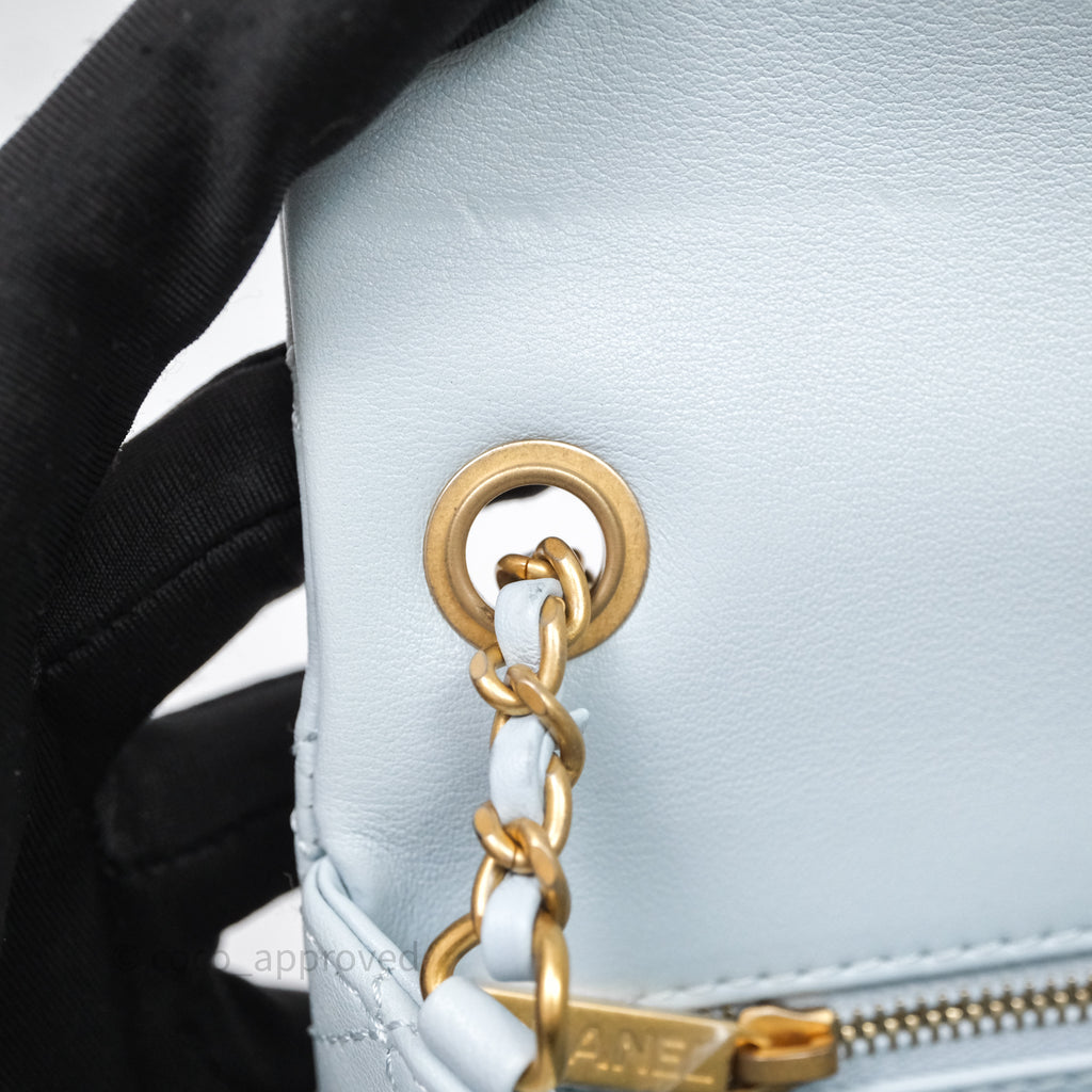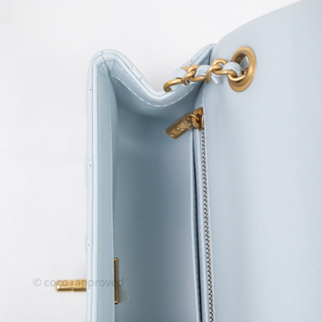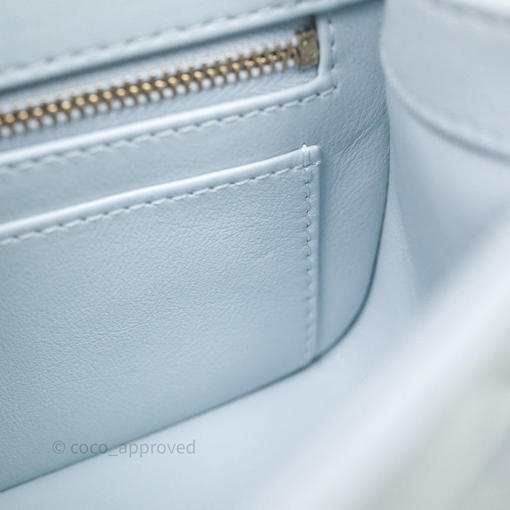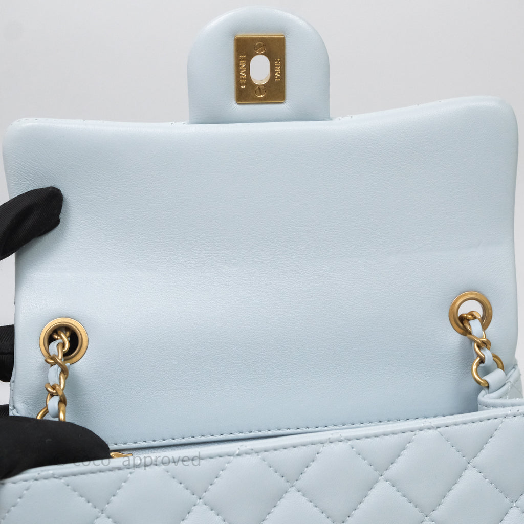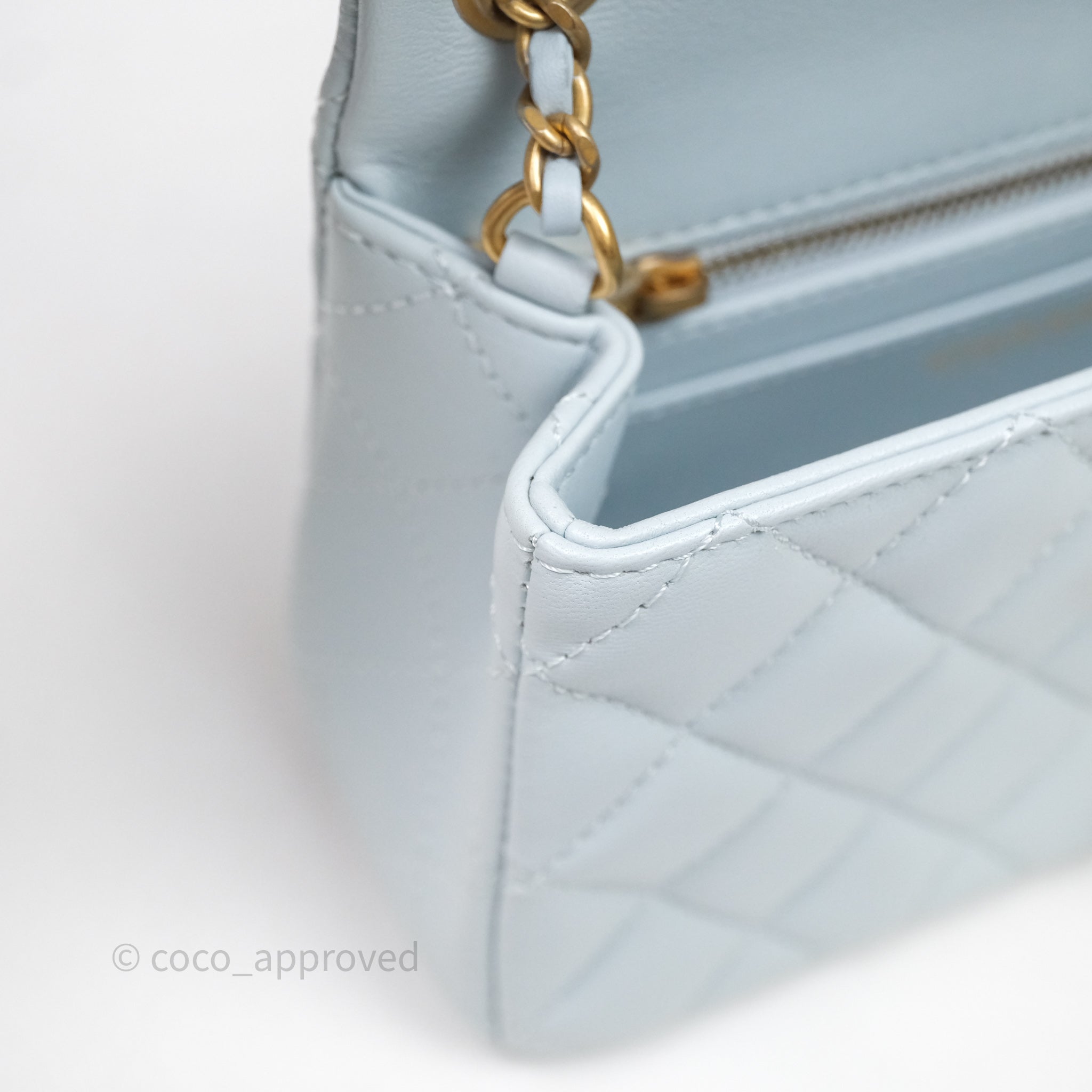 Chanel Pearl Crush Mini Rectangular Light Blue Lambskin Aged Gold Hardware
