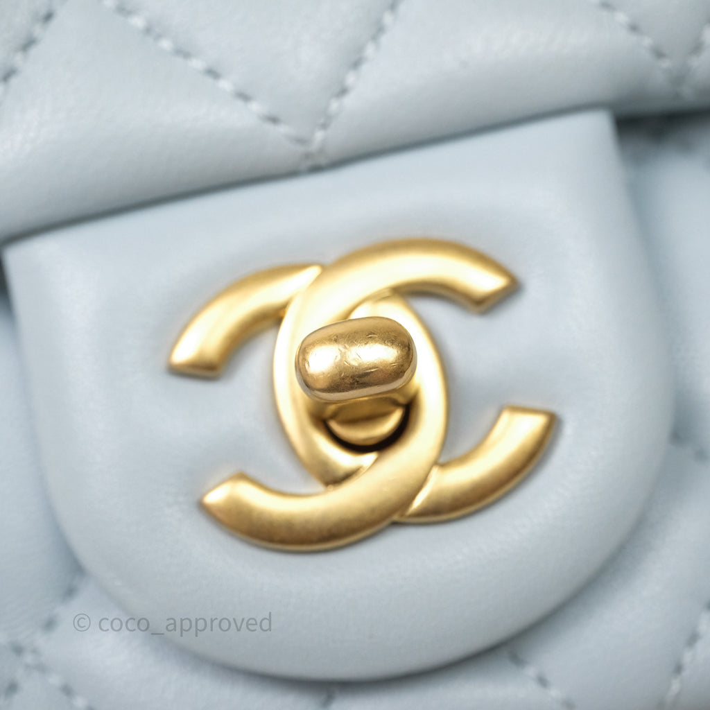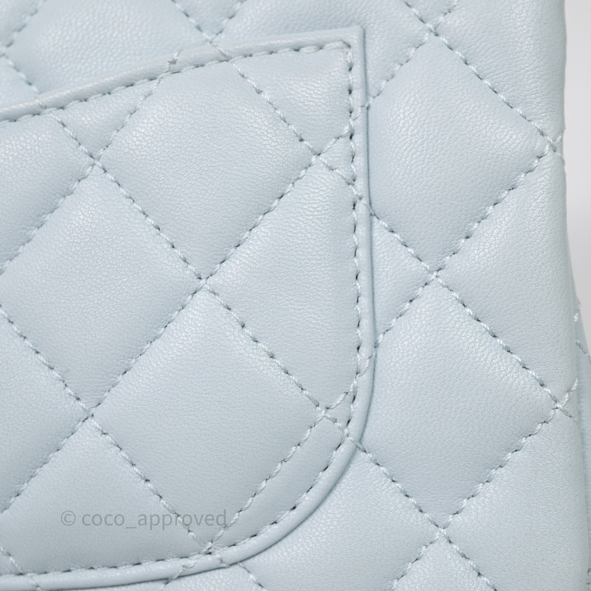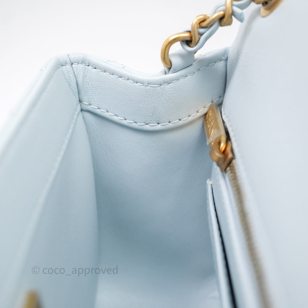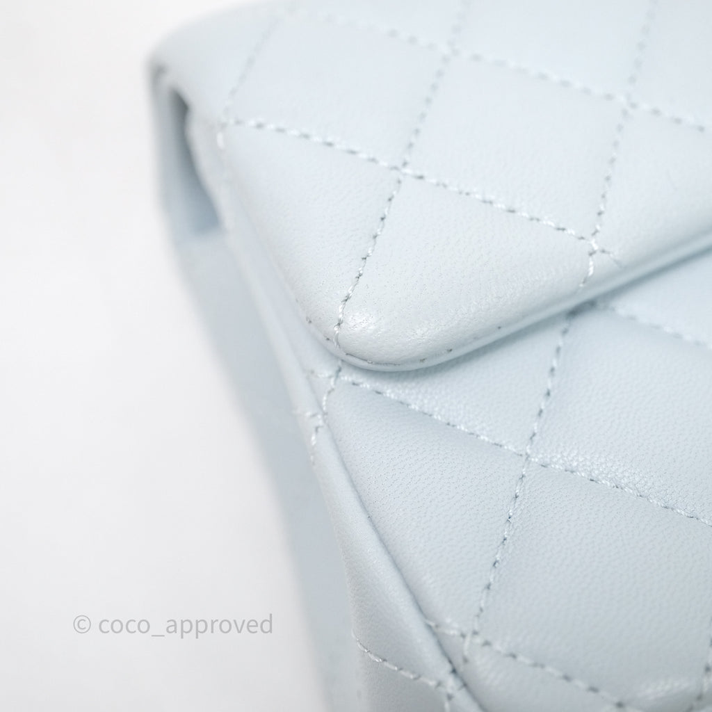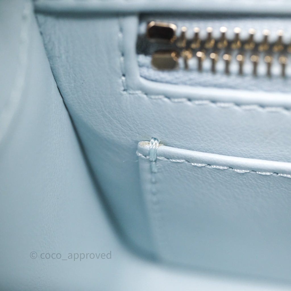 Chanel Pearl Crush Mini Rectangular Light Blue Lambskin Aged Gold Hardware