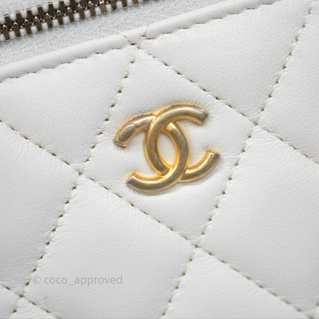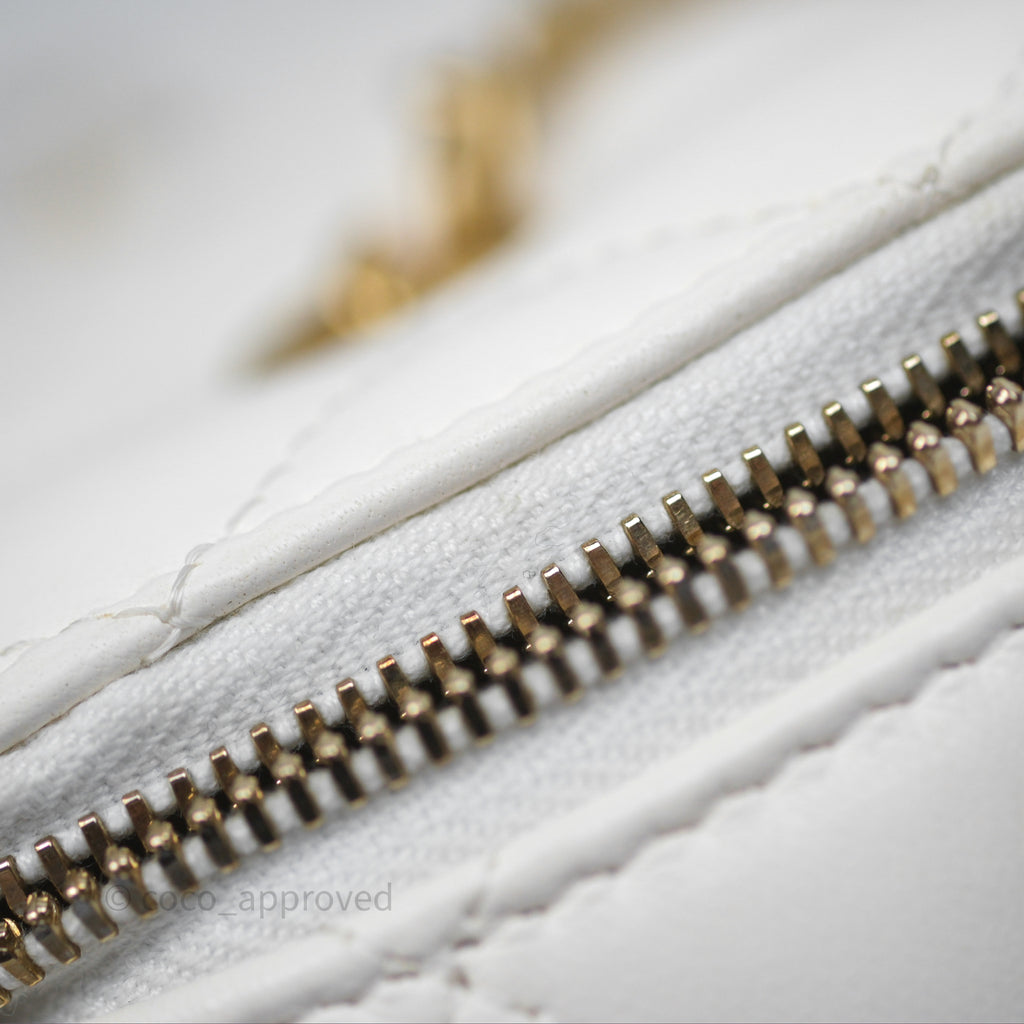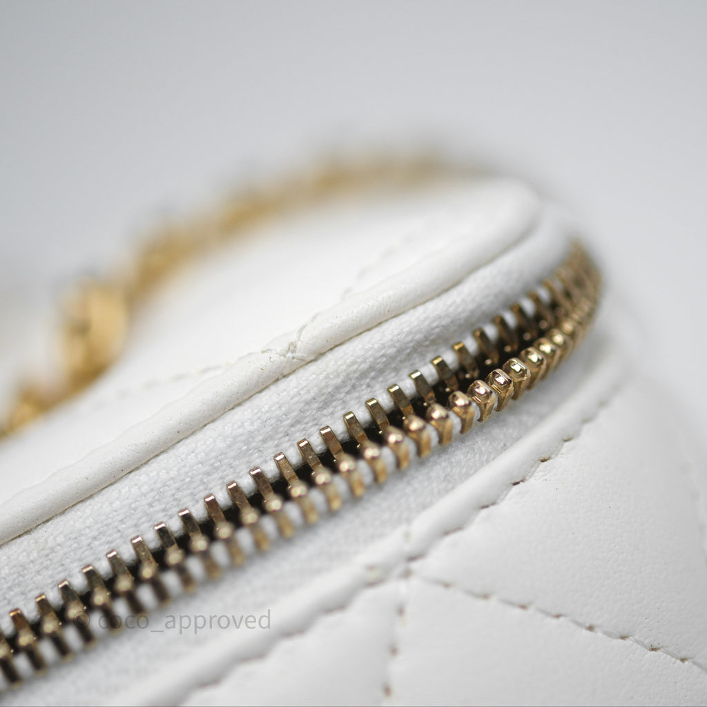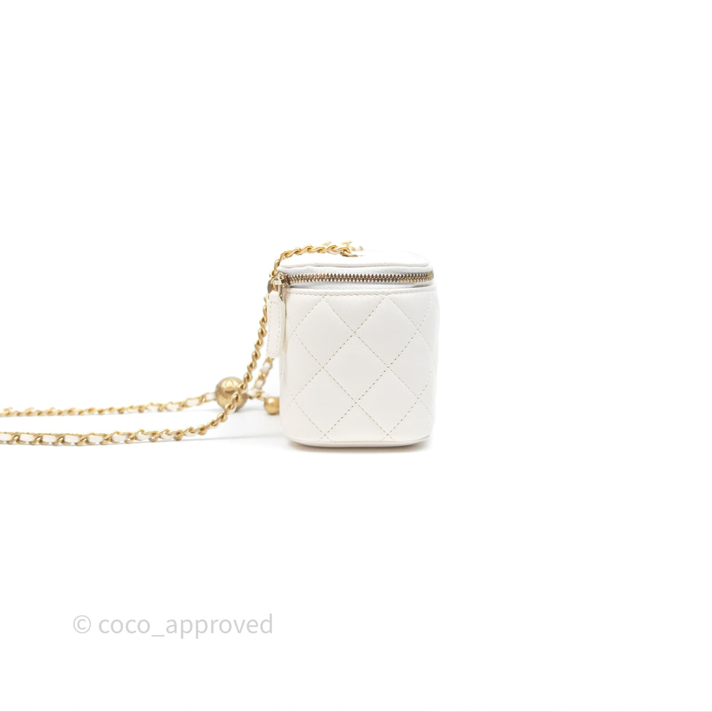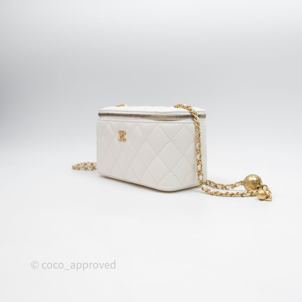 Chanel Pearl Crush Vanity With Chain White Lambskin Aged Gold Hardware