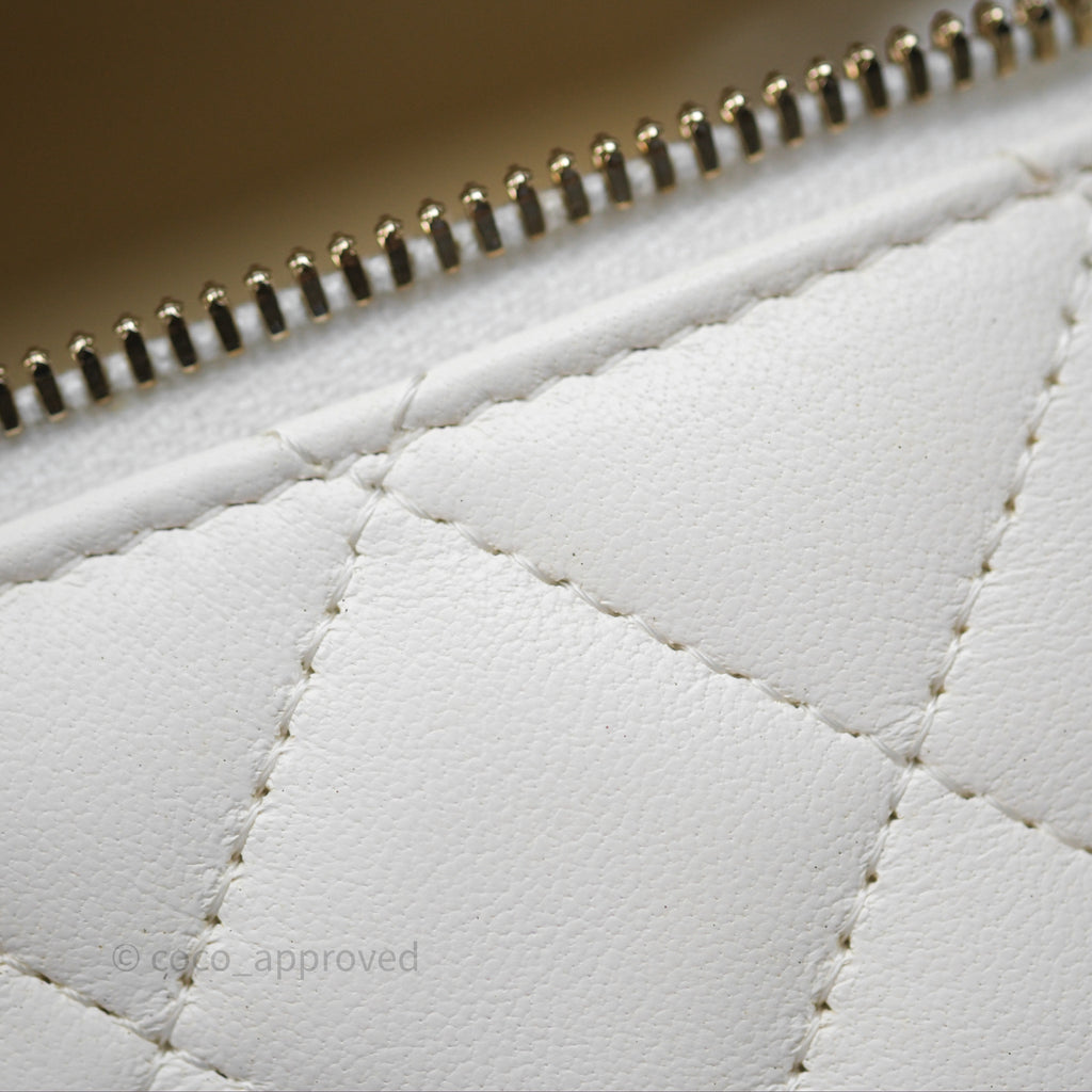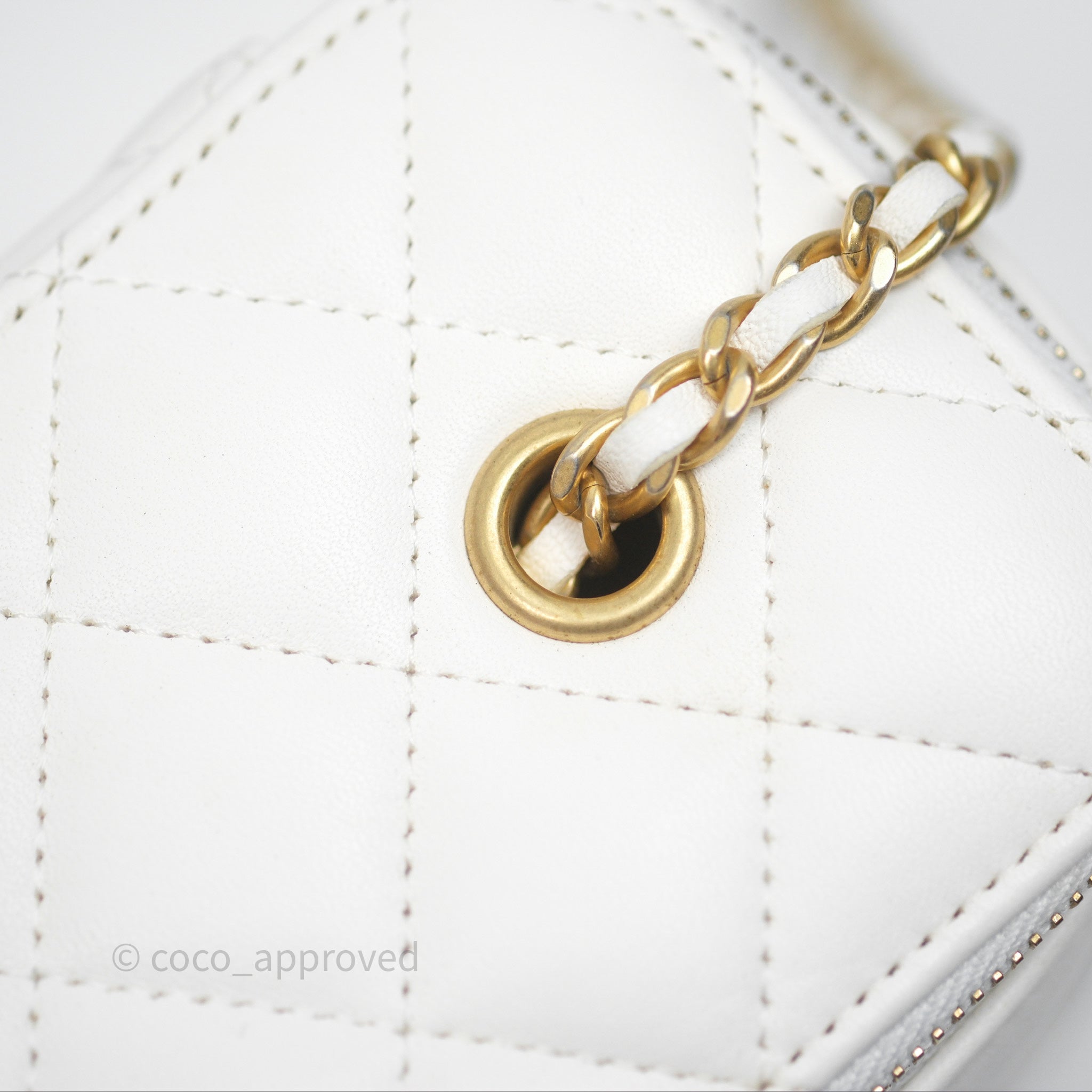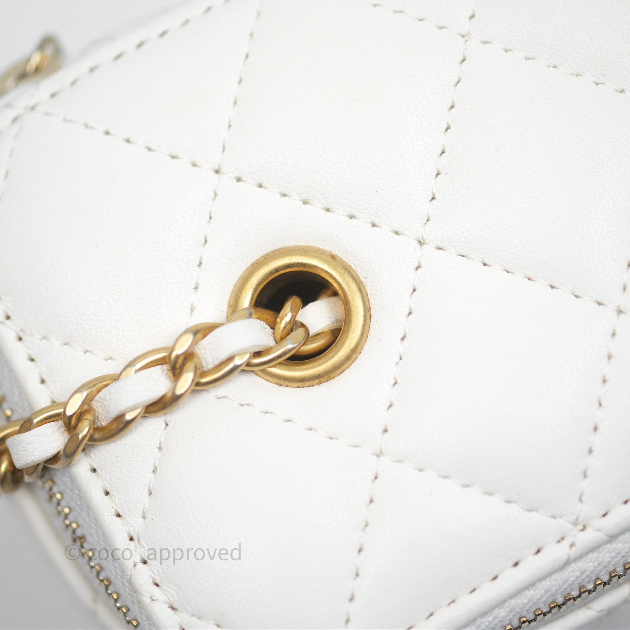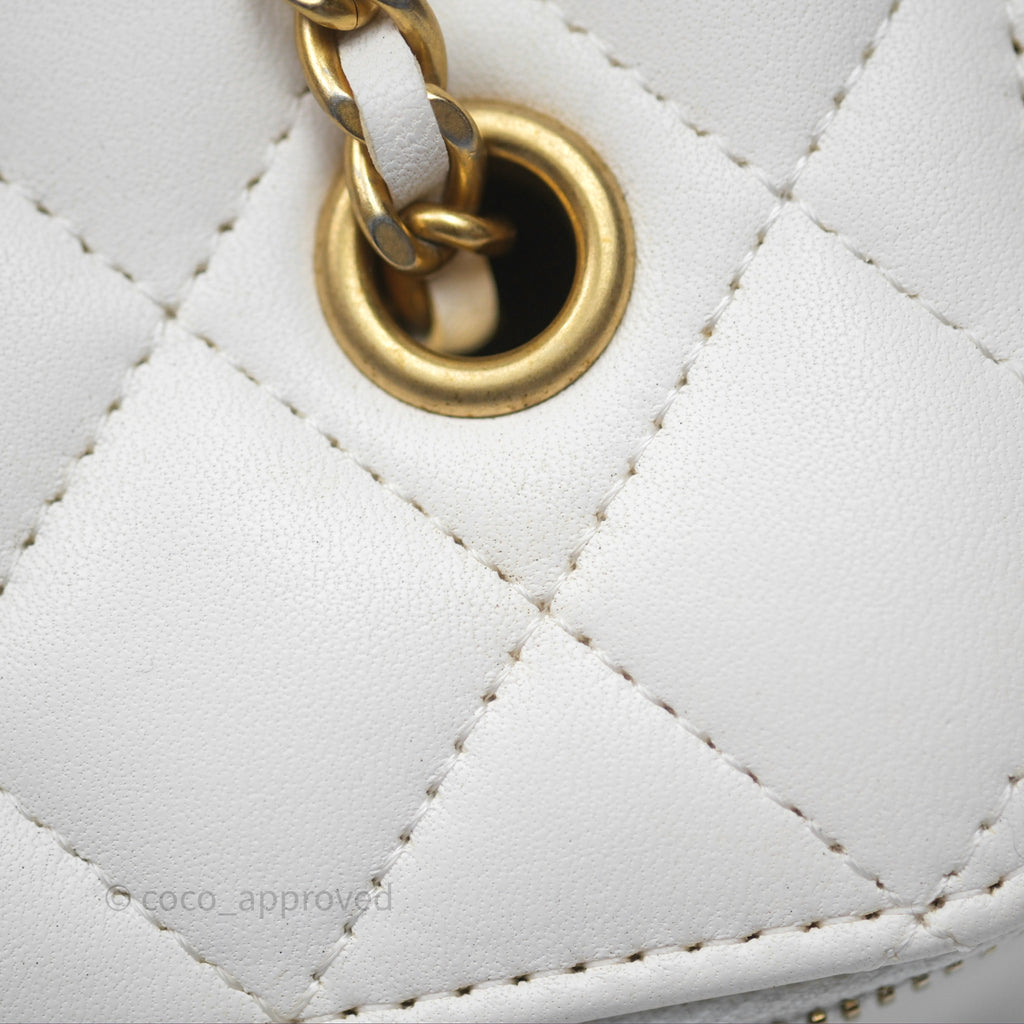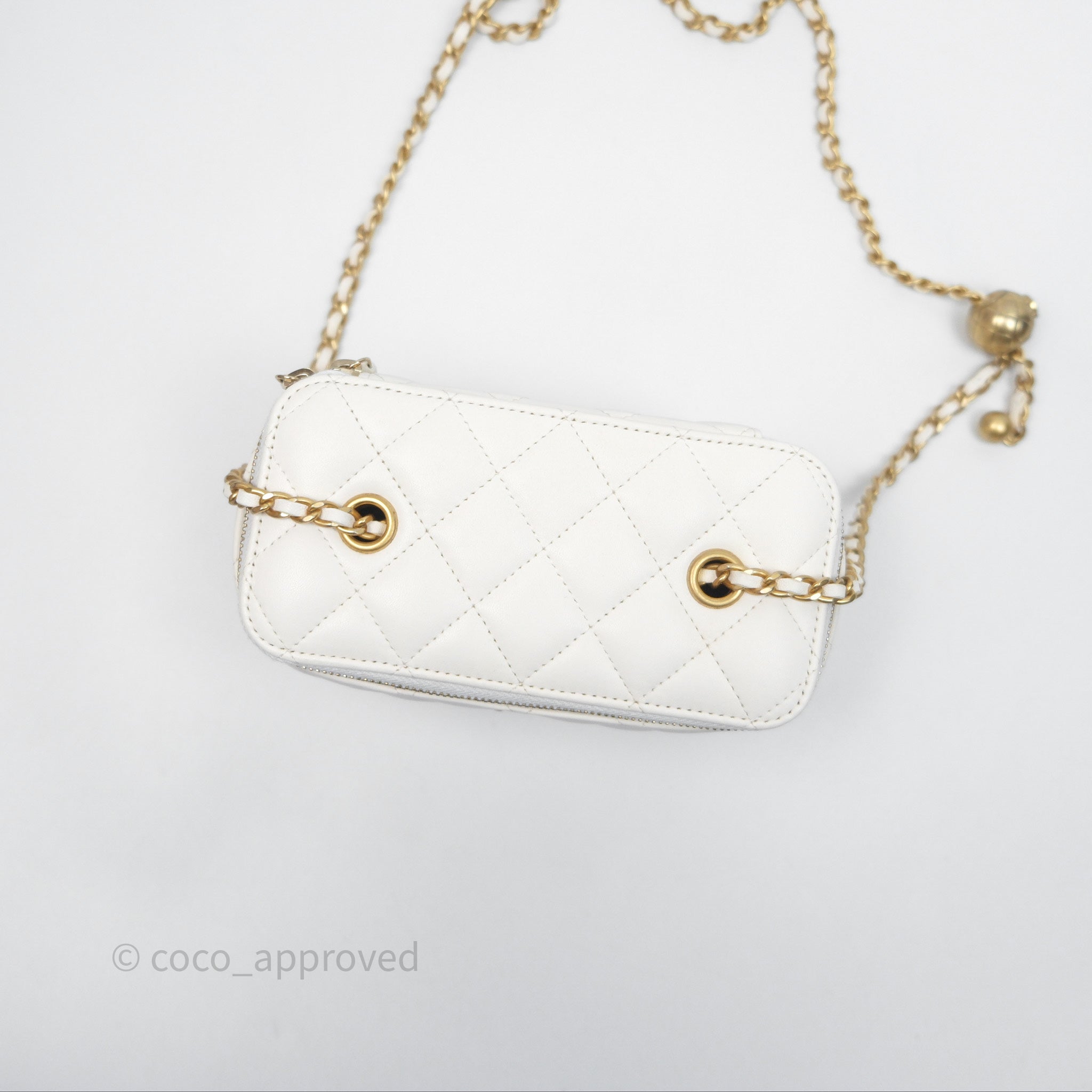 Chanel Pearl Crush Vanity With Chain White Lambskin Aged Gold Hardware