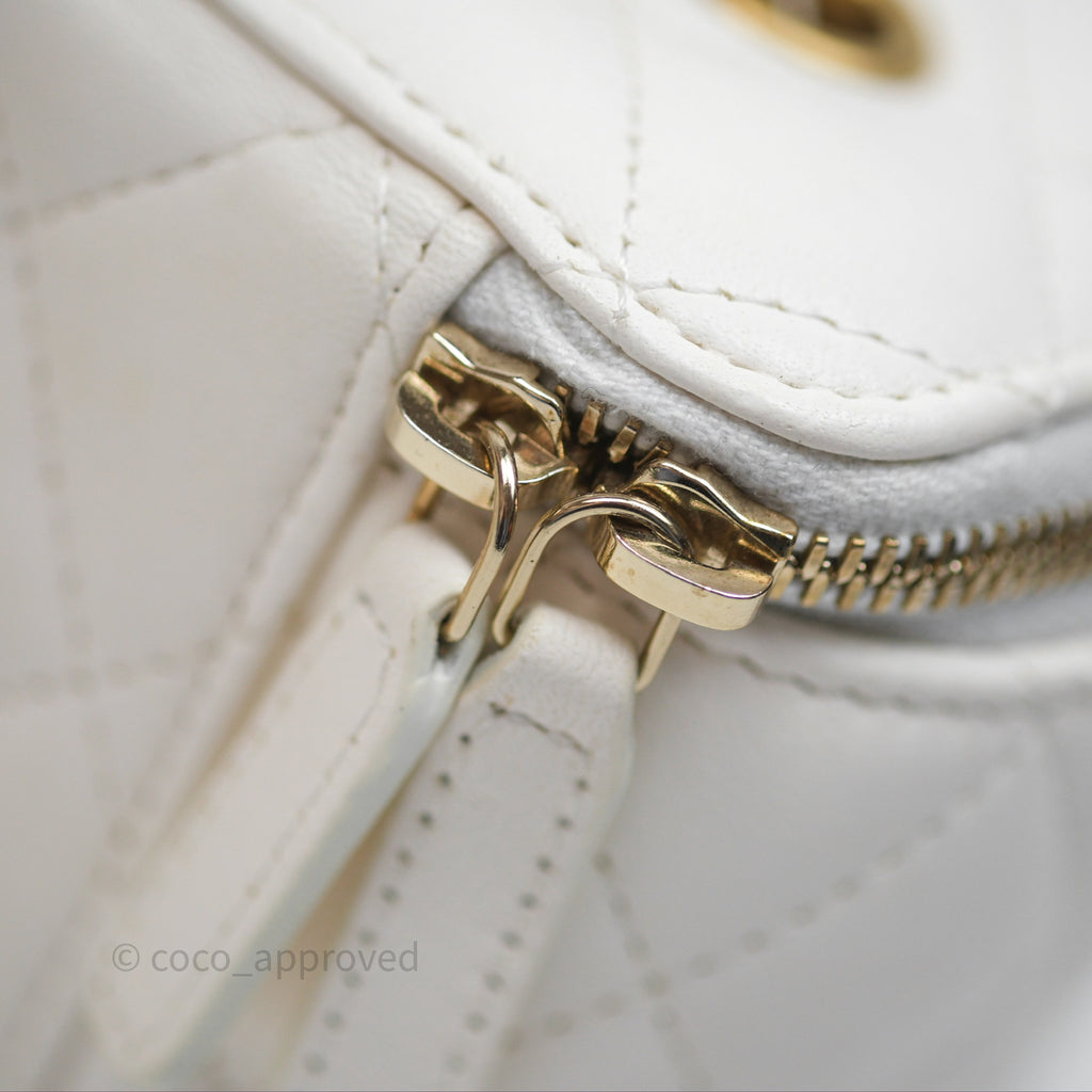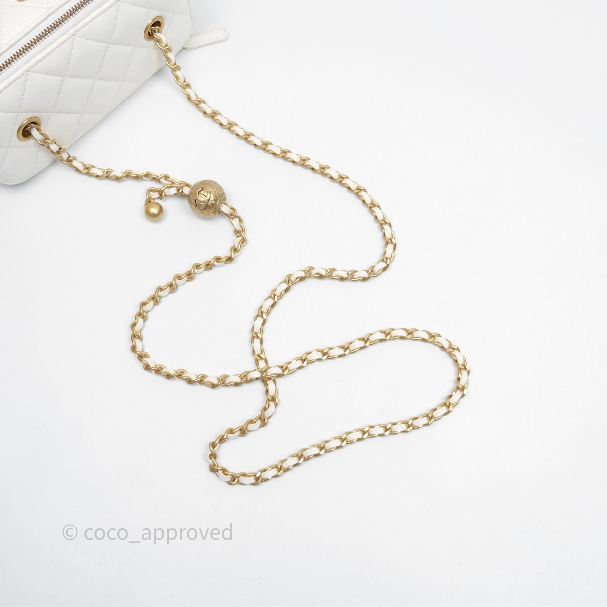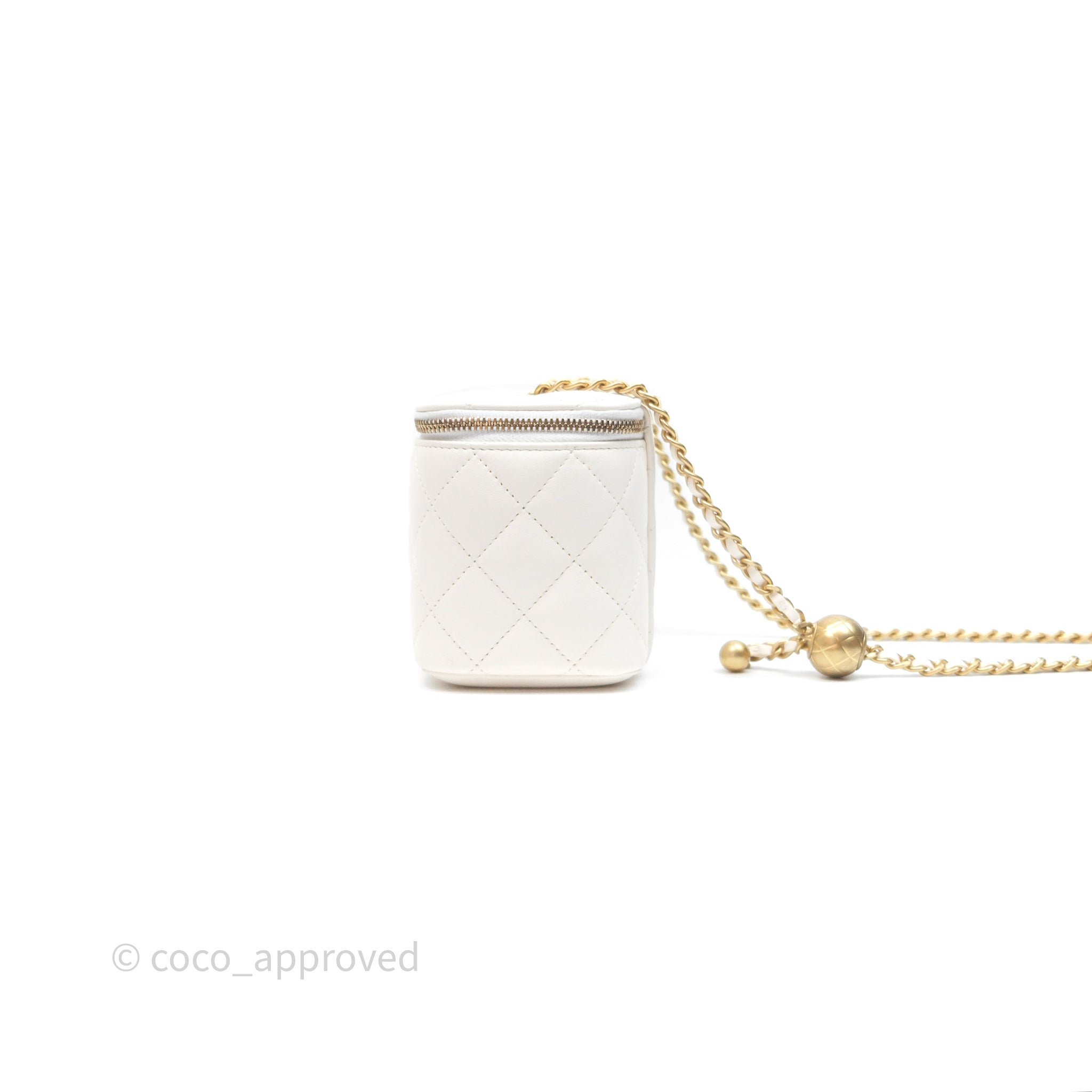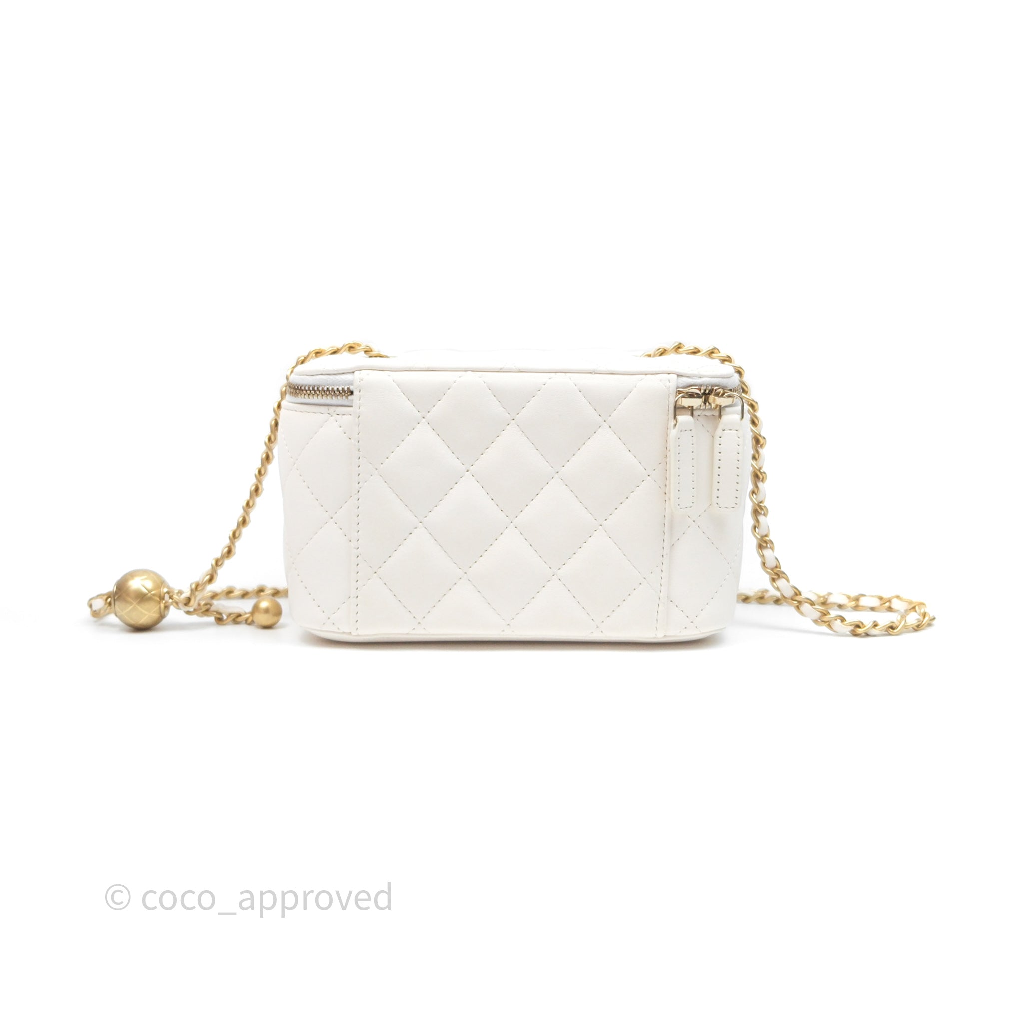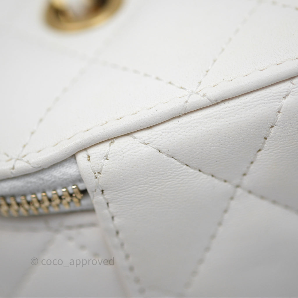Chanel Pearl Crush Vanity With Chain White Lambskin Aged Gold Hardware