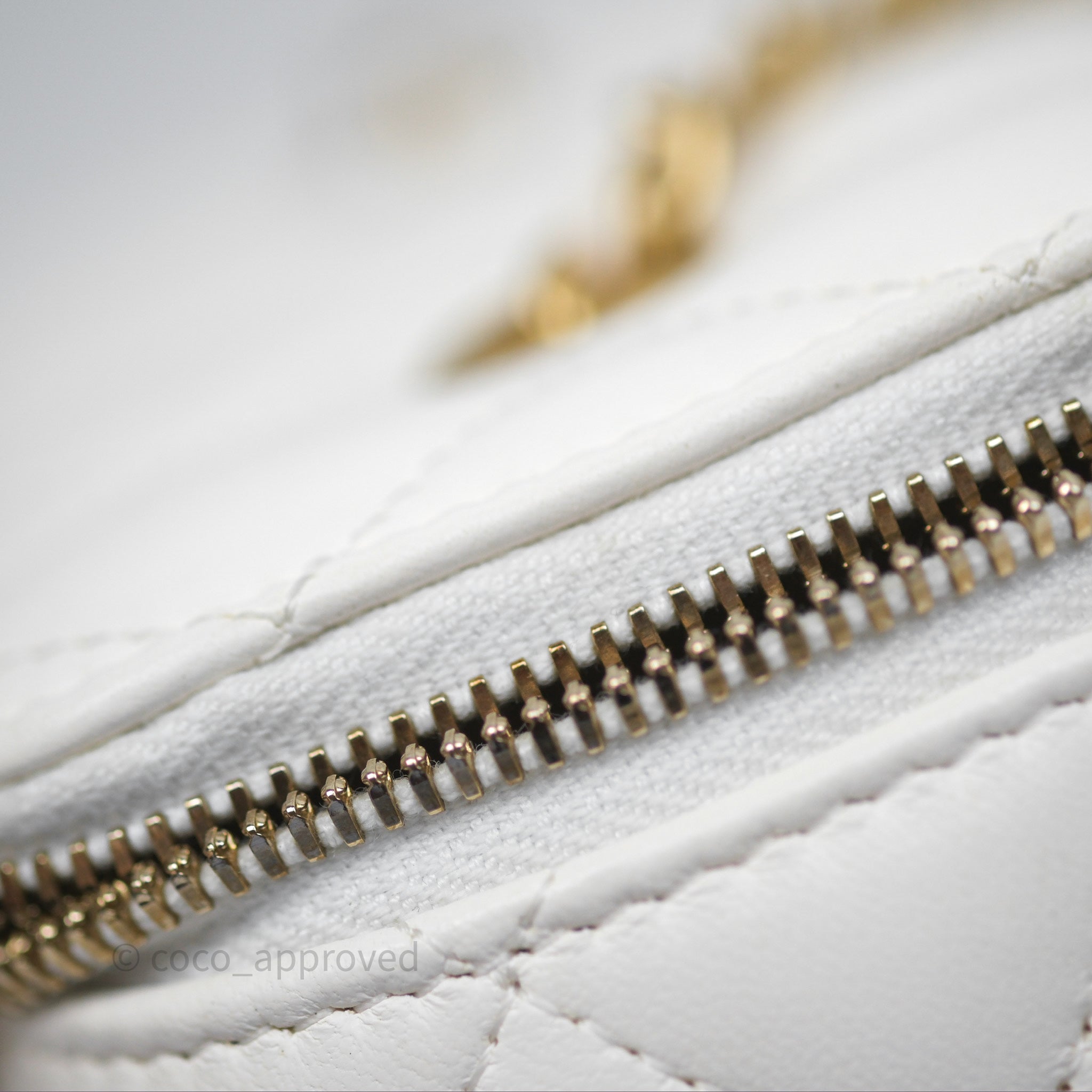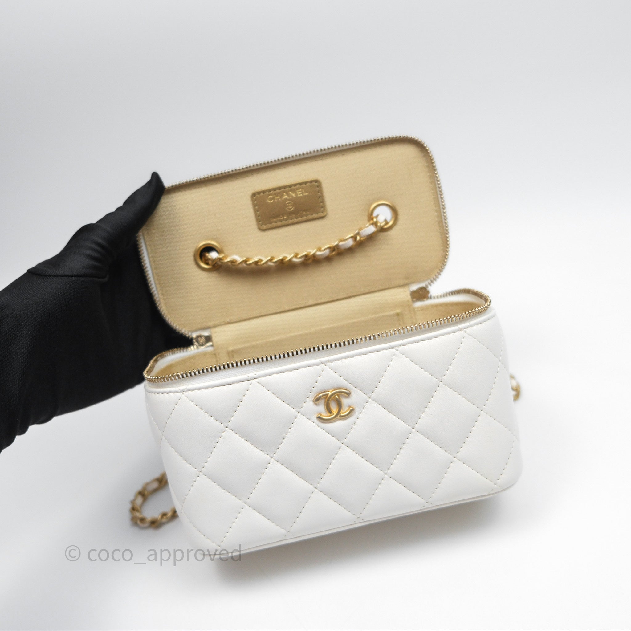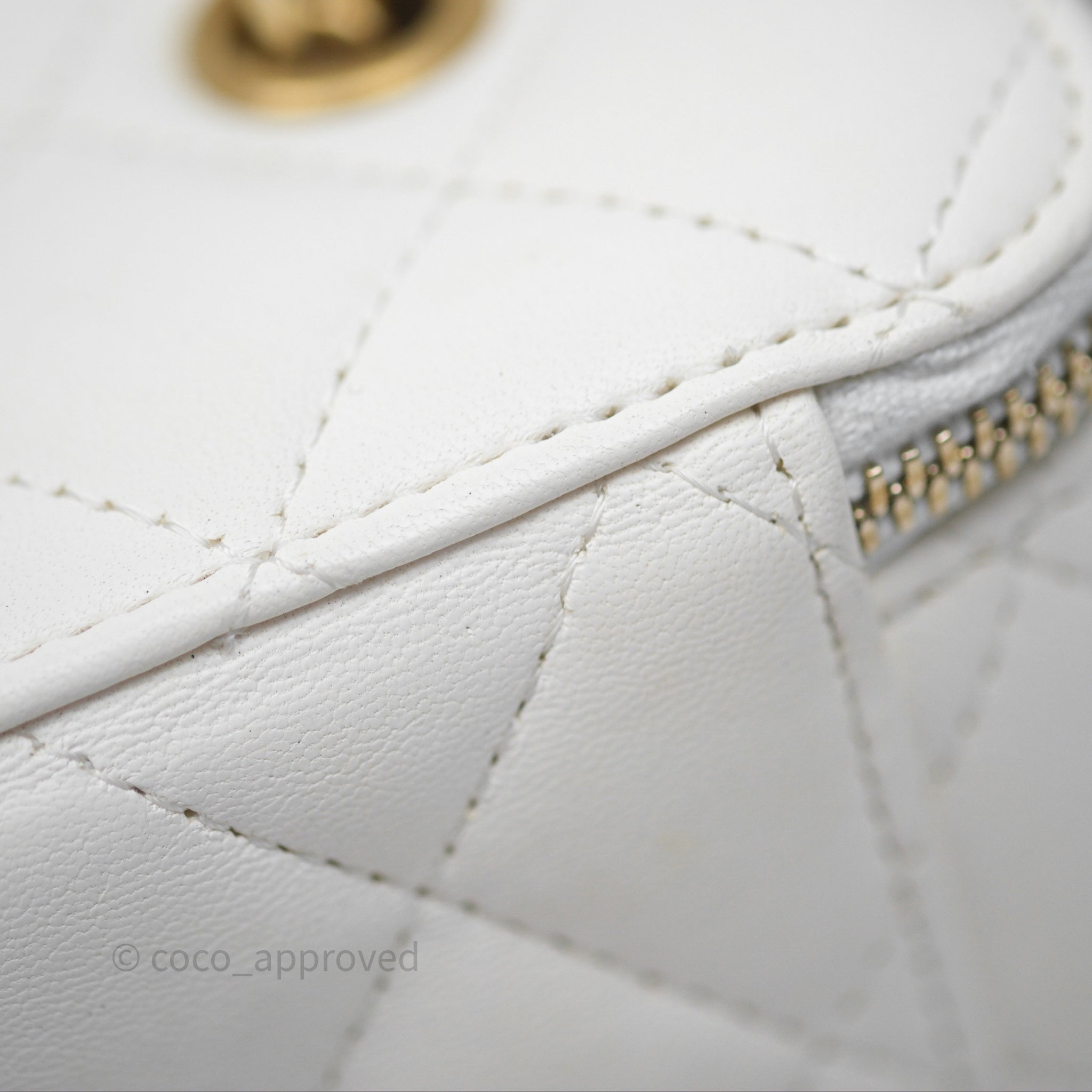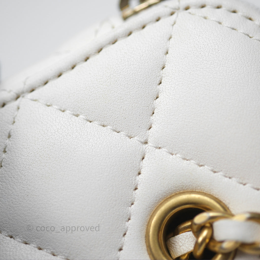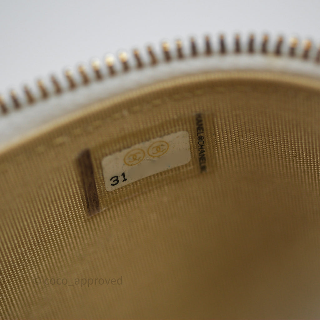 Chanel Pearl Crush Vanity With Chain White Lambskin Aged Gold Hardware