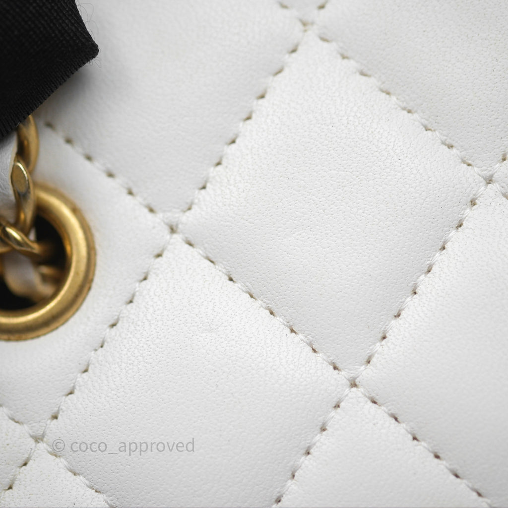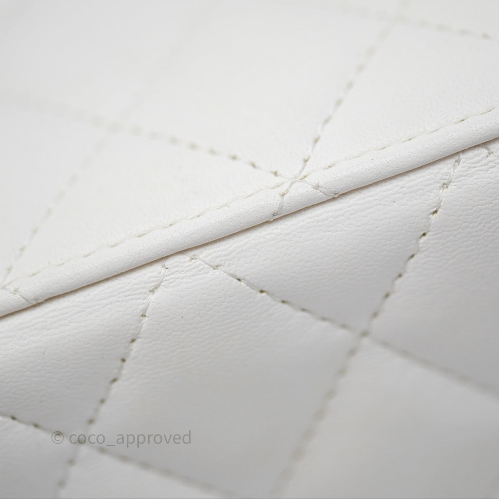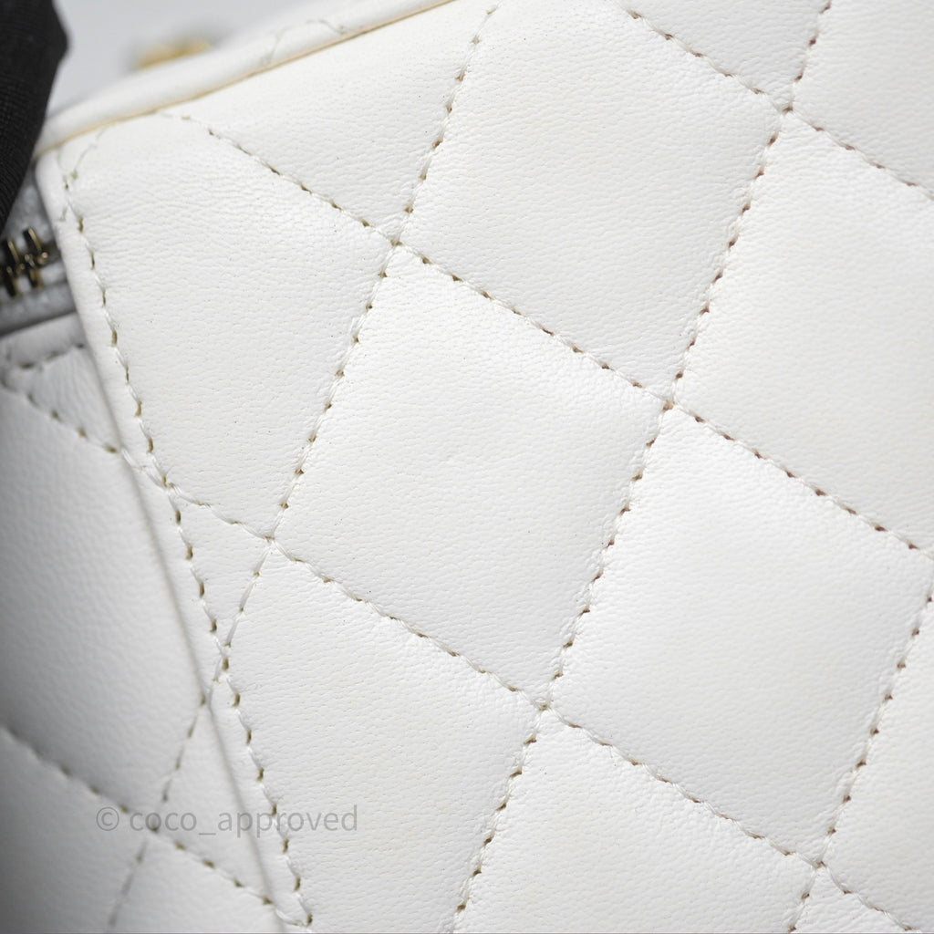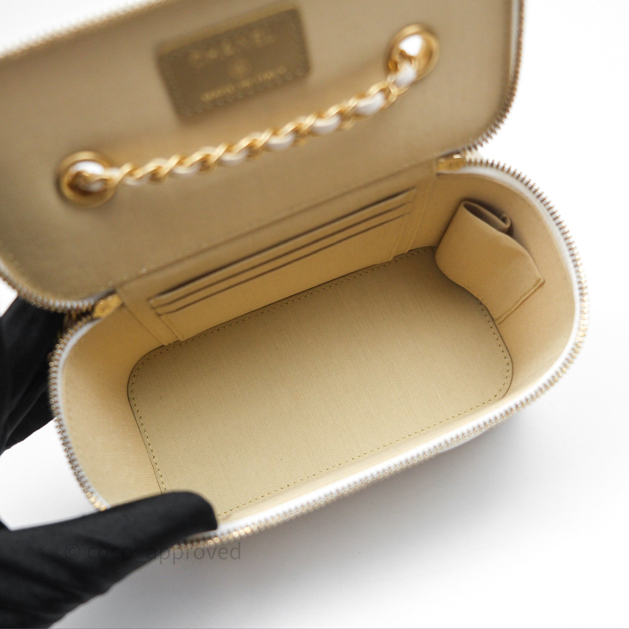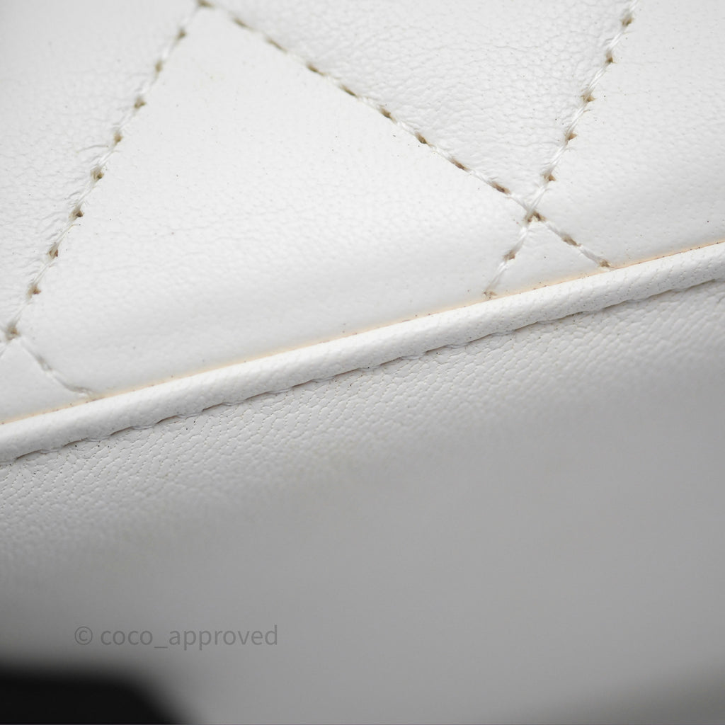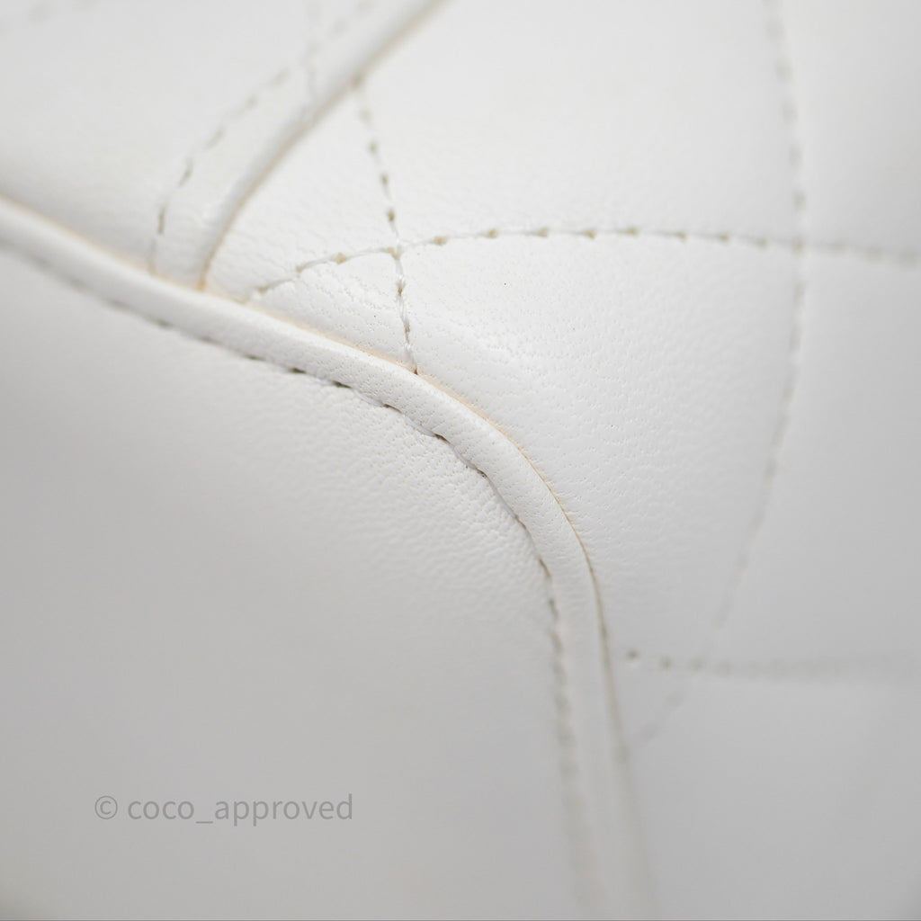 Chanel Pearl Crush Vanity With Chain White Lambskin Aged Gold Hardware