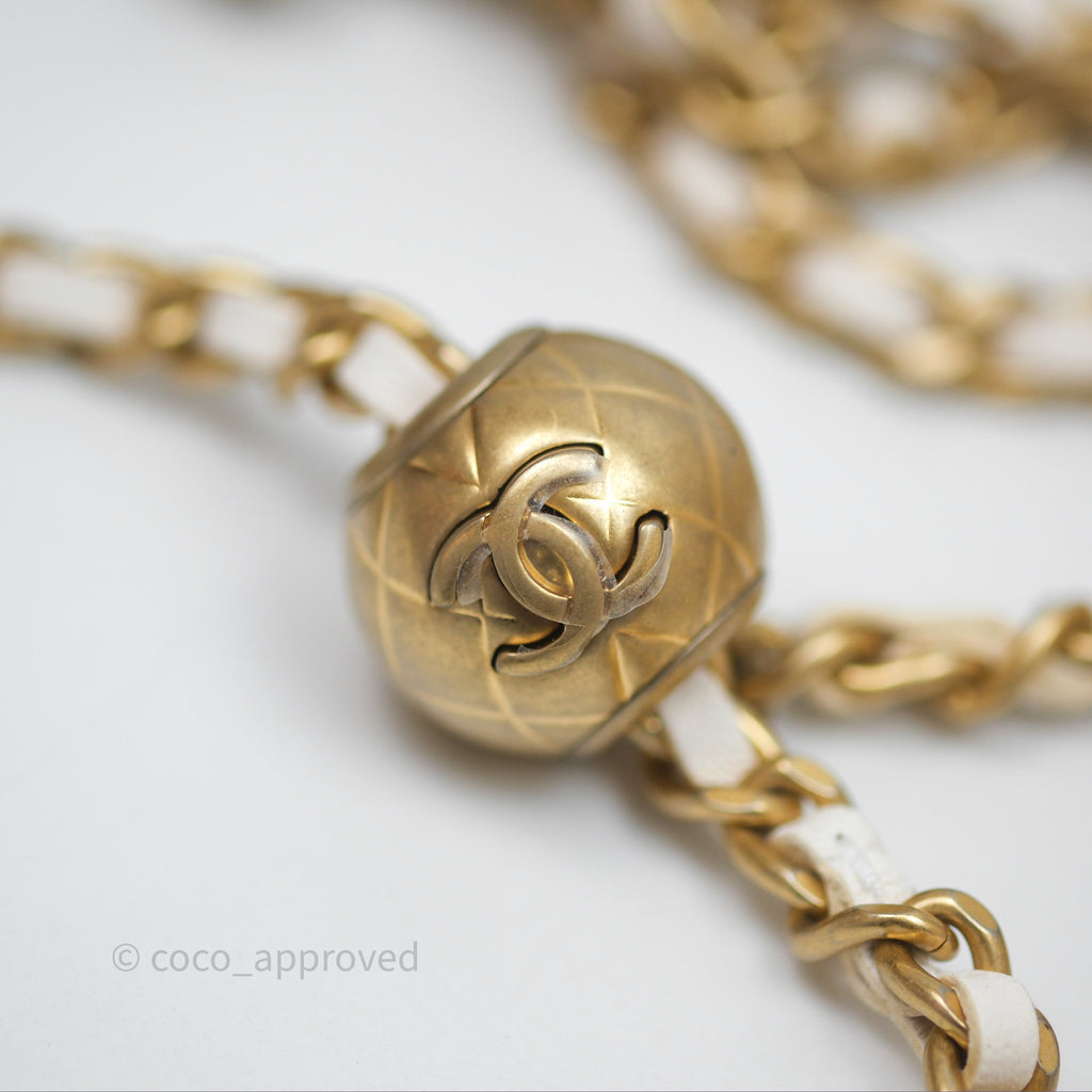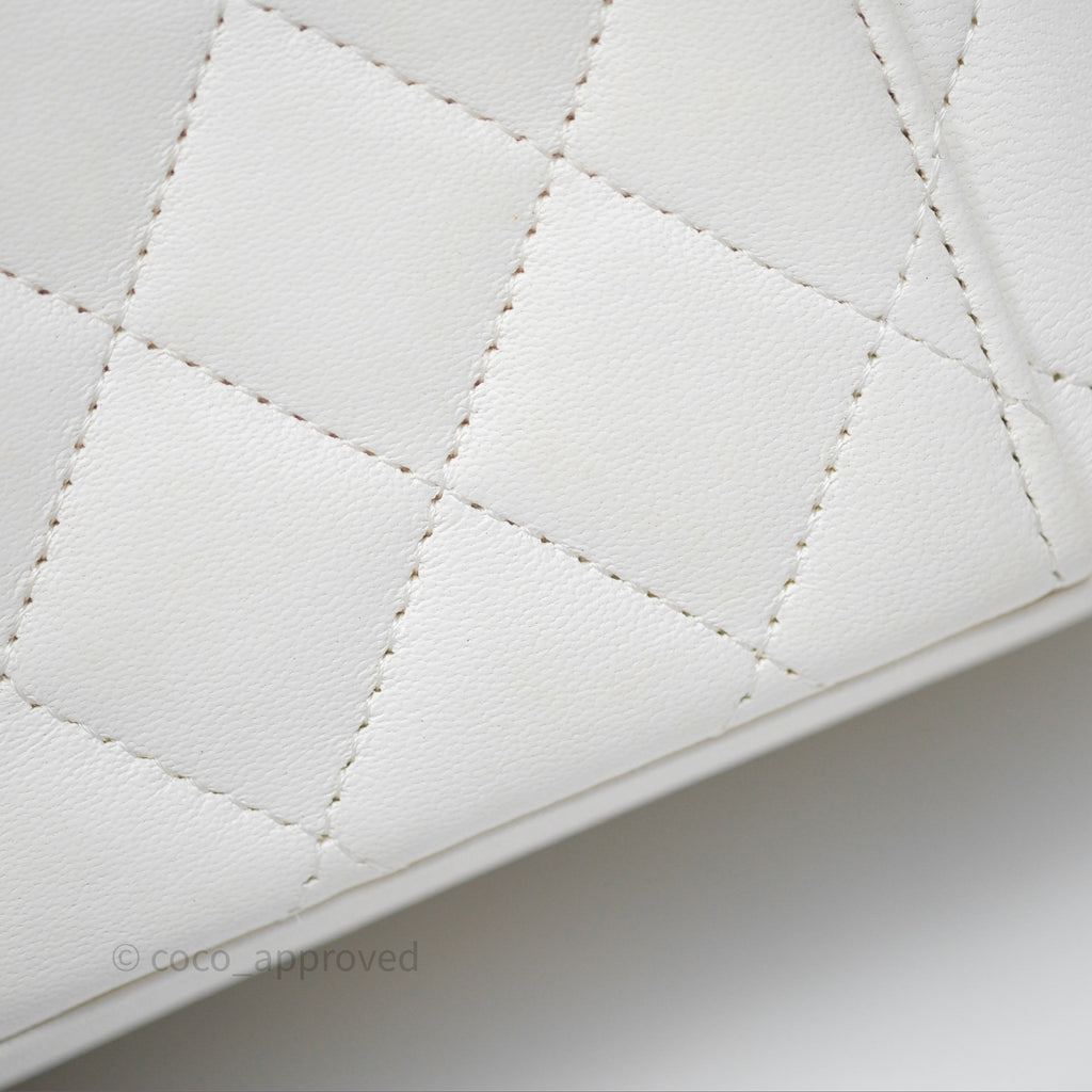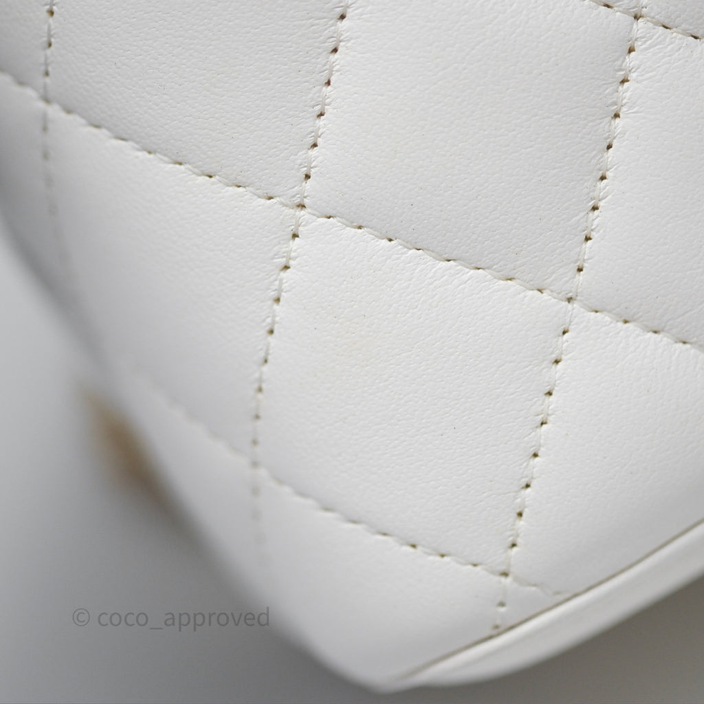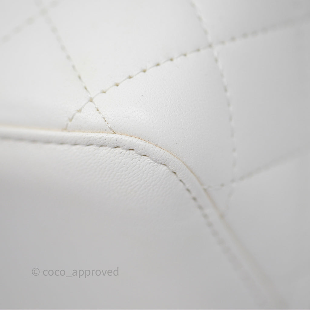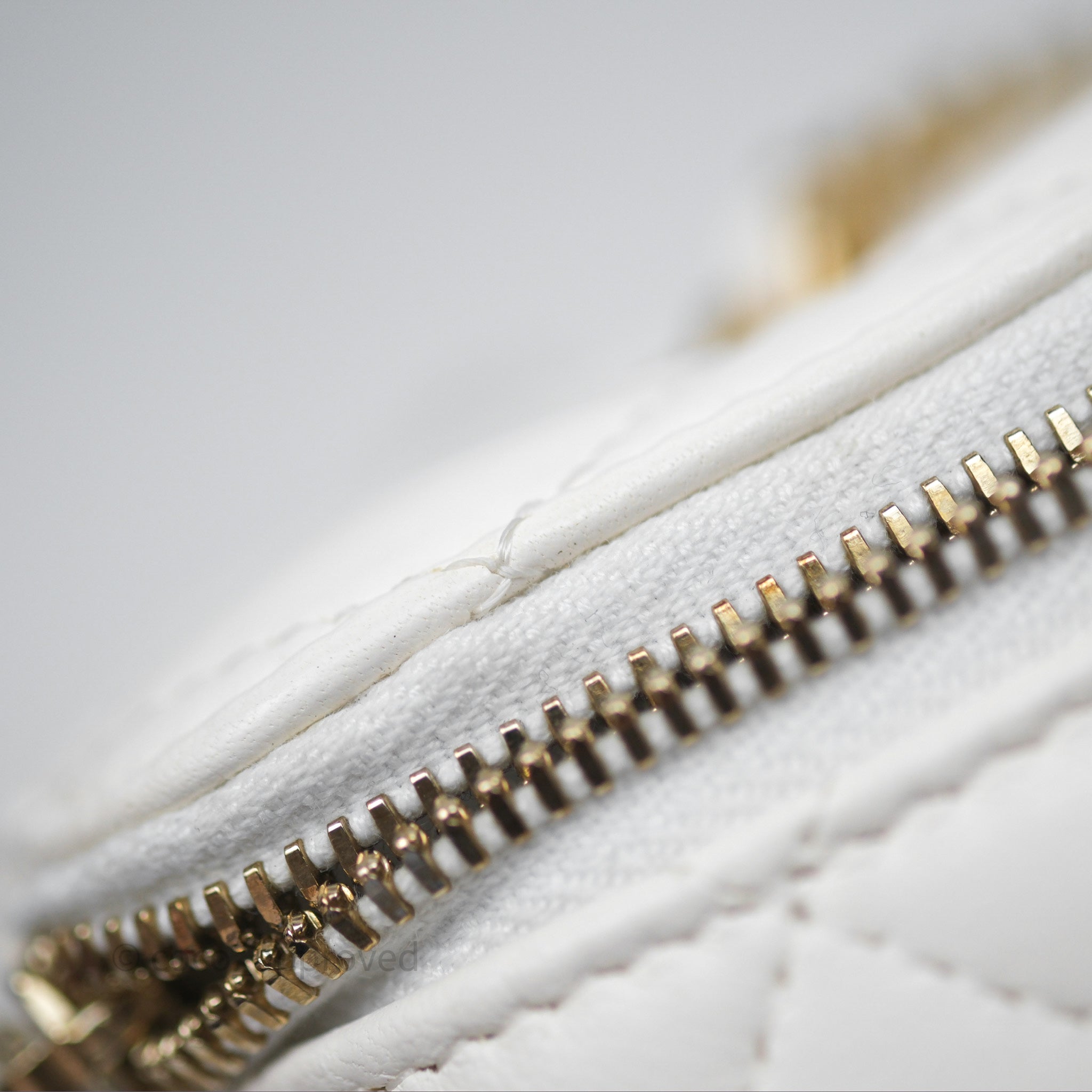 Chanel Pearl Crush Vanity With Chain White Lambskin Aged Gold Hardware
