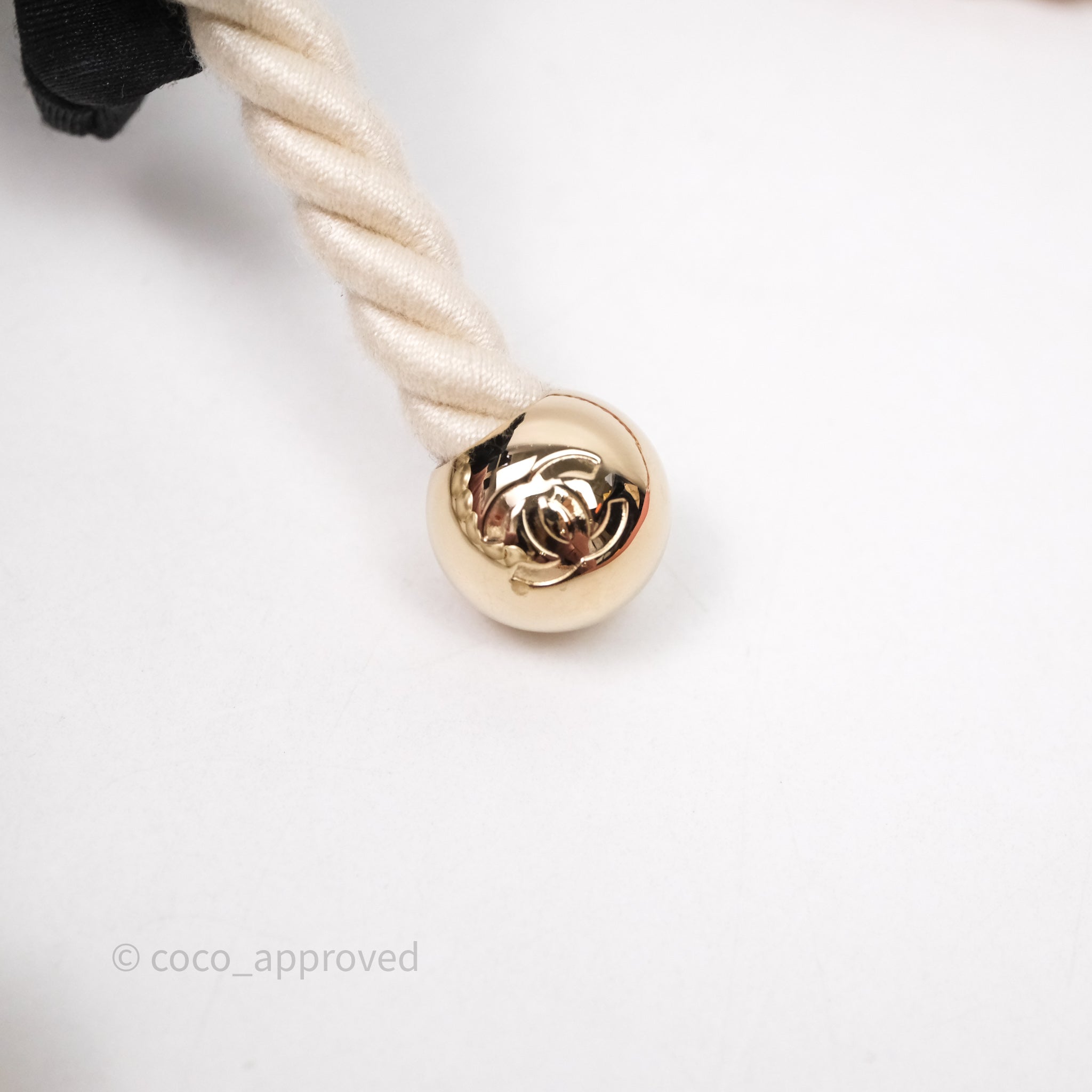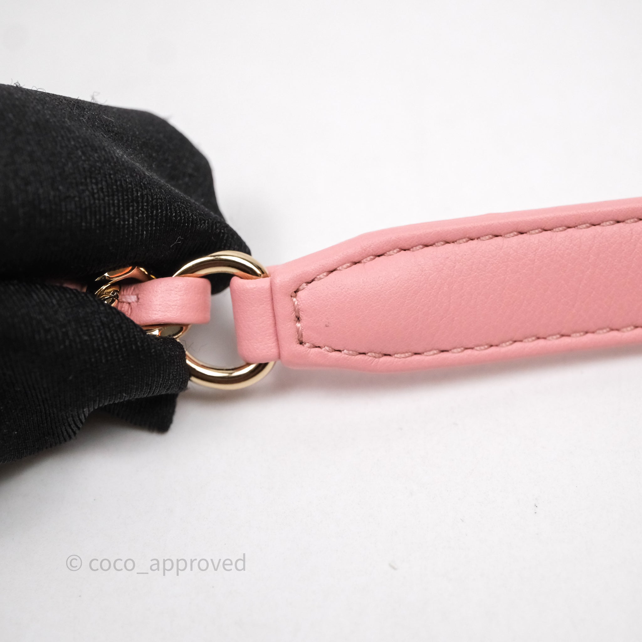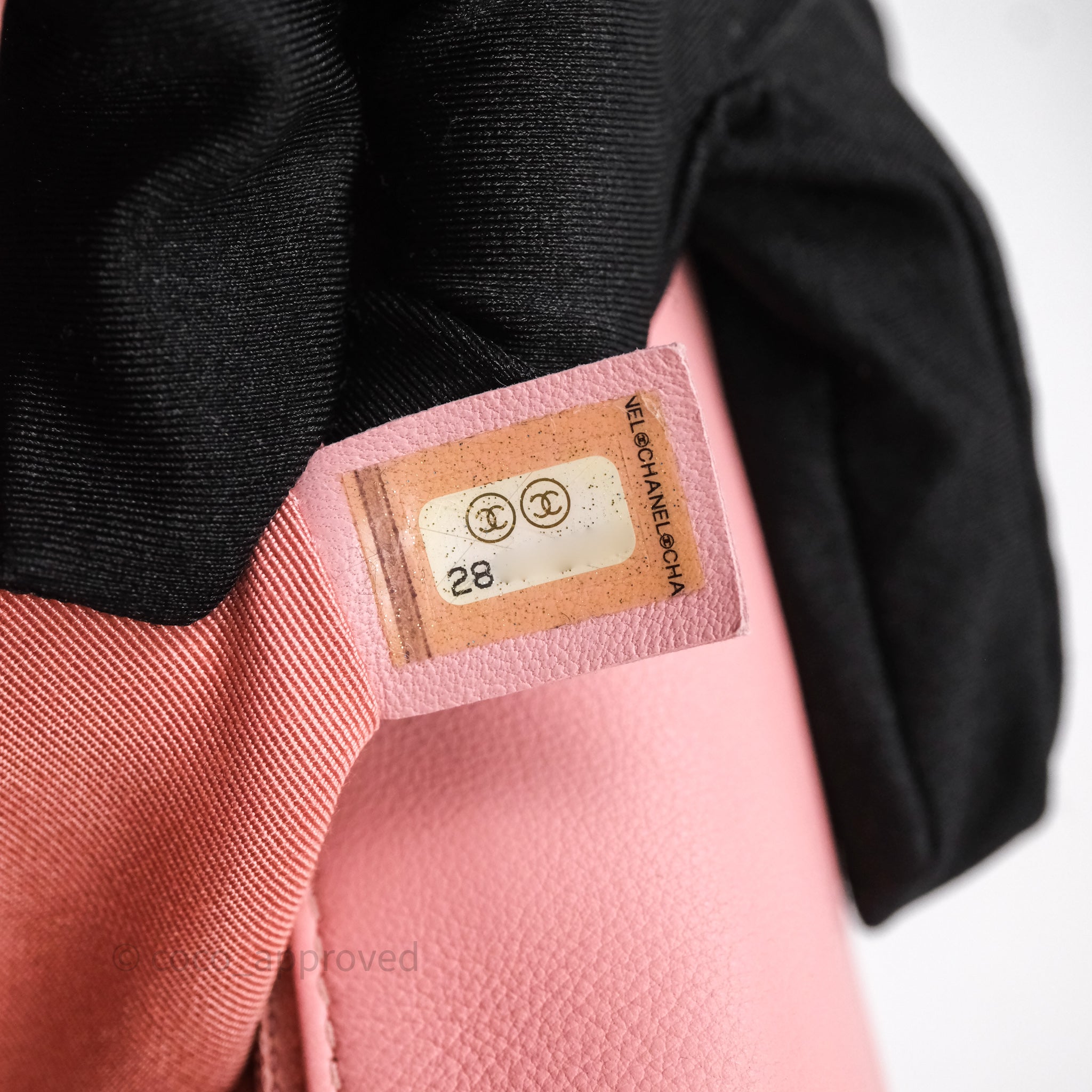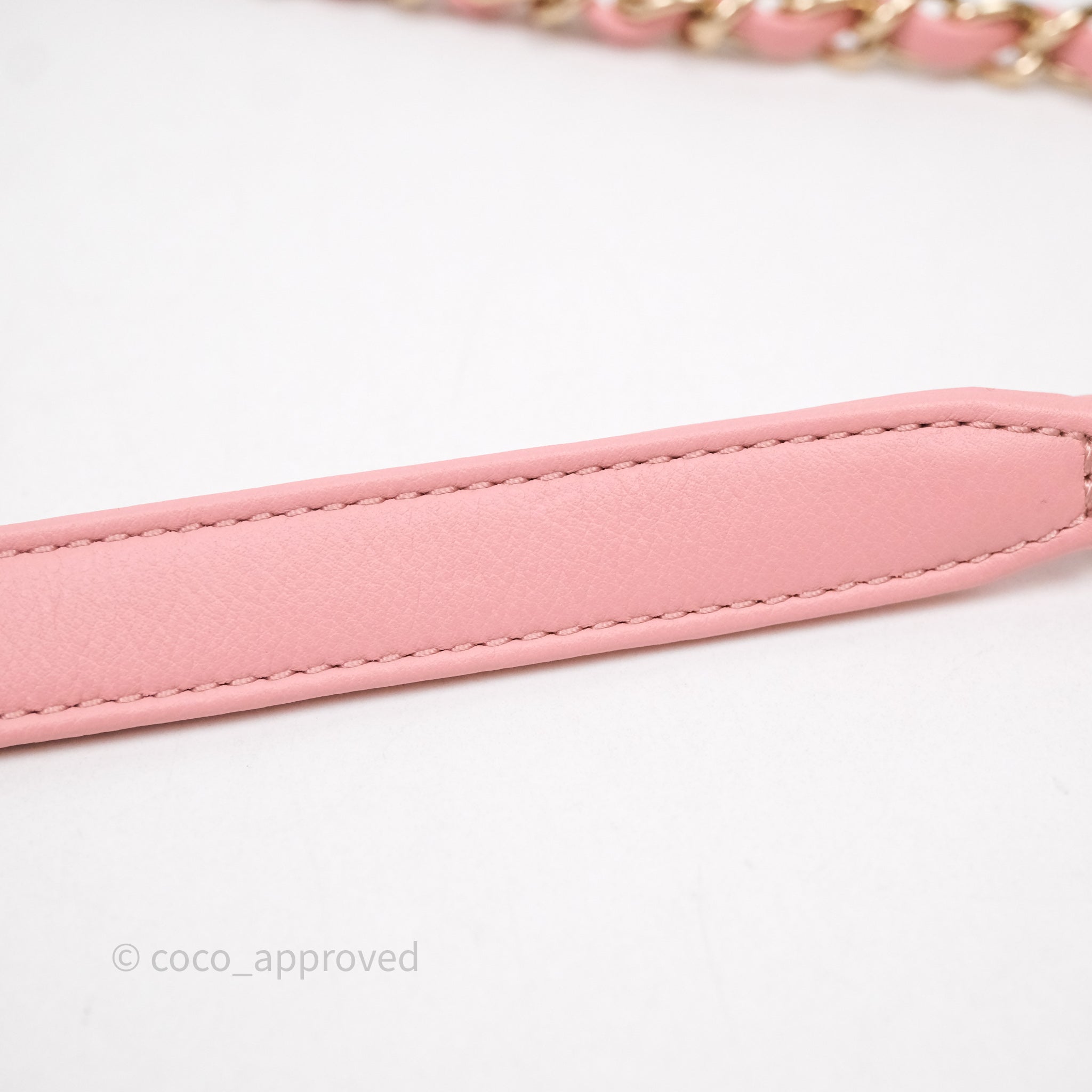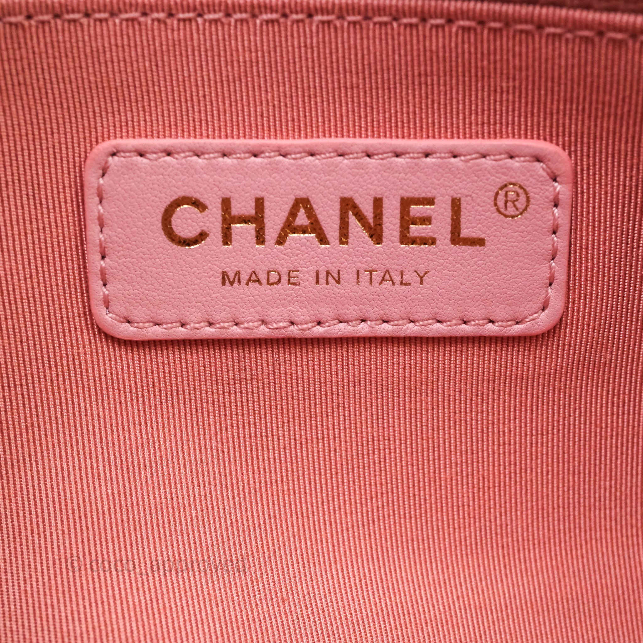Chanel Pink Tweed Flap Bag With Large Pearl Handle Gold Hardware