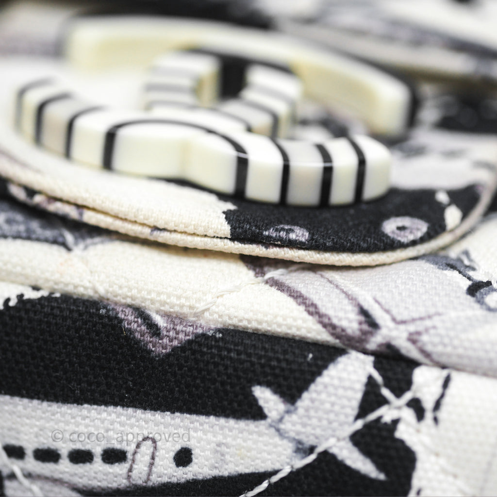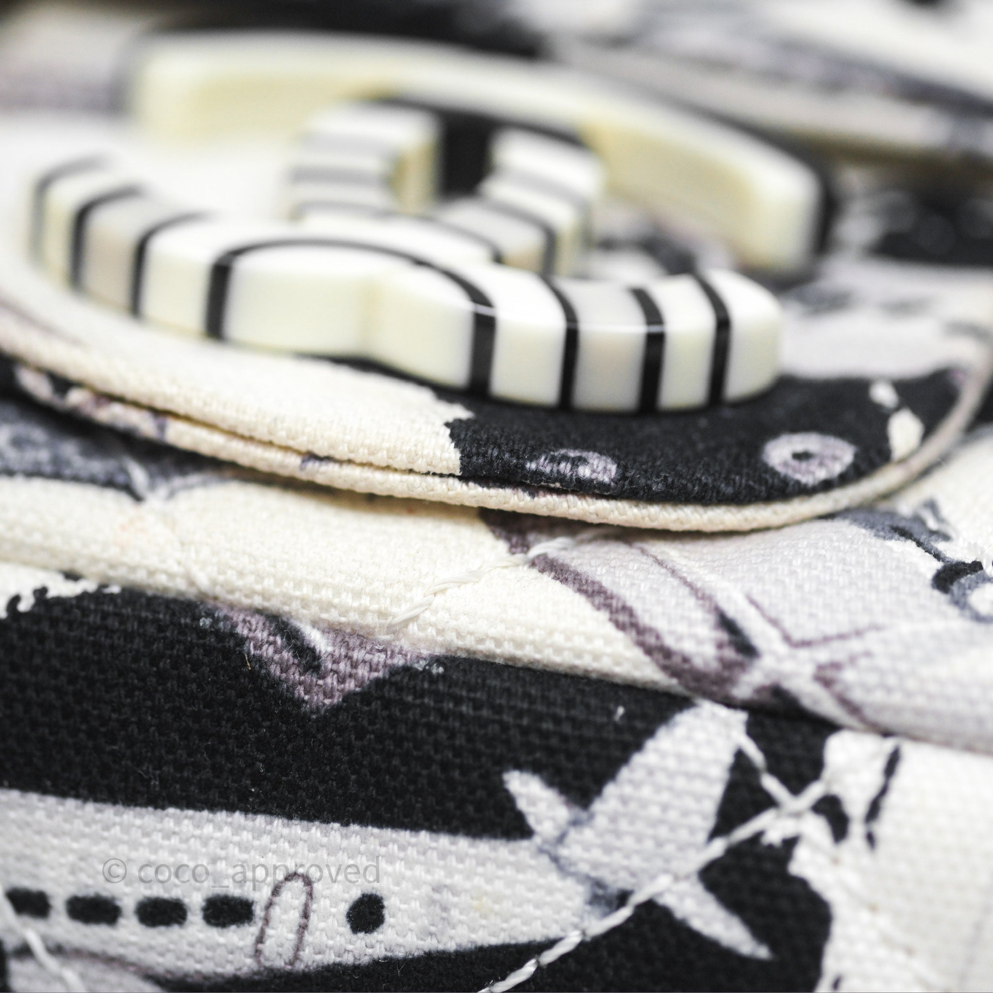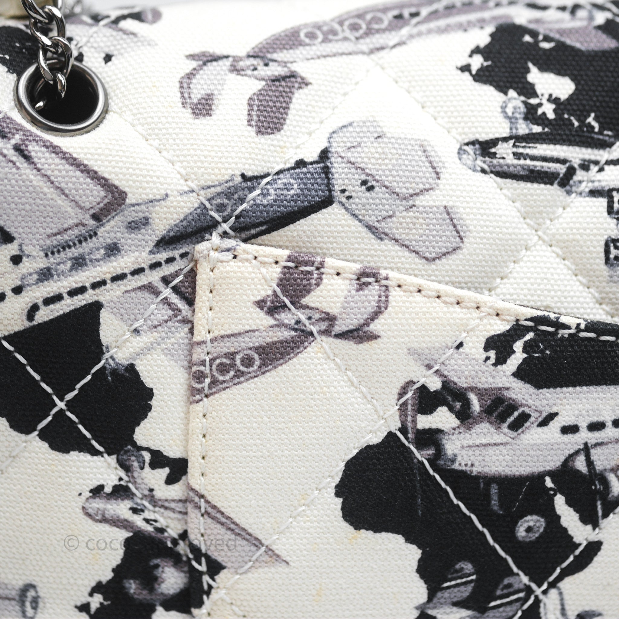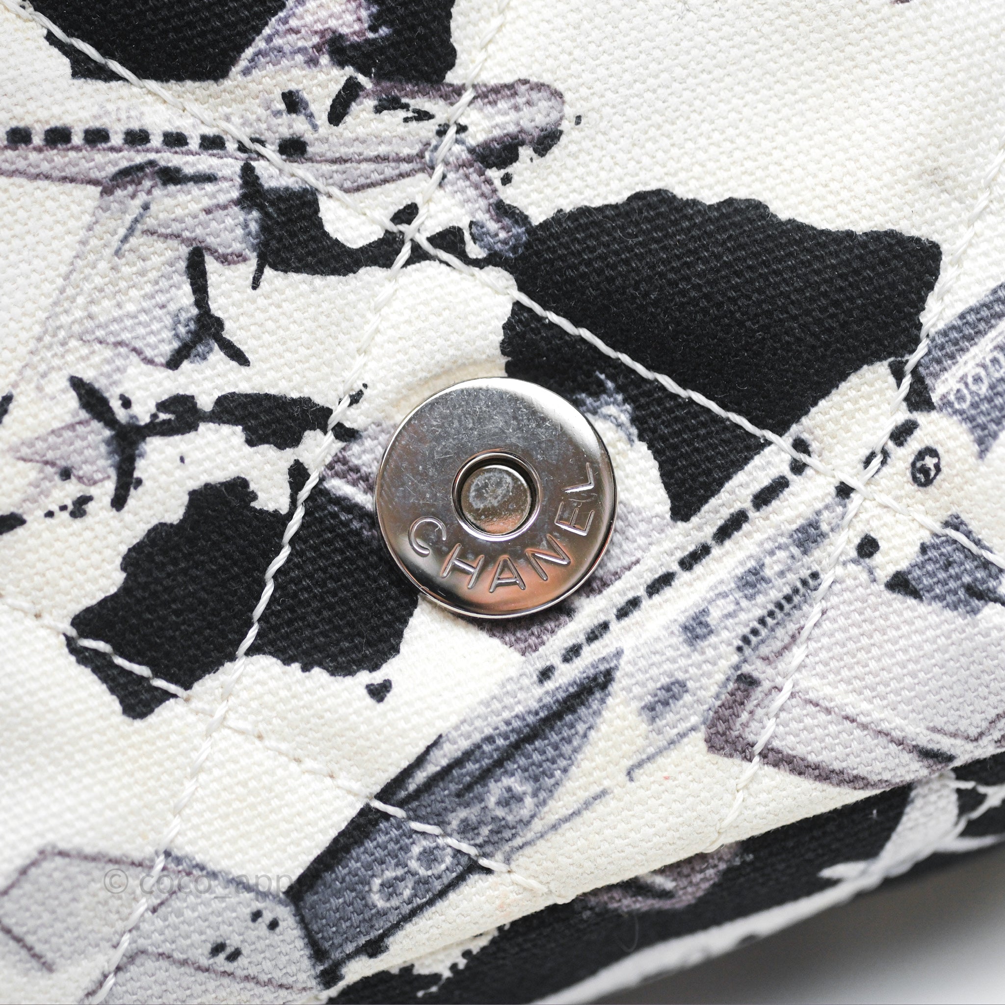 Chanel Quilted Airplane Printed Shoulder Flap Bag Canvas White