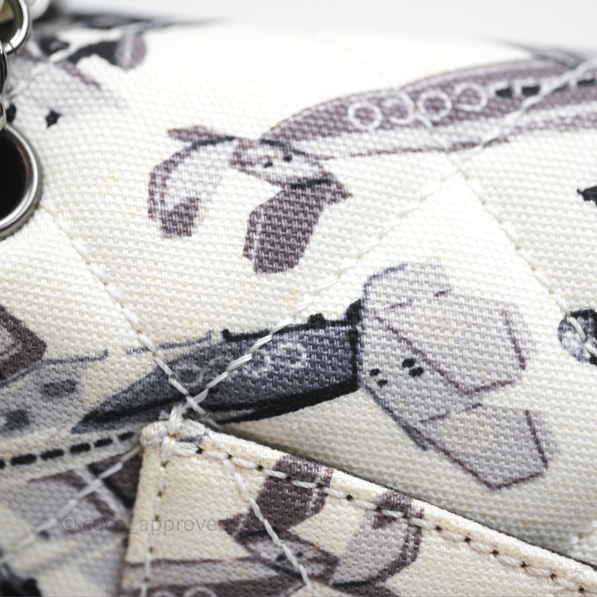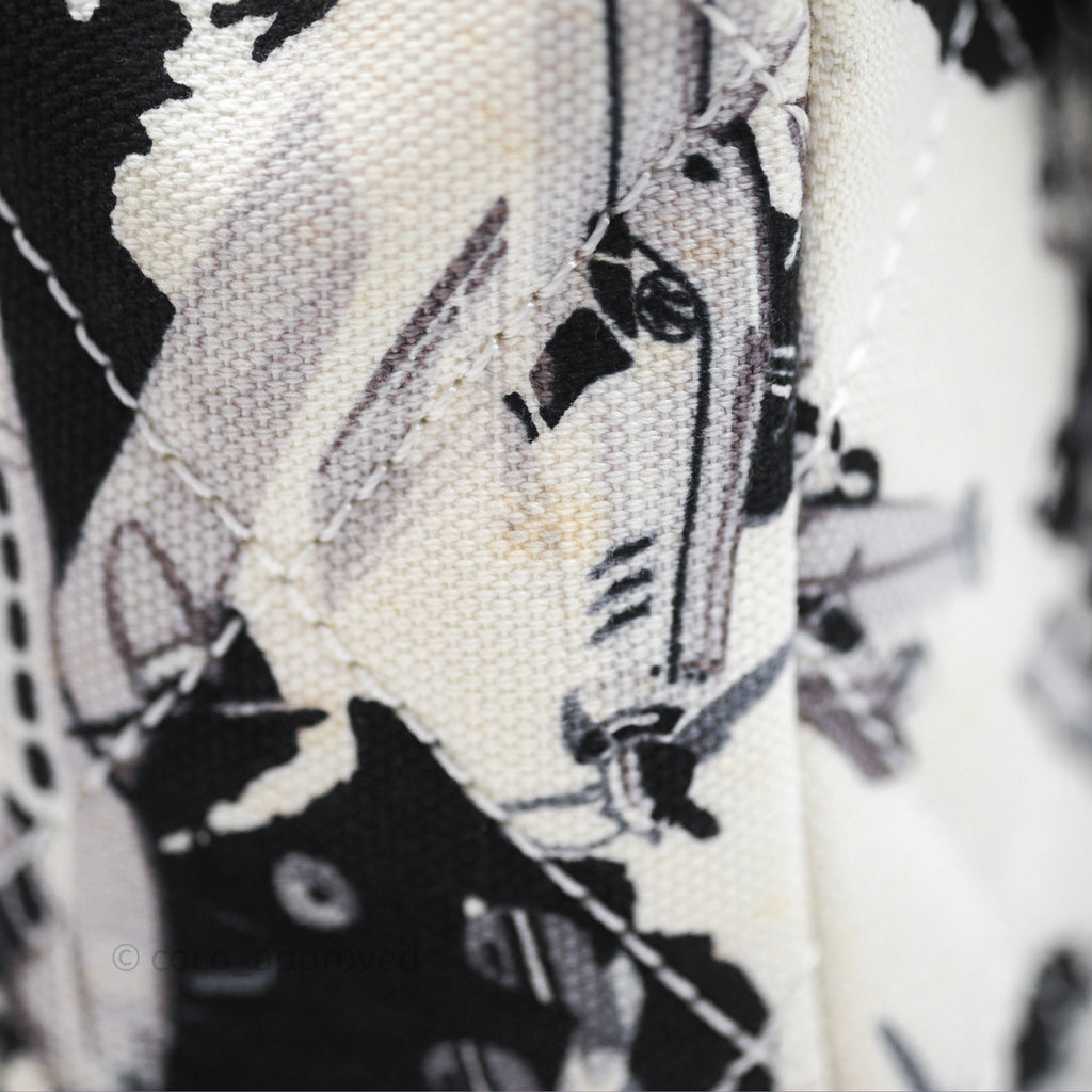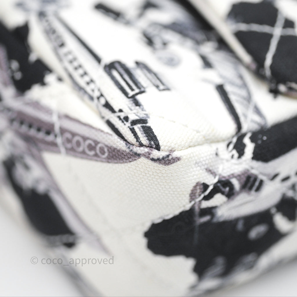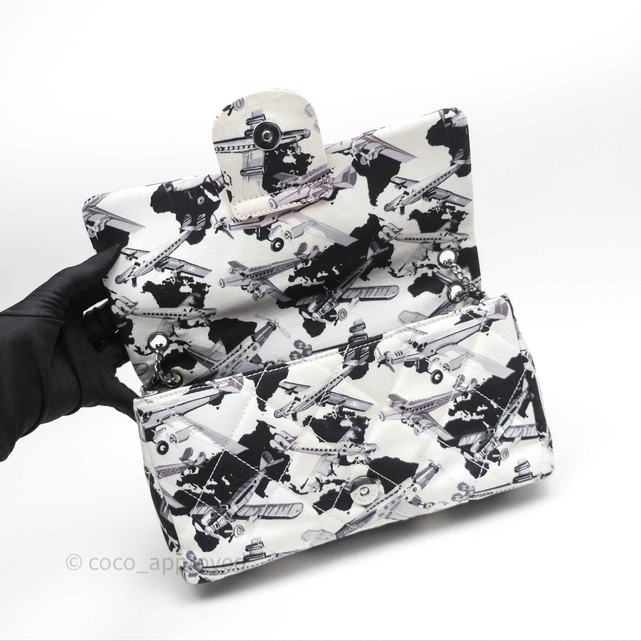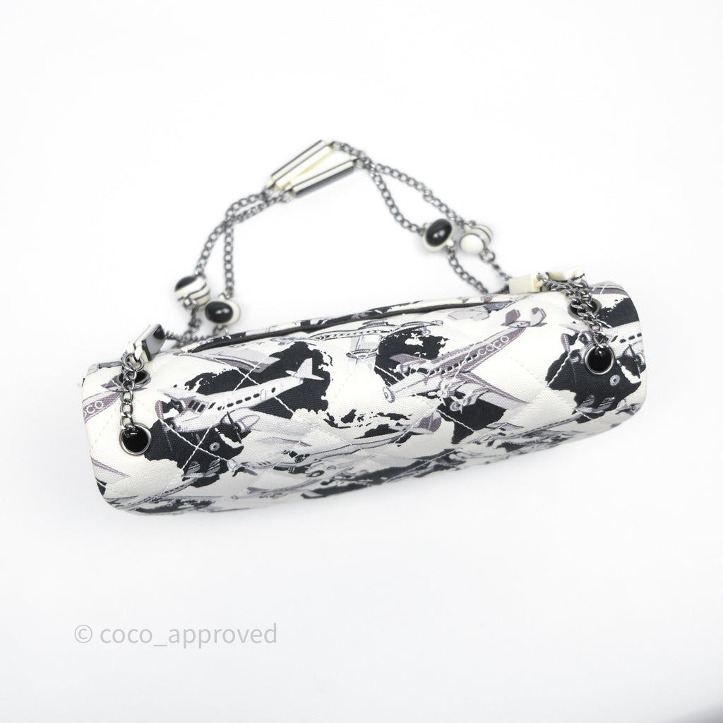Chanel Quilted Airplane Printed Shoulder Flap Bag Canvas White