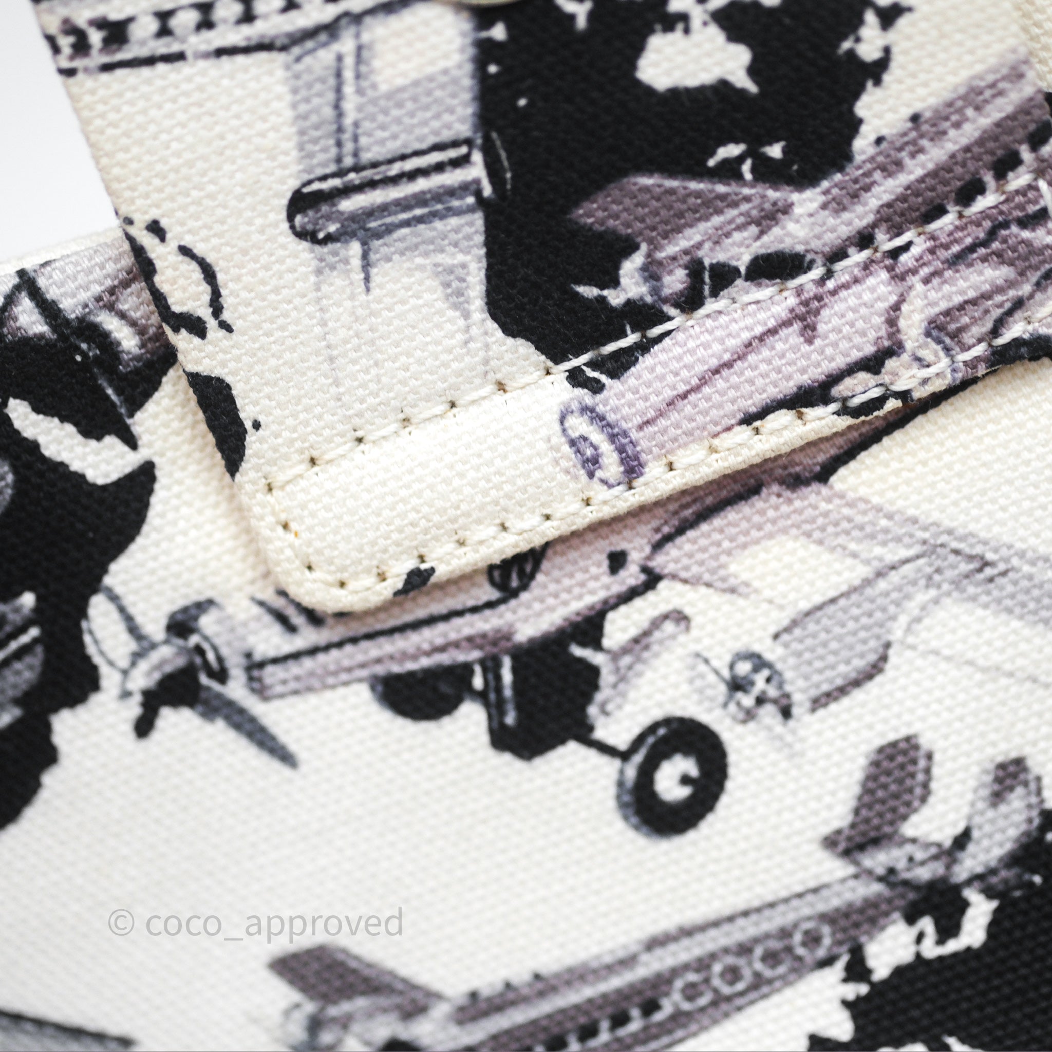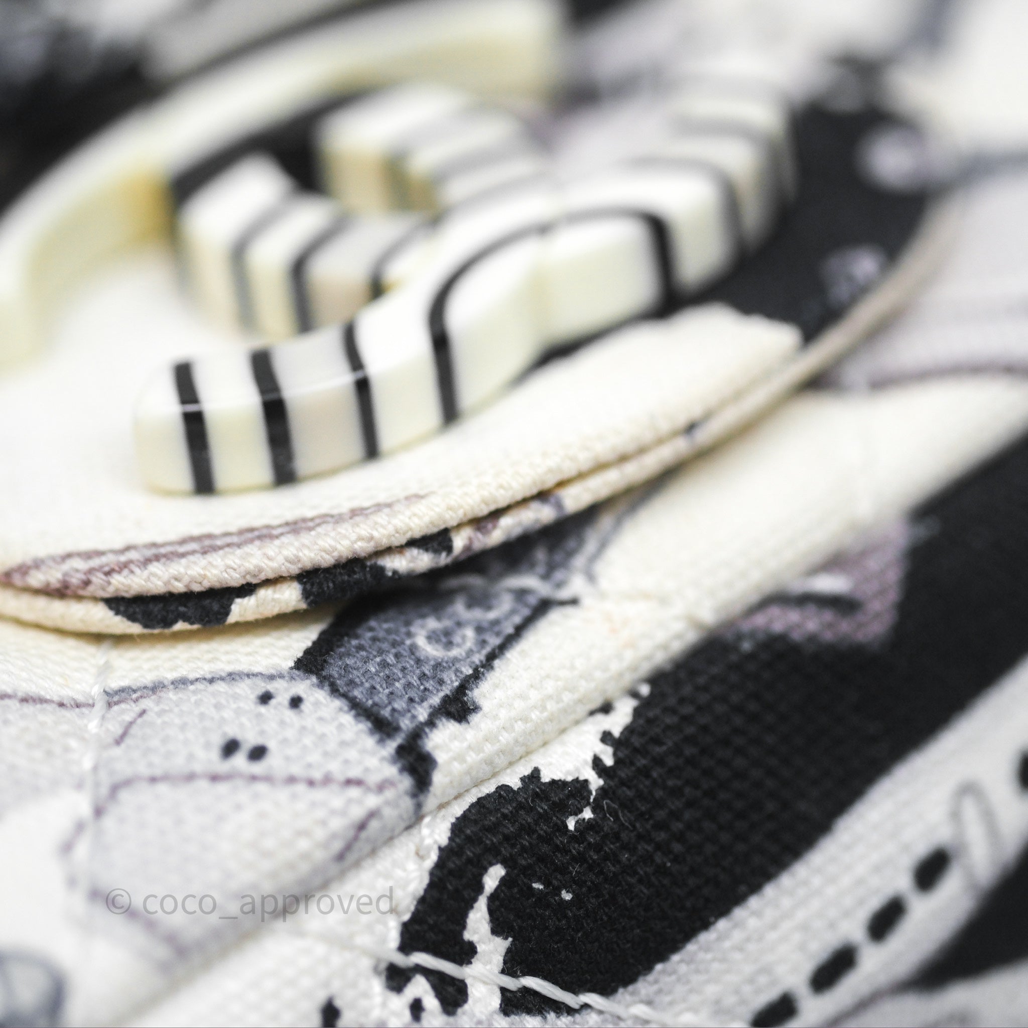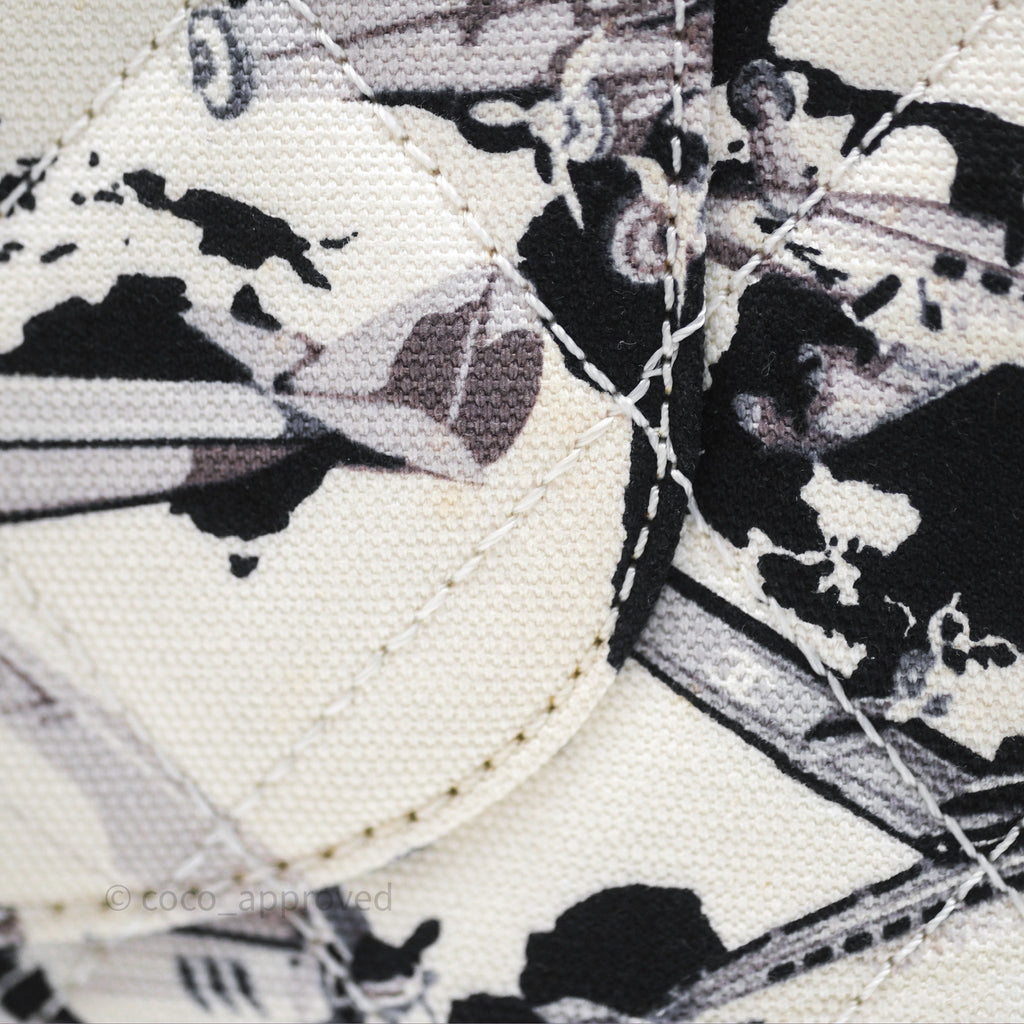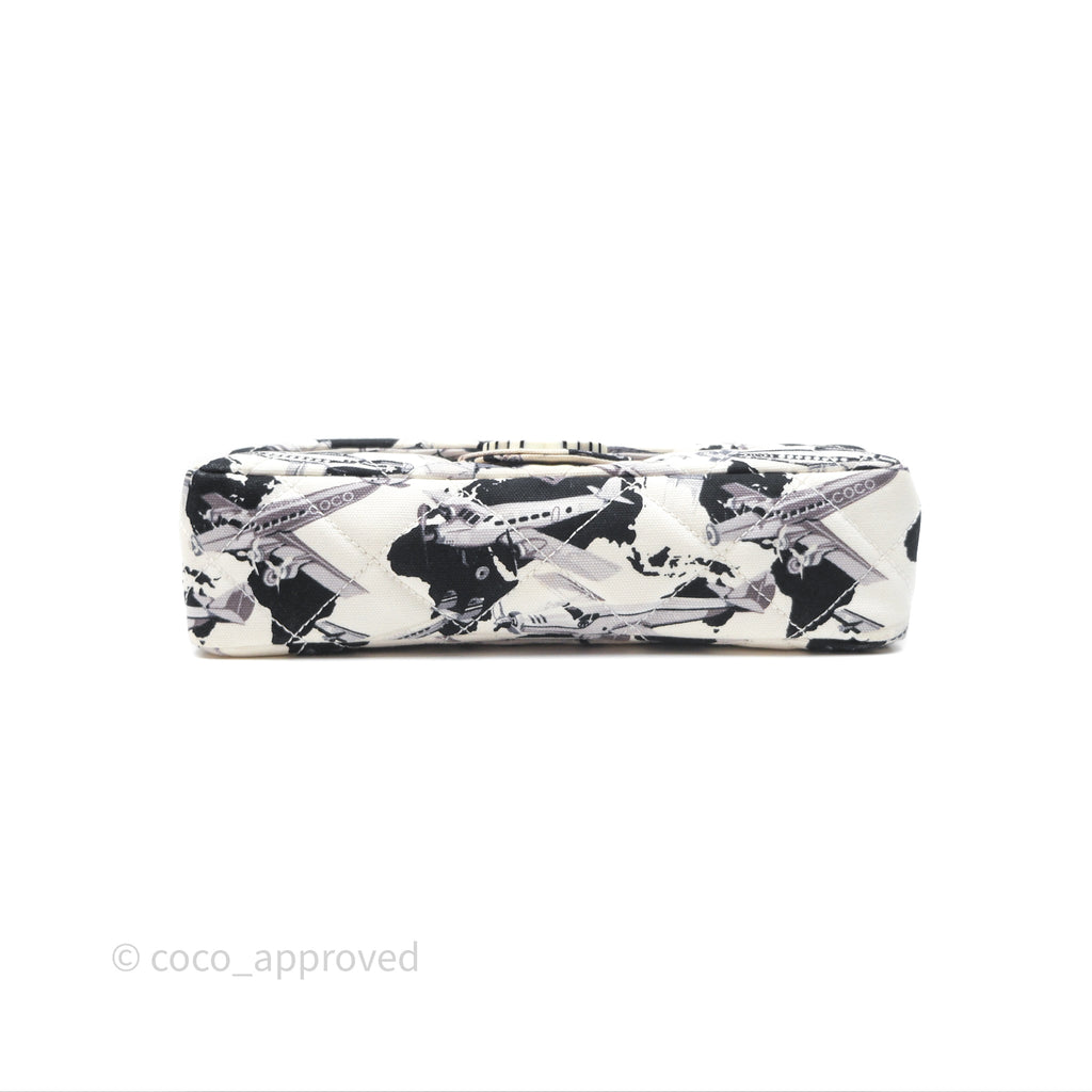 Chanel Quilted Airplane Printed Shoulder Flap Bag Canvas White