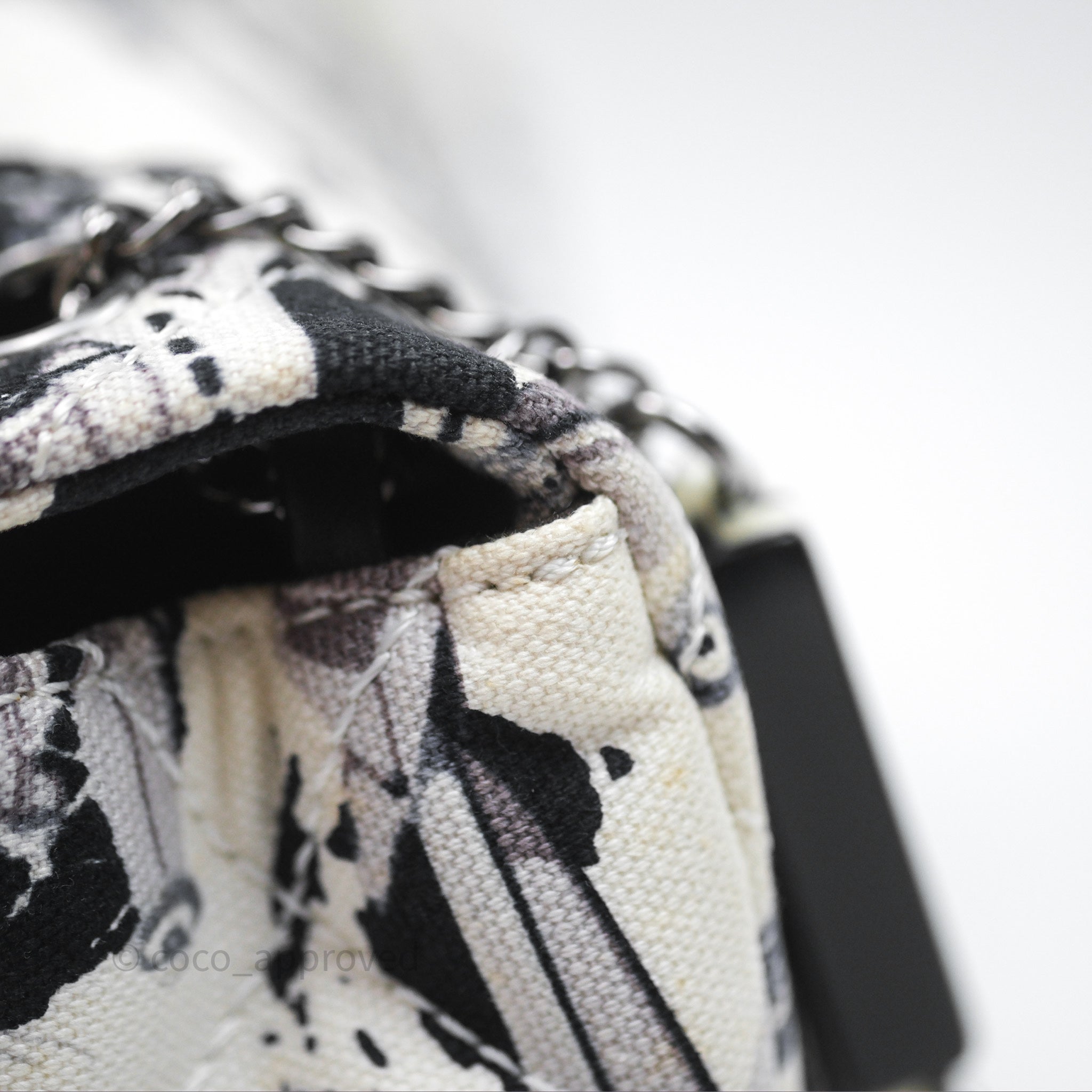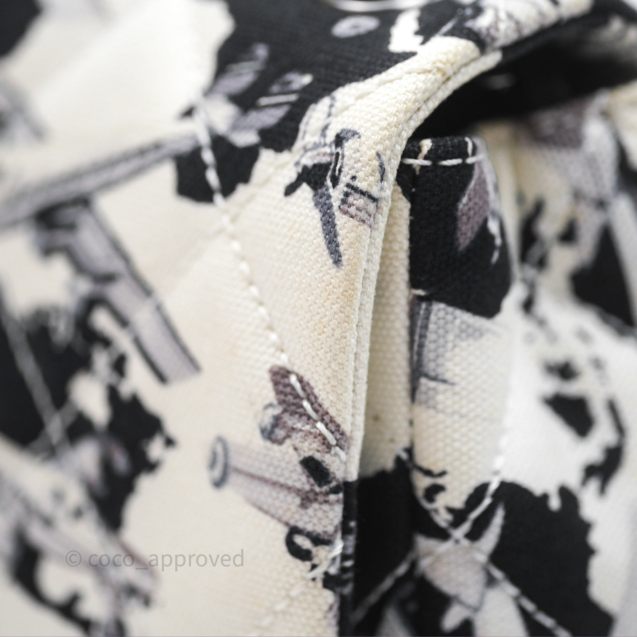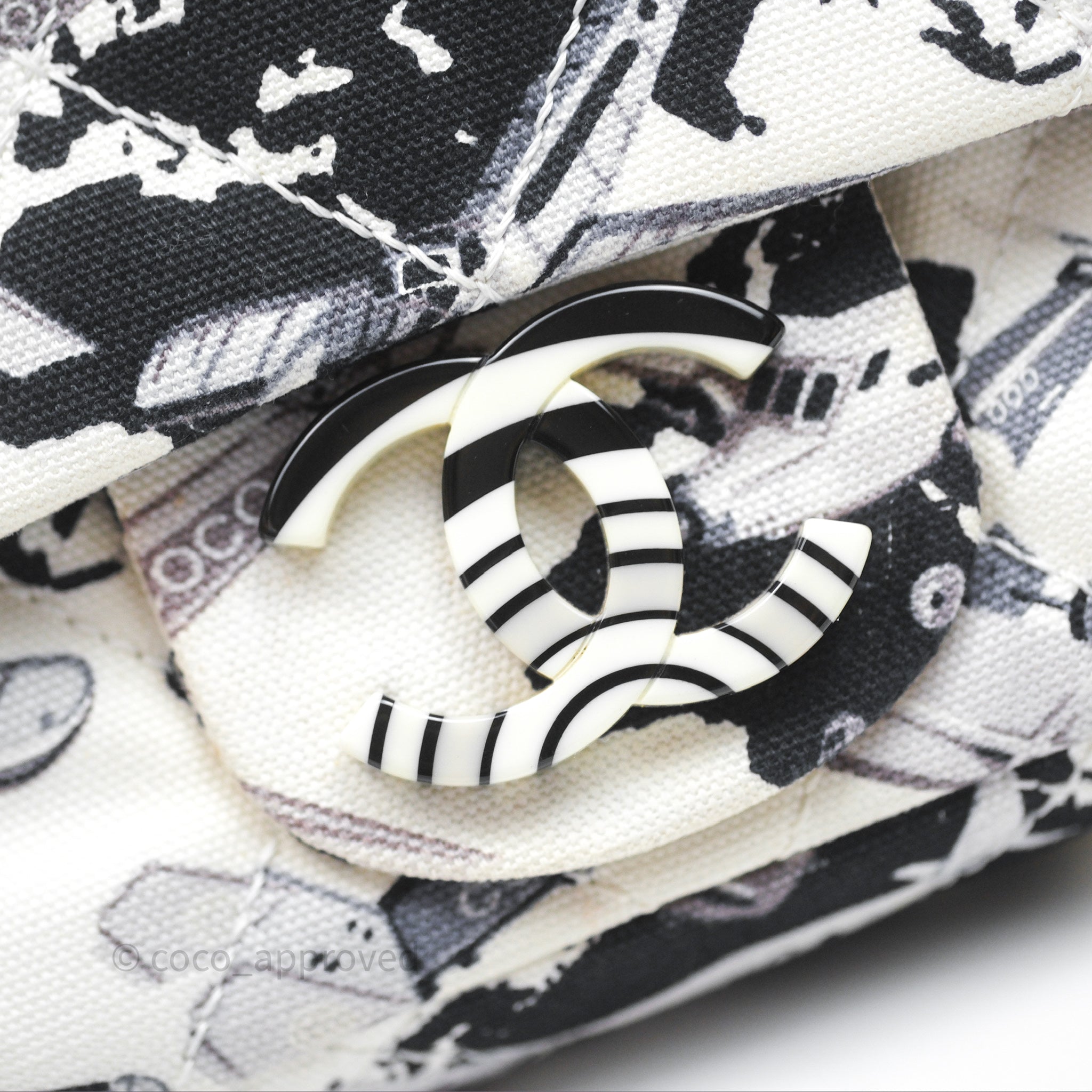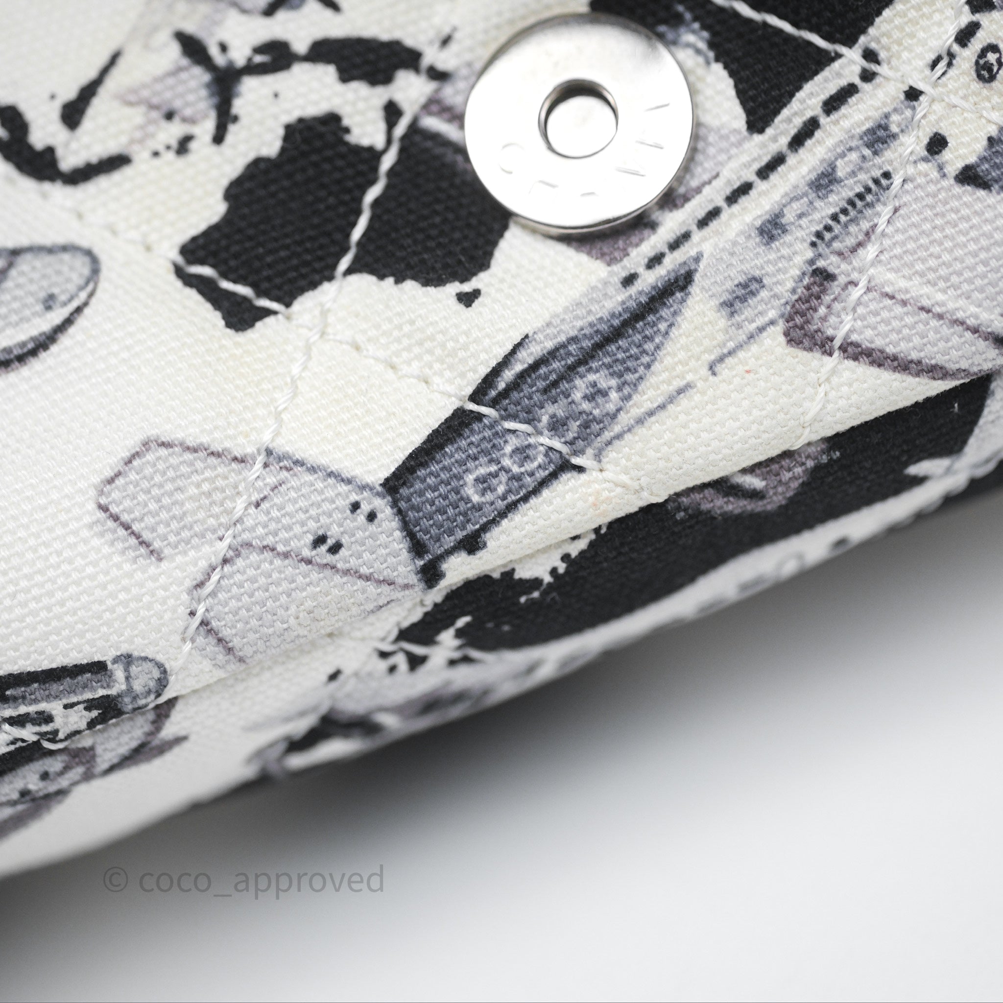 Chanel Quilted Airplane Printed Shoulder Flap Bag Canvas White
