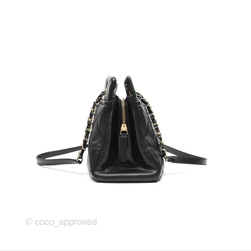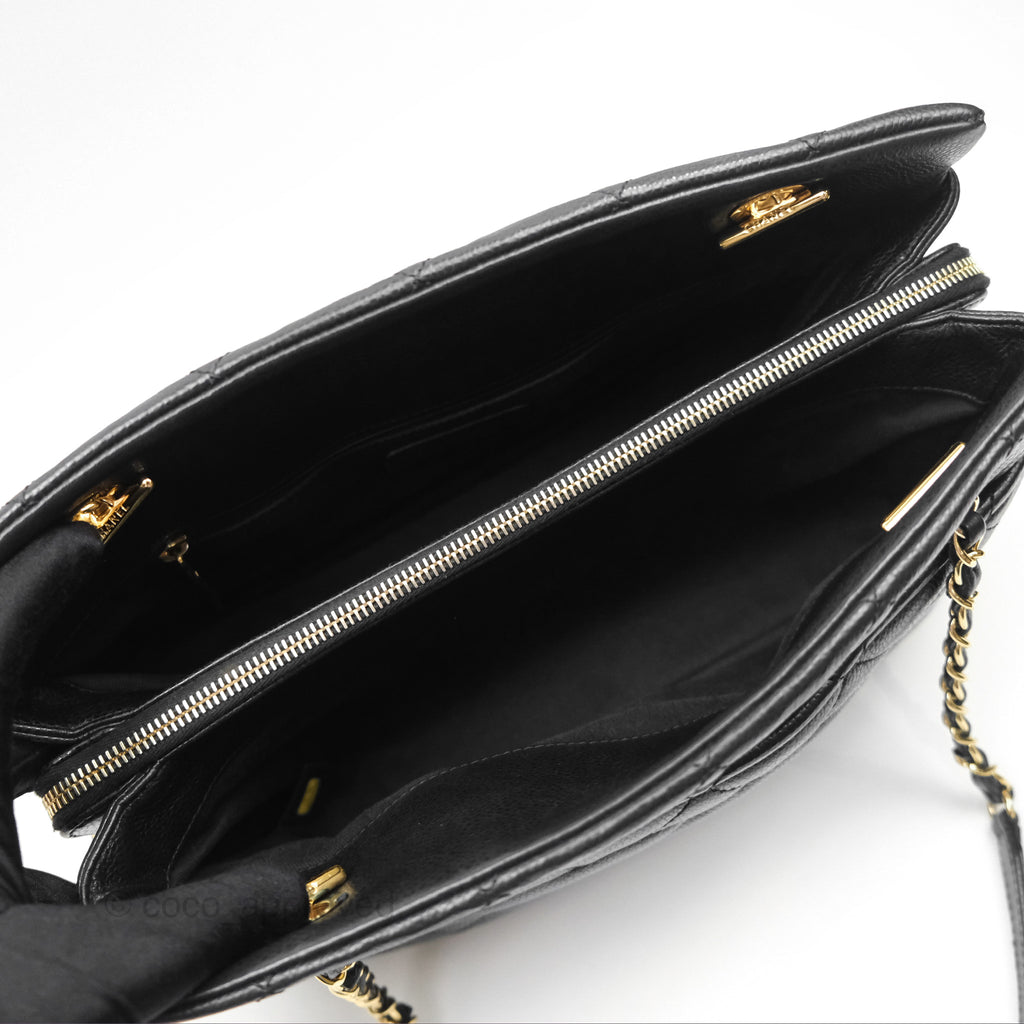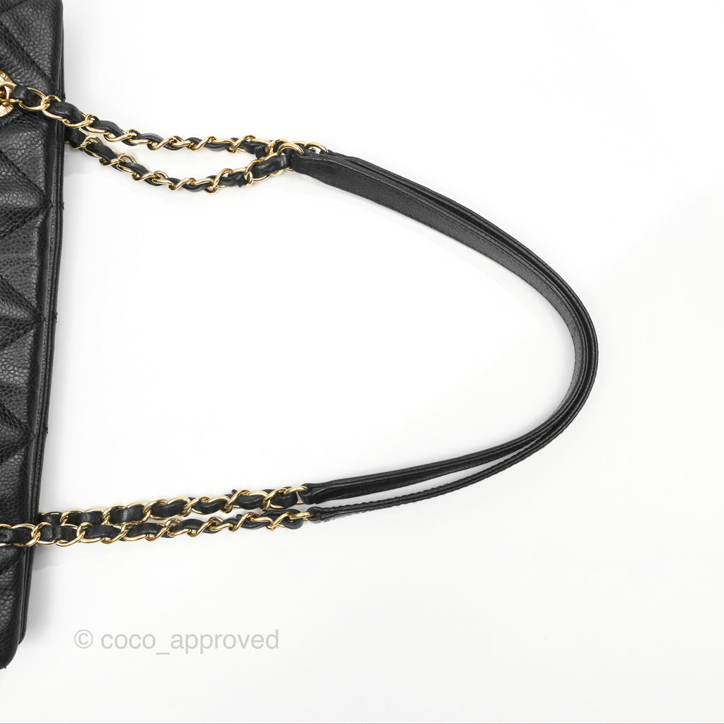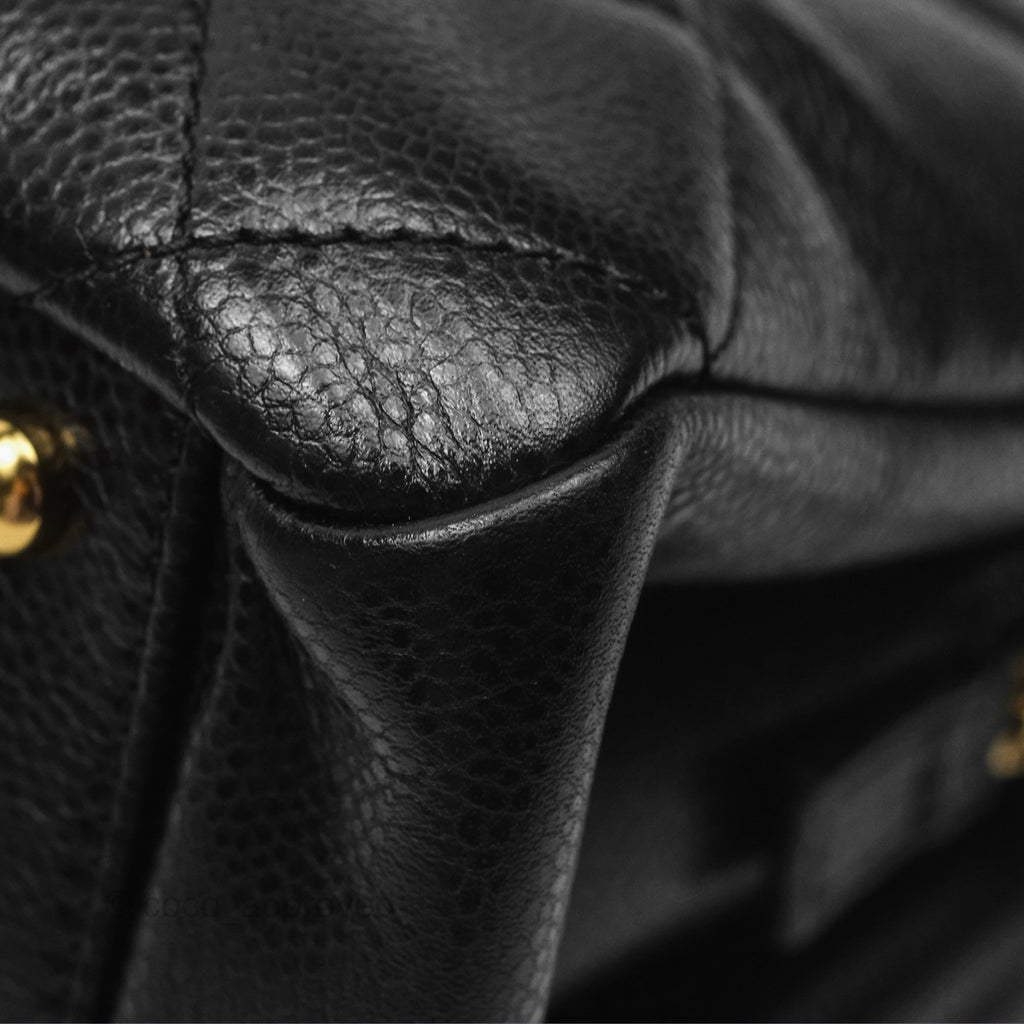 Chanel Quilted Caviar Leather Timeless CC Soft Shopping Tote Bag Black