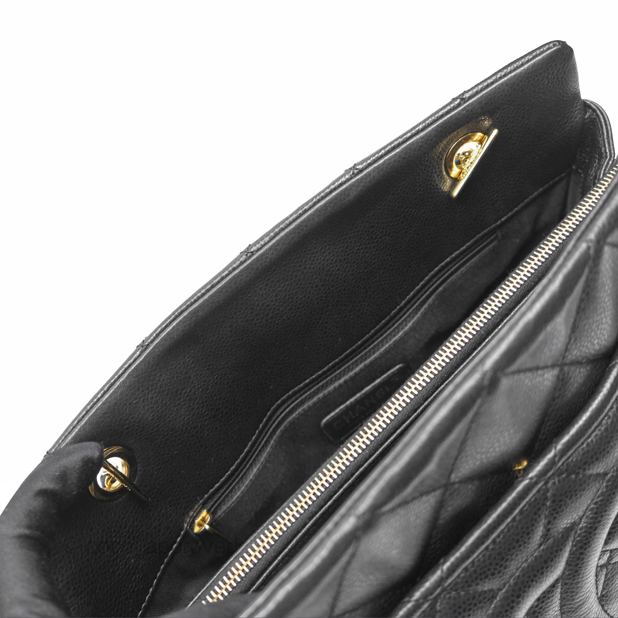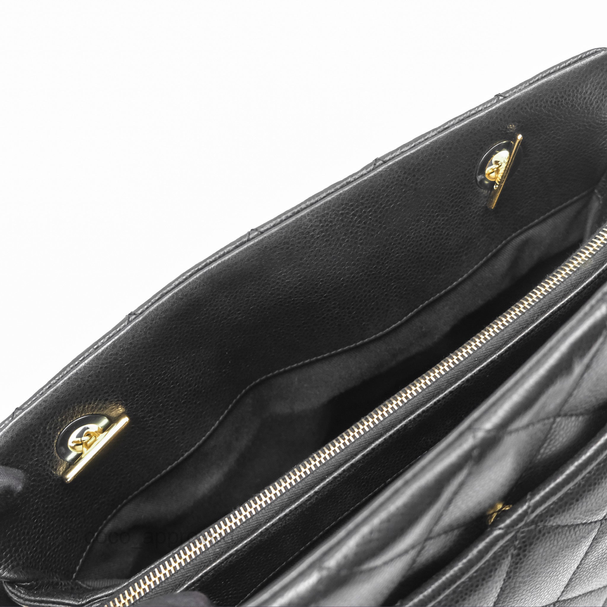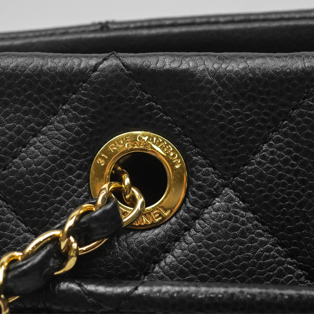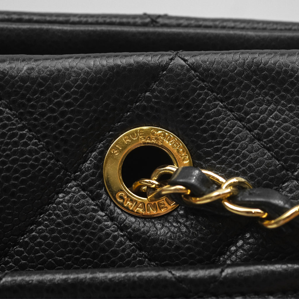 Chanel Quilted Caviar Leather Timeless CC Soft Shopping Tote Bag Black