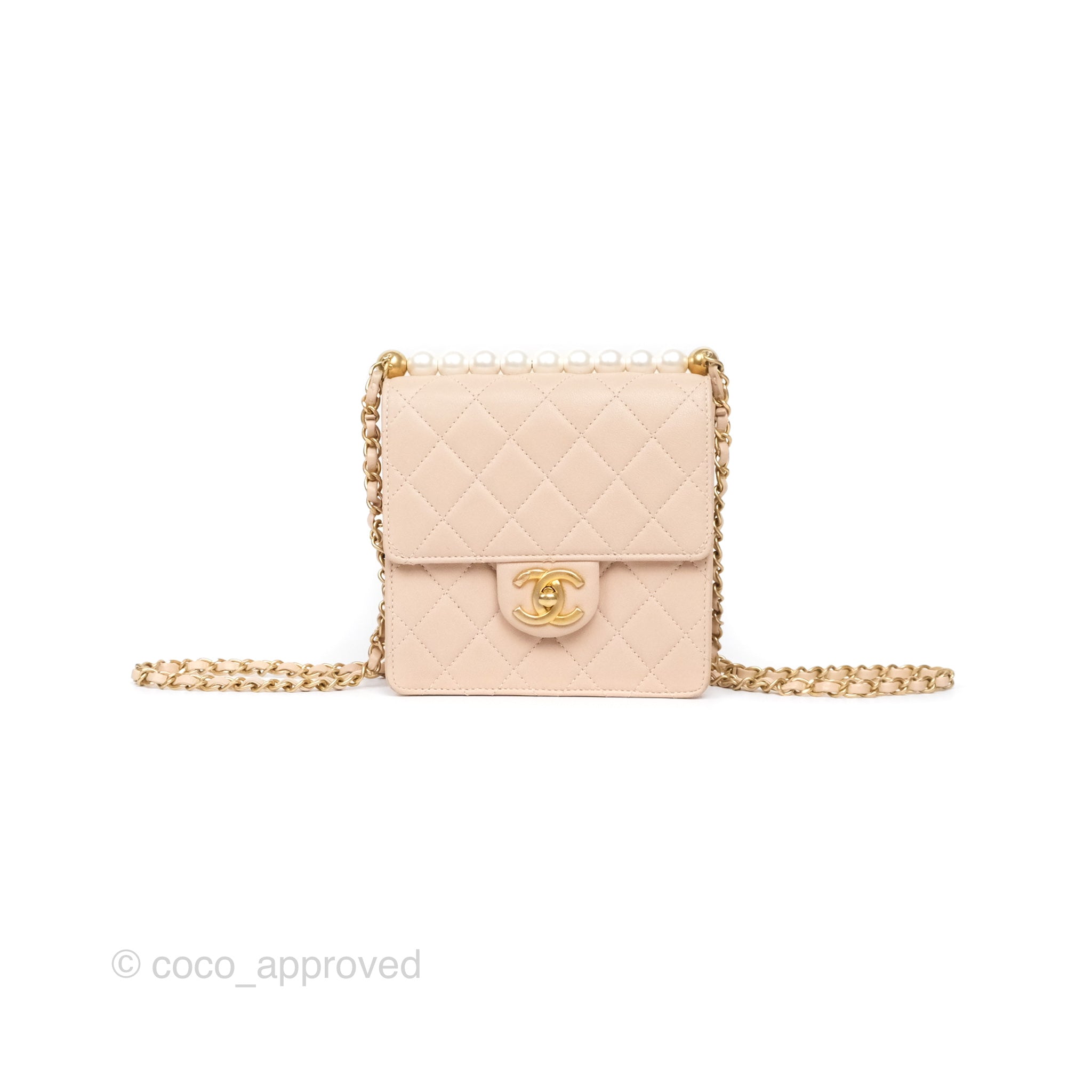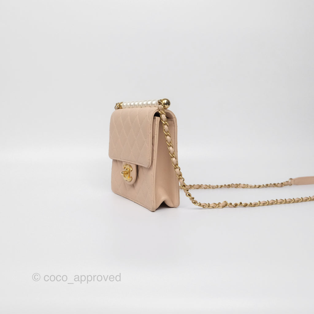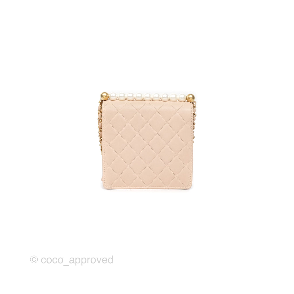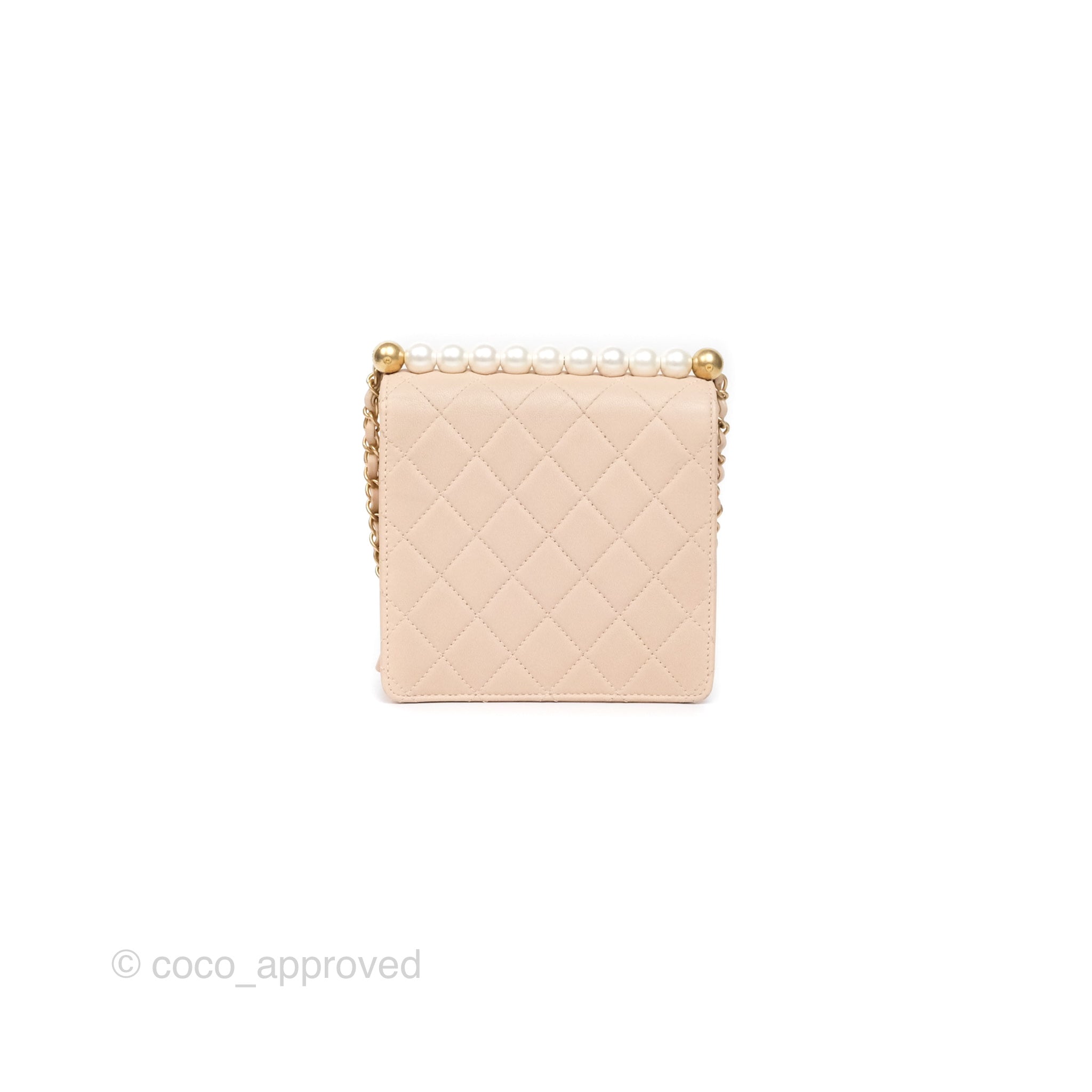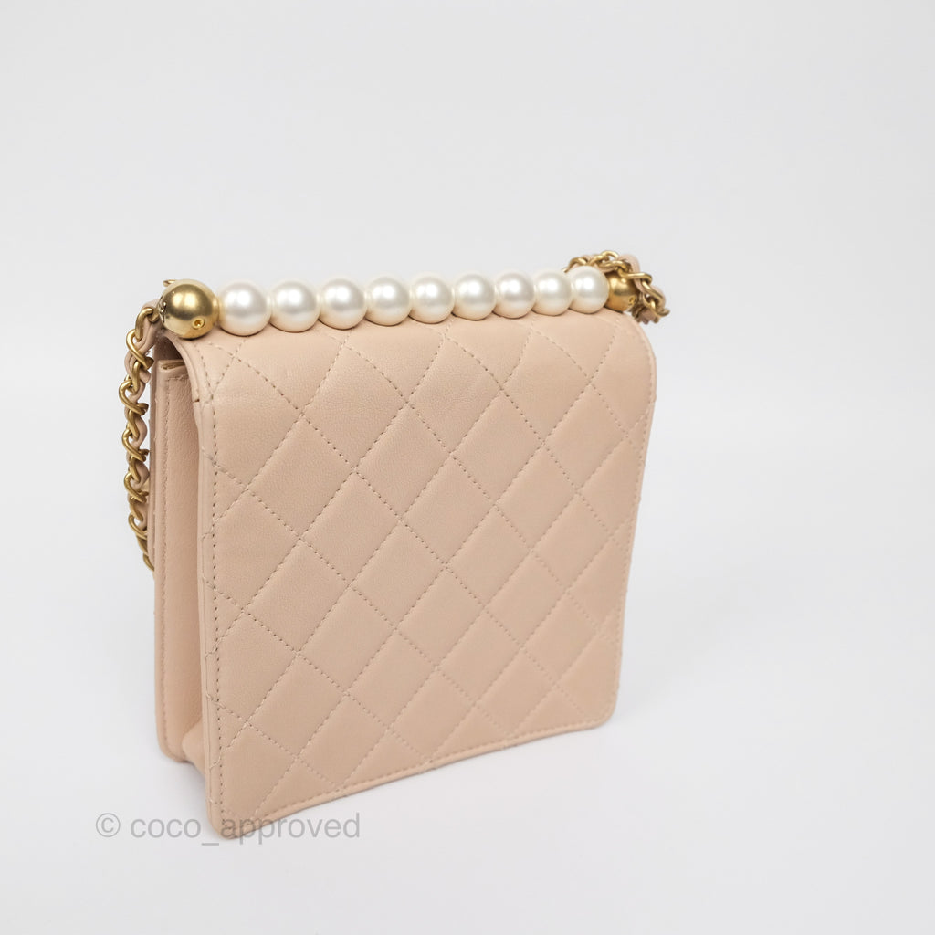 Chanel Quilted Chic Pearls Flap Beige Pink Goatskin Aged Gold Hardware