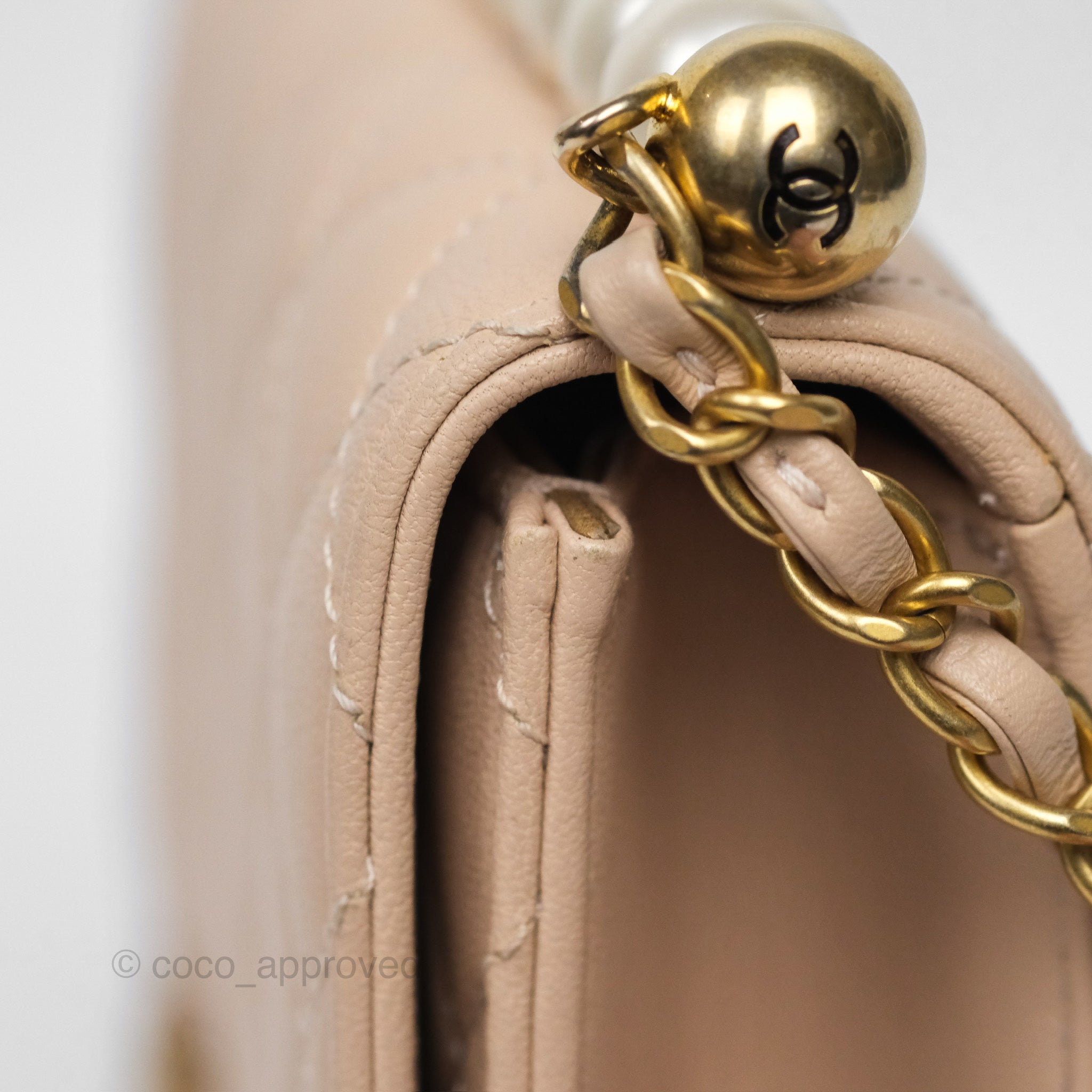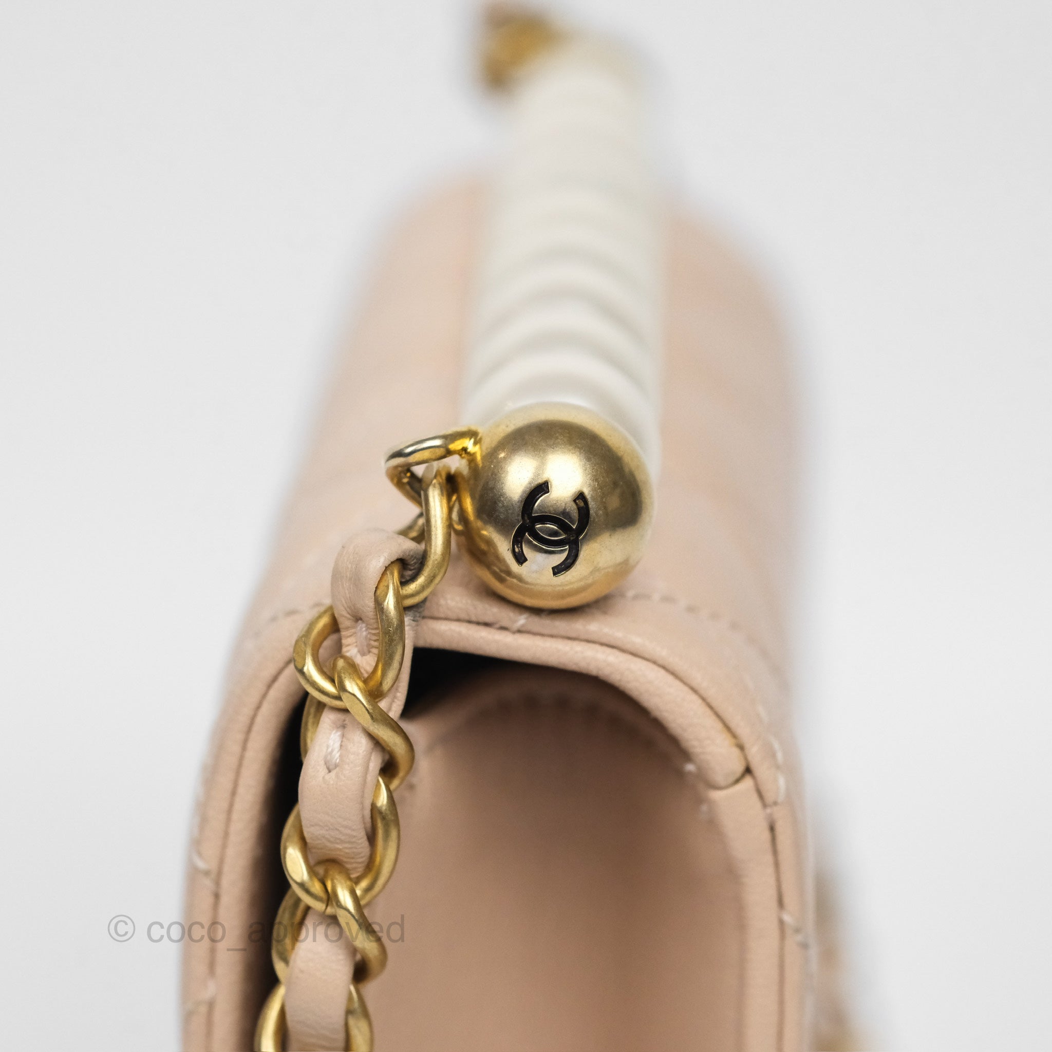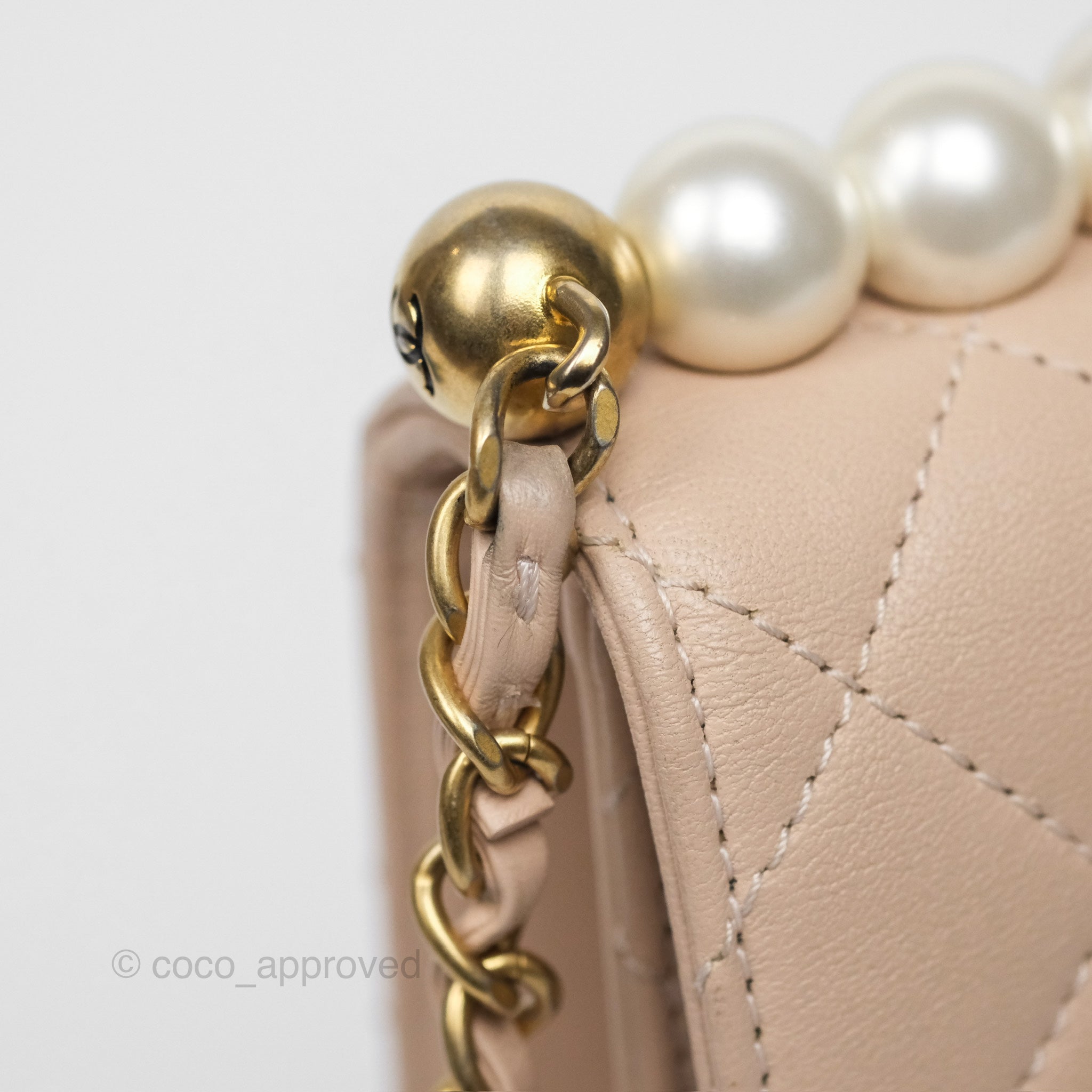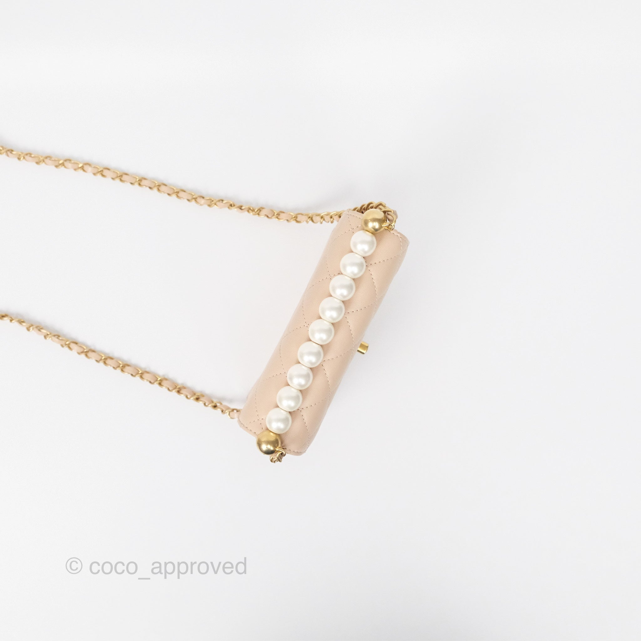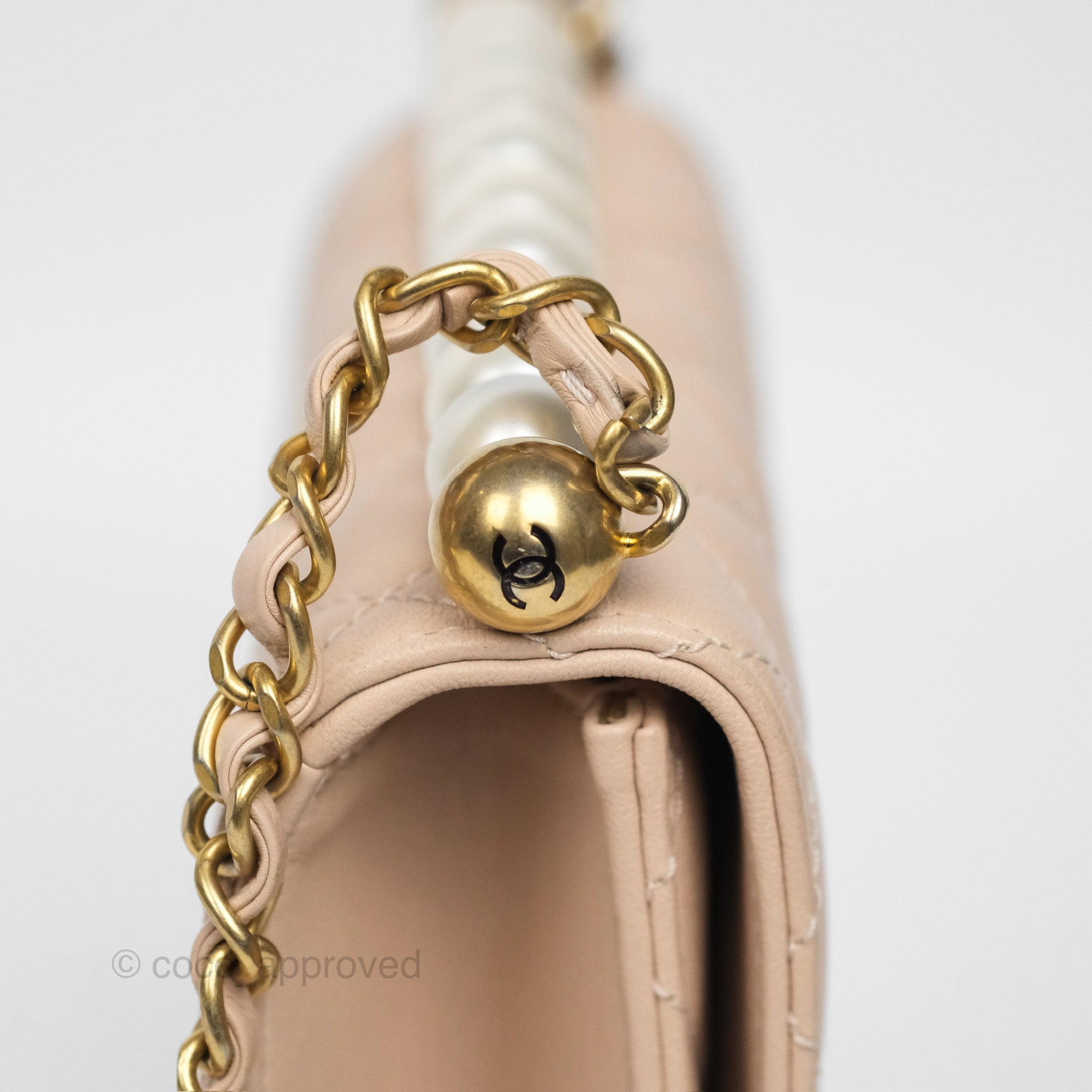 Chanel Quilted Chic Pearls Flap Beige Pink Goatskin Aged Gold Hardware