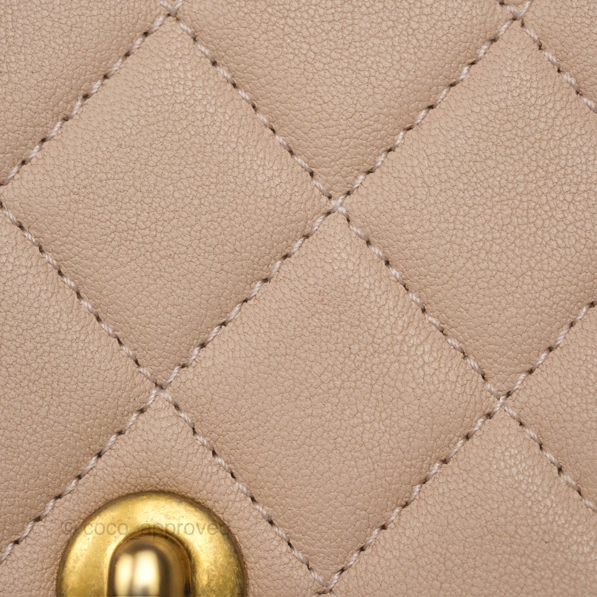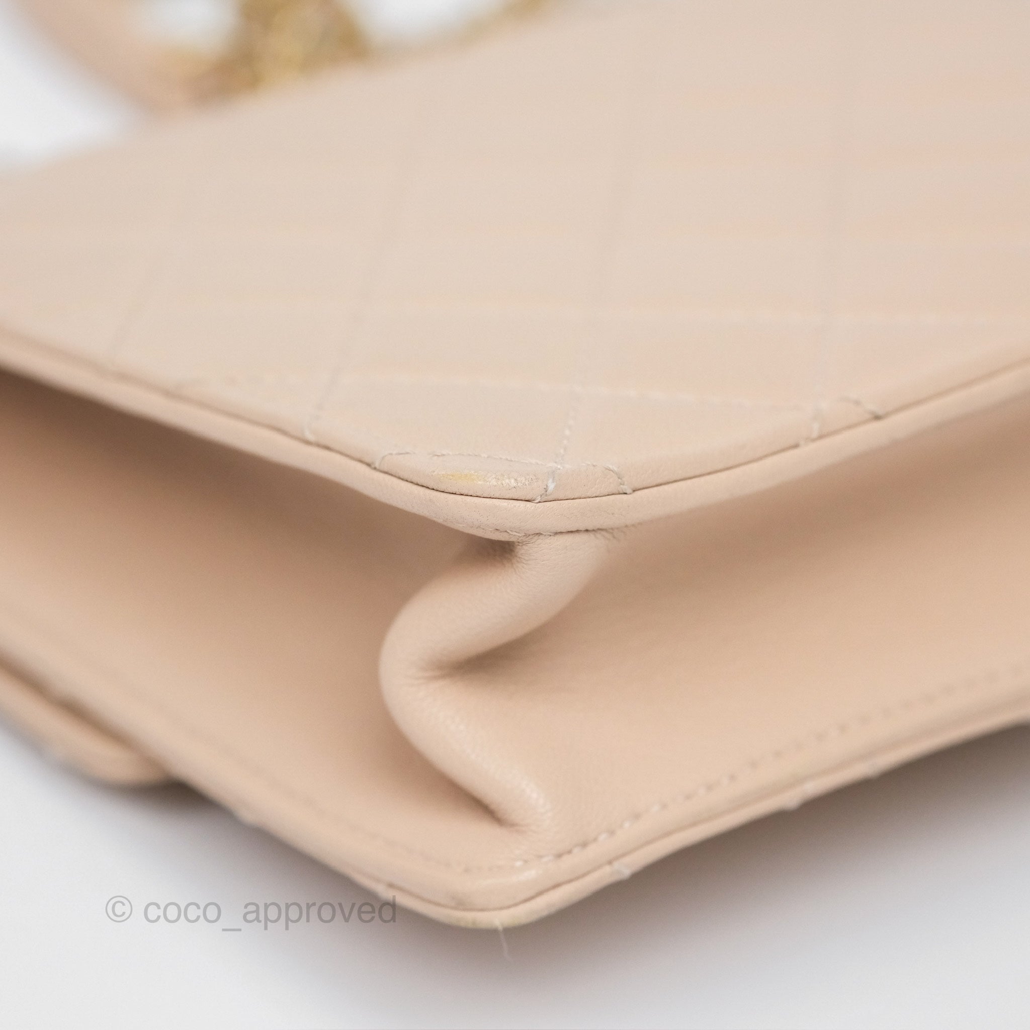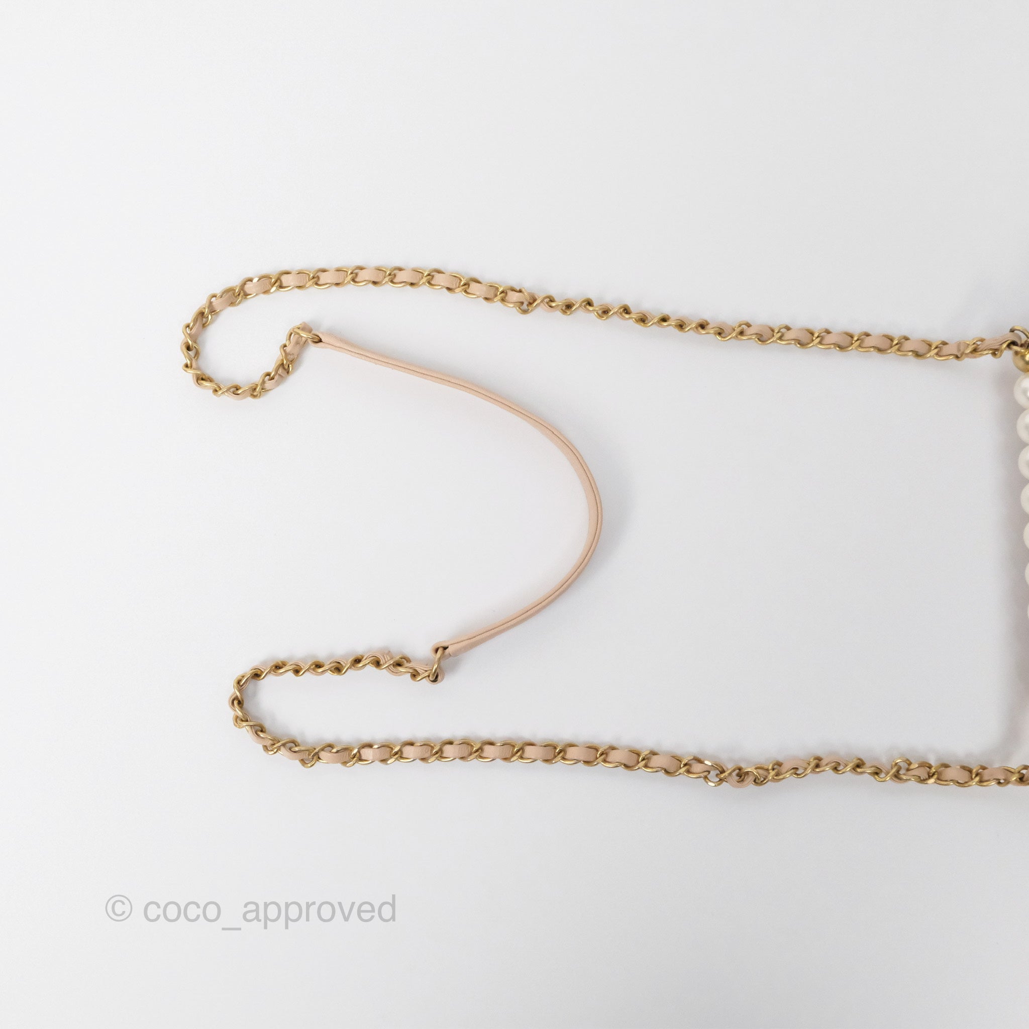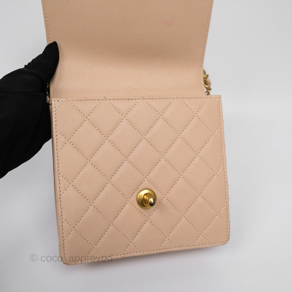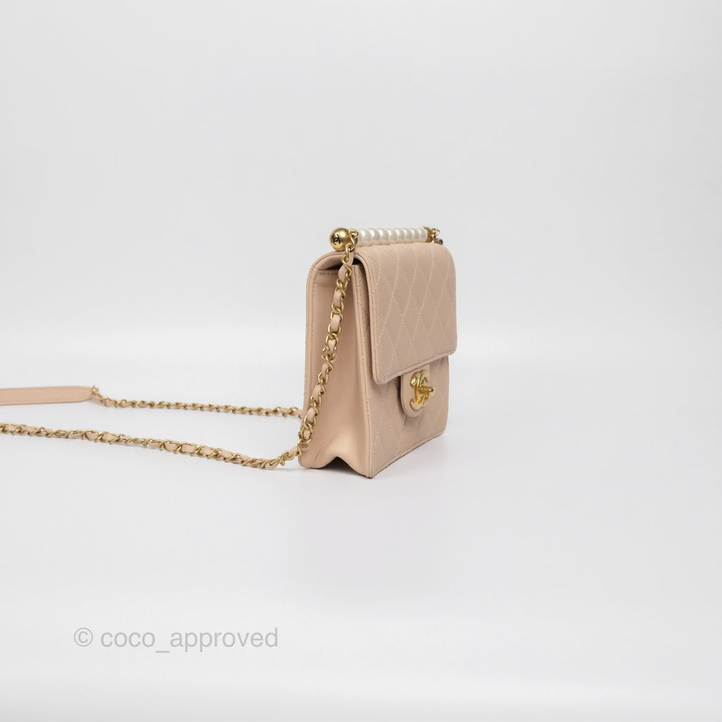 Chanel Quilted Chic Pearls Flap Beige Pink Goatskin Aged Gold Hardware