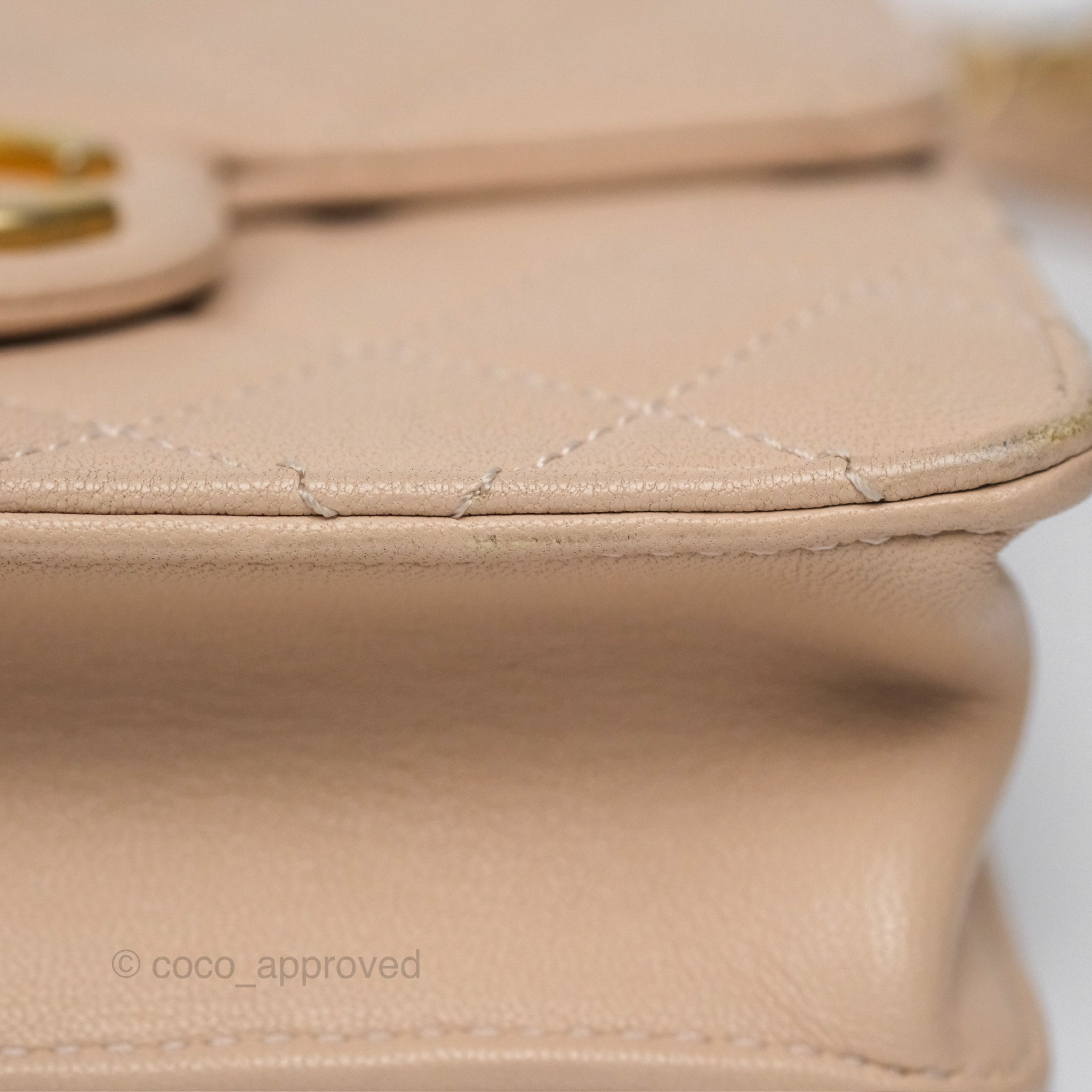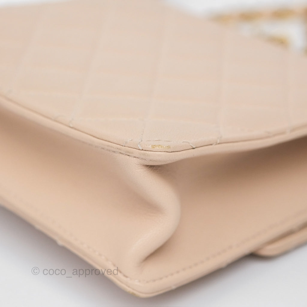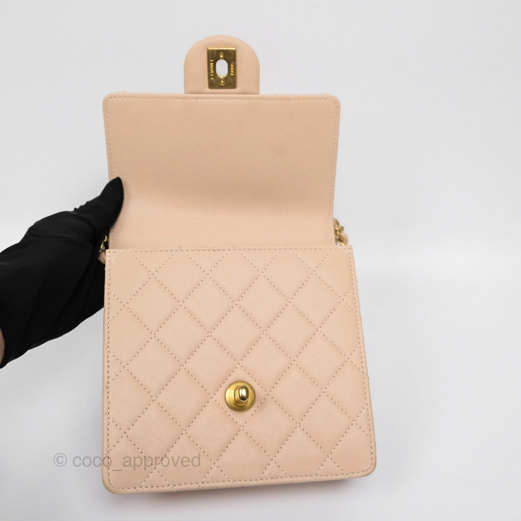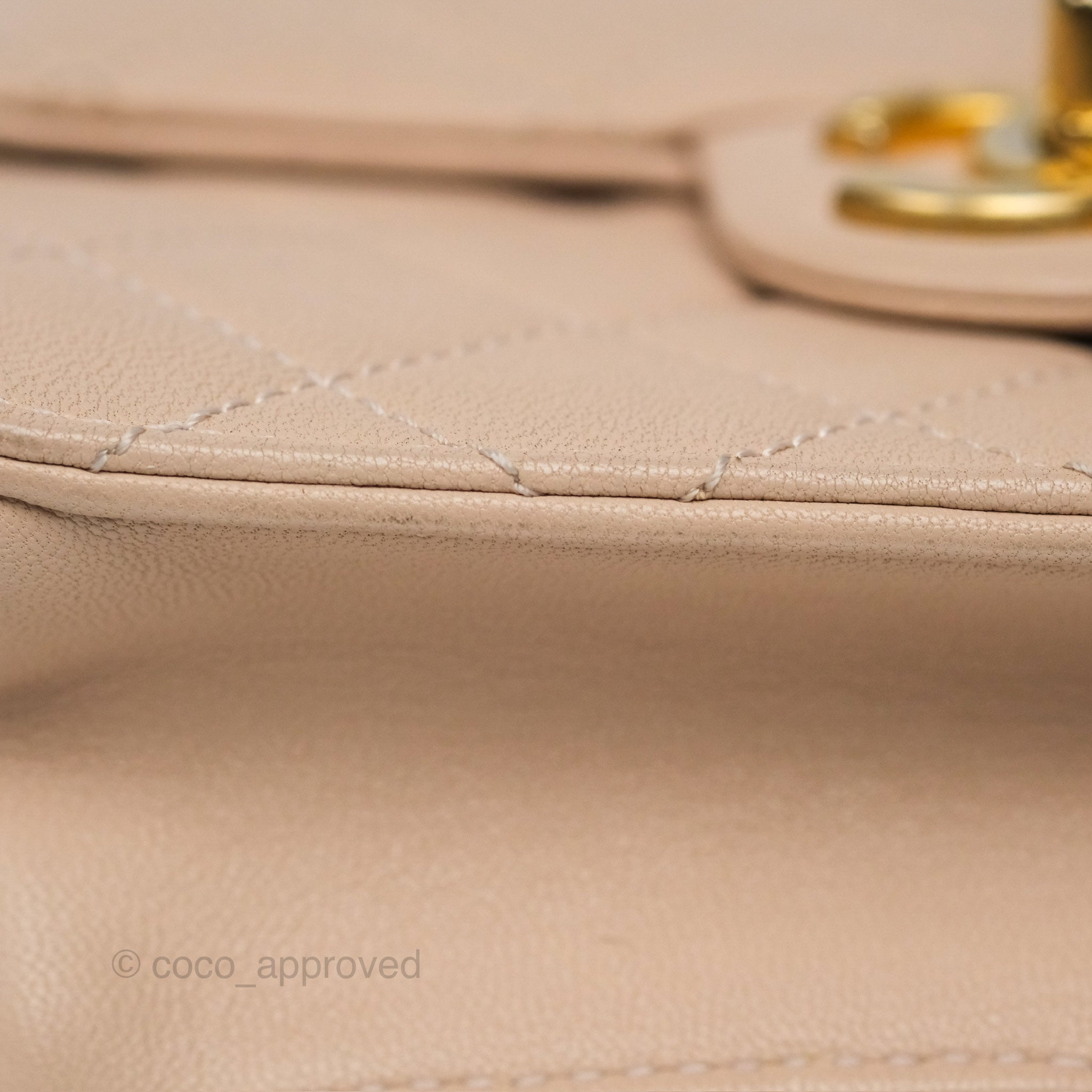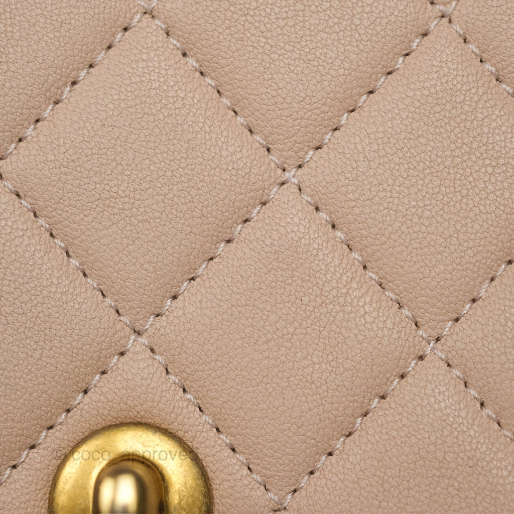 Chanel Quilted Chic Pearls Flap Beige Pink Goatskin Aged Gold Hardware