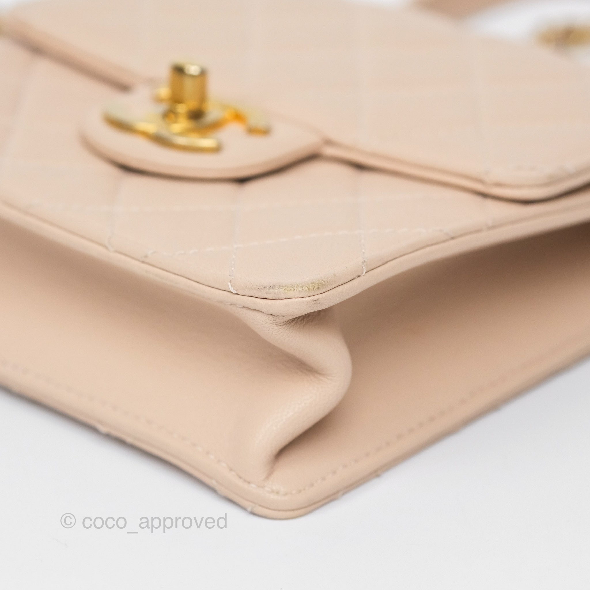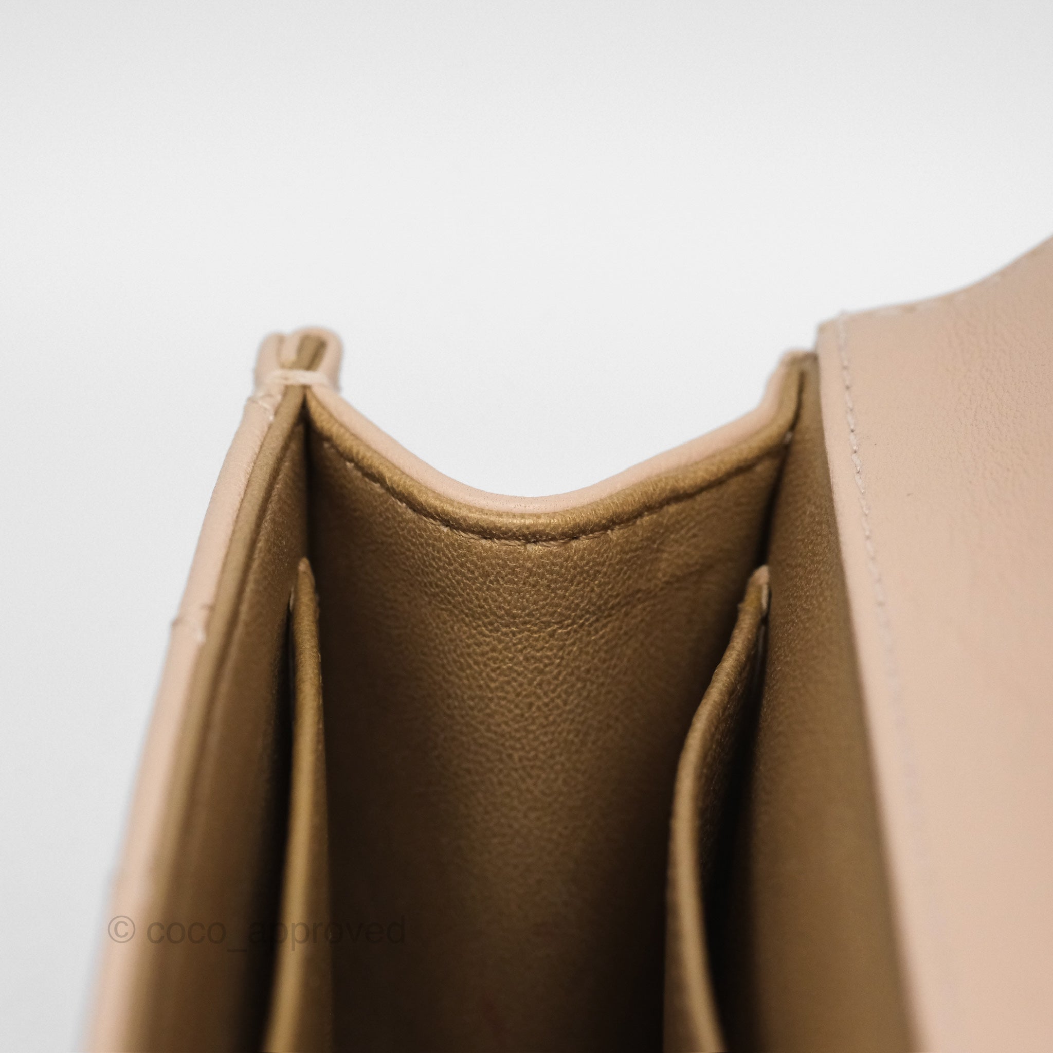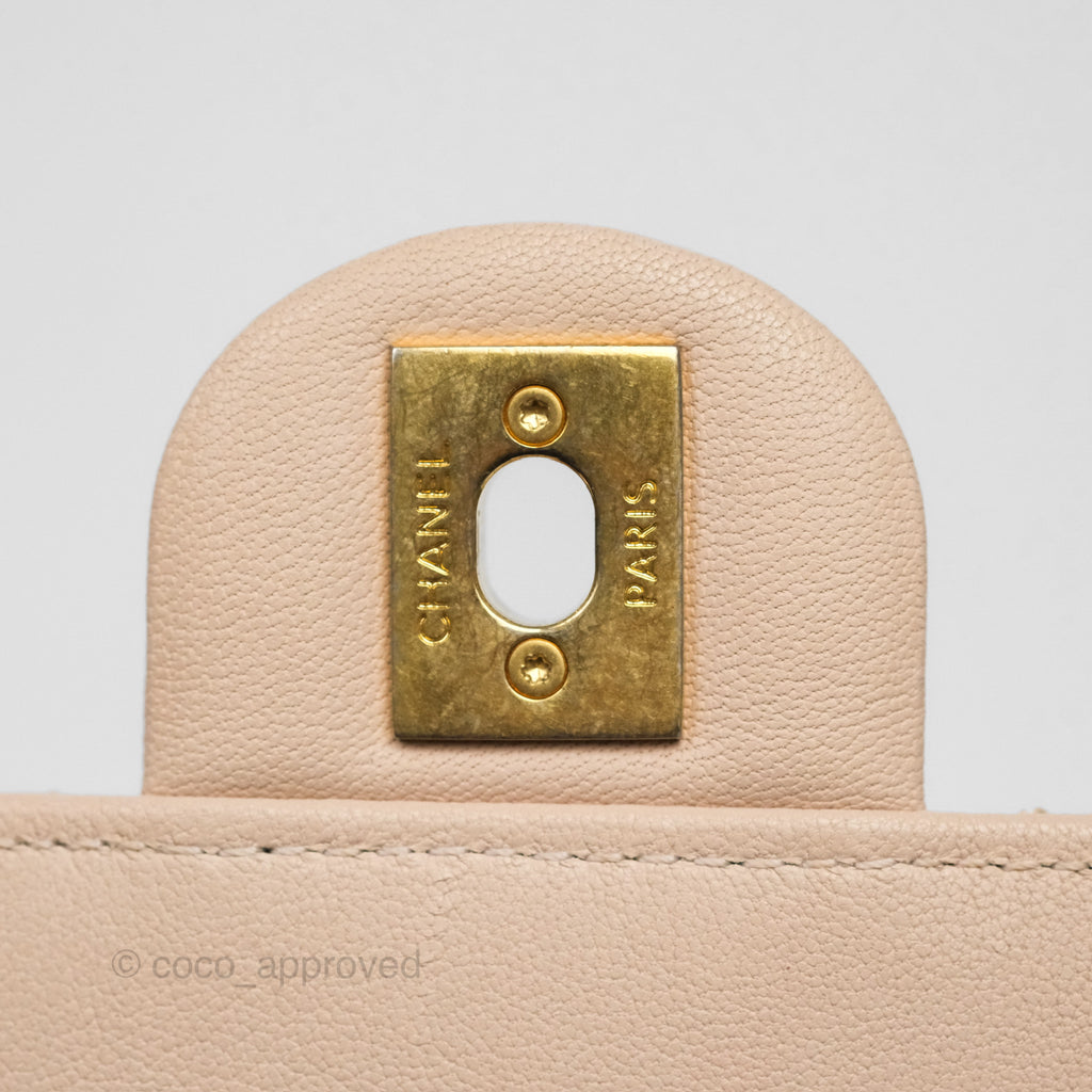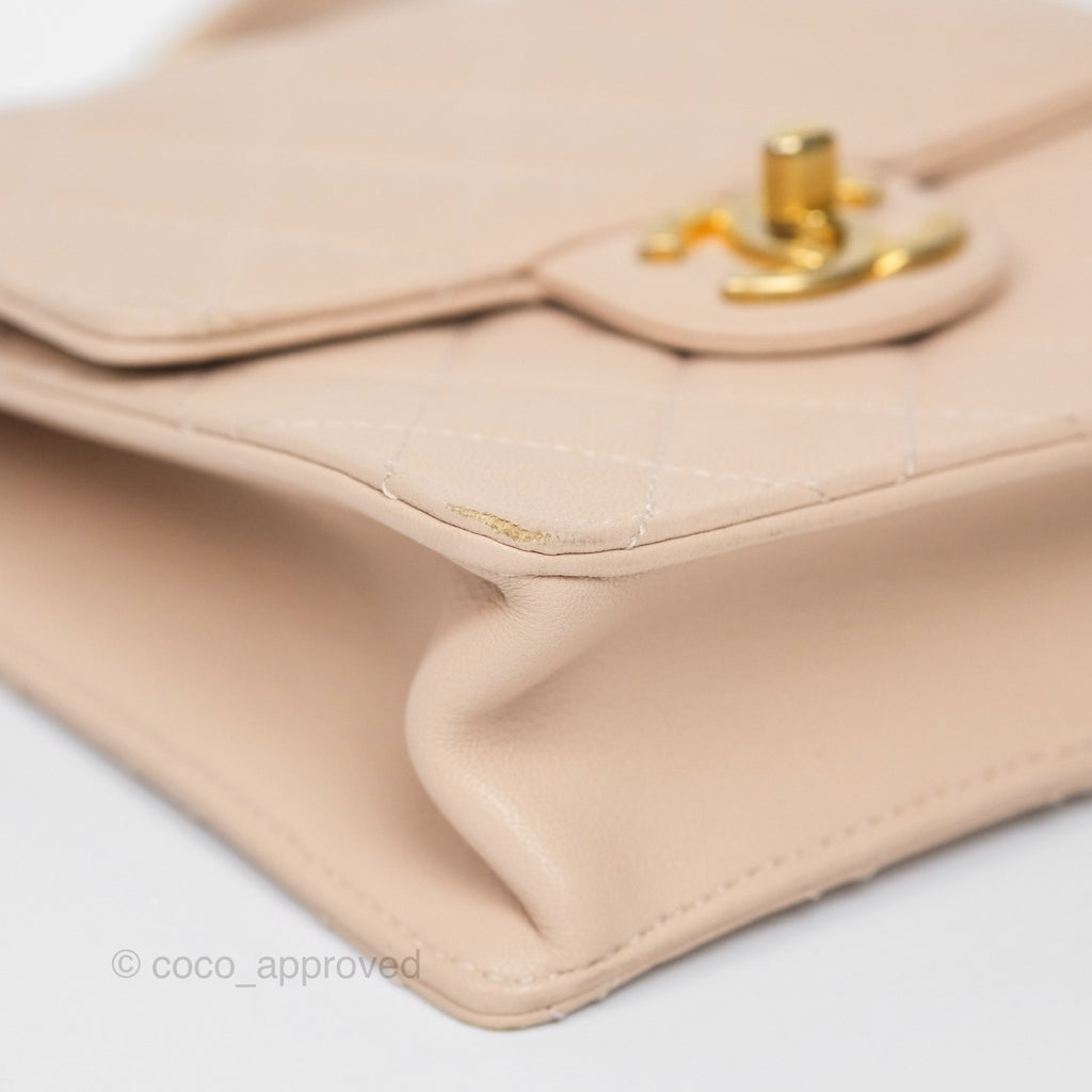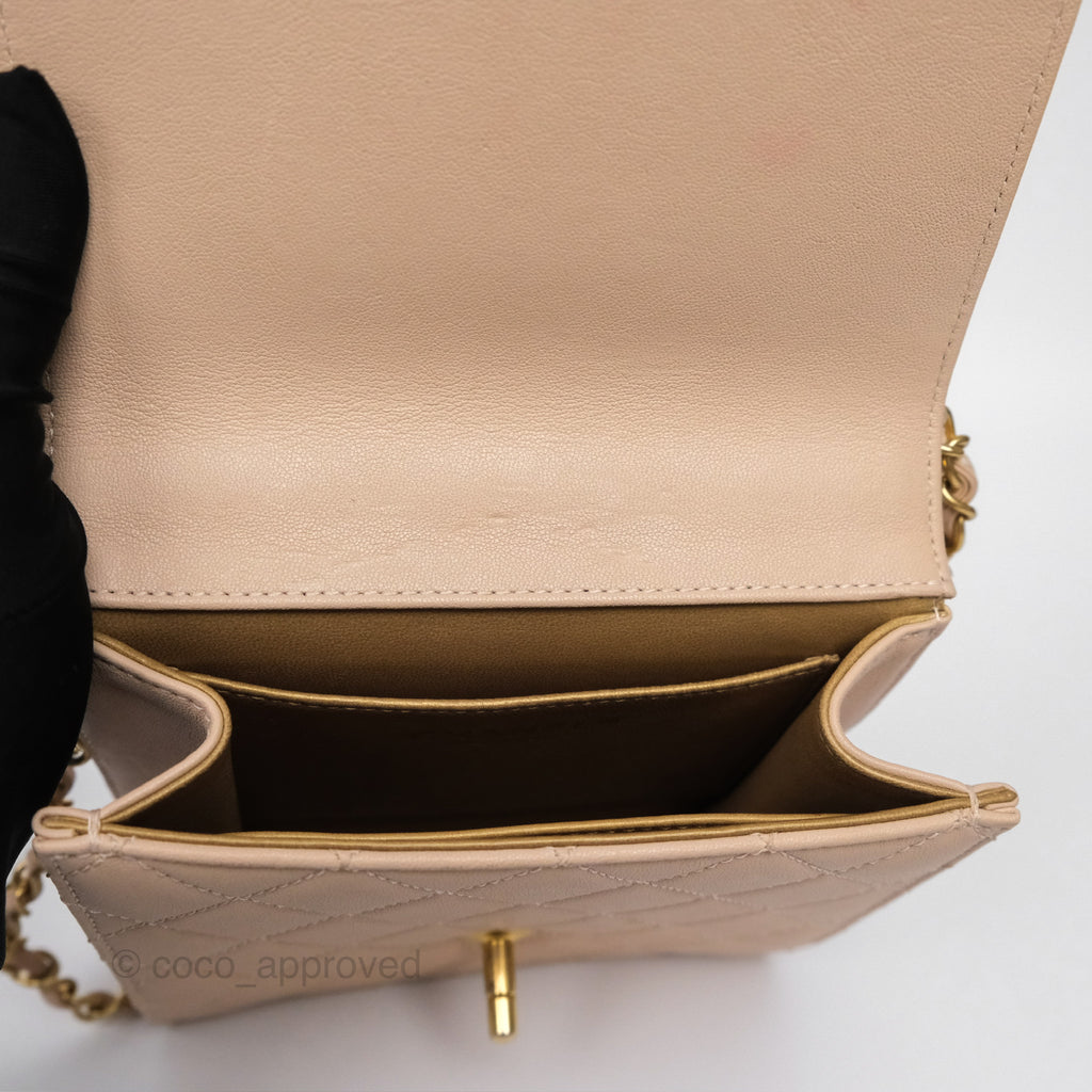 Chanel Quilted Chic Pearls Flap Beige Pink Goatskin Aged Gold Hardware