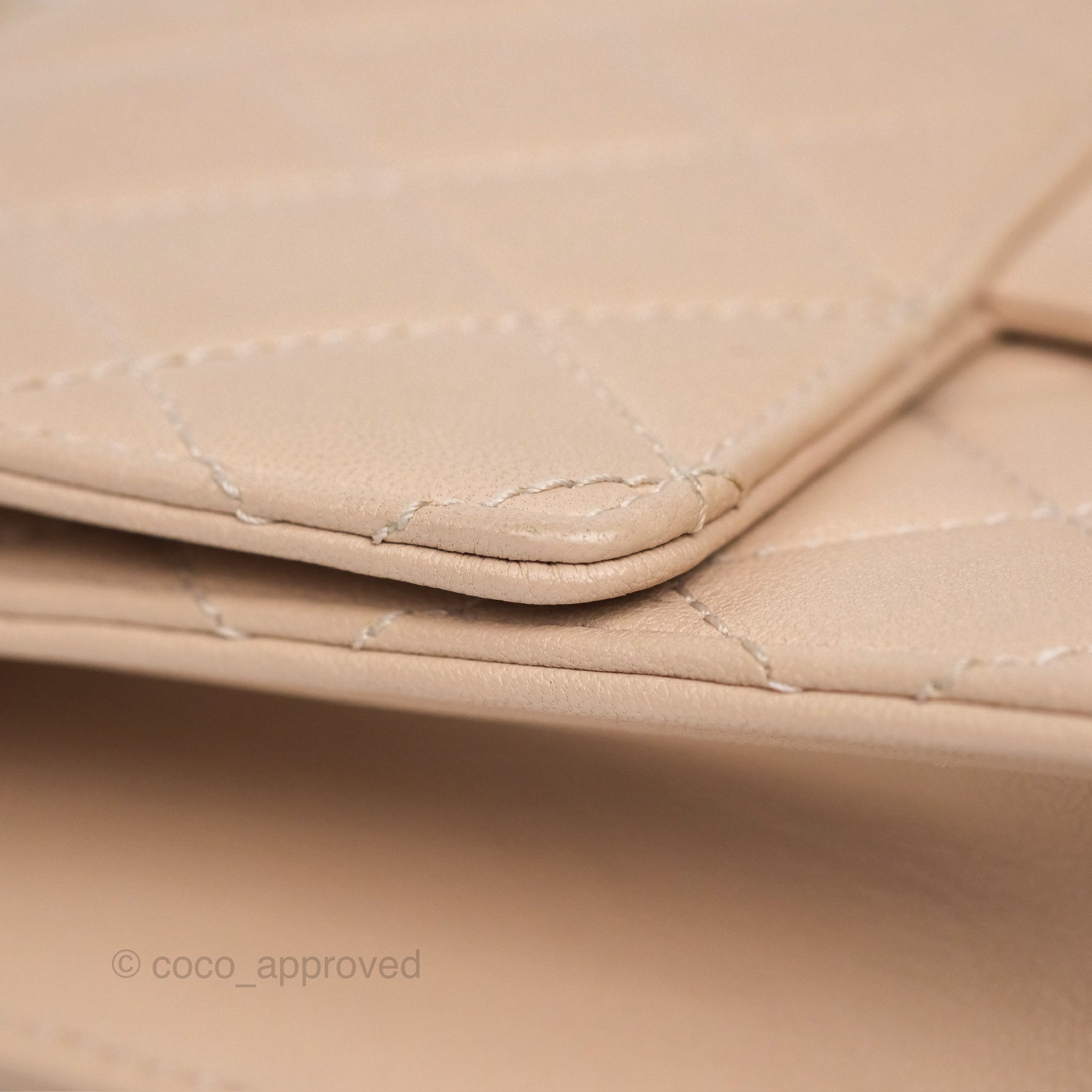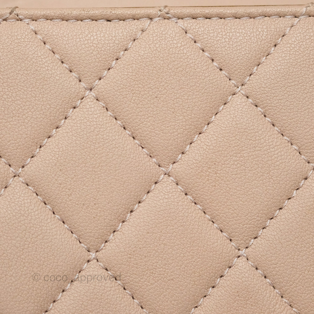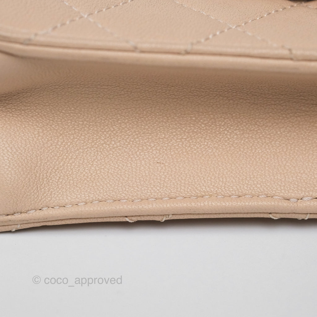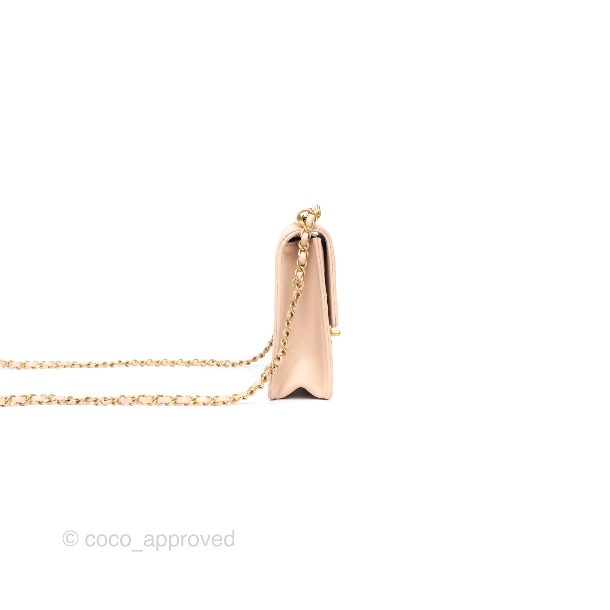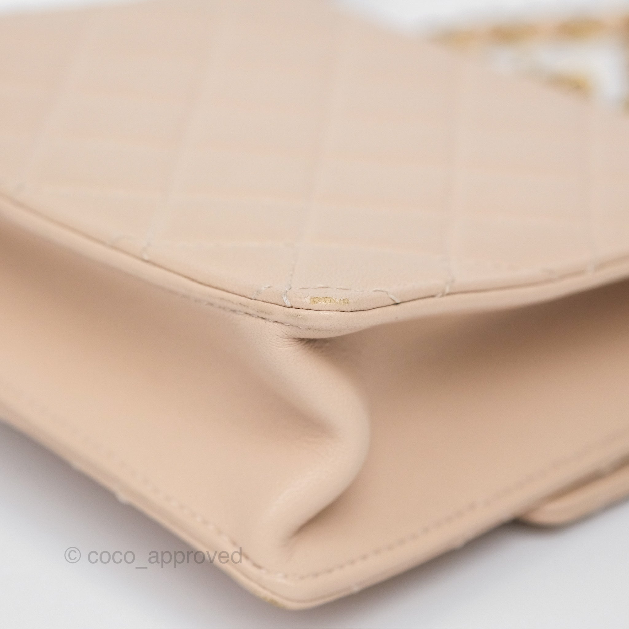 Chanel Quilted Chic Pearls Flap Beige Pink Goatskin Aged Gold Hardware