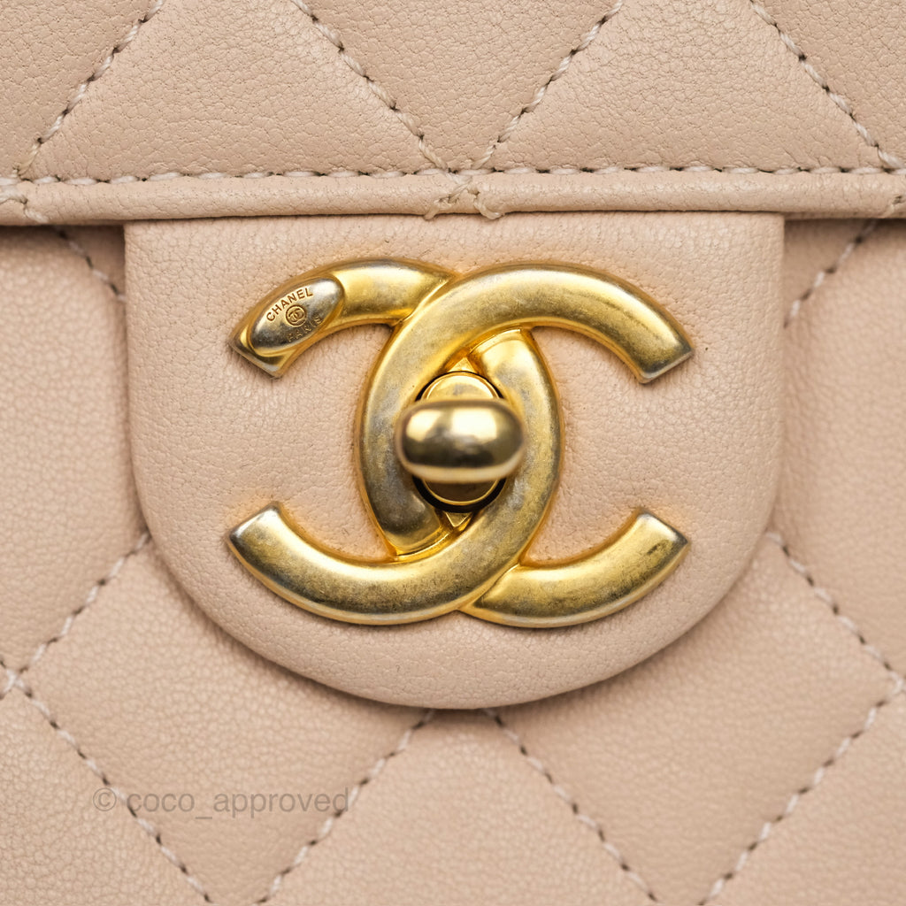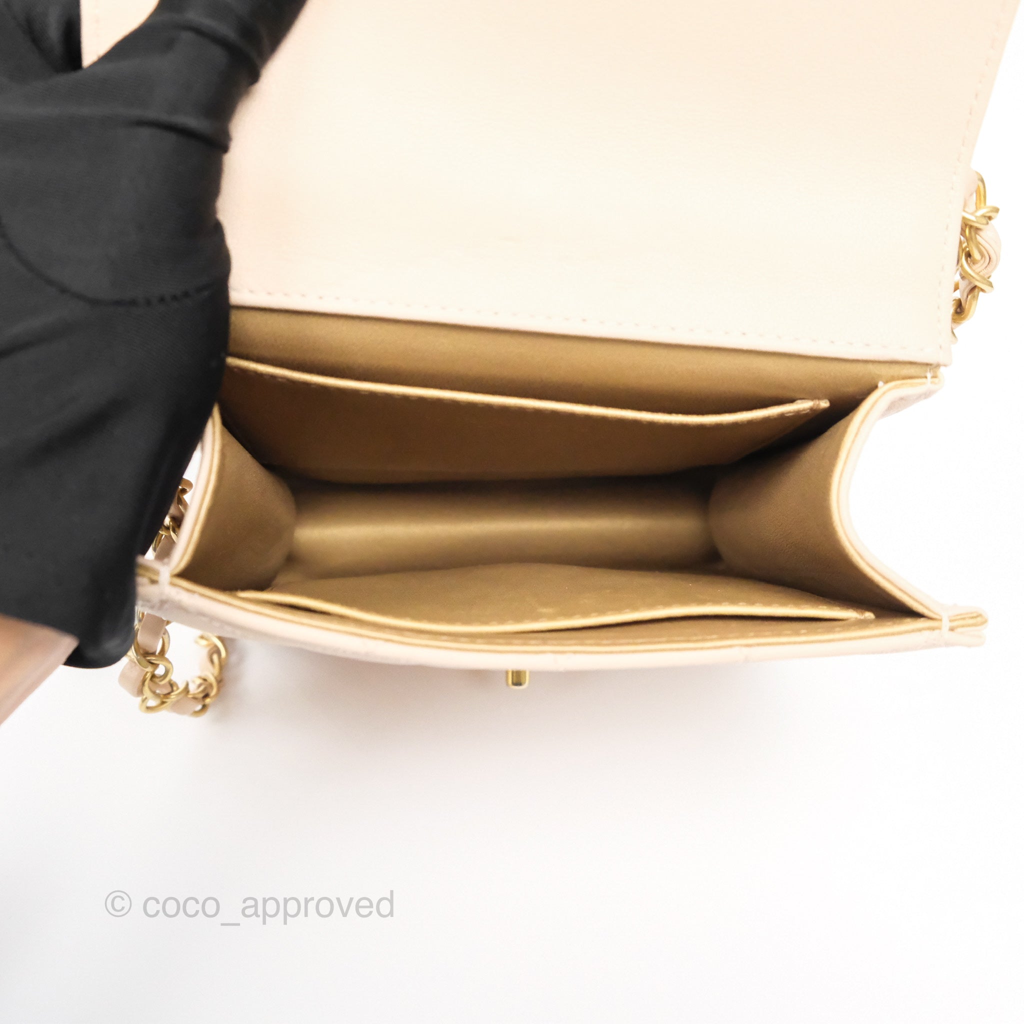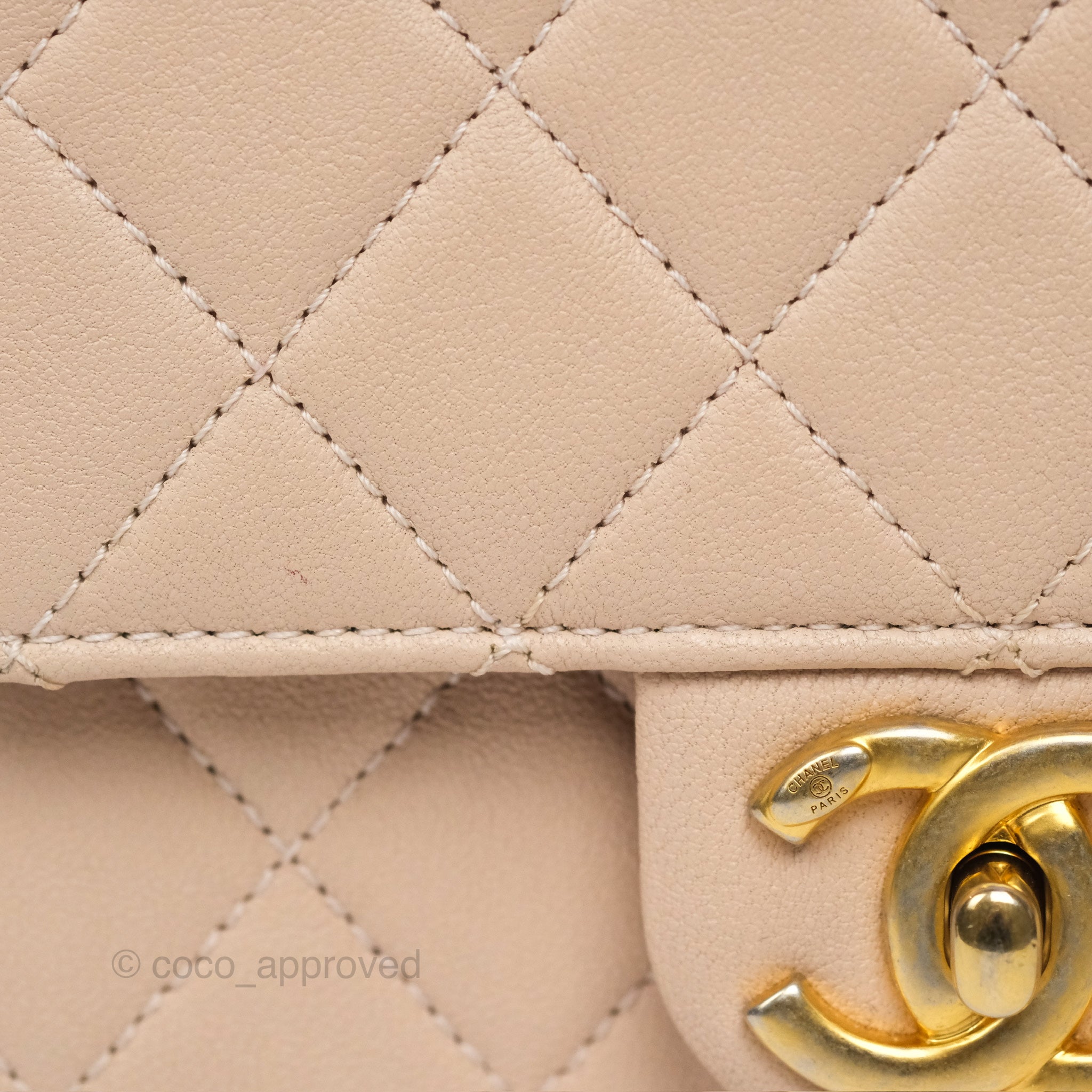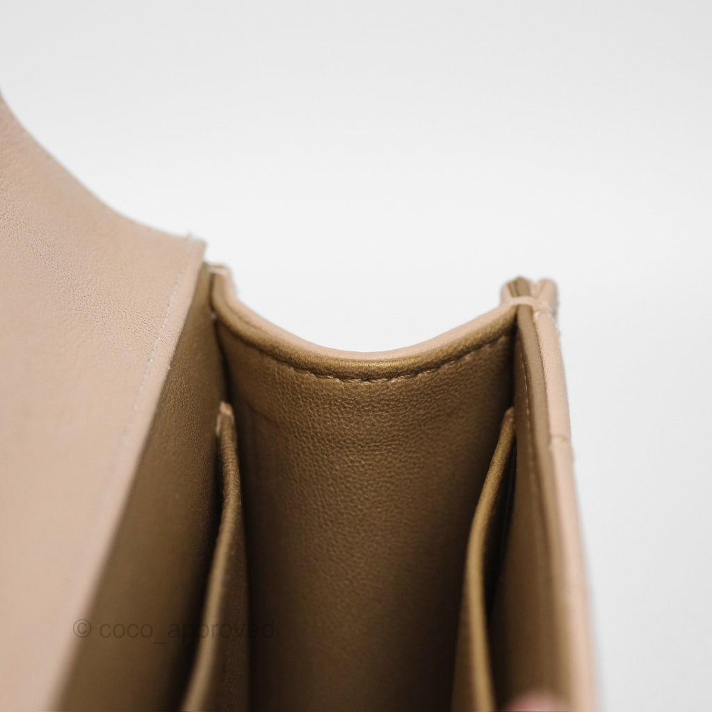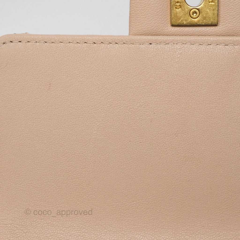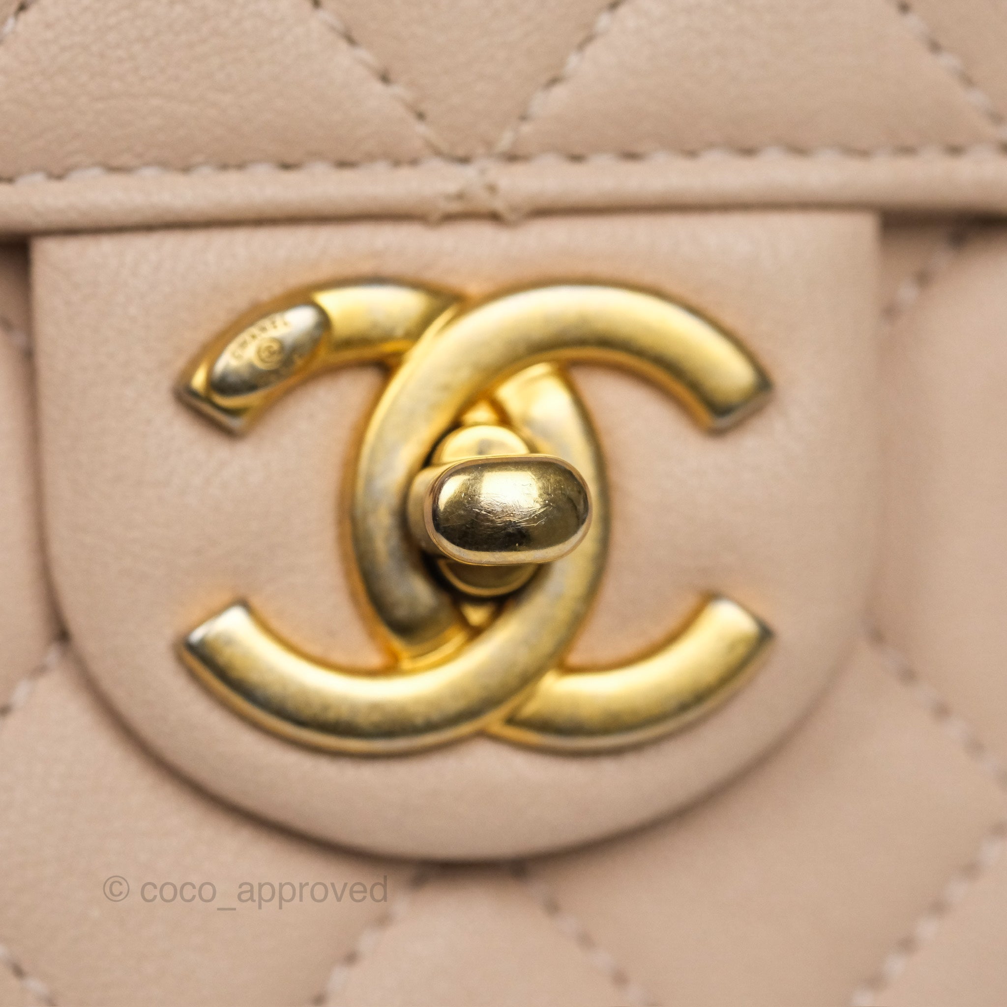 Chanel Quilted Chic Pearls Flap Beige Pink Goatskin Aged Gold Hardware