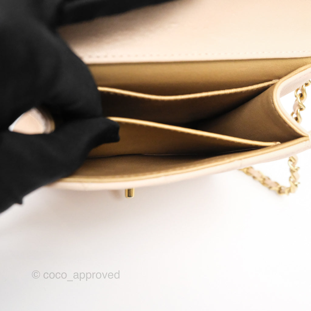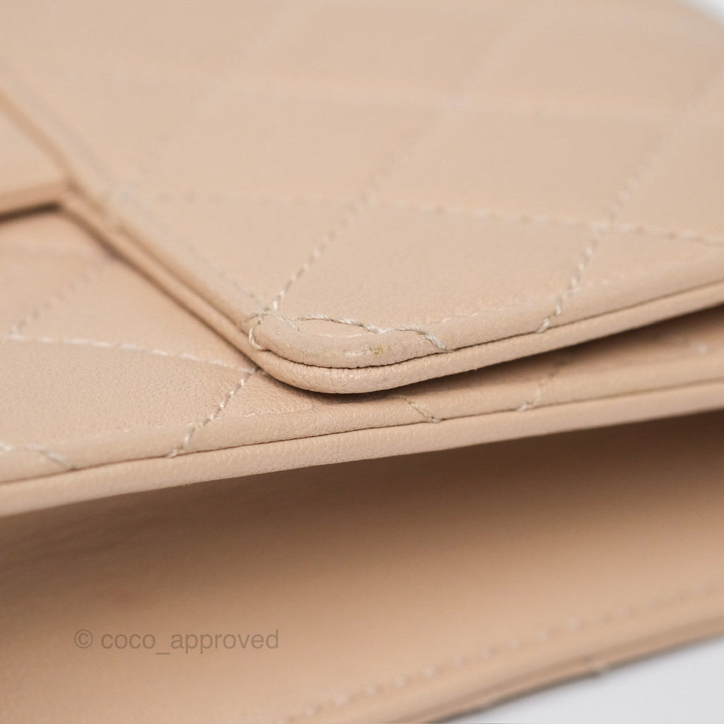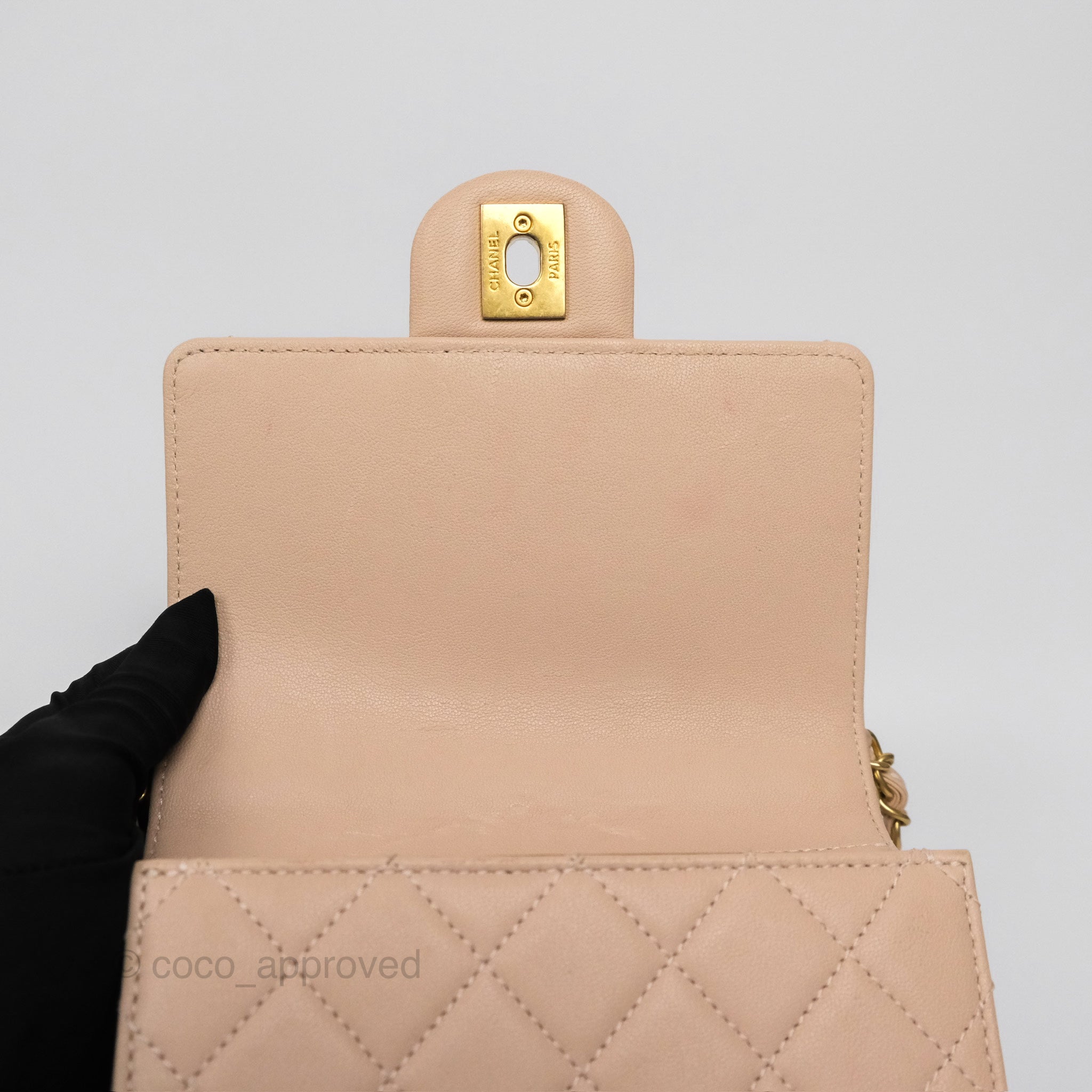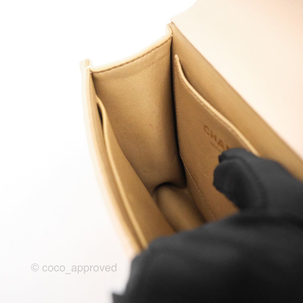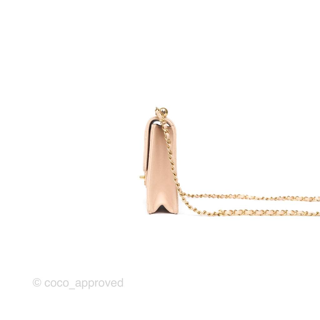 Chanel Quilted Chic Pearls Flap Beige Pink Goatskin Aged Gold Hardware